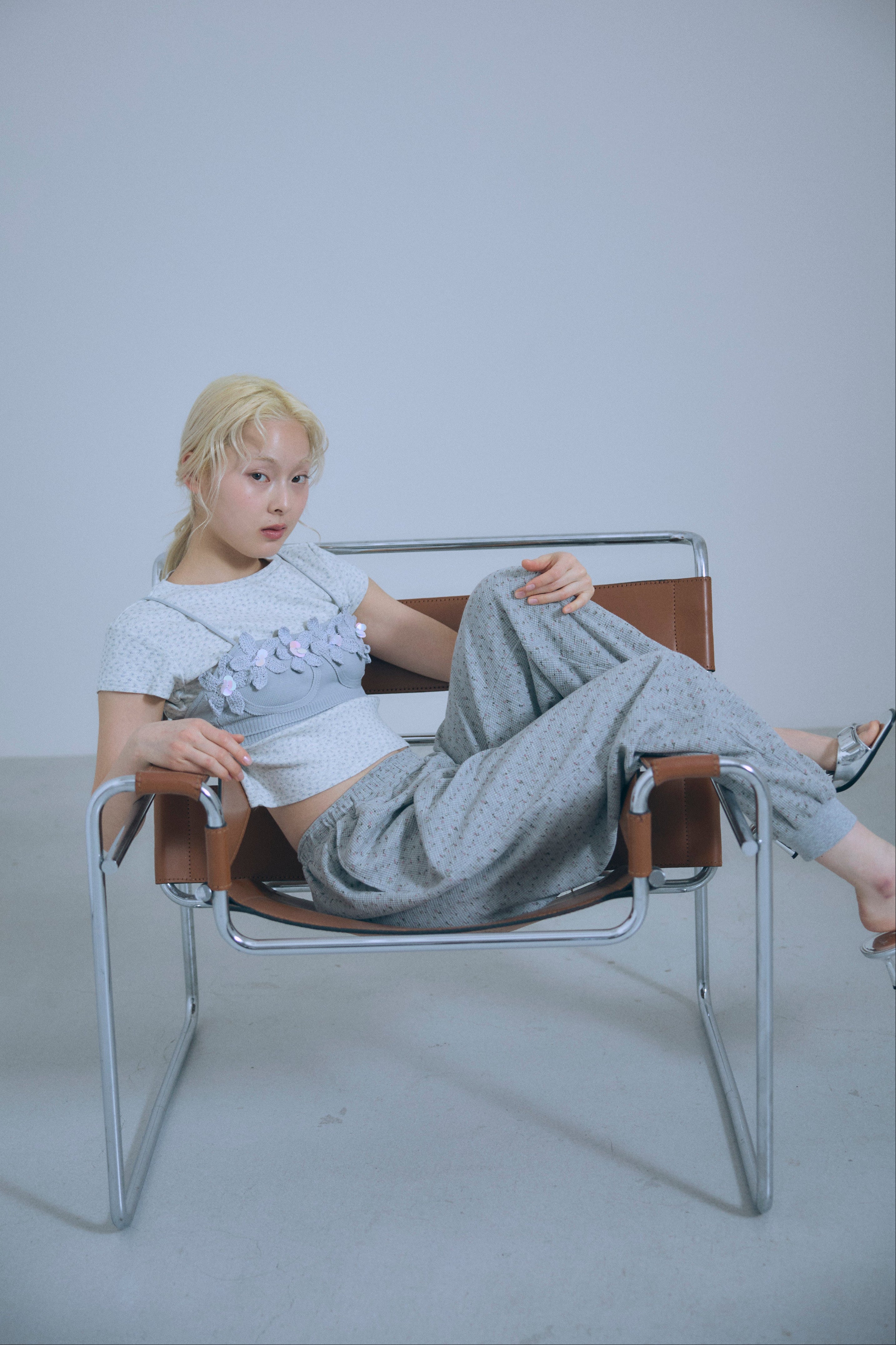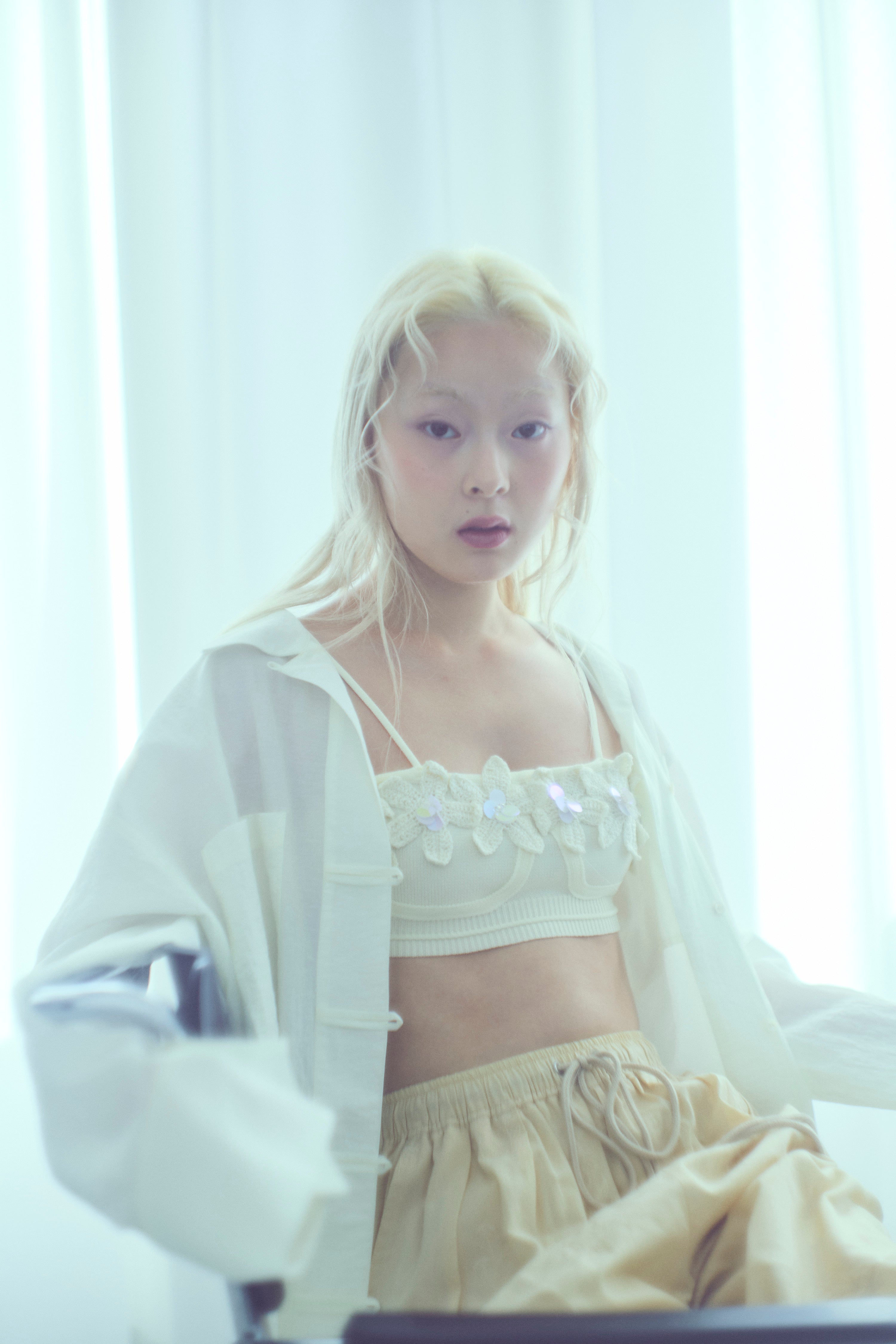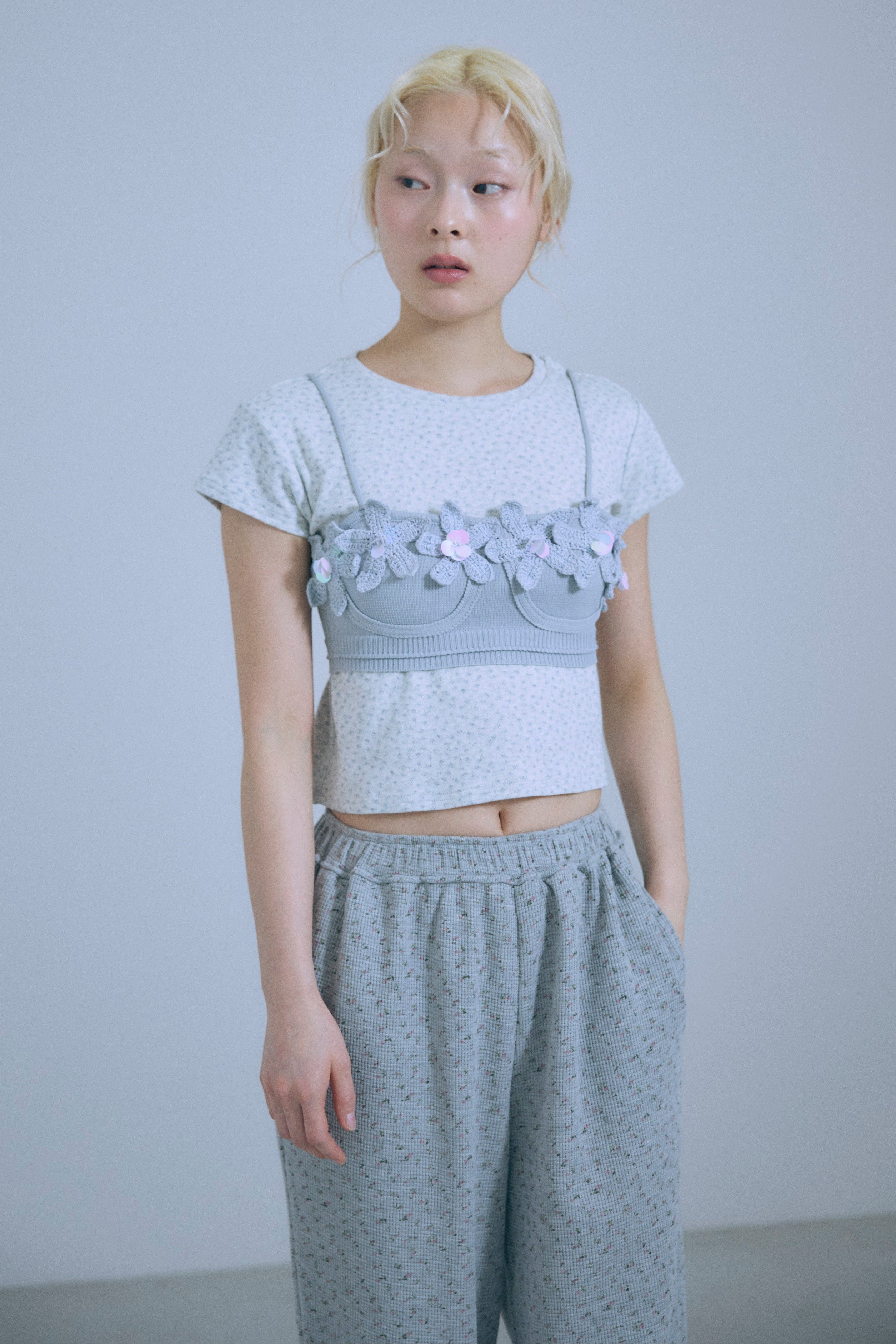 Flower Motif Knit Bra