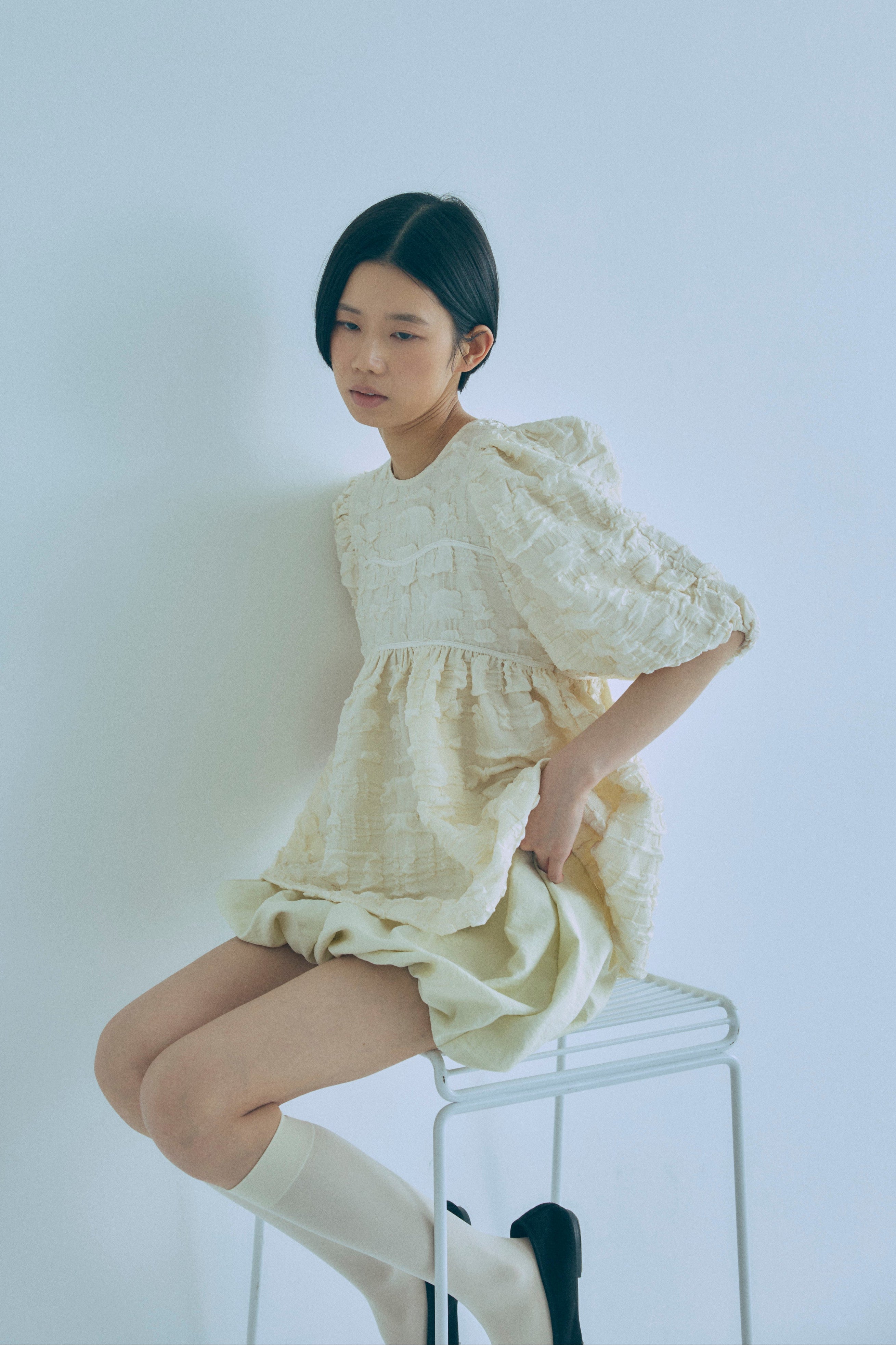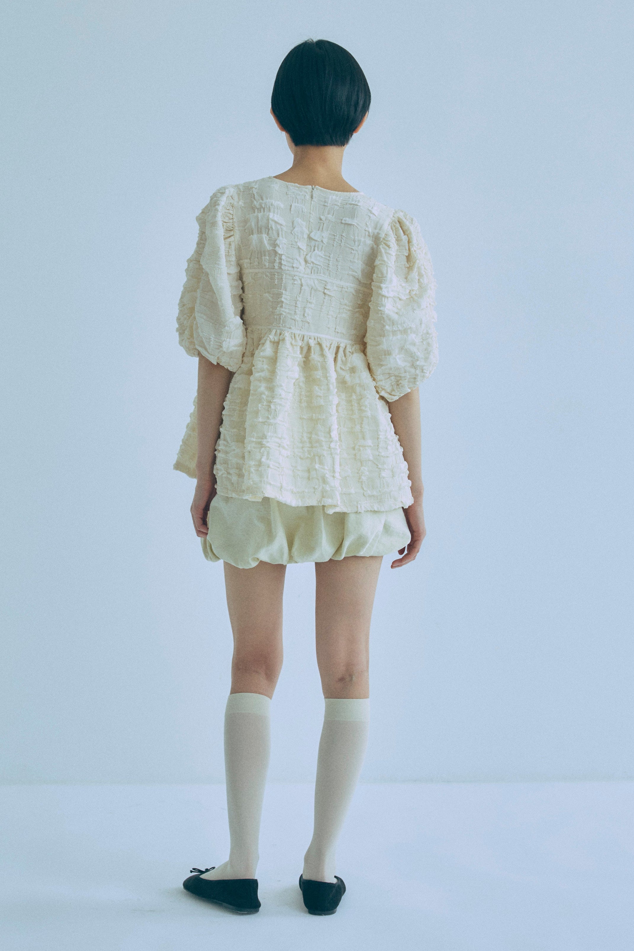 Jacquard Puffy Gatherd Tops