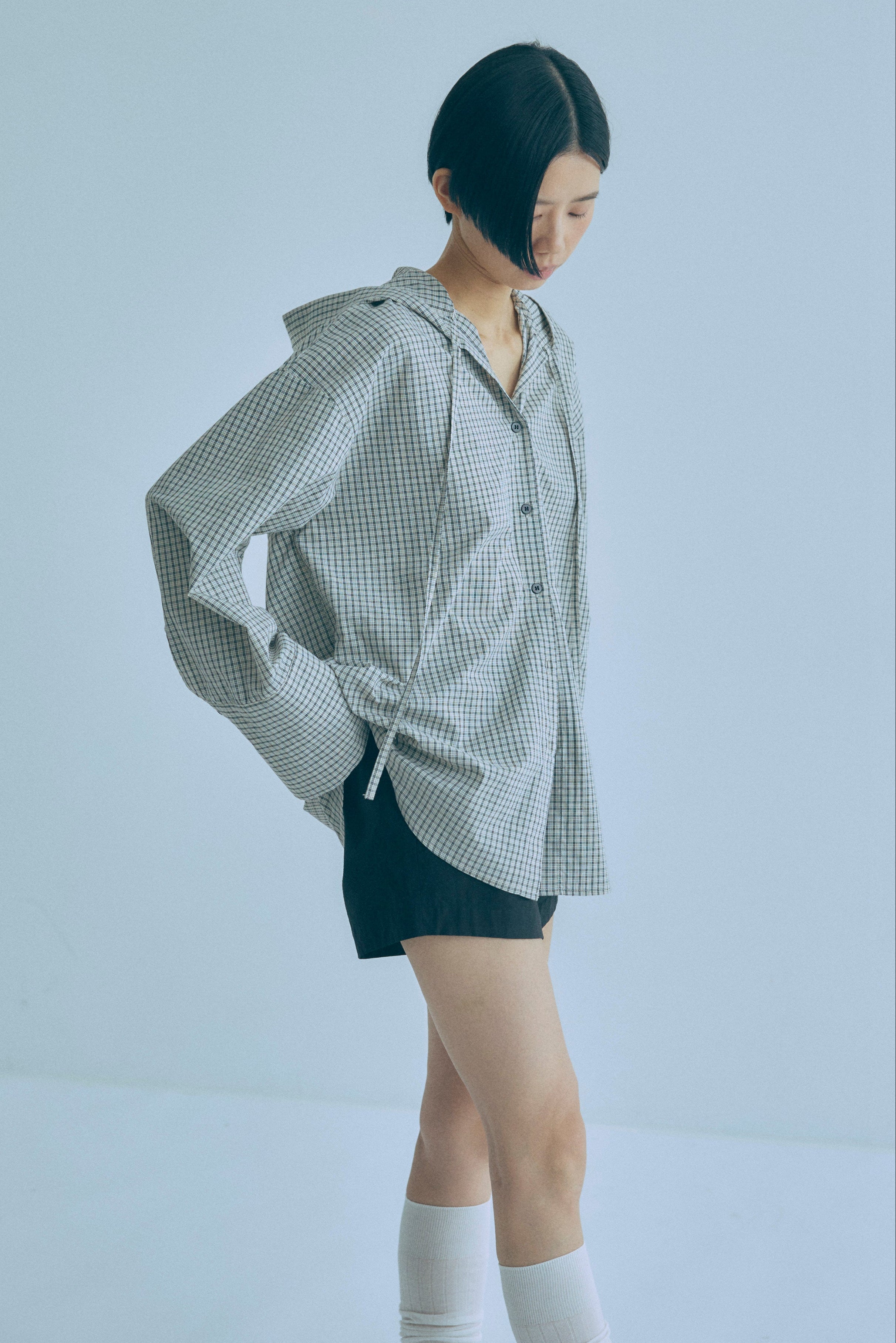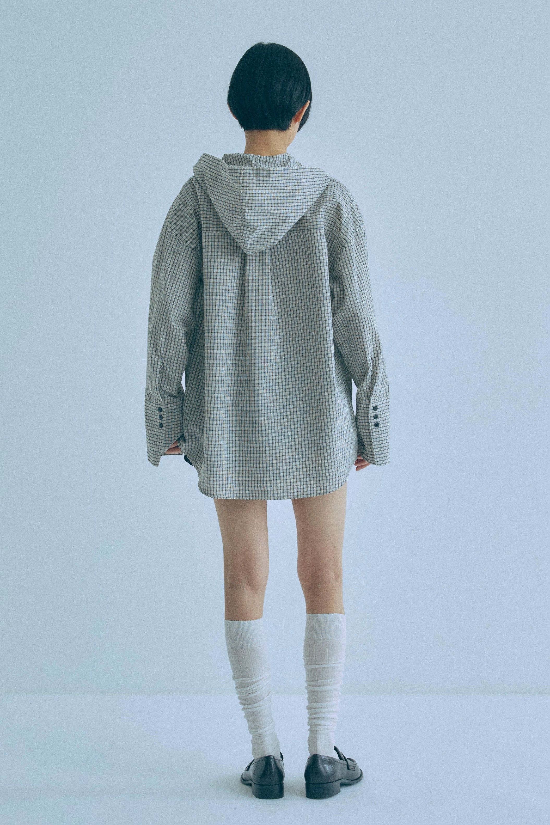 Hooded Check Oversize Shirt