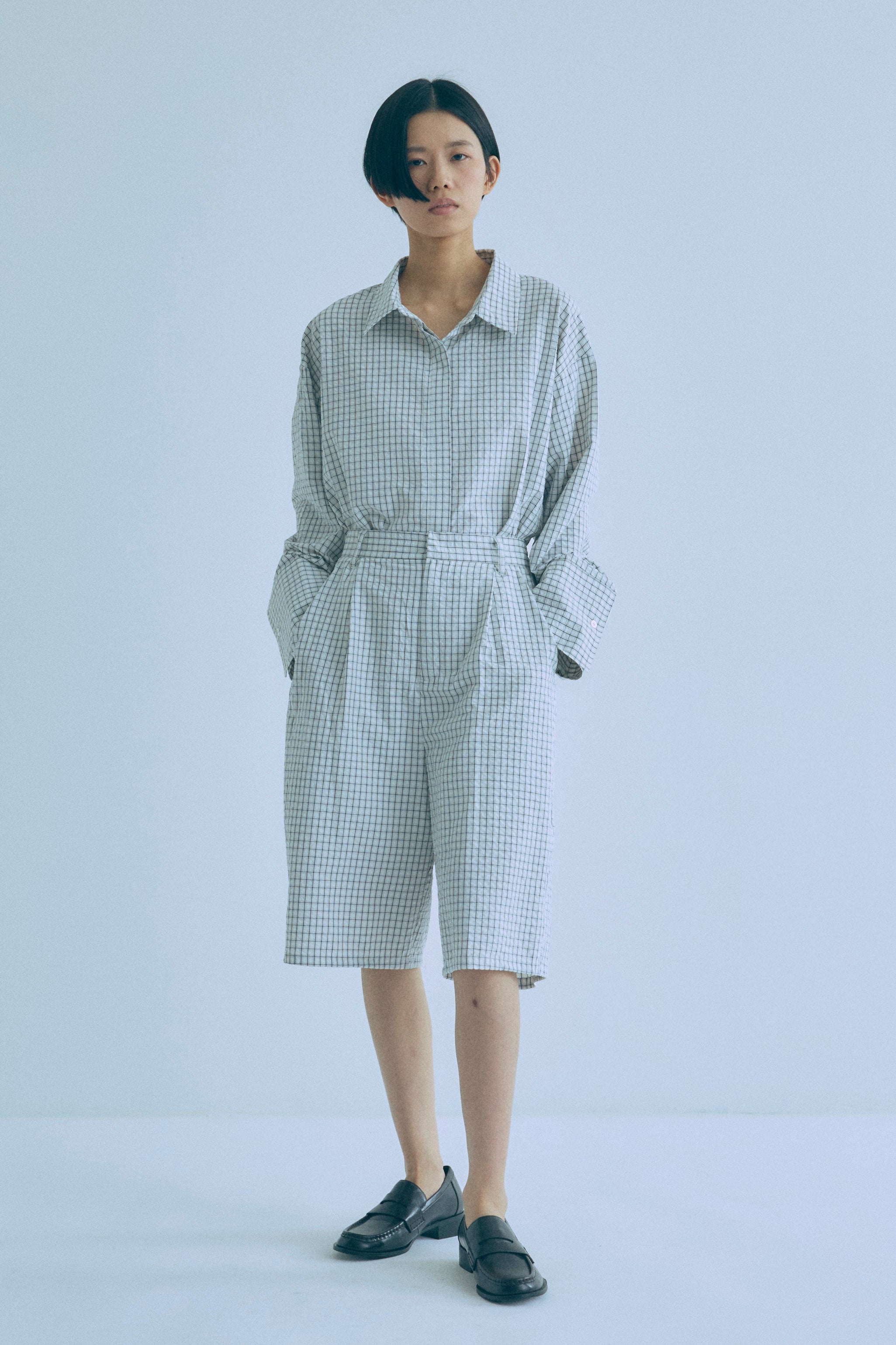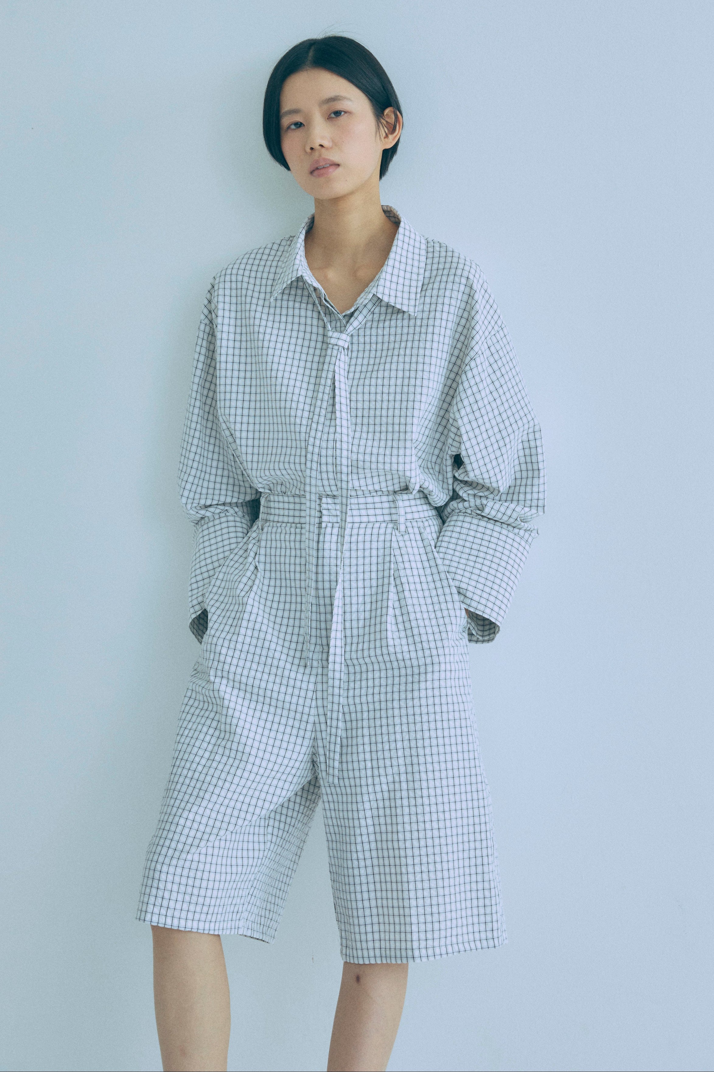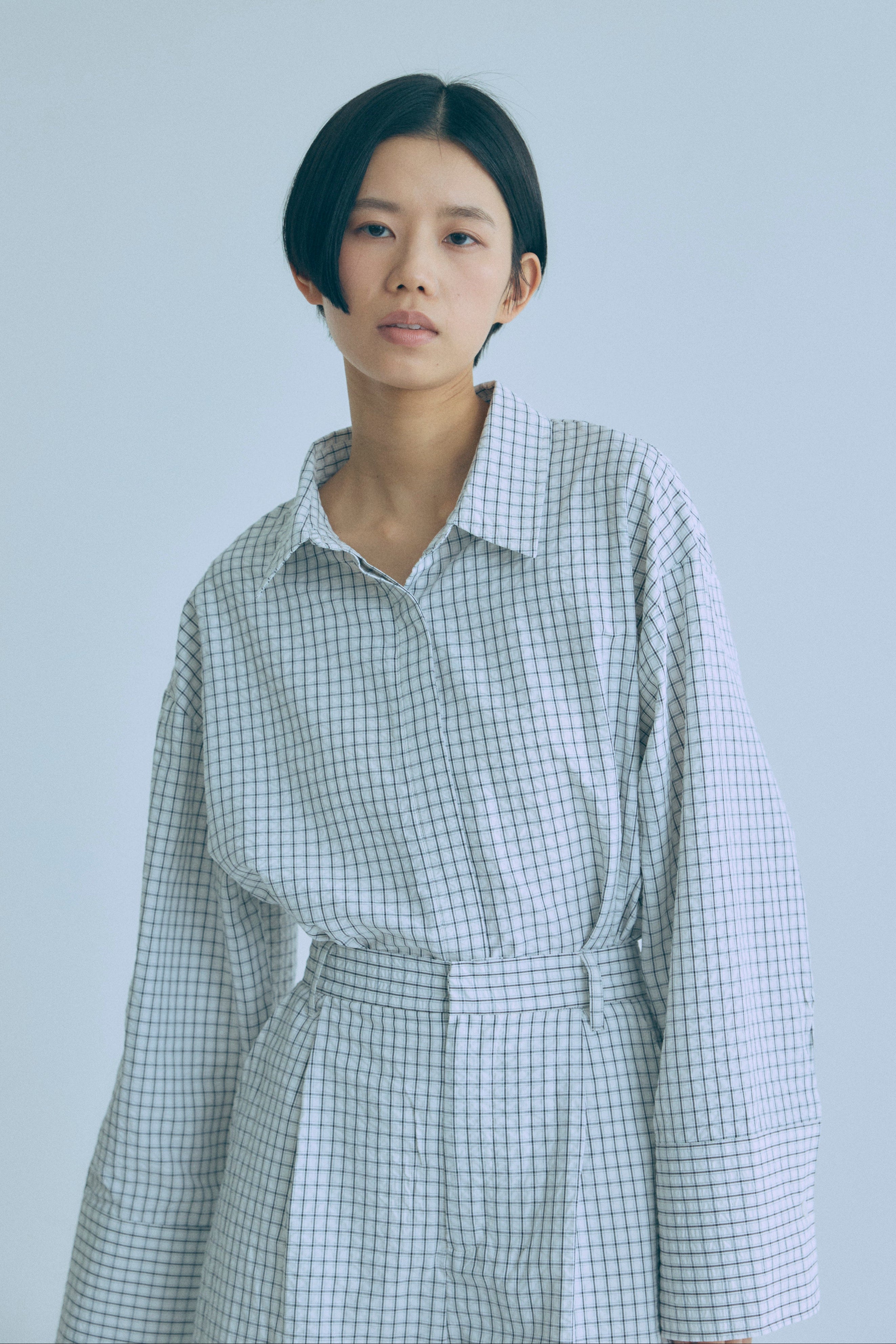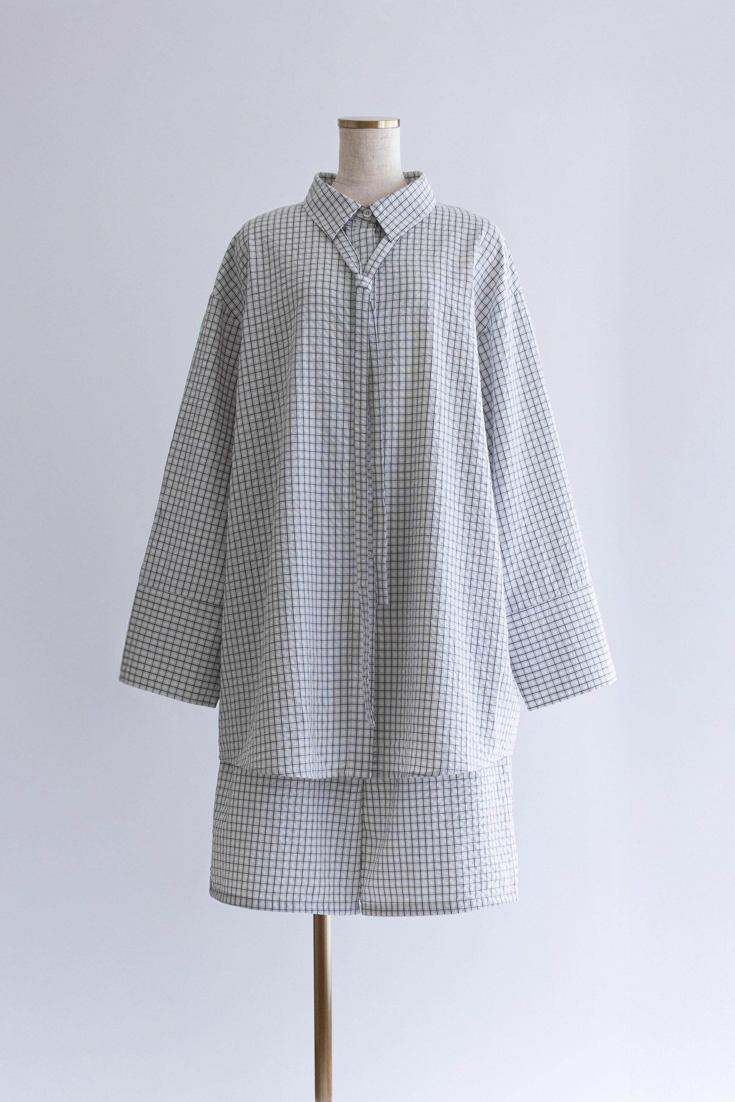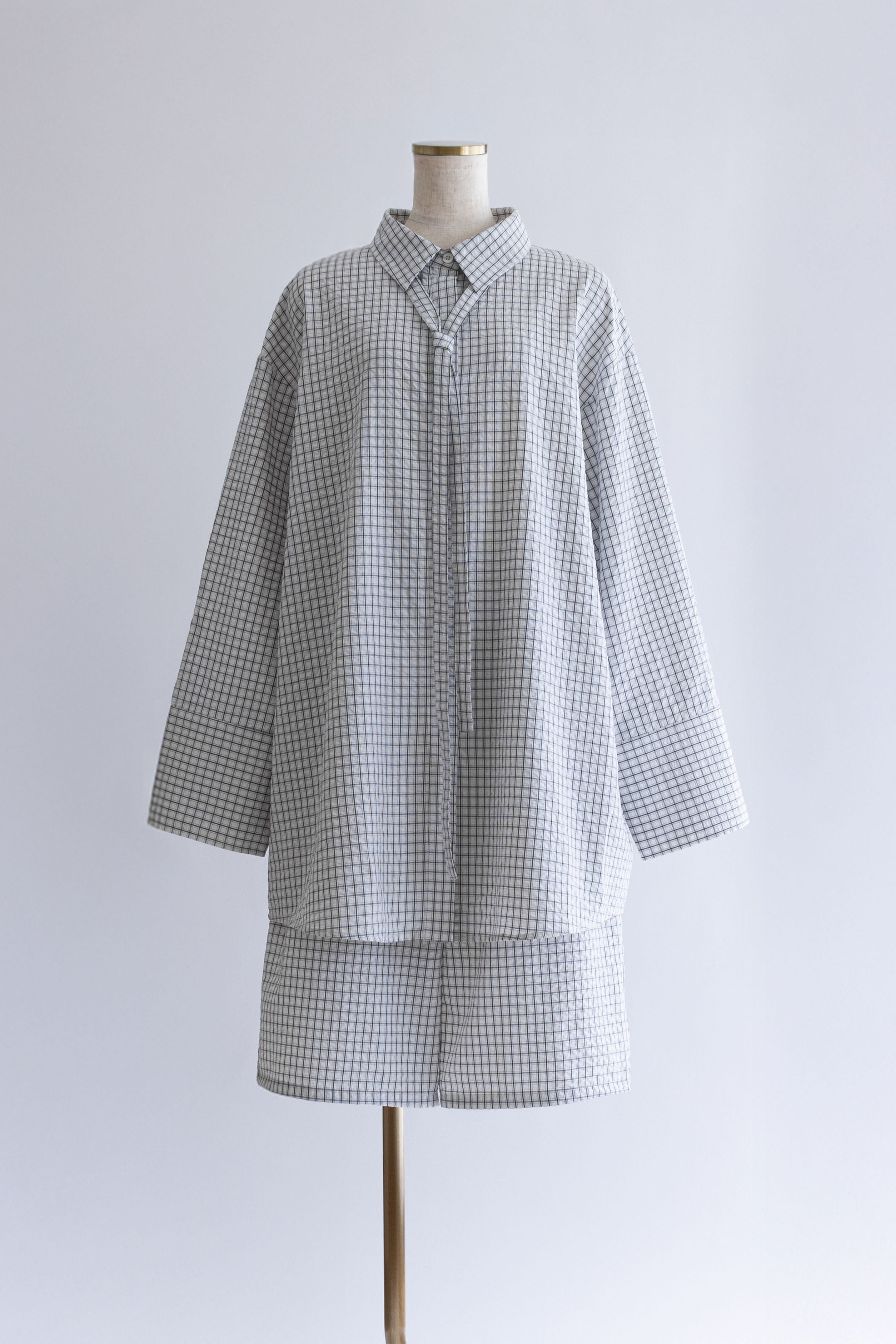 【Set Up】Soft Seersucker Check Shirt