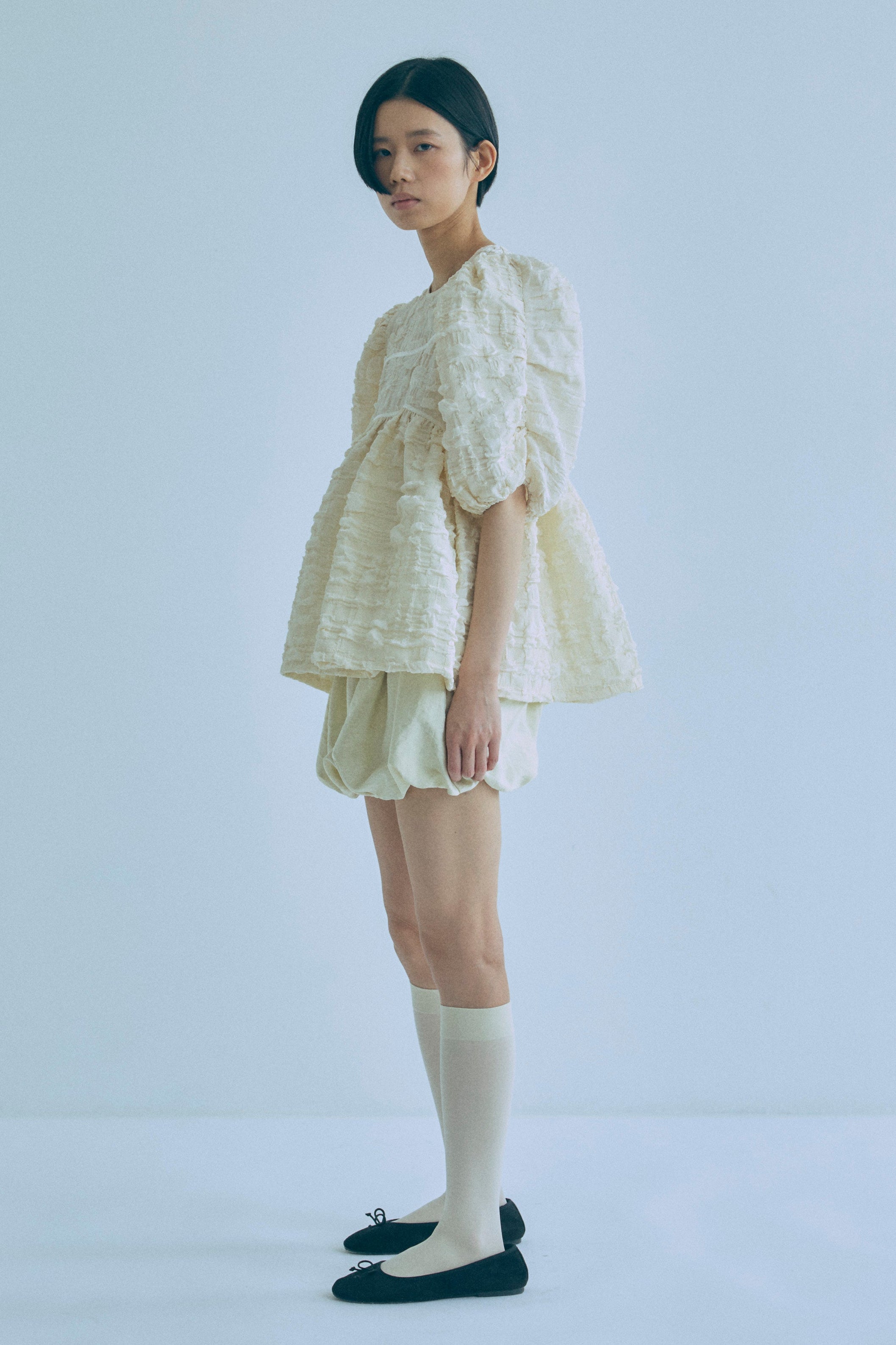 Jacquard Puffy Gatherd Tops