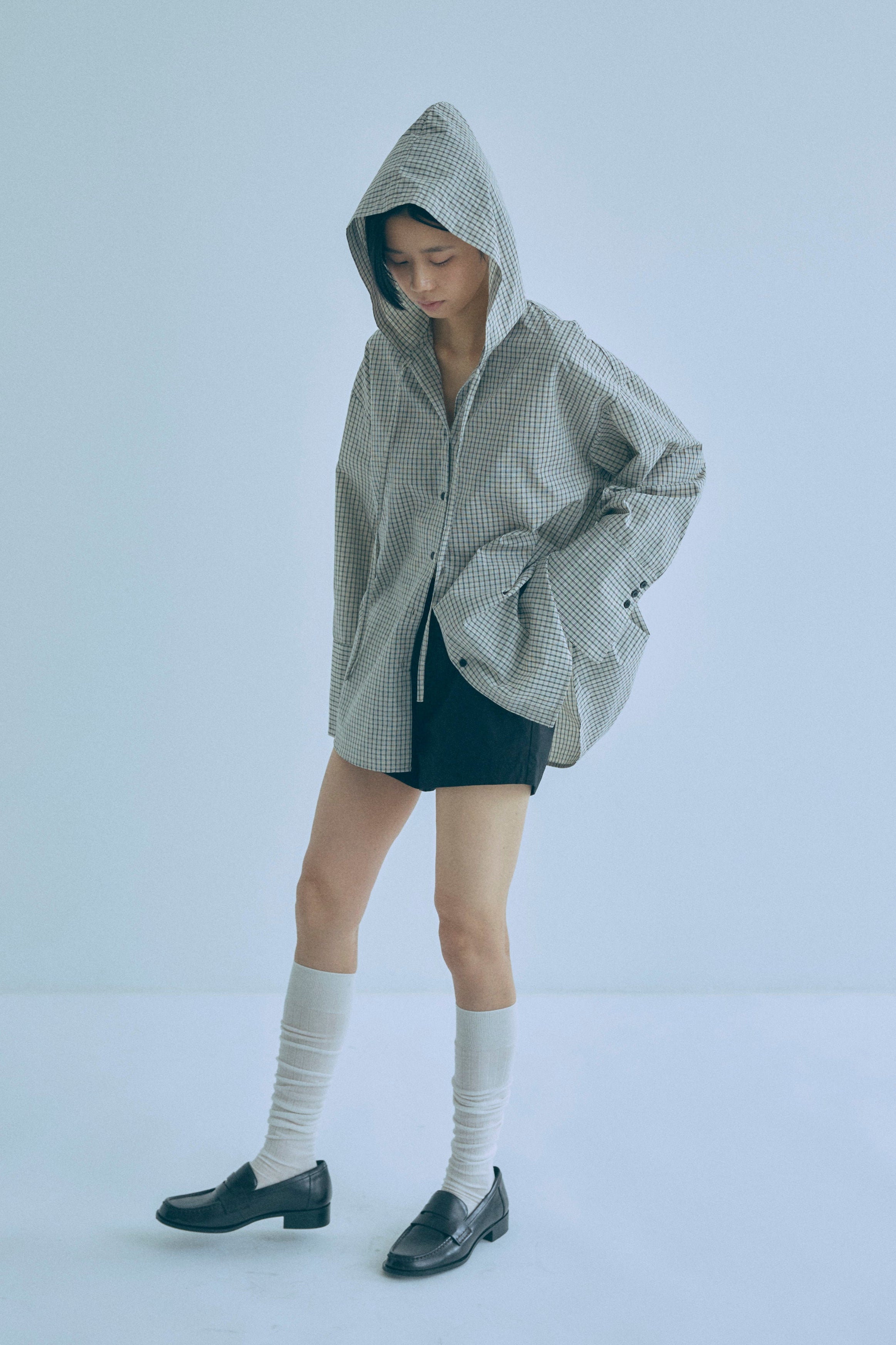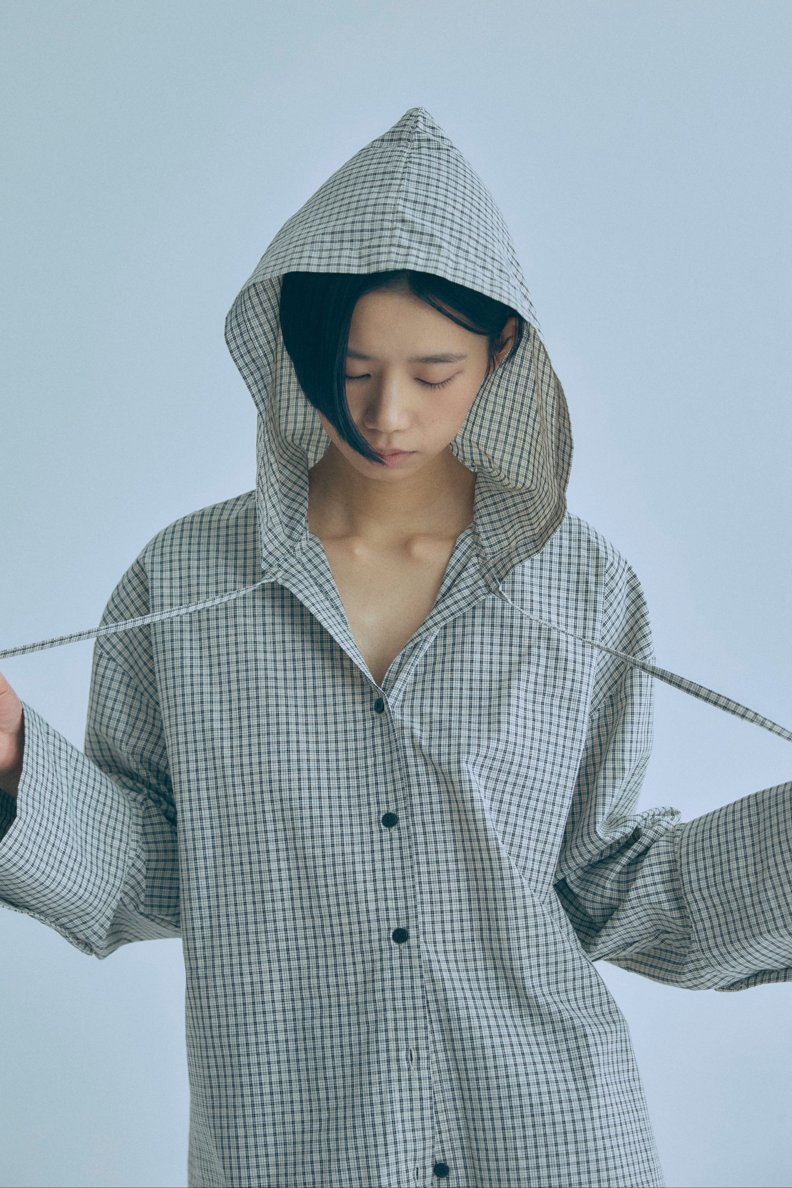 Hooded Check Oversize Shirt