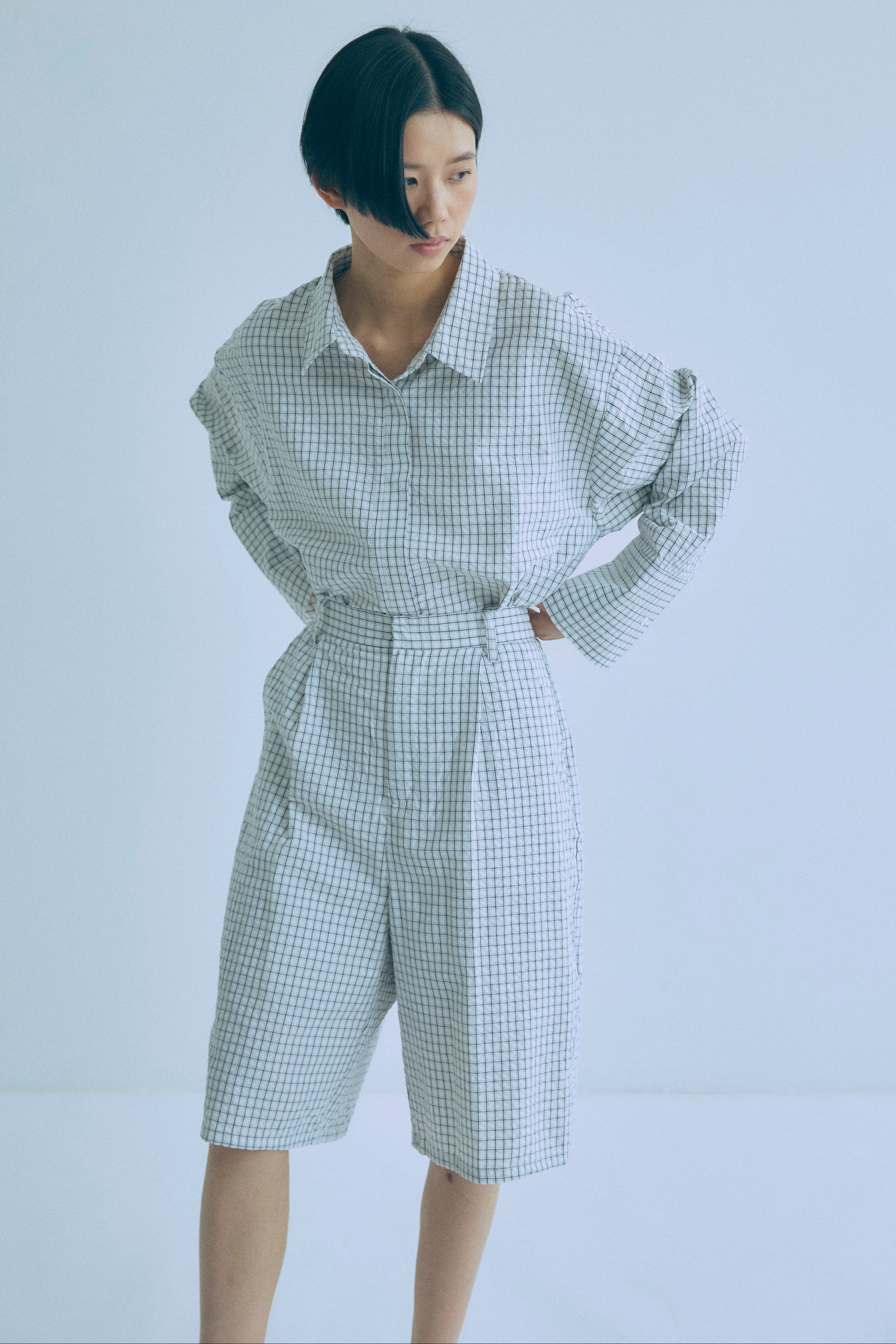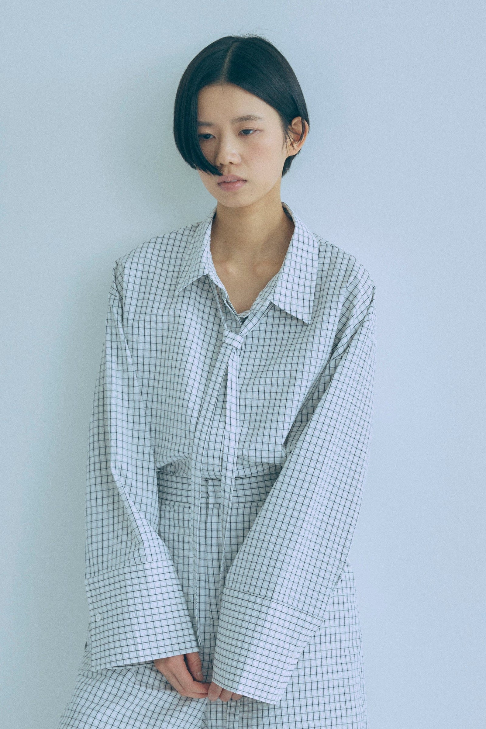 【Set Up】Soft Seersucker Check Shirt
