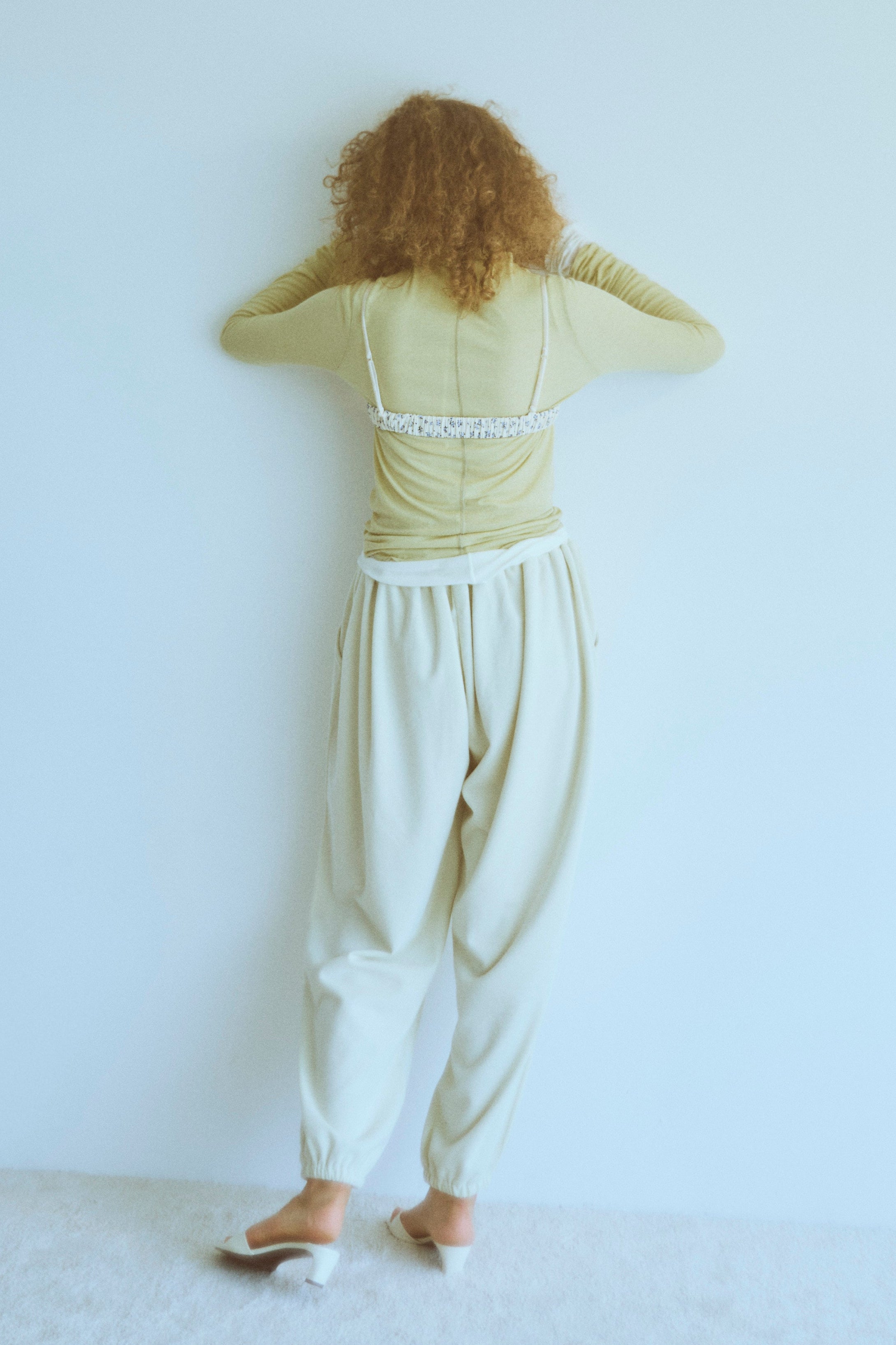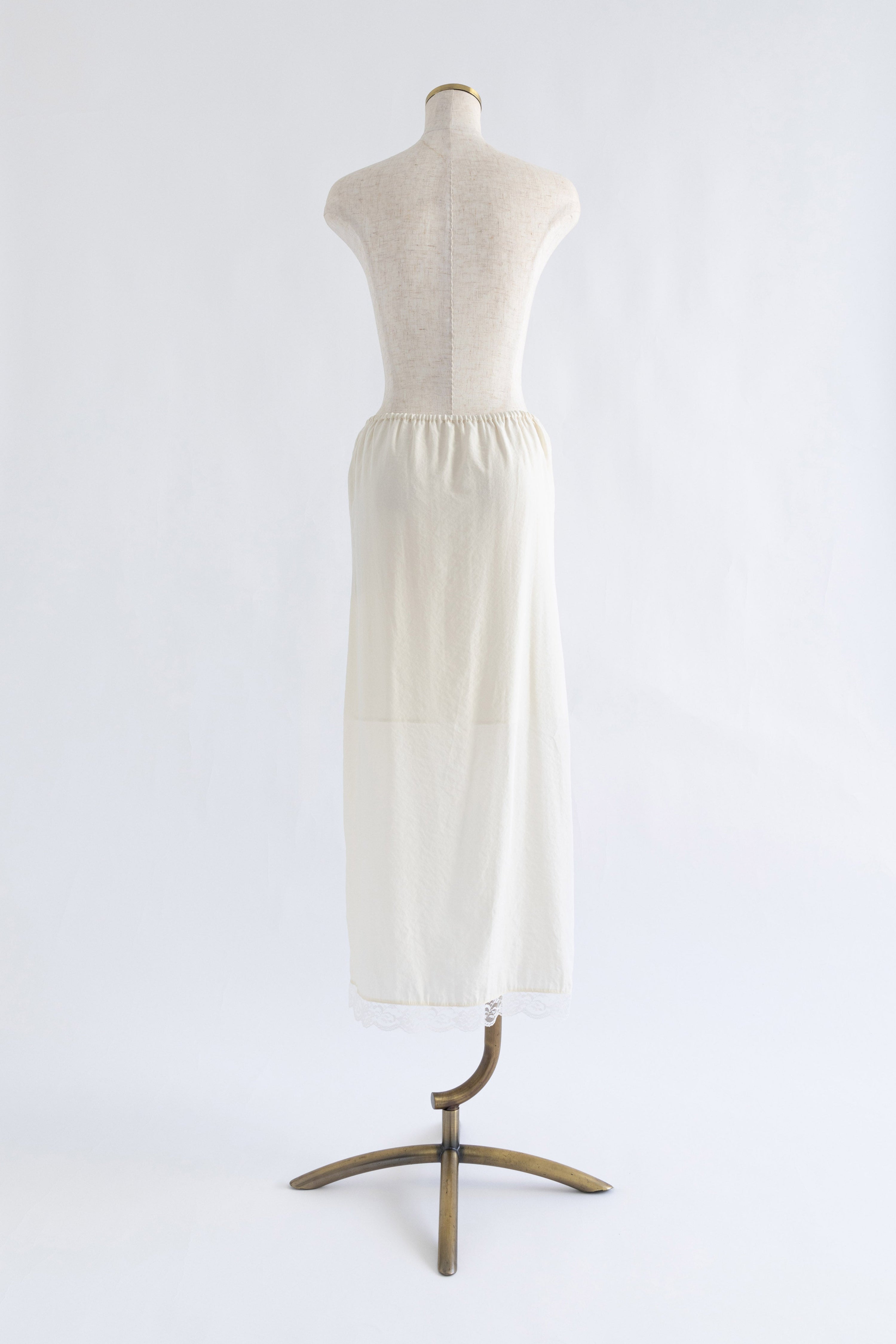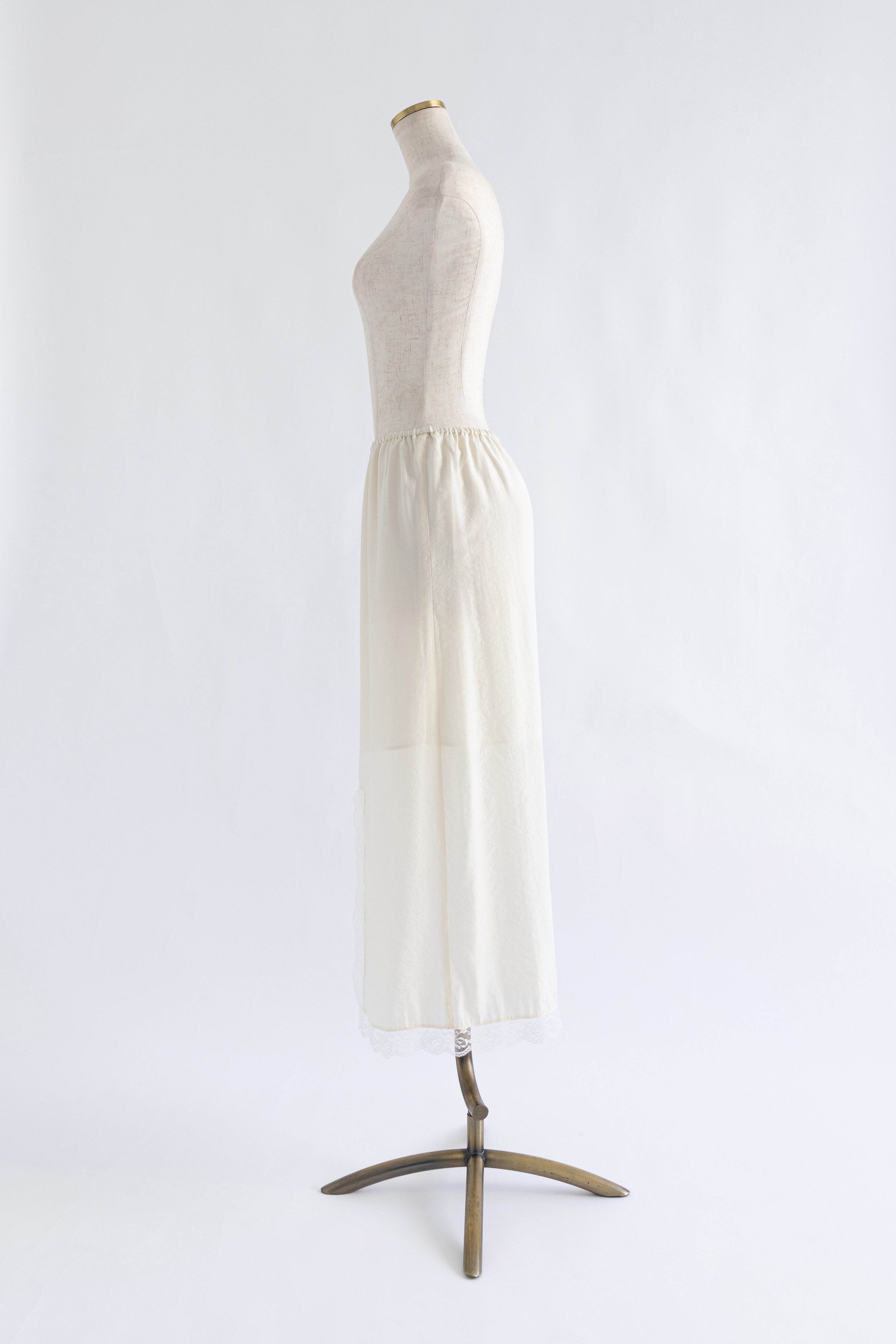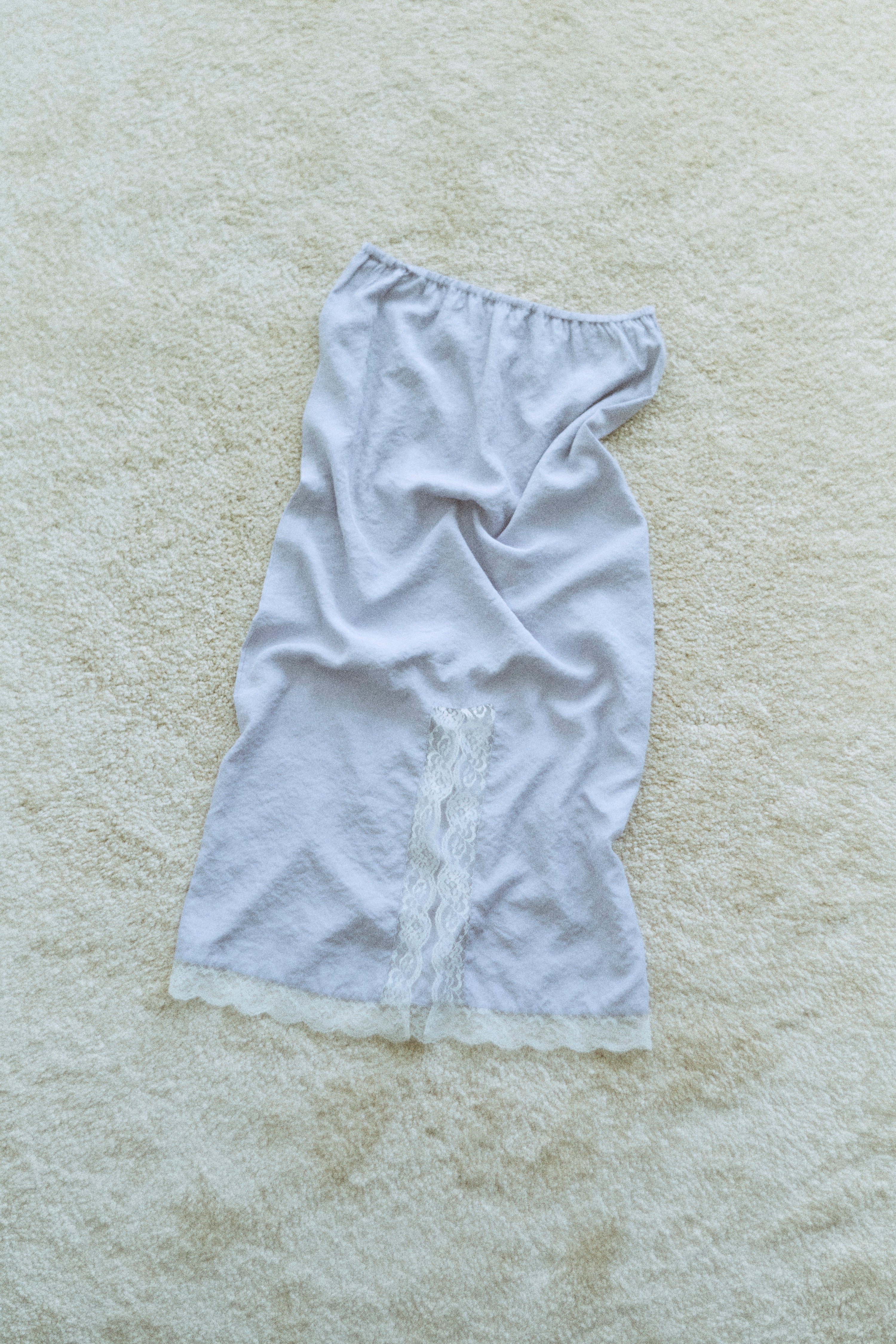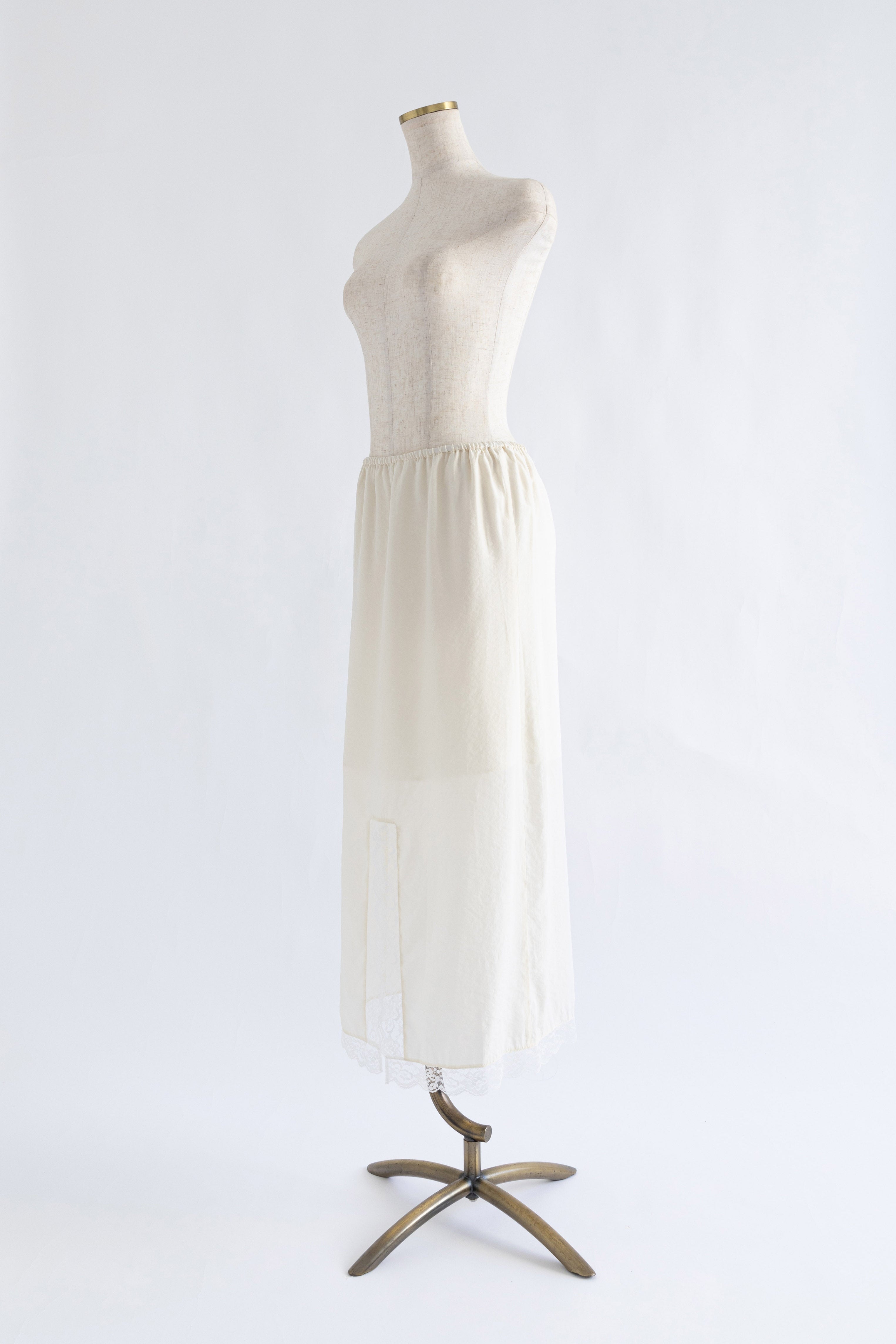 繊細なレースをあしらったヴィンテージライクなサテンスカート 【Material】 ヴィンテージ感のある柔らかい素材感で、軽やかで繊細な印象のスカート。 奥行きのある表情を引き立て、シーズンを問わず着用でき、上品な光沢が自然な華やかさを演出します。 【Design】 裾からスリットに施したレースやニュアンスカラーが甘くなりすぎず、日常に取り入れやすい上品なスカートに仕上げました。すっきりとしたシルエットに、レースを効かせたデザインが魅力です。 スリットは前がデフォルトのデザインではありますが、合わせるお洋服や気分によって後ろにして着用頂くことが可能です。 ウエストはゴム仕様にしているのでラフな着心地も魅力です。 【Styling point】 Tシャツやスウェットを合わせ、抜け感をプラスすればこなれたバランスに。ブラウスやヒールを合わせれば、女性らしさが引き立つきれいめスタイルにもシフトできます。 パンツにレイヤードしていただくこともできるので、これ一枚でスタイリングの幅がぐんと広がります。