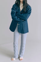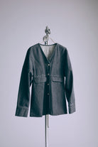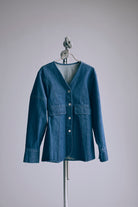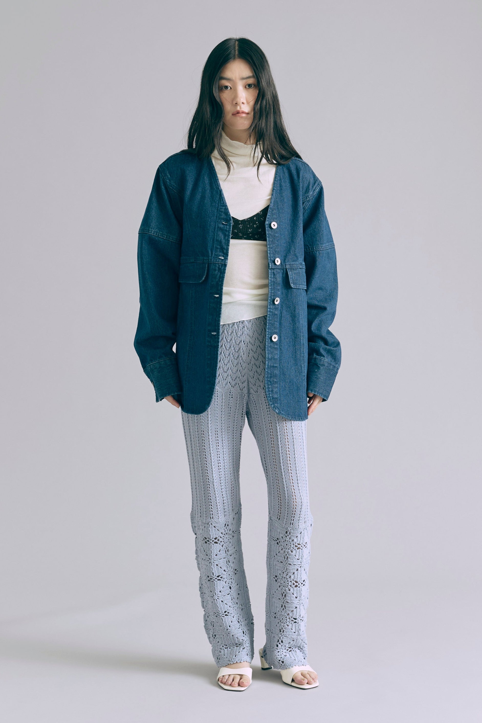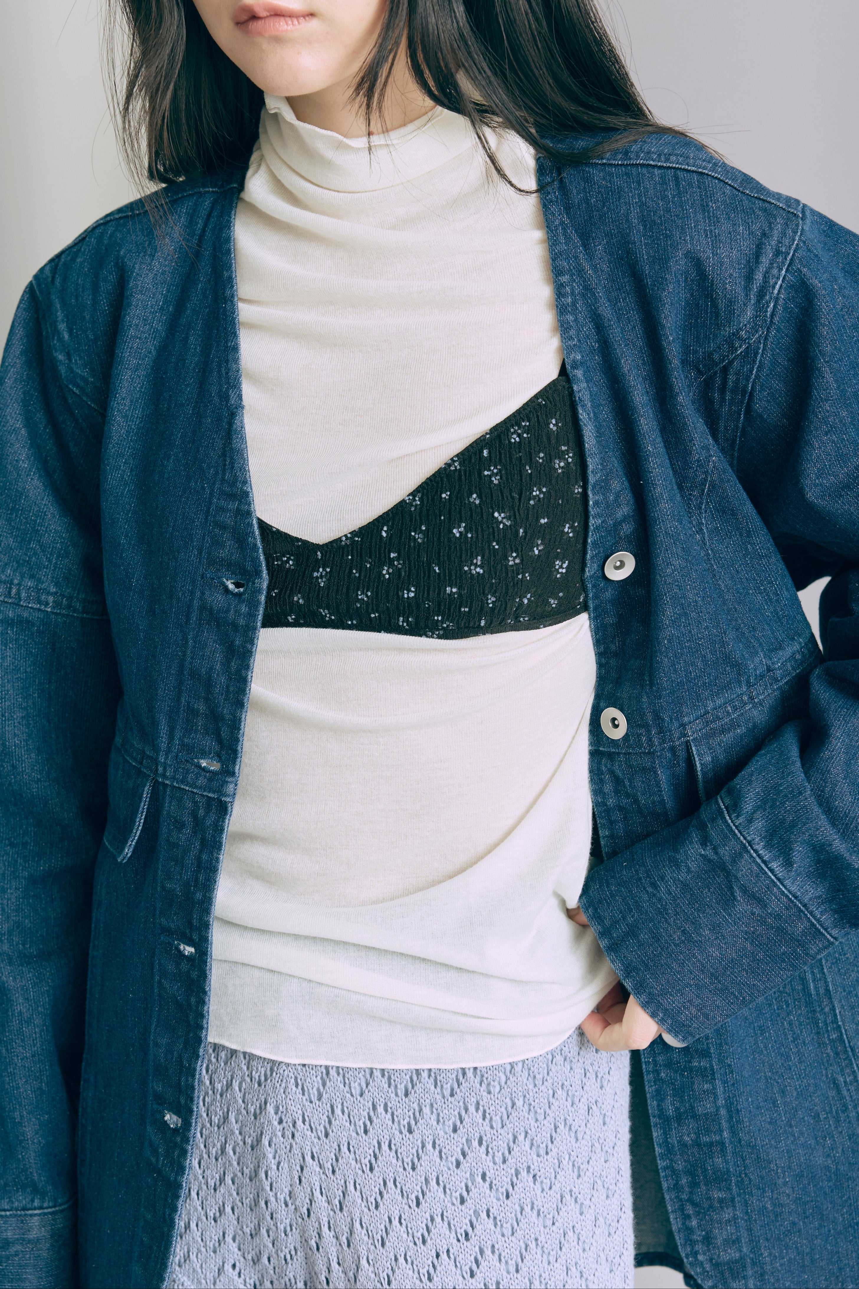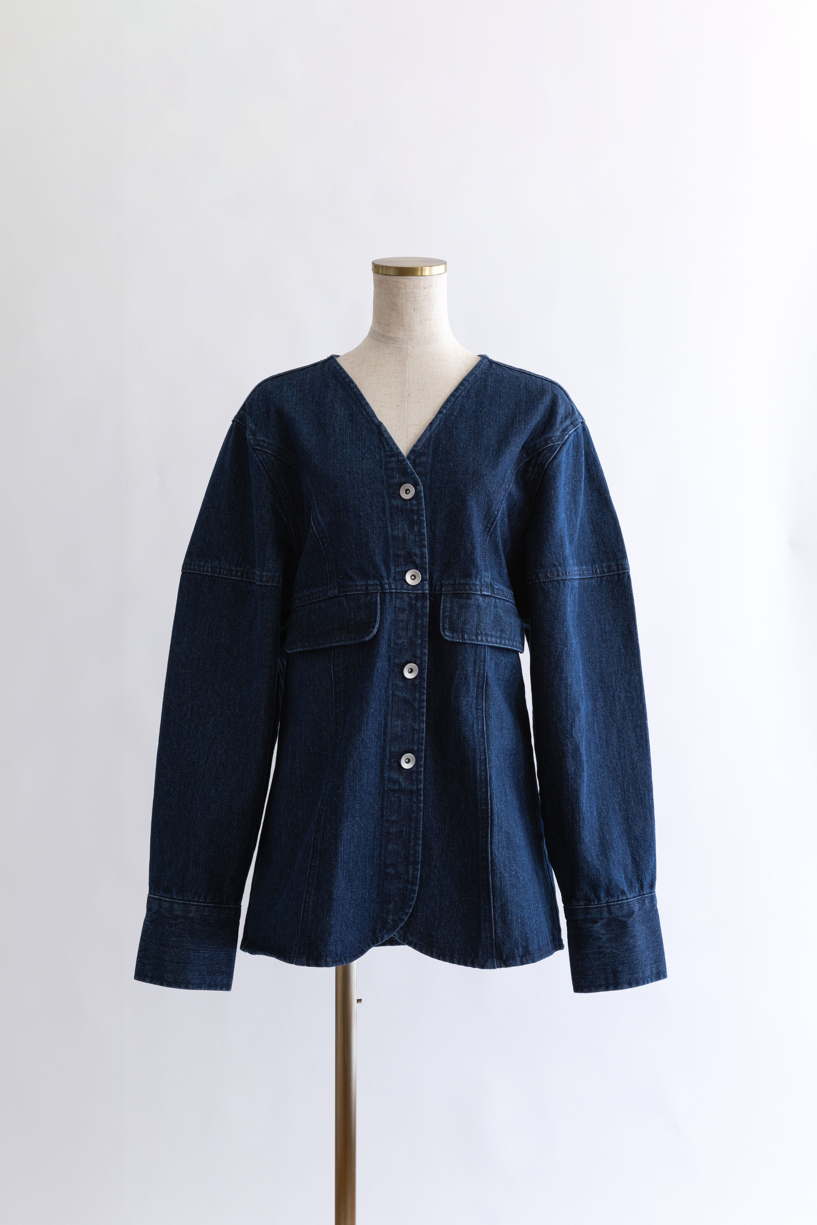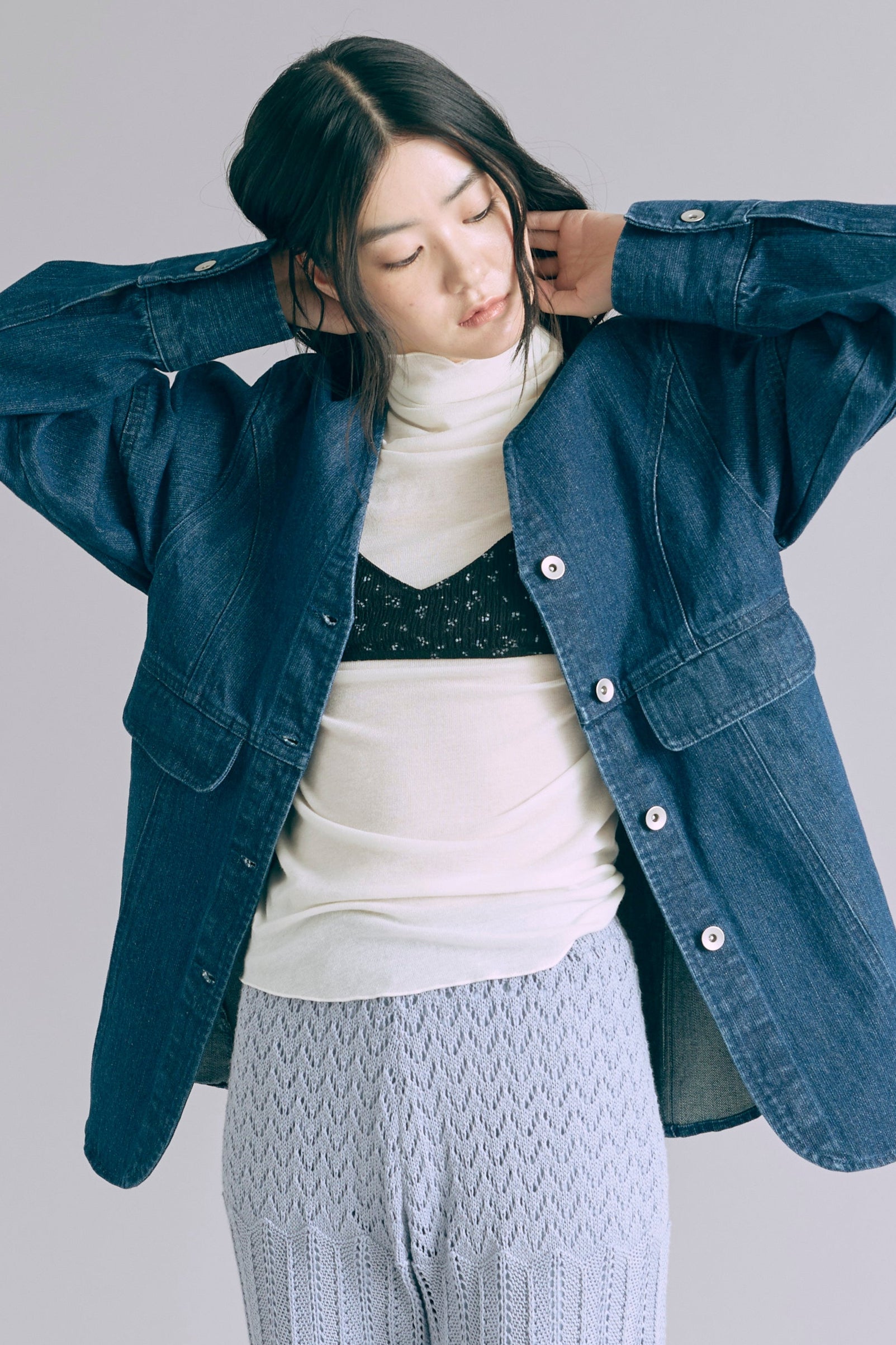 羽織るだけで決まるデニムジャケット 【Material】 程よい厚みとハリ感を持つデニム素材。 型崩れしにくく、長く愛用できる一着です。着込むほどに柔らかさと風合いが増すアイテム。 【Design】 ベーシックなシルエットに計算されたフォルムが特徴で、シルエットが美しく見えるように仕上げました。カジュアルになりがちなデニムですが、デザイン性が高いため、ラフに羽織っても洗練された印象に。 【Styling point】 同素材のデニムジレとセットで着用するのがおすすめ。Tシャツやスウェットと合わせた王道カジュアルスタイルはもちろん、ミニ丈のスカートやパンツと組み合わせれば程よく甘さを加えた大人カジュアルにも。 スニーカーやブーツとも好相性です。 ◇同素材で下記ご用意しております。 OConvertible Denim Gilet(品番:91035)