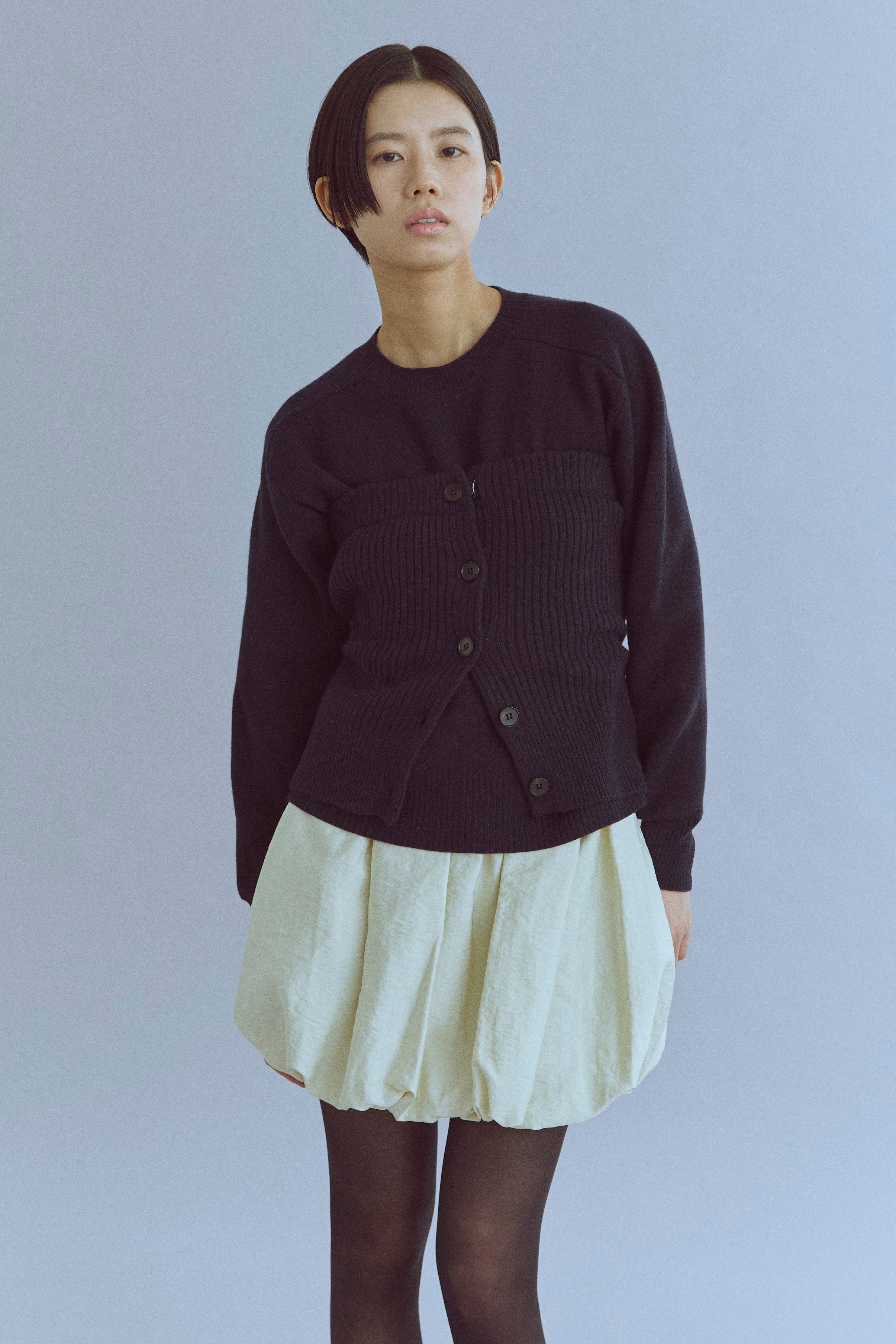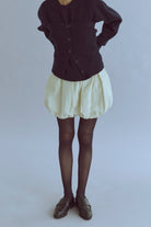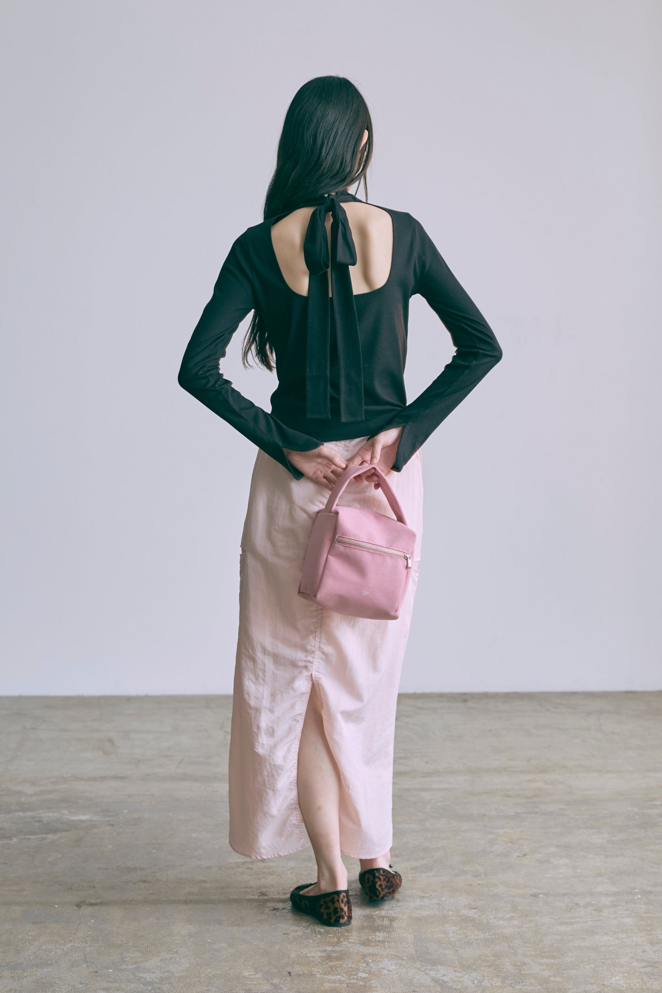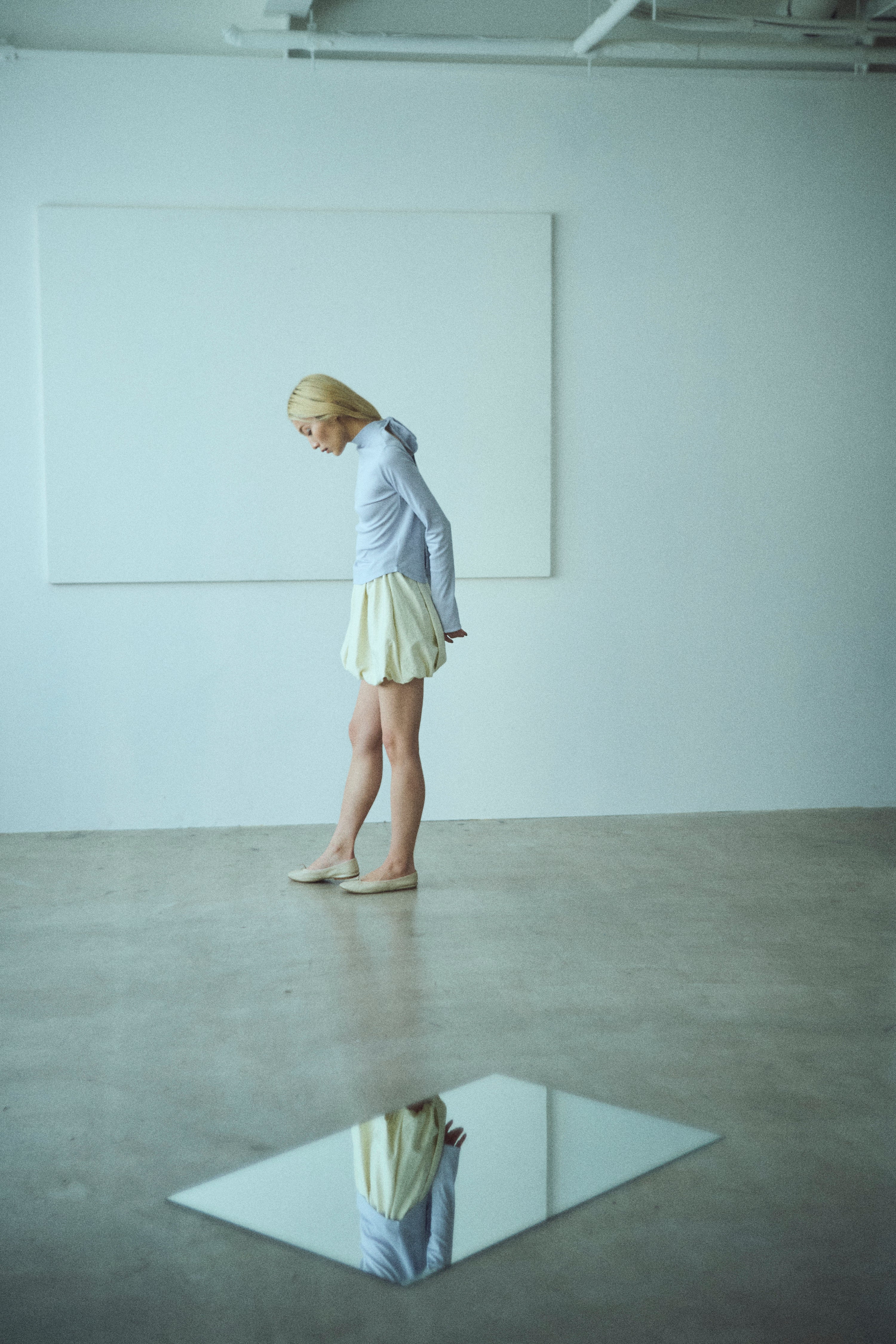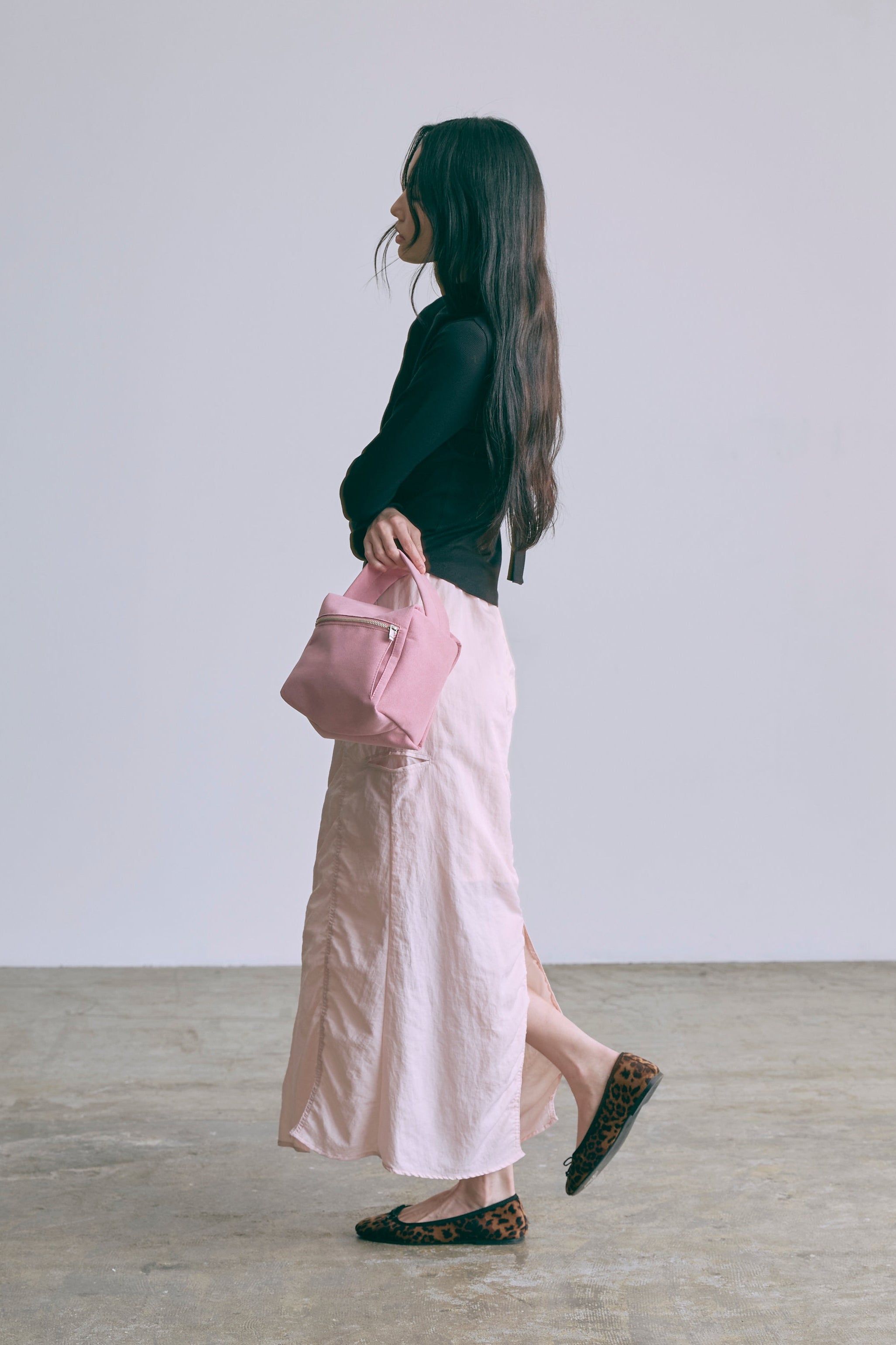ふんわりとした丸みとモードな素材感がMIXされたバルーンミニスカート 【Material】 少しぬめり感のあるナイロン素材を使用し、フェミニンすぎない絶妙なカラーで仕上げました。軽やかな素材がモードな雰囲気を引き立てます。 【Design】 ウエストはドローストリングでサイズ調整が可能。シンプルなバルーンデザインに加え、ウエストからタックを入れることで立体的なシルエットを実現。ふんわりとした丸みとモードな印象を同時に楽しめます。 【Styling point】 クラシカルなジャケットやカジュアルなカットソーとの相性も良く、ミックススタイルを楽しめる一着です。デイリーからお出かけまで、幅広いシーンで活躍するコーディネートにおすすめです。