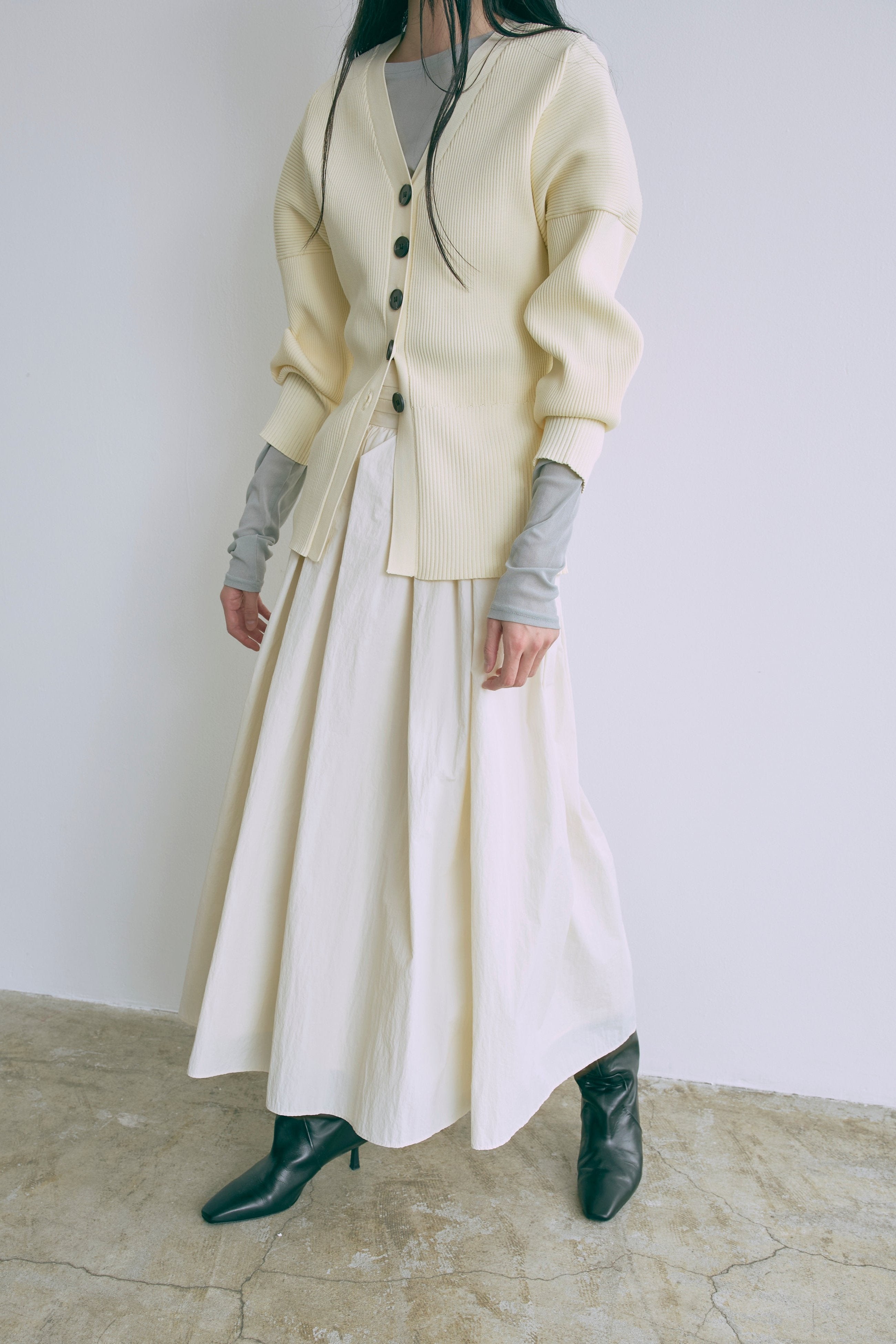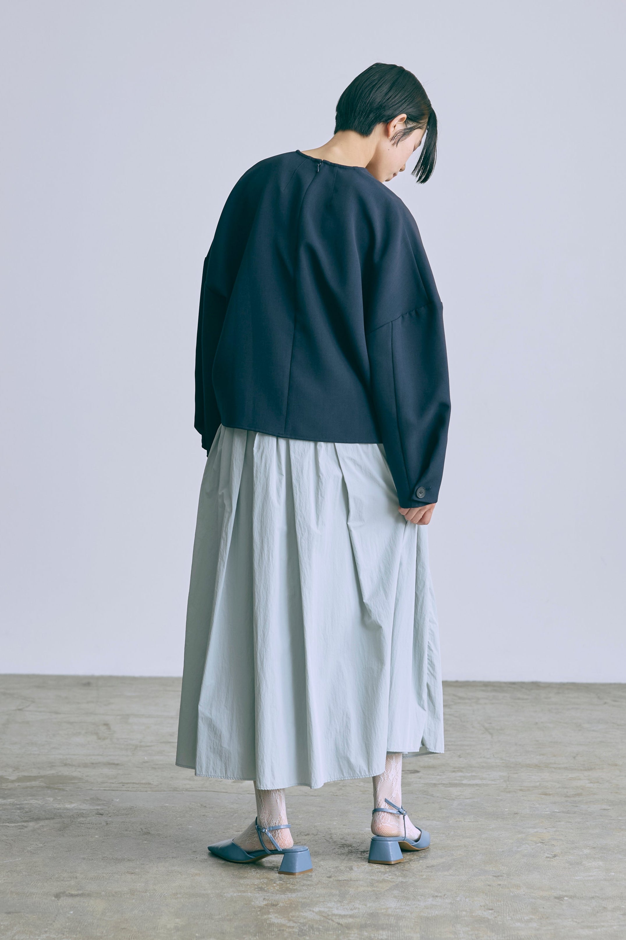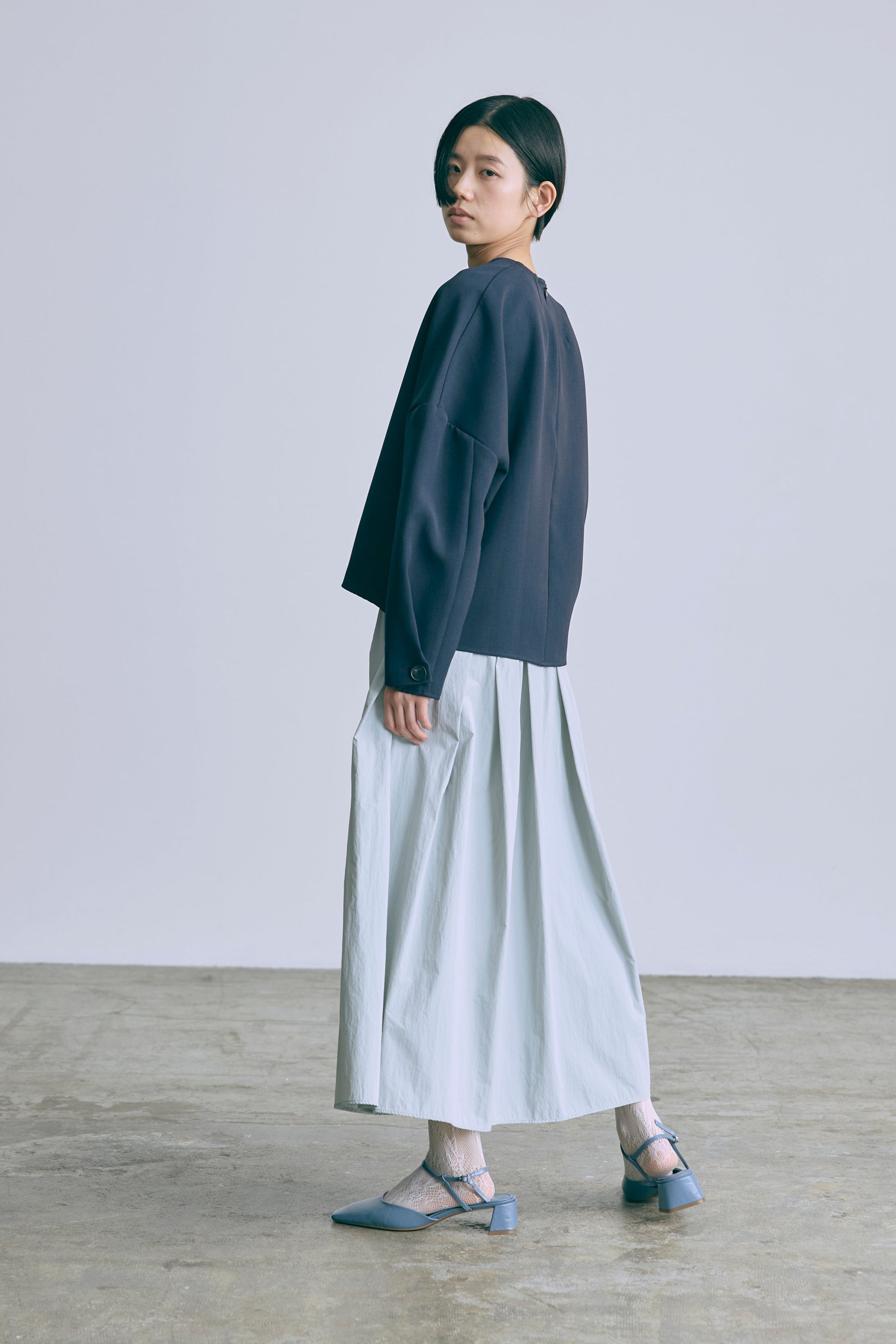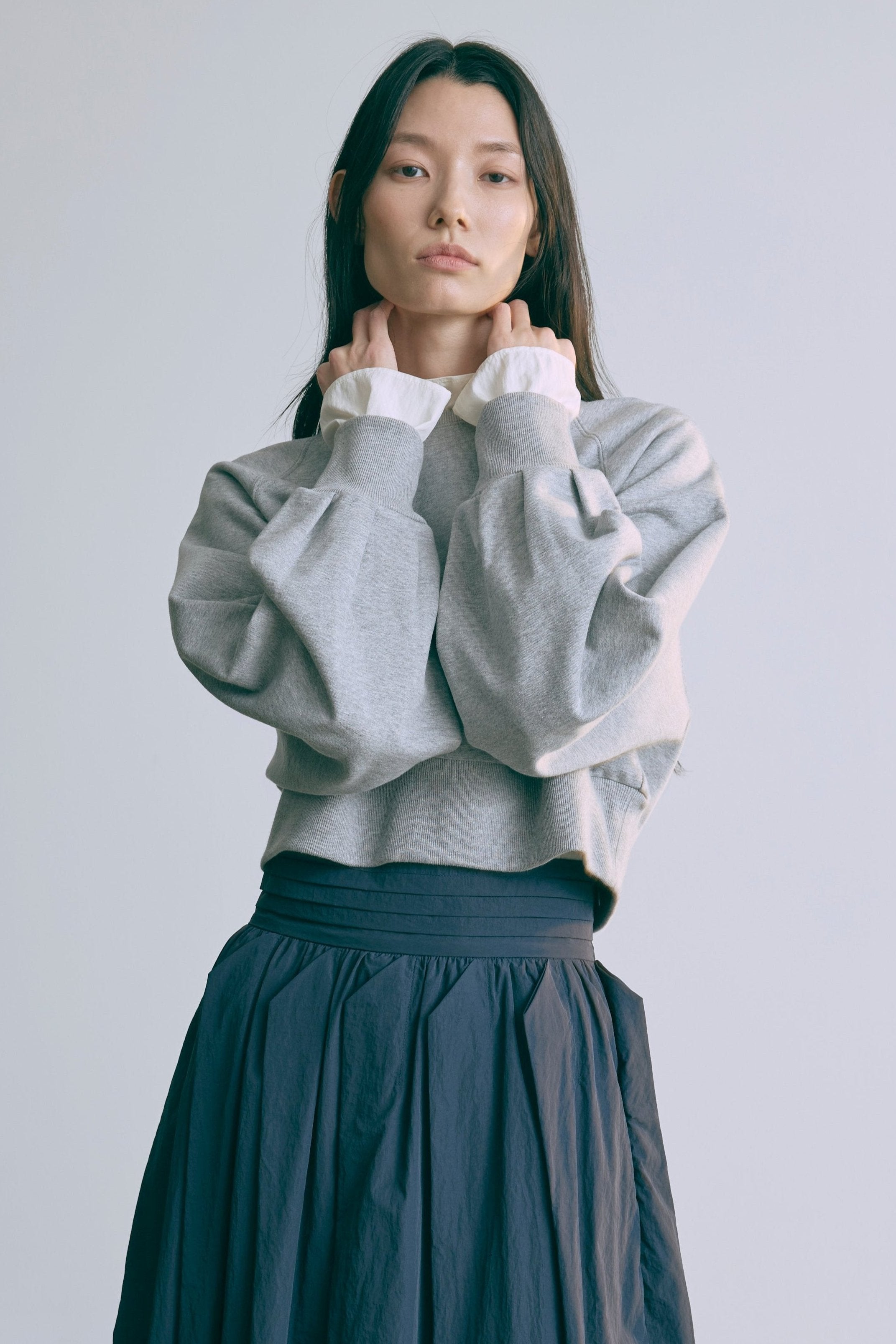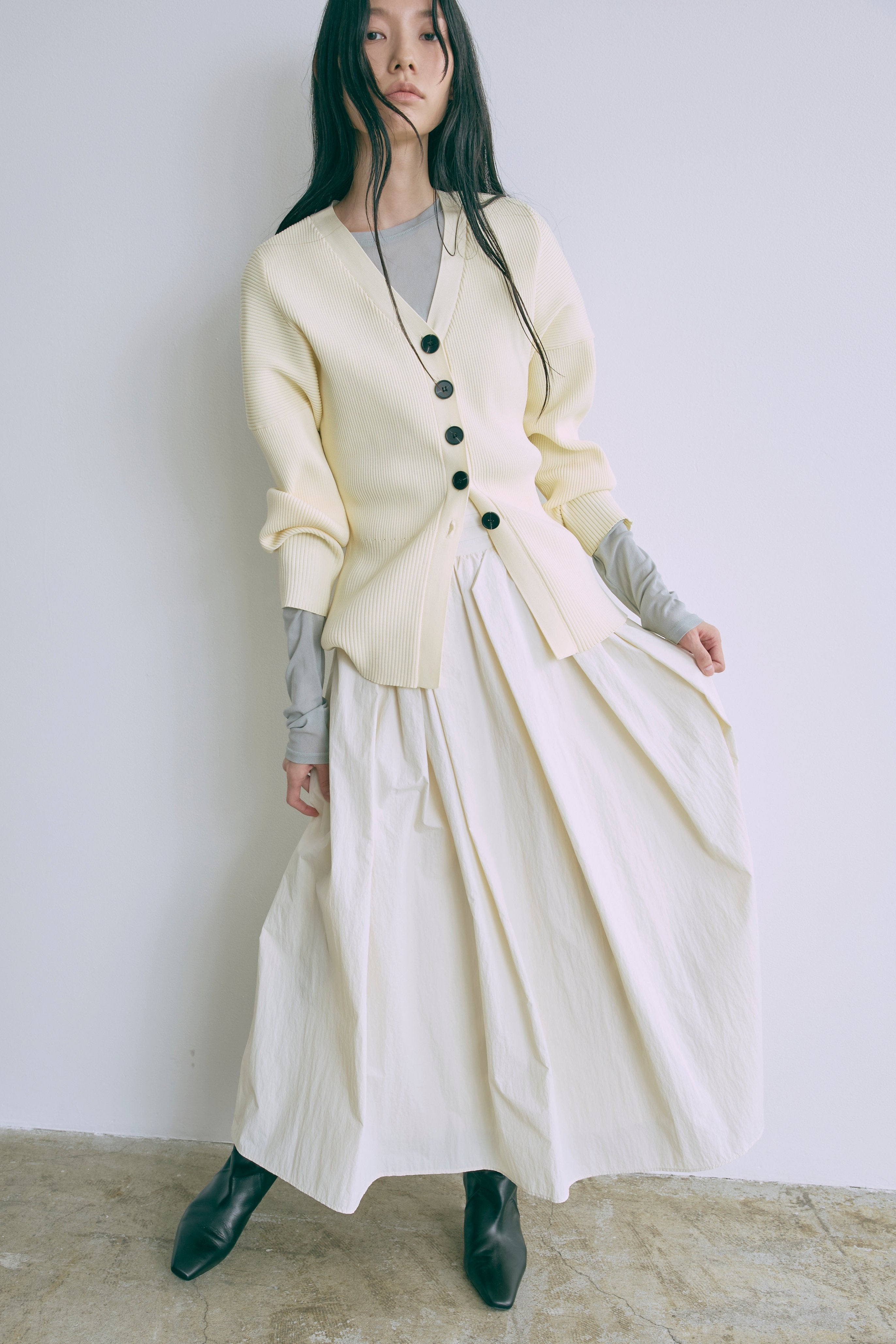 2WAYで楽しめる縦長ホールデザインのニットプルオーバー 【Material】 コットン混素材を使用したさらっとした着心地が魅力のニット。季節を問わずロングシーズンで活躍します。 【Design】 フロント中央に縦長のホールが入ったデザインがポイント。ホール部分を背中側にしてシンプルに着こなすこともできる2WAY仕様です。飾りボタンがアクセントになっており、今年らしい抜け感を演出。一枚で華やかさが際立つアイテムです。 【Styling point】 すっきりとしたシルエットで、ワイドパンツやボリュームのあるボトムスとも相性抜群。ジャケットのインナーとしても合わせやすく、さまざまなコーディネートに取り入れやすいデザインです。