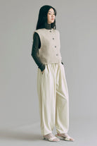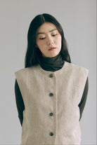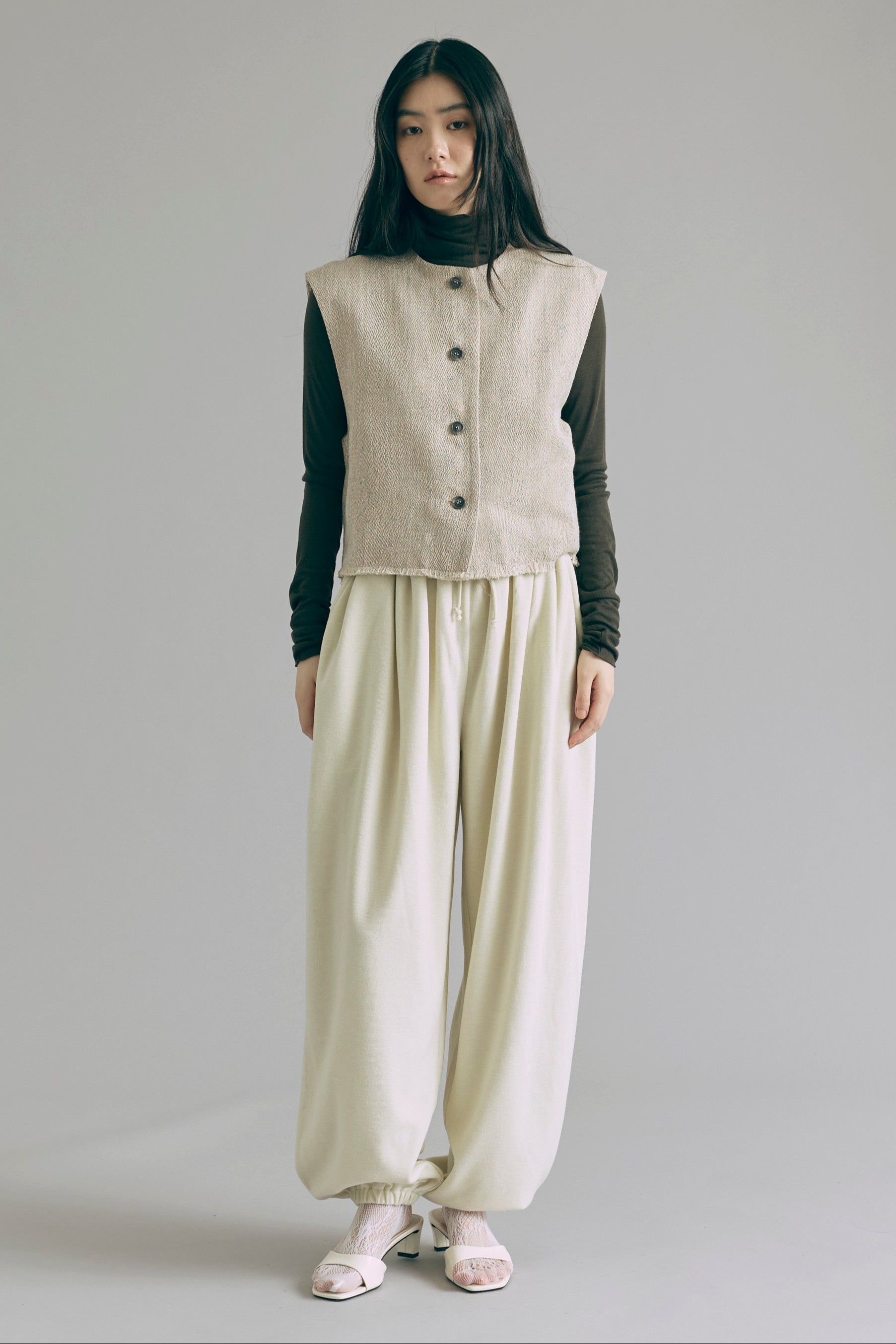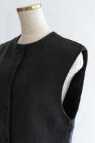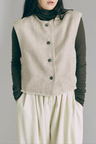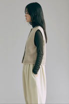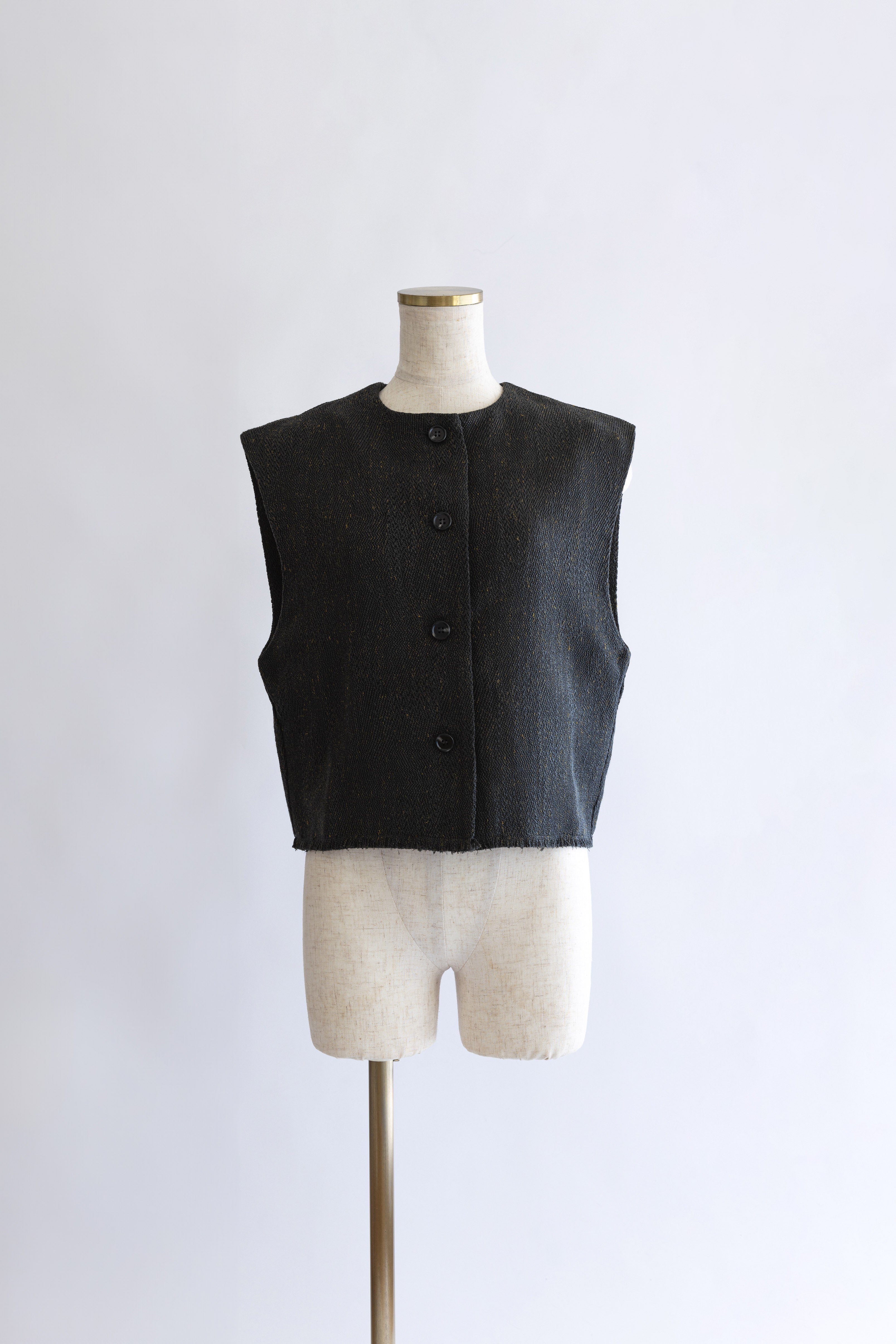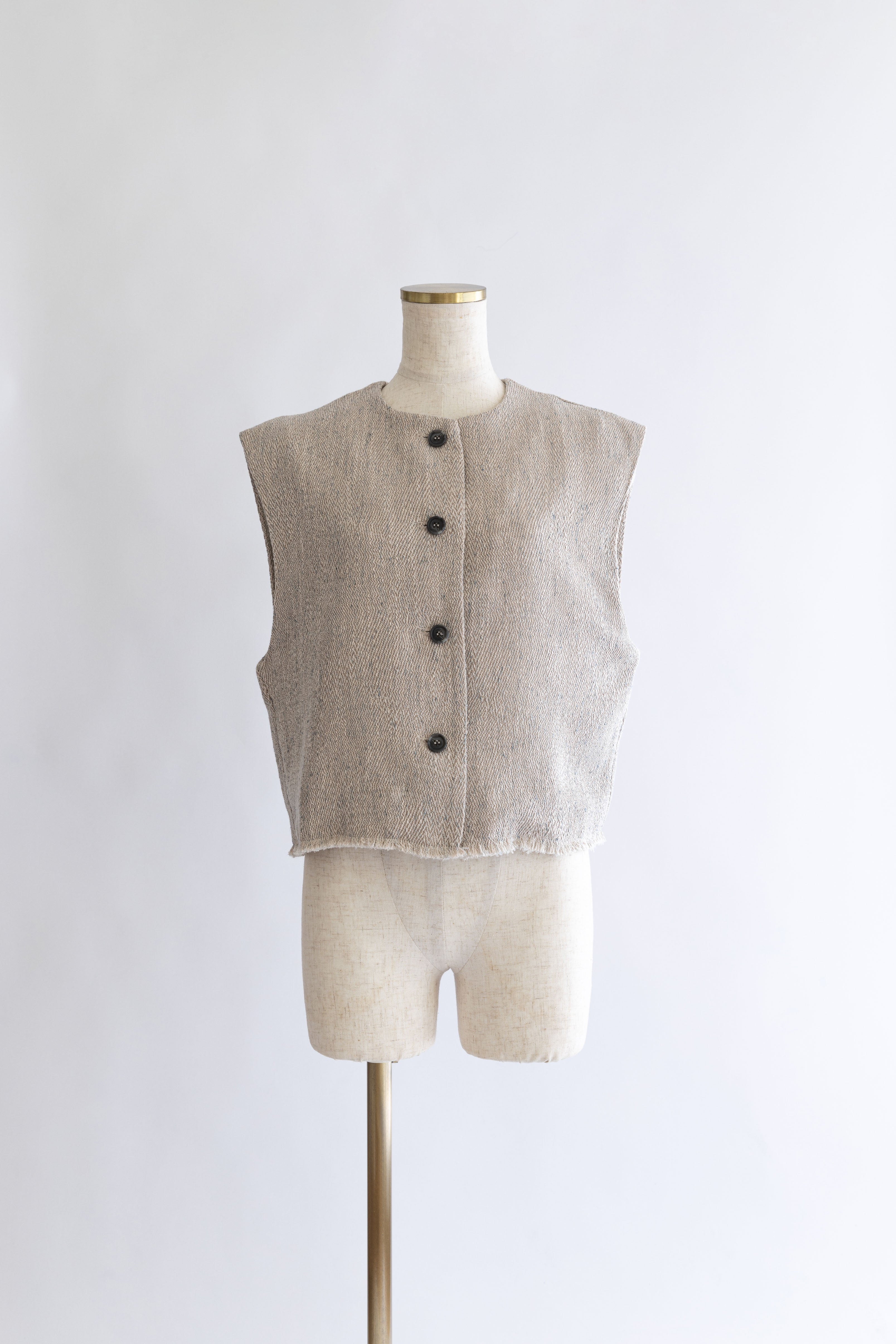 オンオフ問わず使えて着回し自在 【Material】 ツイード素材をベースに、程よい厚みと軽やかさを兼ね備えた生地を使用しています。重たくなりがちなツイードながら、柔らかな質感で動きやすく、季節の変わり目にも心地よく着られるのが魅力です。 【Design】 短めのクロップド丈が、シルエット全体をすっきりと引き締めスタイルアップ効果に◎ 一枚プラスするだけでコーディネートの幅が広がります。 【Styling point】 タートルネックやシャツとレイヤードし、ジレを主役にしたスタイリングはもちろん、アウターのインナーとしても活躍してくれます。一枚持っておくとシーズンを通して重宝すること間違いなしです。