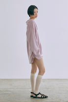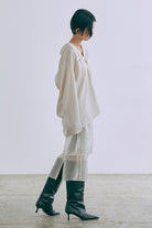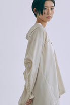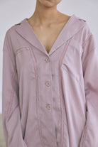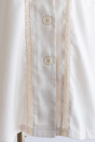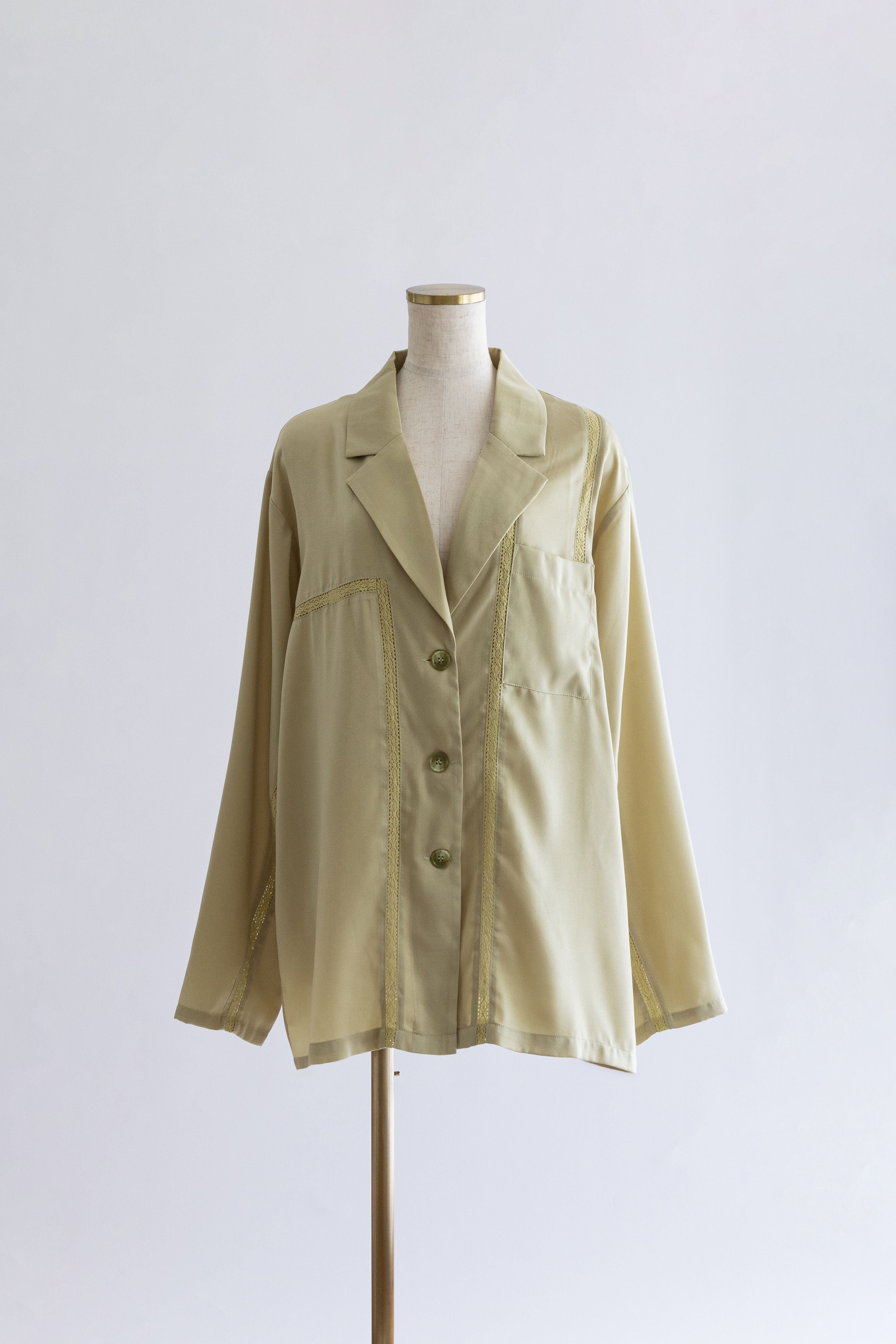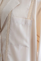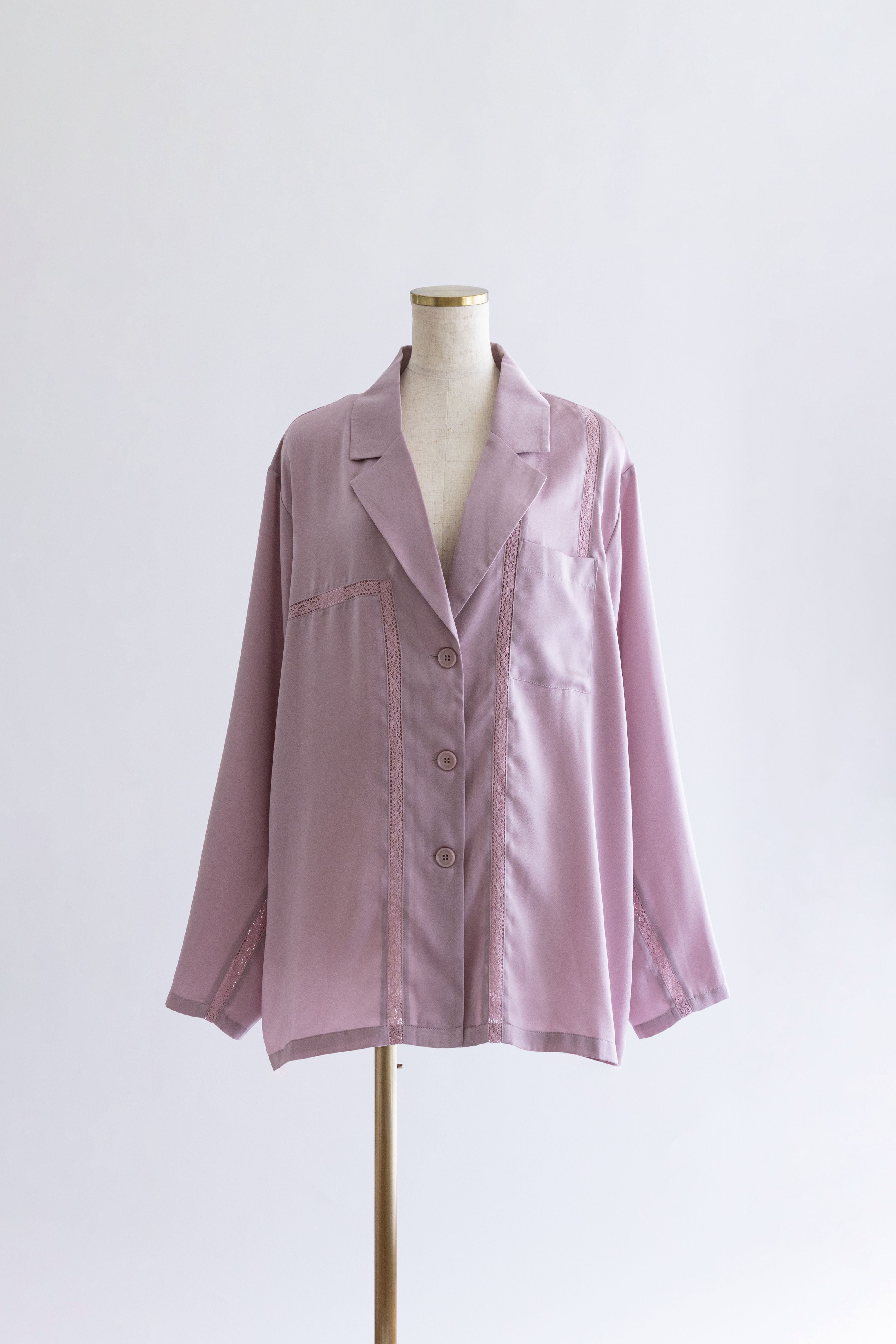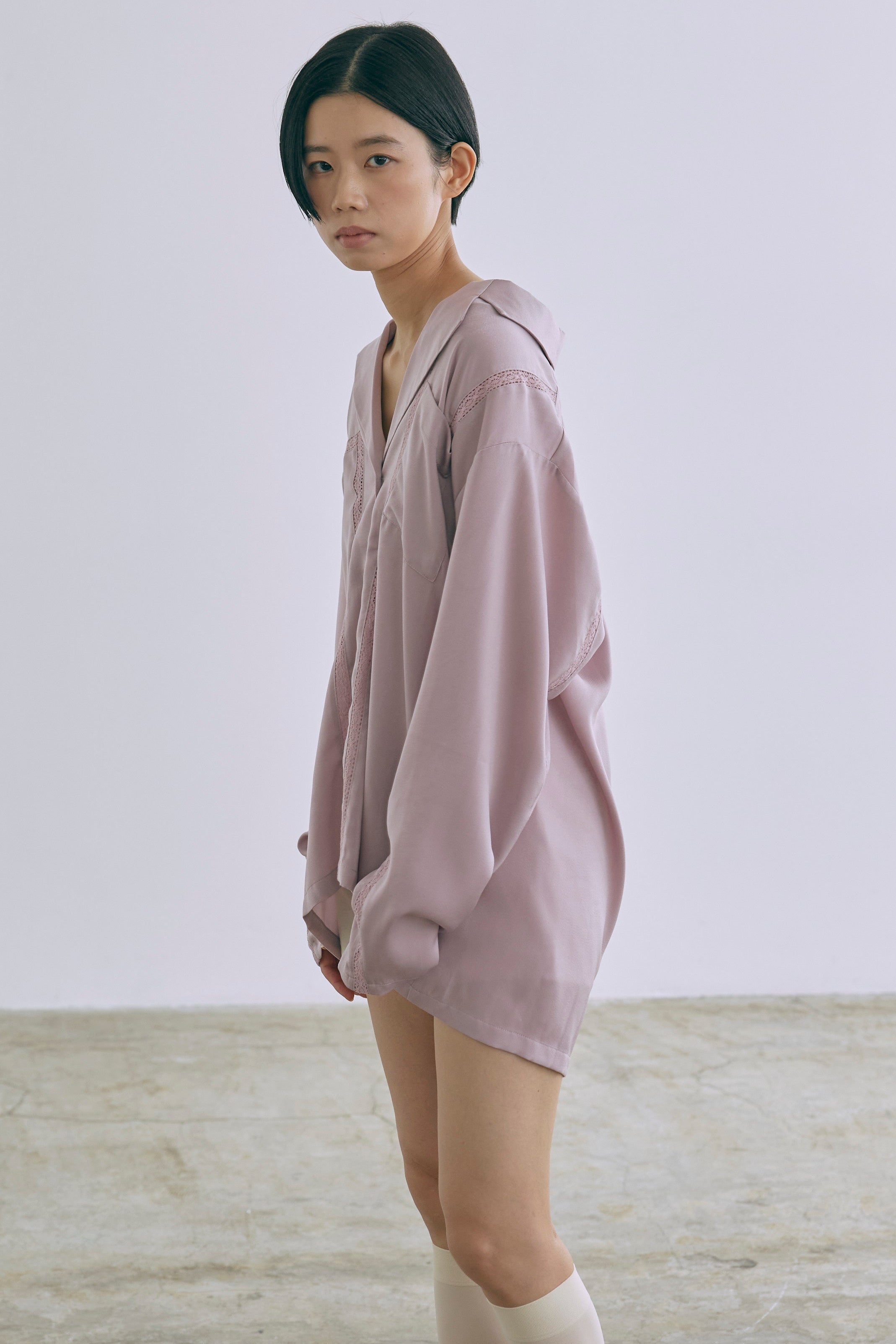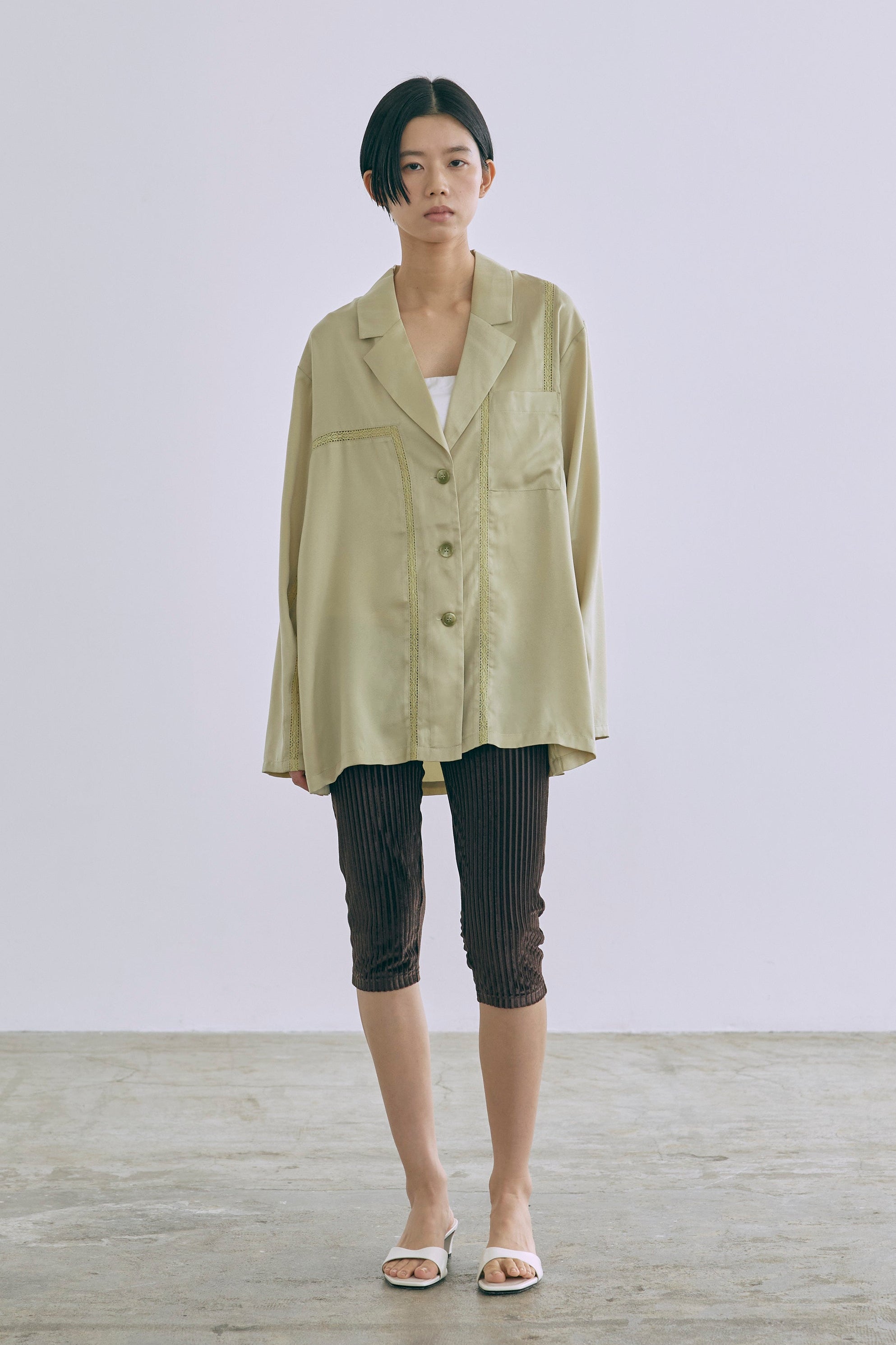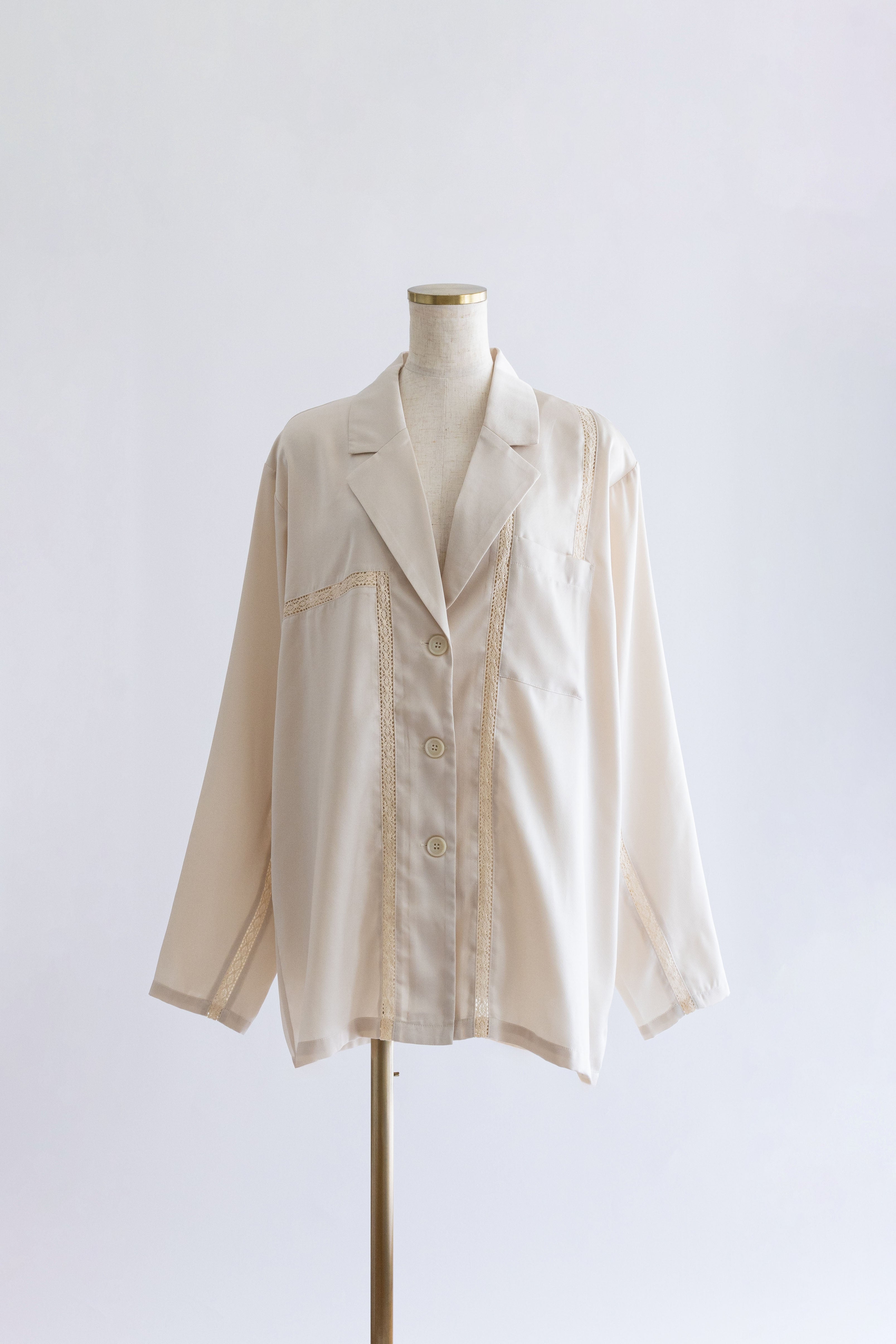 イレギュラーなレーストリムが目を引く、洗練されたシャツジャケット 【Material】 光沢のあるサテン素材を使用した、肌触りの良い滑らかなタッチのシャツジャケットです。 季節の変わり目にも快適に着用できます。 【Design】 シンプルなシャツ型に、フロントや袖にコットンレースを施しています。光沢のあるサテンと異素材のレースが組み合わさることで、上品な可愛らしさを感じるデザインです。 【Styling point】 キャミワンピやタイトスカートに合わせて、より女性らしさをプラスするスタイリングがおすすめです◎ 前ボタンを閉めればきちんと感を出せ、開けて羽織れば抜け感のあるスタイルに。