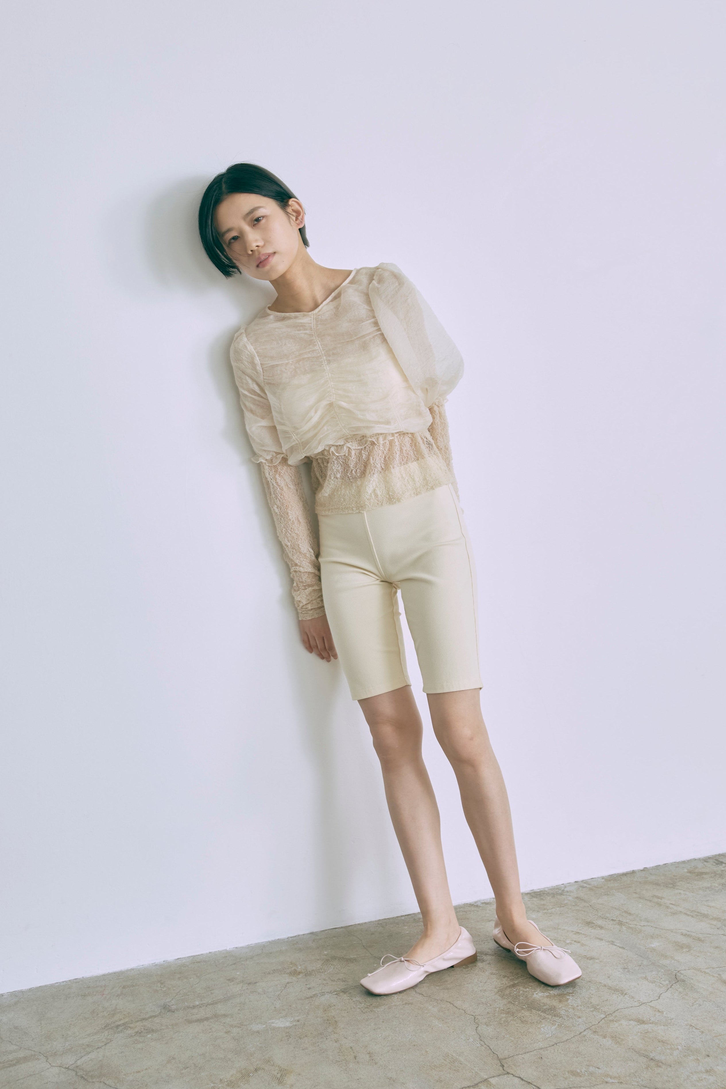 秋冬で大人気だったBiker Leggingsに春夏ver.が登場! 【Material】キックバックがあるリブ素材を使用。清涼感もあるので、真夏にもピッタリです。 【Design】 春夏の軽くなるお洋服の雰囲気に合わせて、秋冬で好評だった Velours Biker Leggingsから少し丈を短くしました。 バランスがよりとりやすくなっていますが、前回 同様体のラインを拾いすぎないような絶妙はサイズ感にこだわっています。 【Styling point】 シアー素材のインナーとして一枚あるとお勧めです。 またシャツやミニワンピース・オーバーサイズのTシャツなどに合わせても抜け感とトレンド感がプラスされるので、本当に使い回しのきく一着です。
