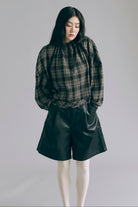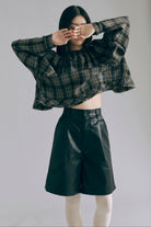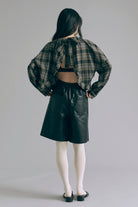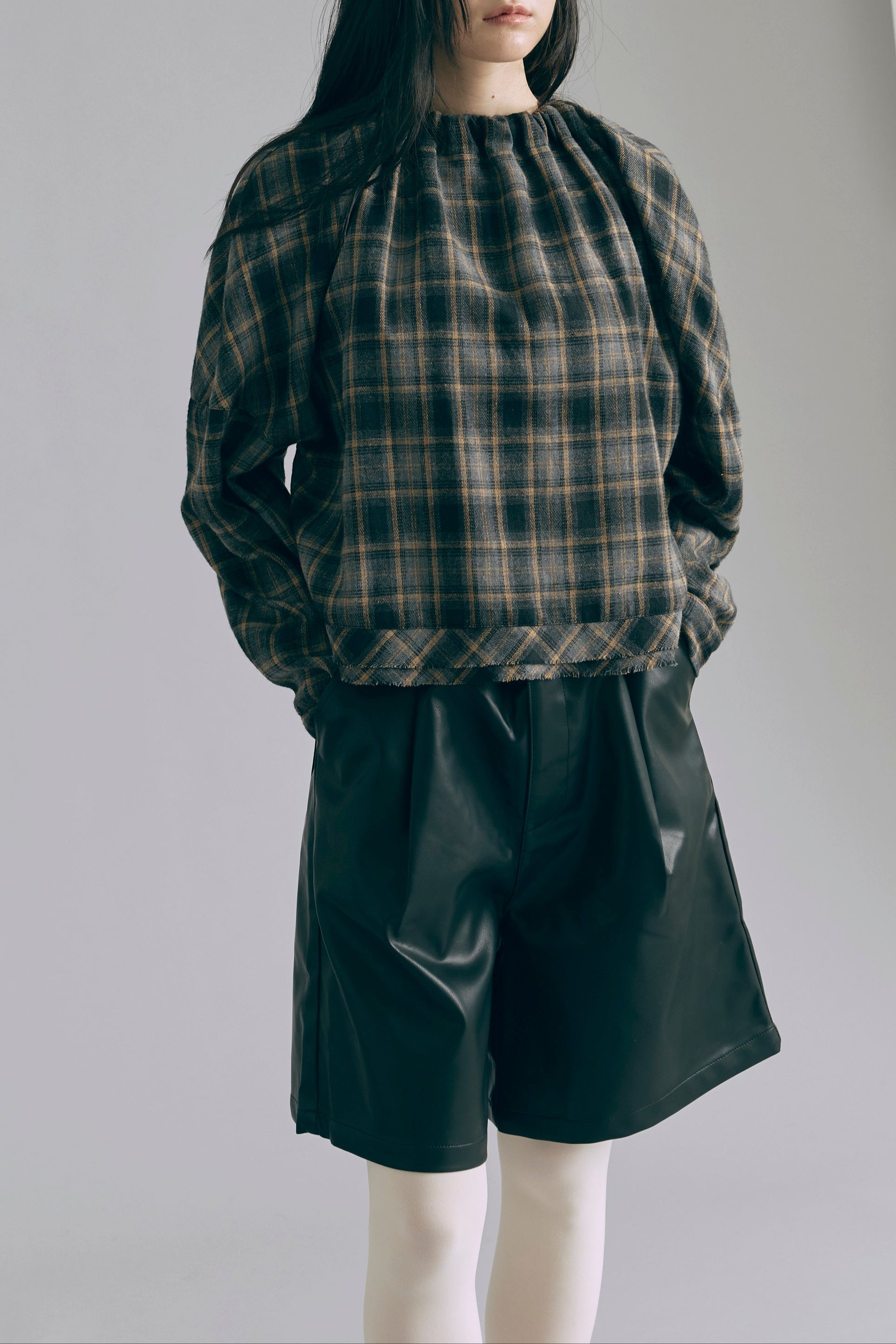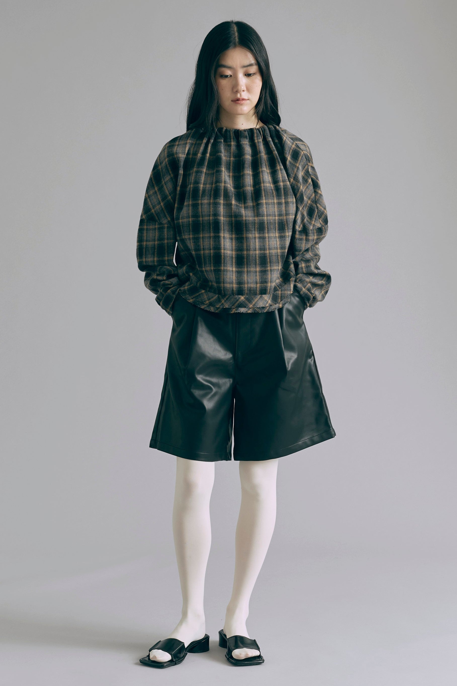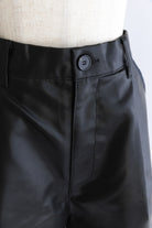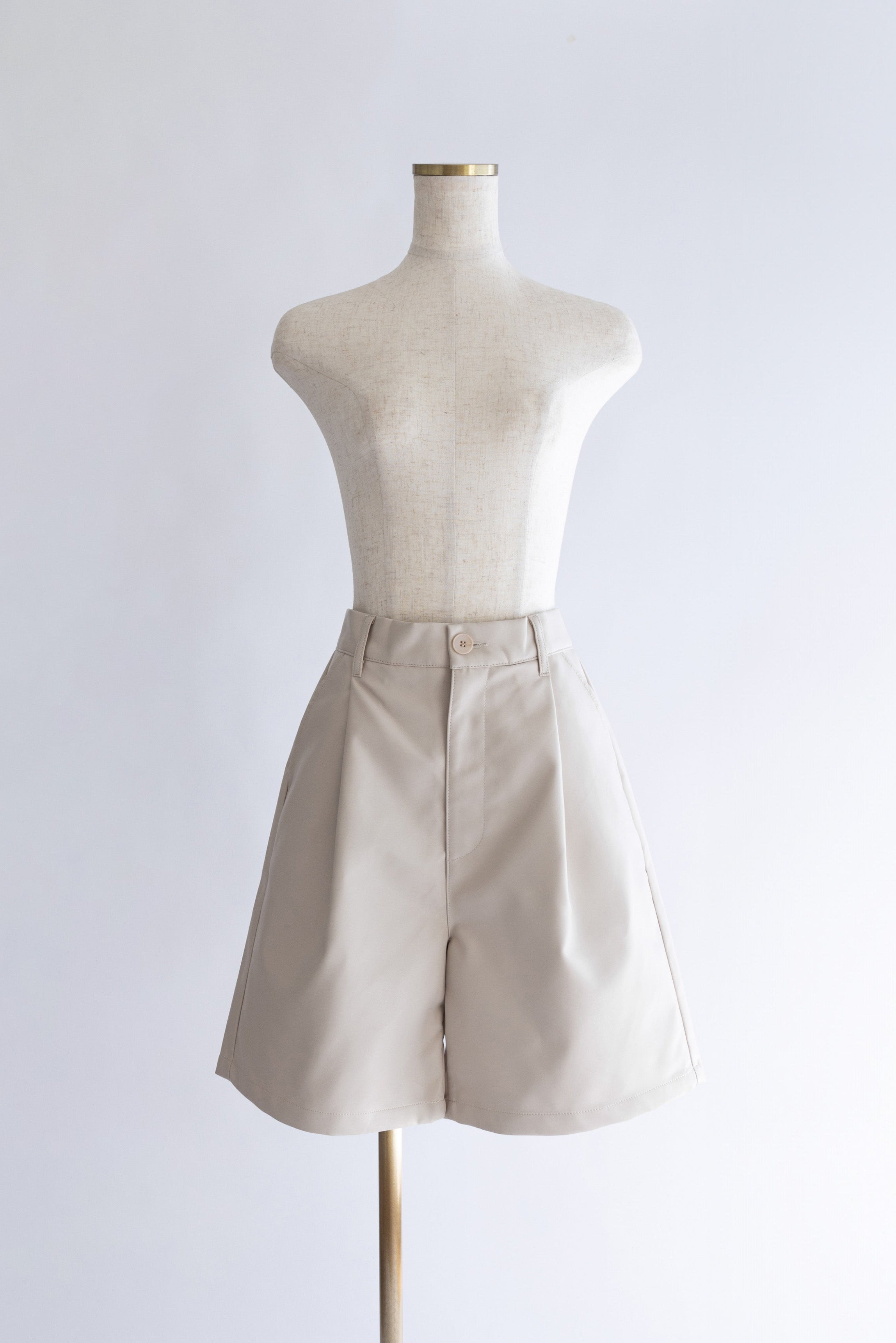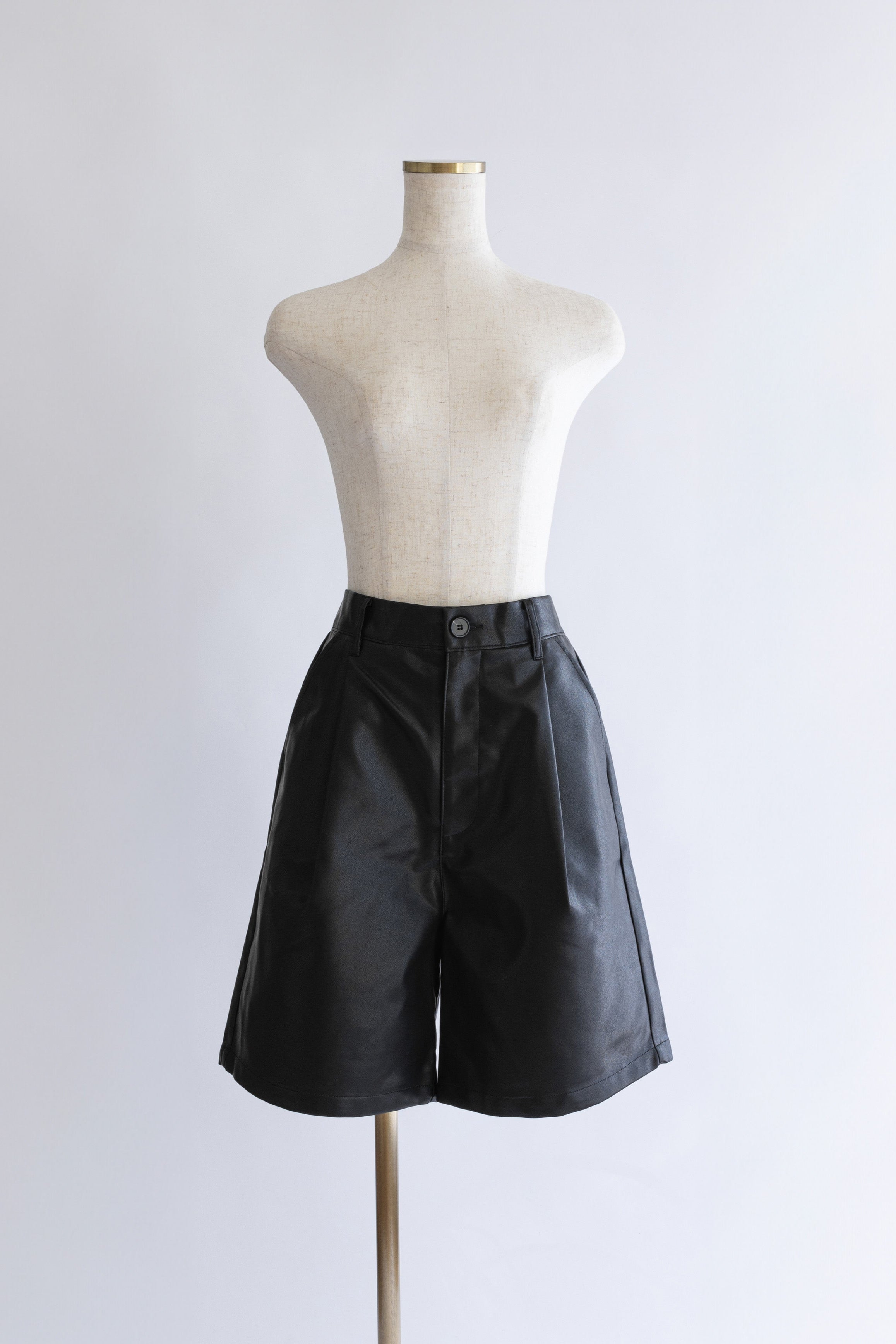 シーズンレスで活躍するシンプルな一着 【Material】 程よい厚みとしなやかさを兼ね備えたフェイクレザーを使用。リアルレザーよりも軽く扱いやすいため、普段使いしやすいのも嬉しいポイント◎ 【Design】 ゆとりを持たせたシルエットですが、ウエスト周りはすっきりとデザインされているため、トップスをインしてももたつかず、きれいなバランスを保てます。 レザー特有の存在感でスタイリングの主役になる一枚。 【Styling point】 コンパクトなトップスと合わせれば、スタイルアップ効果が期待できる着こなしに。秋冬にはタイツやロングブーツと合わせるのがおすすめです。