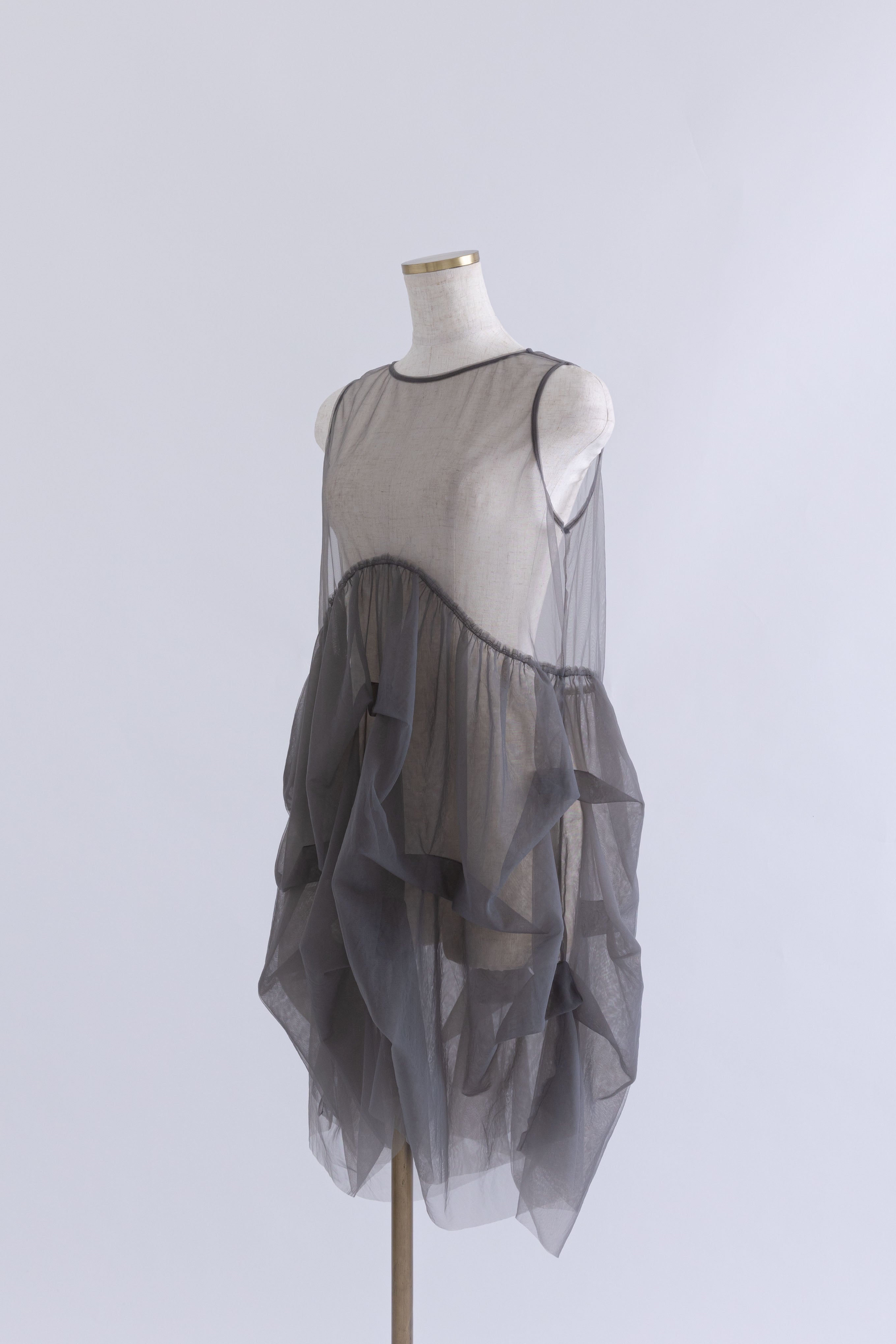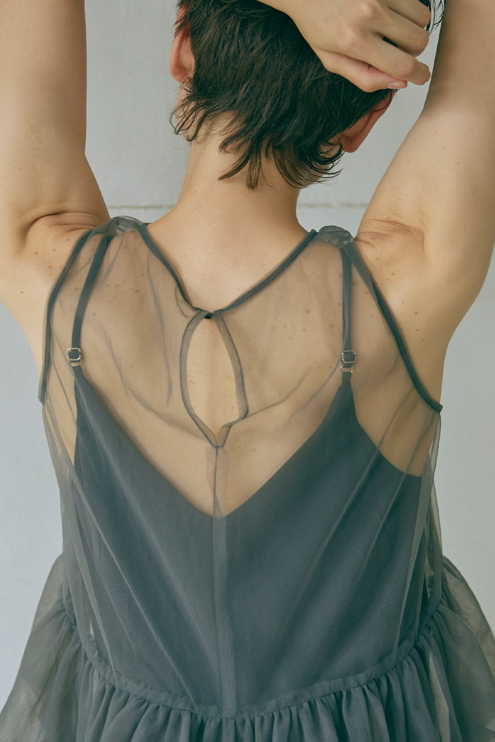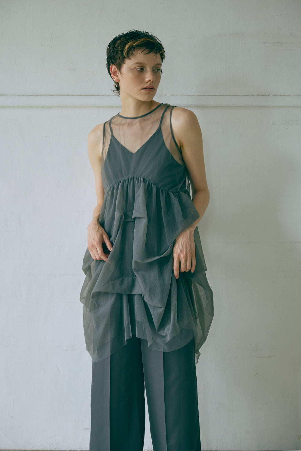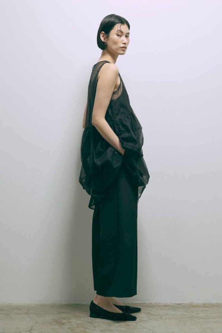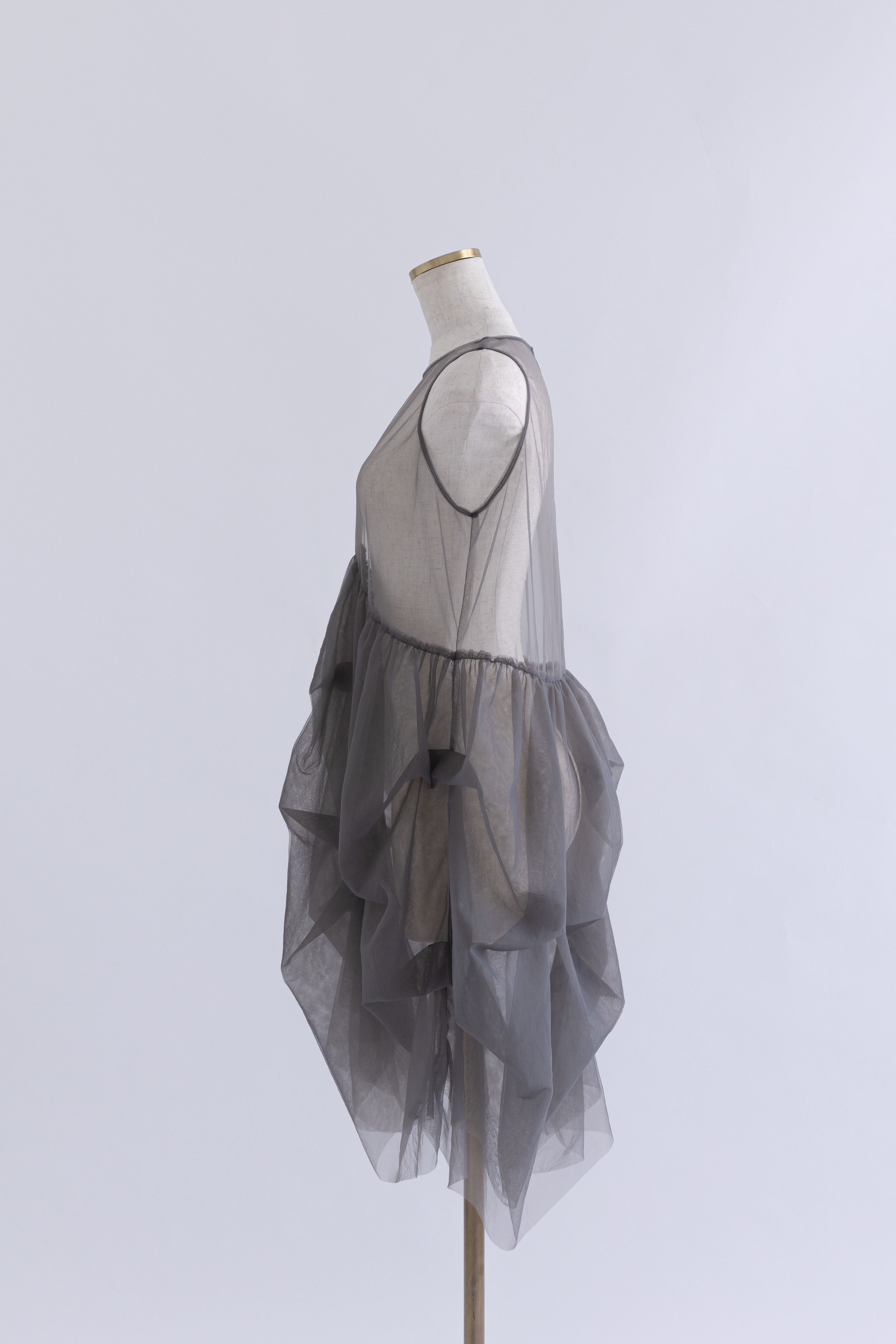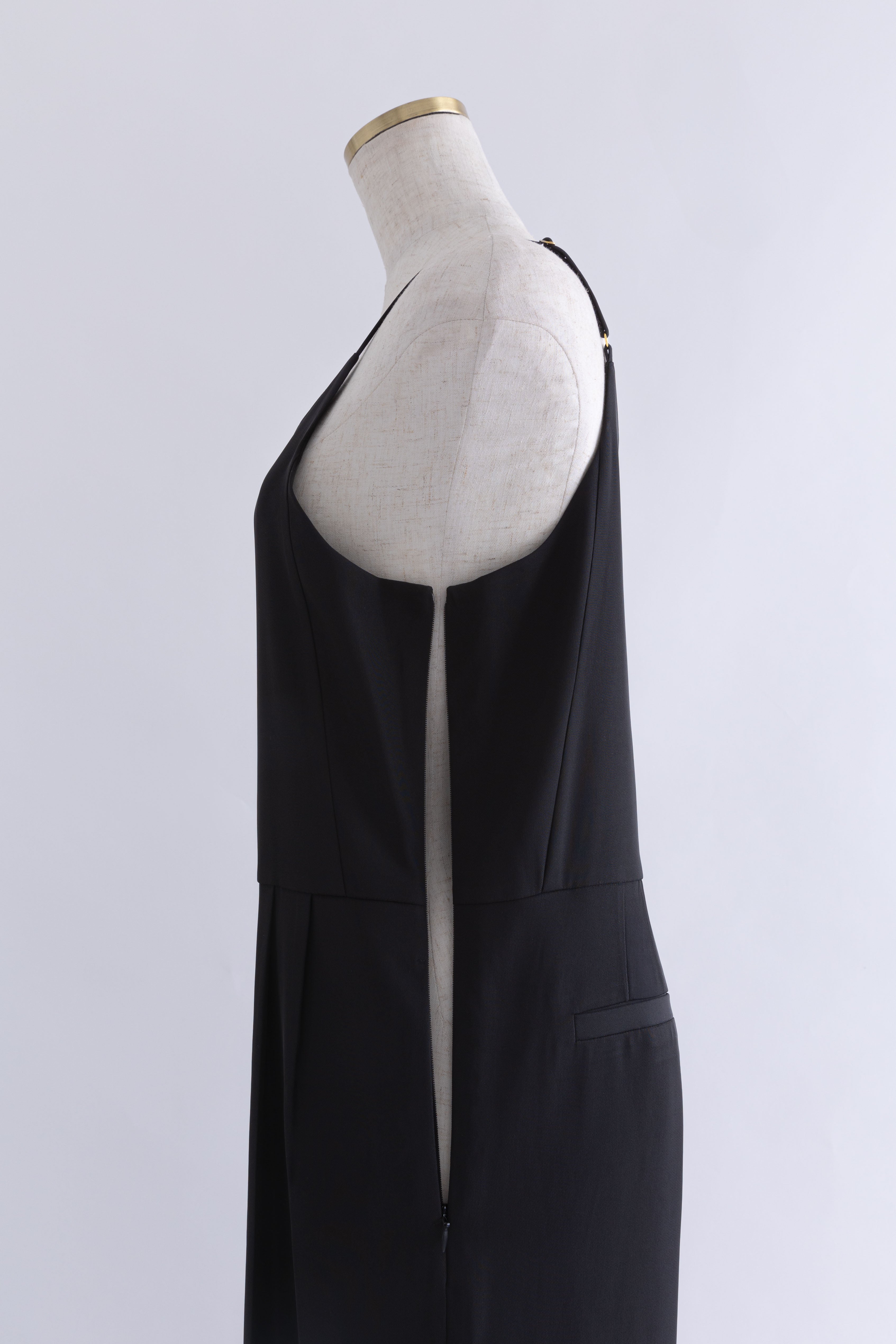 モードでキャッチーなチュールレイヤードのオールインワン。オケージョンシーンはもちろん、単品使いもできる着回しの効くセットアイテム チュールレイヤードオールインワン 【Material】 柔らかなチュールを使用し、立体感を出すために二重構造に仕上げています。インナーのオールインワンには、滑りが良くシワになりにくい中肉の合繊素材を採用し、快適な着心地に。 【Design】 大胆なボリュームを持たせた二重構造のチュール部分は、360°どこから見ても美しく見えるようタックデザインを取り入れました。オールインワンはオケージョンシーンにもふさわしい、すっきりとしたシルエットが特徴。胸元はややアメスリ寄りの内側ラインで、ファスナー開閉によりスムーズな着脱が可能です。 【Styling point】 セットで着こなすだけで決まるデザインですが、それぞれ単品でも普段のスタイルに取り入れやすいアイテムです。