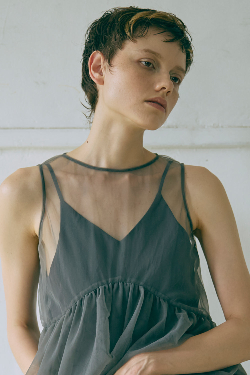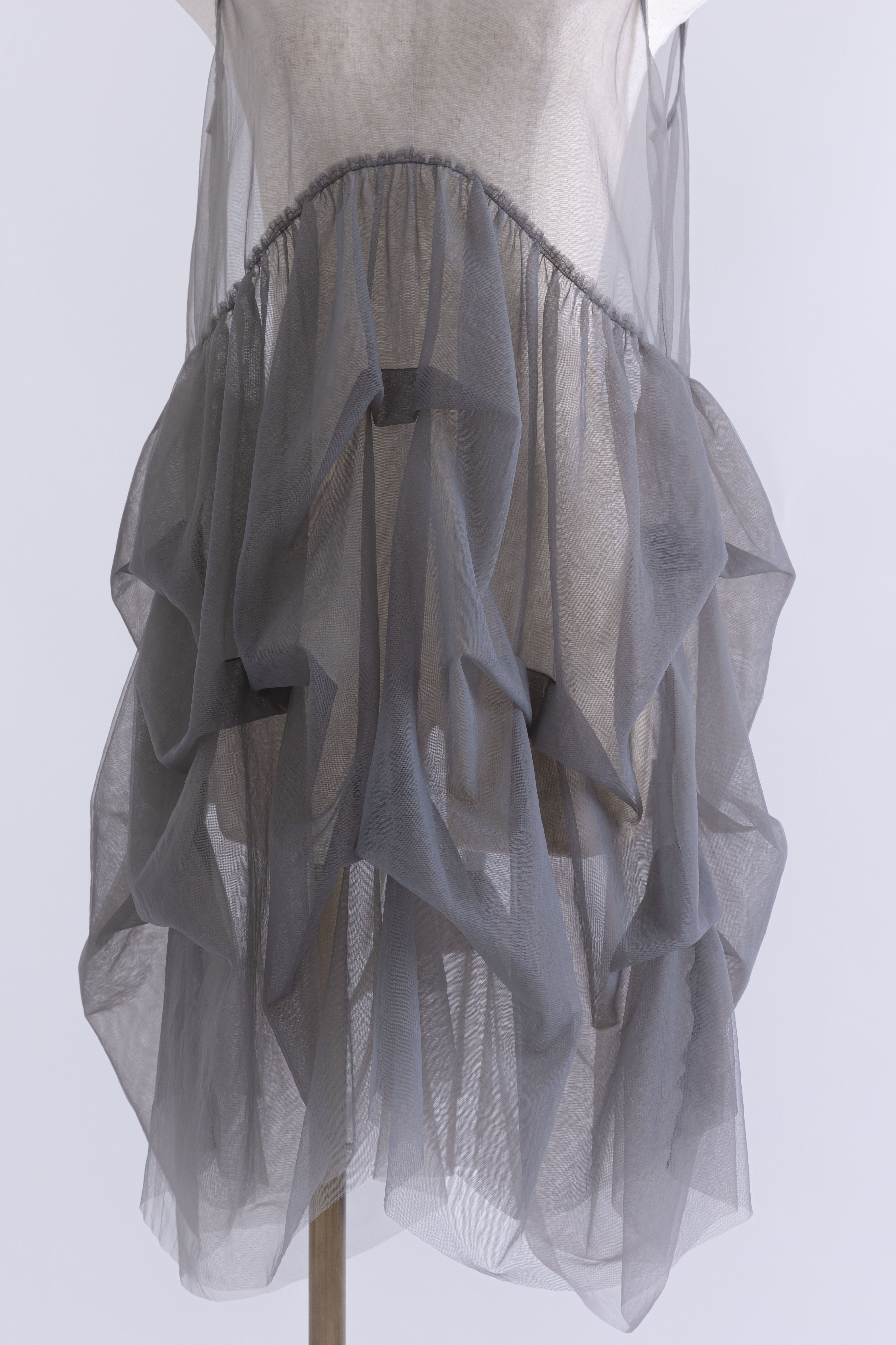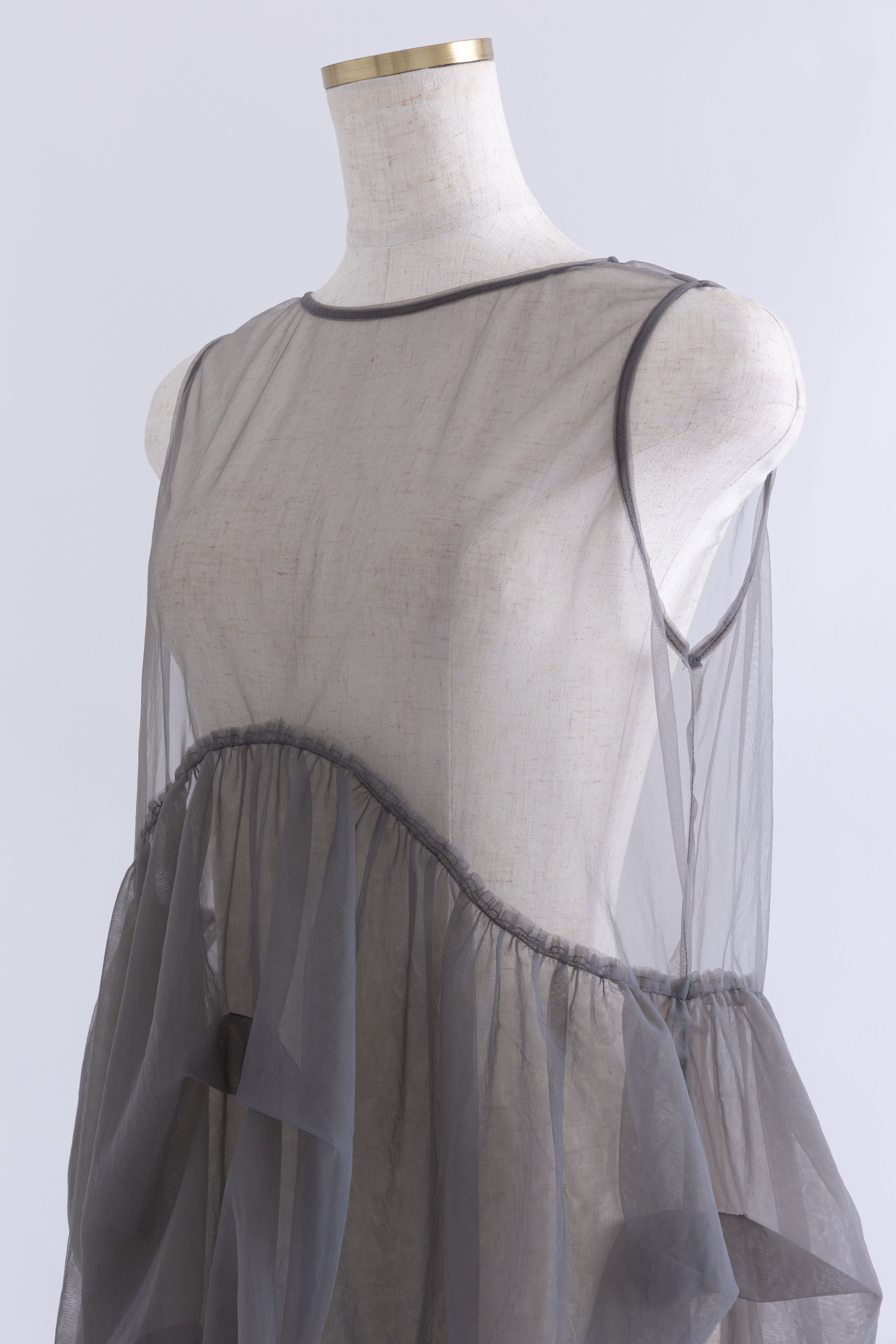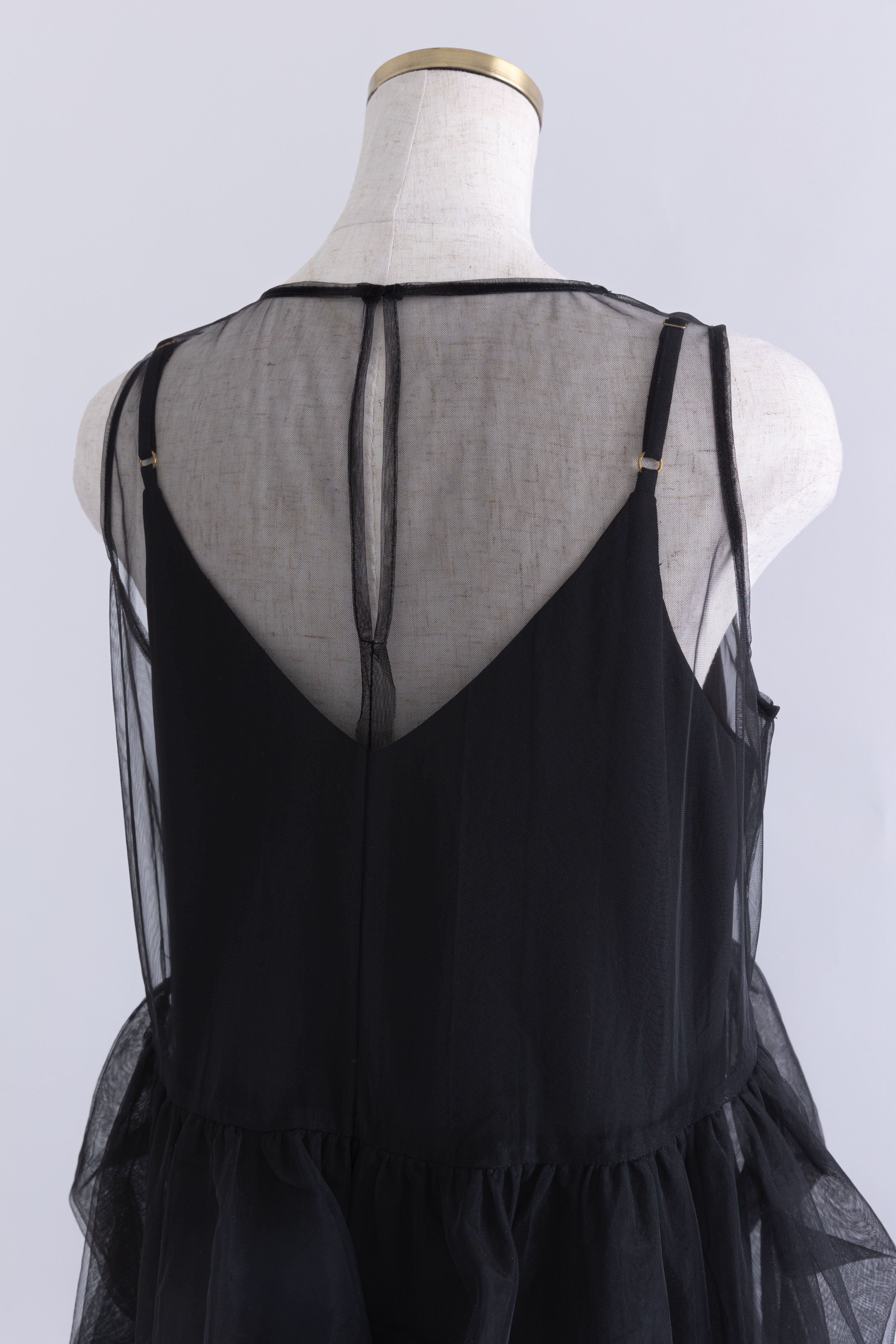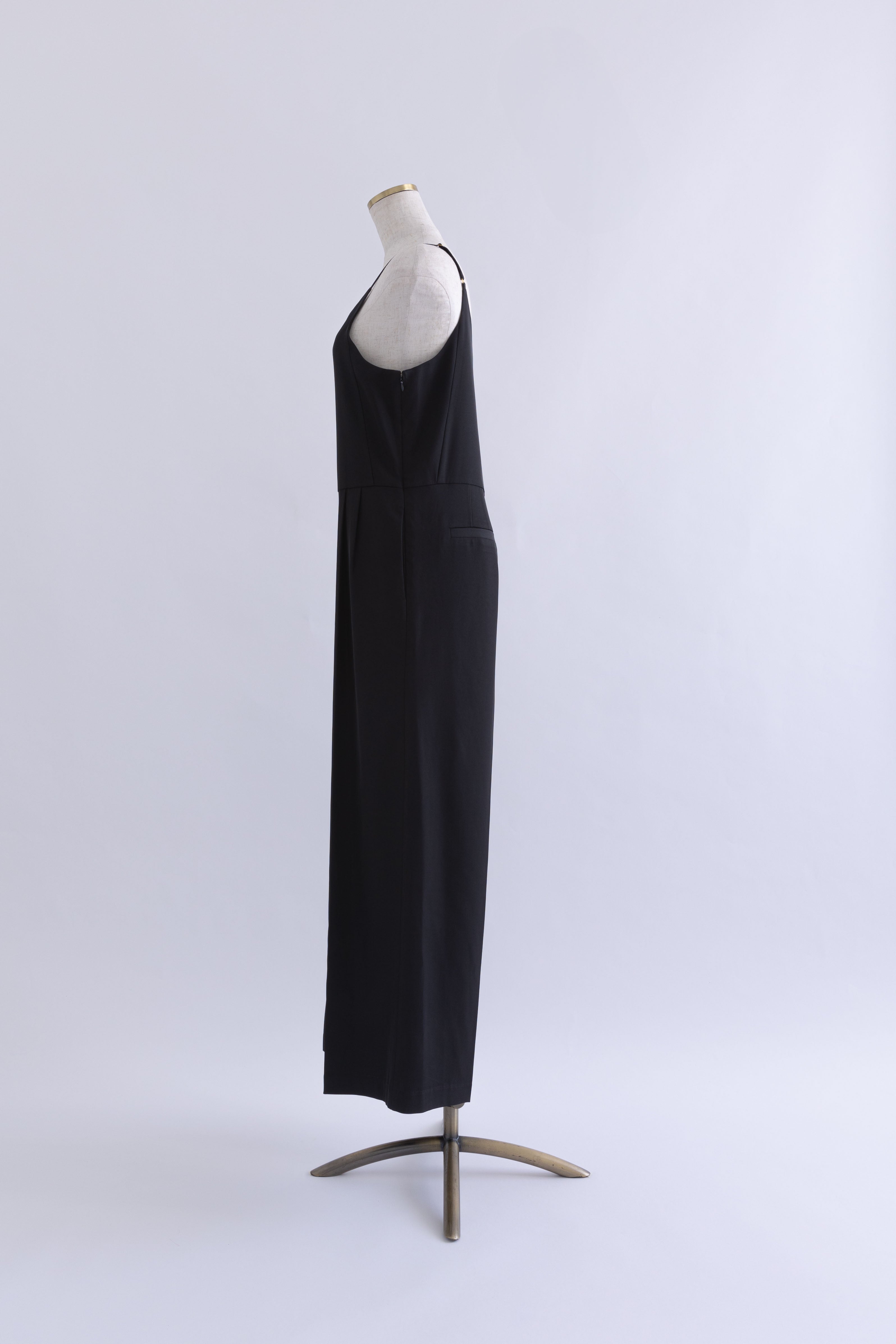 モードでキャッチーなチュールレイヤードのオールインワン。オケージョンシーンはもちろん、単品使いもできる着回しの効くセットアイテム チュールレイヤードオールインワン 【Material】 柔らかなチュールを使用し、立体感を出すために二重構造に仕上げています。インナーのオールインワンには、滑りが良くシワになりにくい中肉の合繊素材を採用し、快適な着心地に。 【Design】 大胆なボリュームを持たせた二重構造のチュール部分は、360°どこから見ても美しく見えるようタックデザインを取り入れました。オールインワンはオケージョンシーンにもふさわしい、すっきりとしたシルエットが特徴。胸元はややアメスリ寄りの内側ラインで、ファスナー開閉によりスムーズな着脱が可能です。 【Styling point】 セットで着こなすだけで決まるデザインですが、それぞれ単品でも普段のスタイルに取り入れやすいアイテムです。