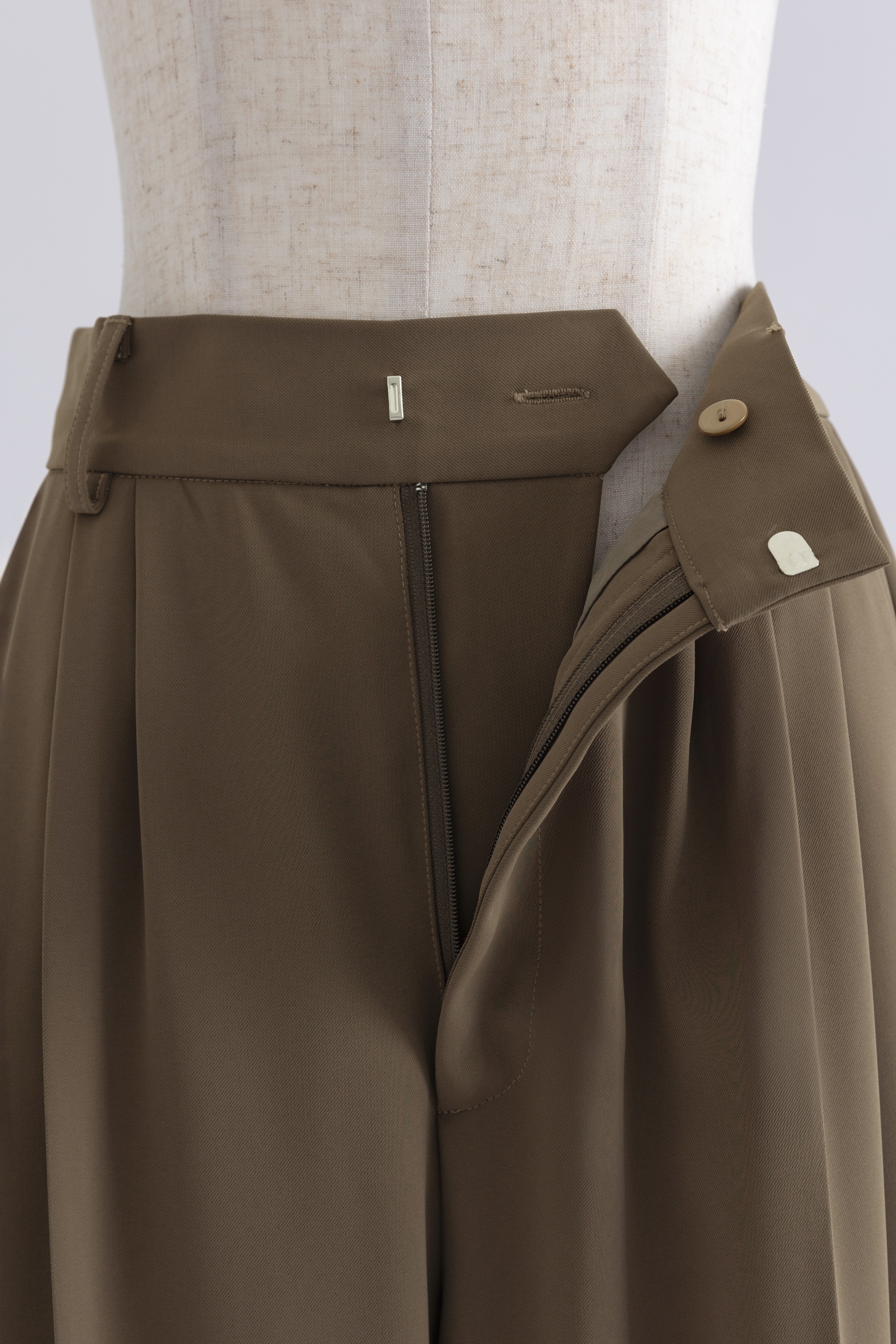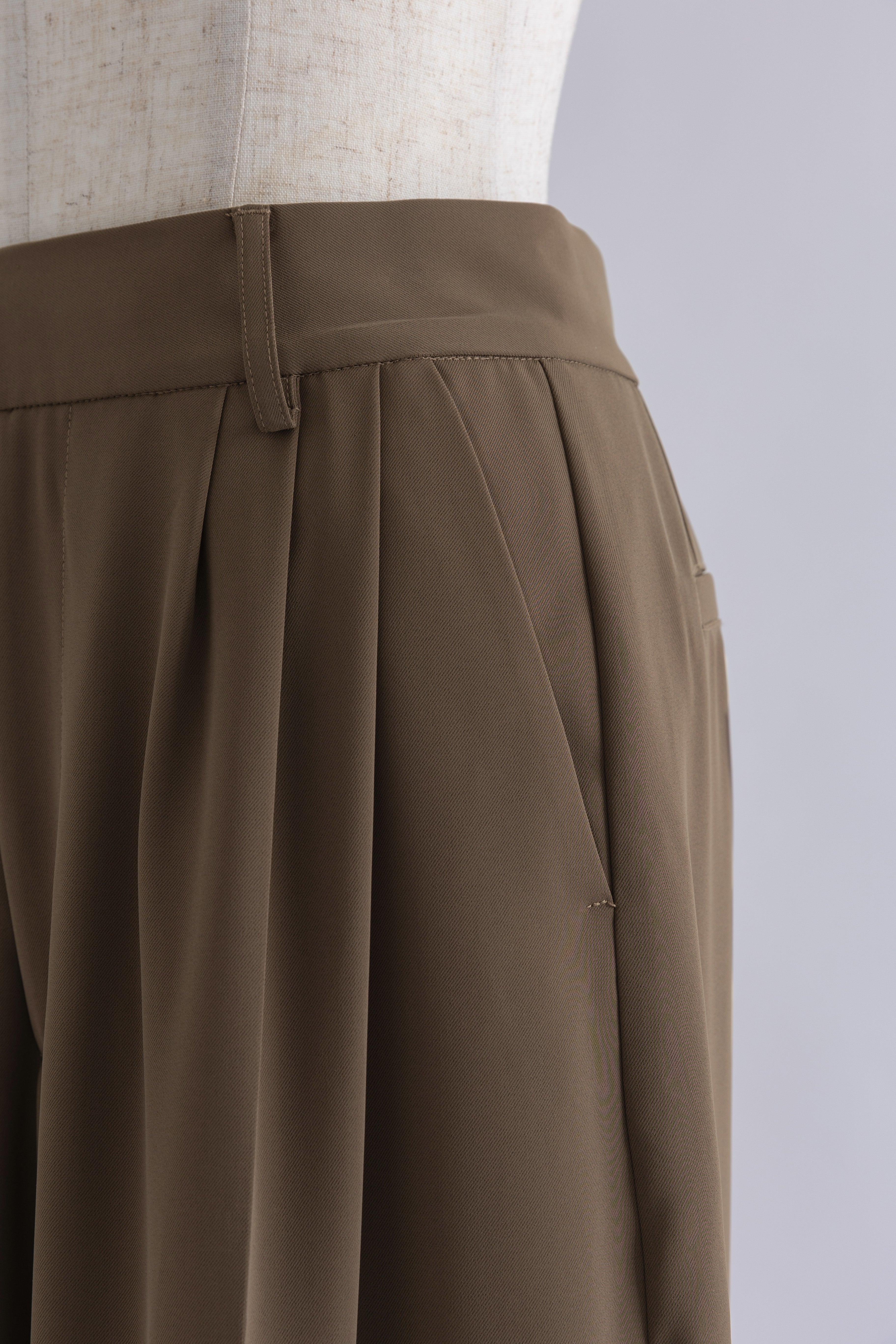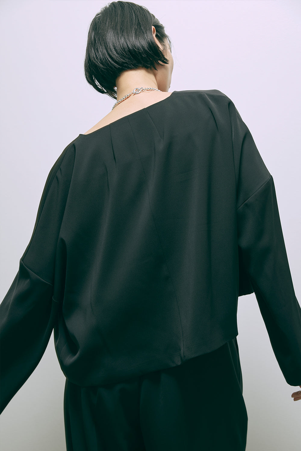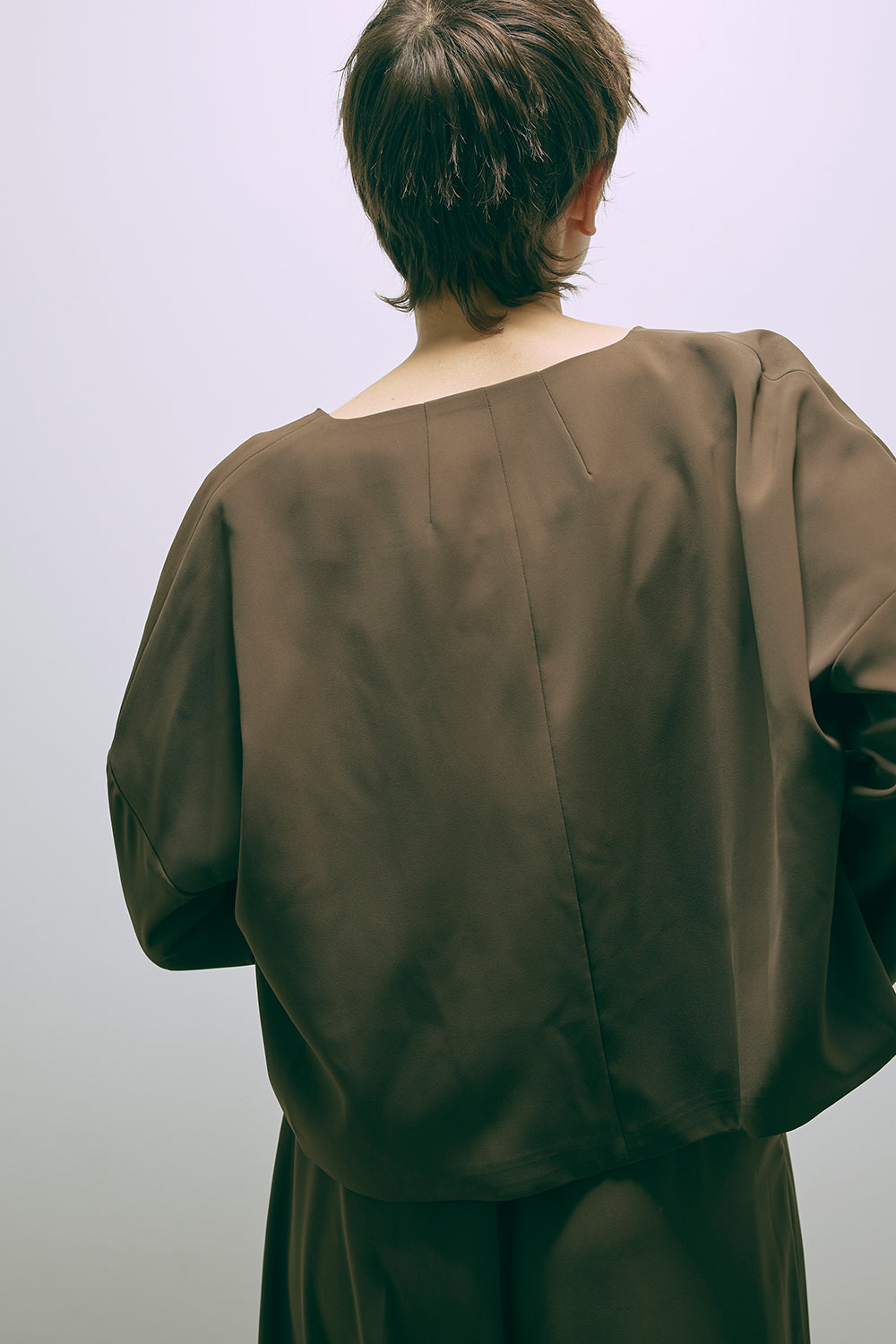 シンプルでありながらフォルムにこだわった、モード感あふれるセットアップ ドロップショルダーソフトジャケットセットアップ 【Material】 シワになりにくく、美しい落ち感のある合繊素材を使用。マットな質感が高級感を演出します。 【Design】 肩のラインを少しずらし、薄手の肩パッドを入れたフォルムが美しいジャケット。フロントには留め具をあえて設けず、カーディガンのようにラフに羽織れるデザインにしました。パンツはシンプルさを追求し、素材の落ち感を活かしたベーシックなデザインに仕上げています。 【Styling point】 セットでの着用がおすすめのモードなセットアップ。ベーシックなカラーなので、オケージョンシーンや学校行事、フォーマルな場面にも最適です。