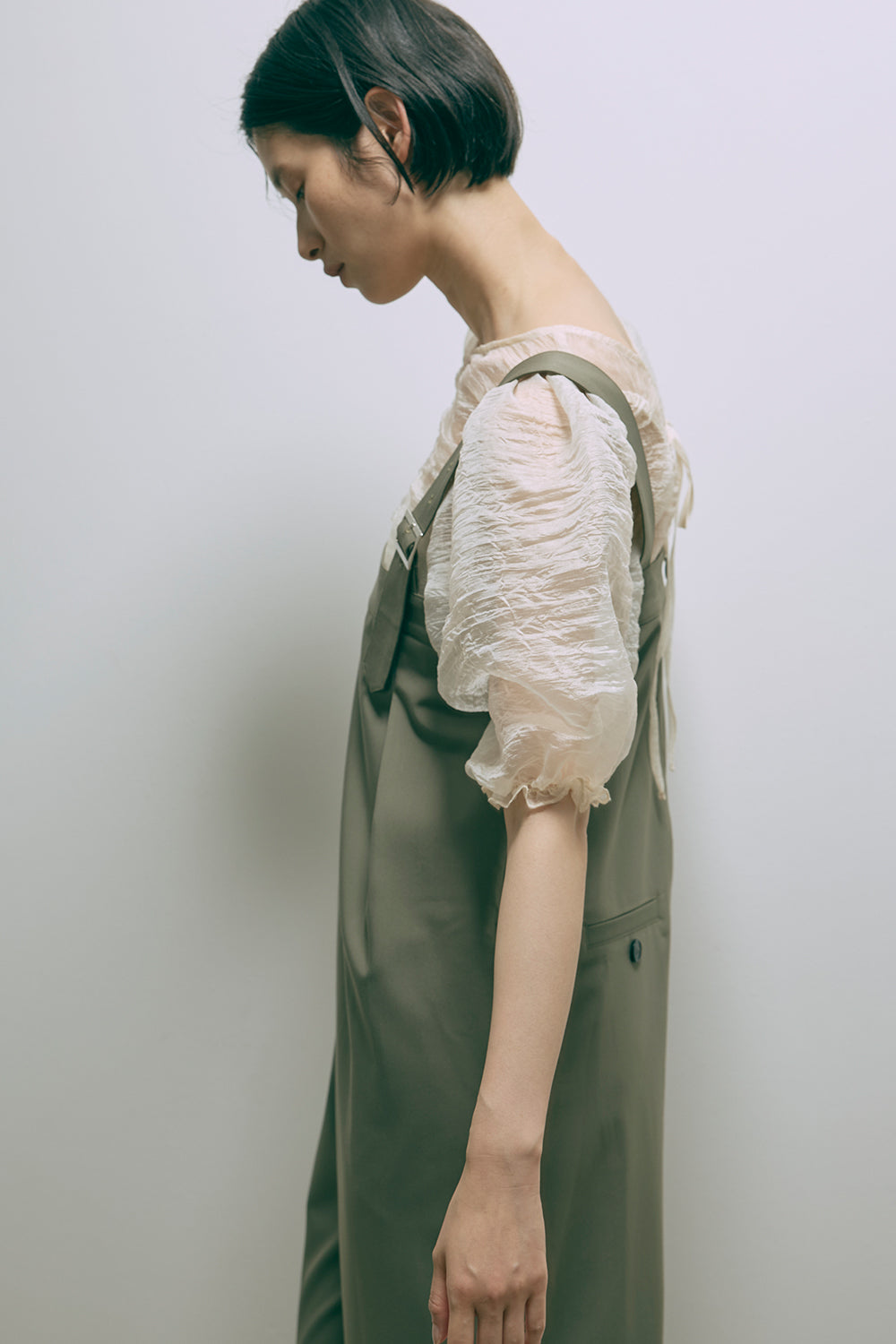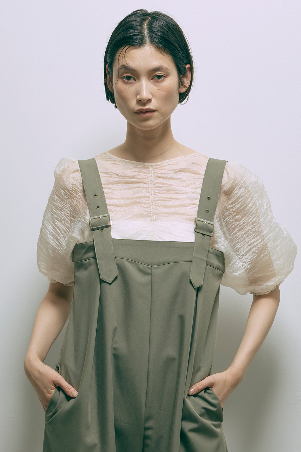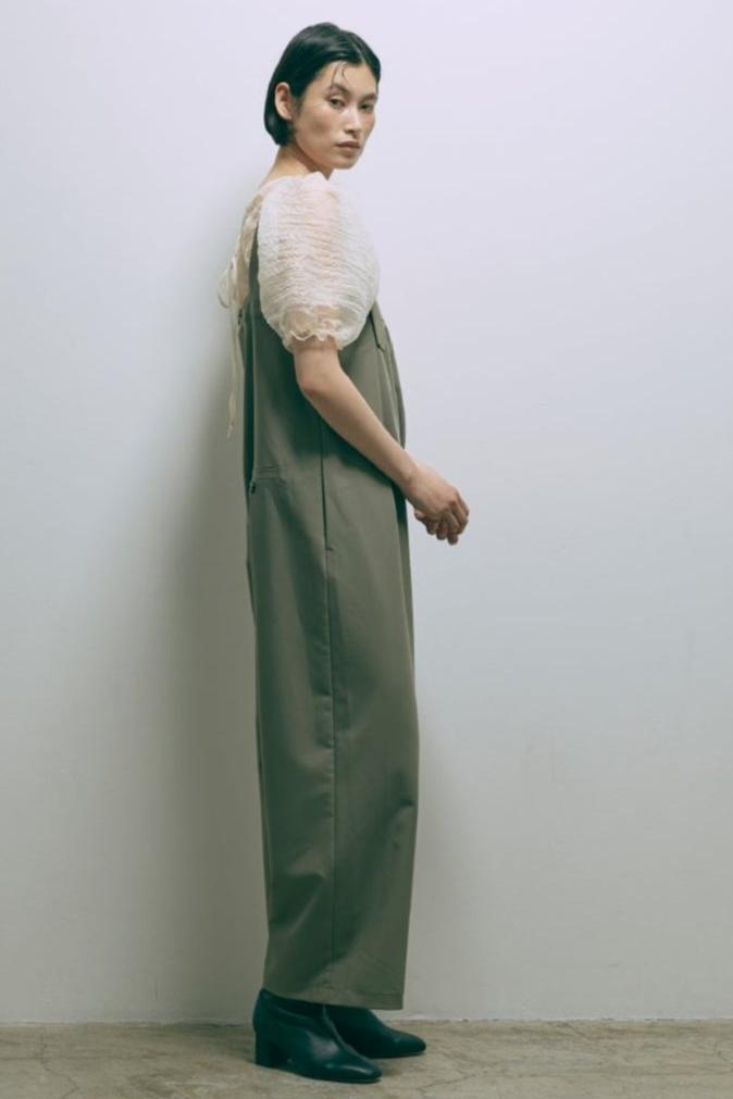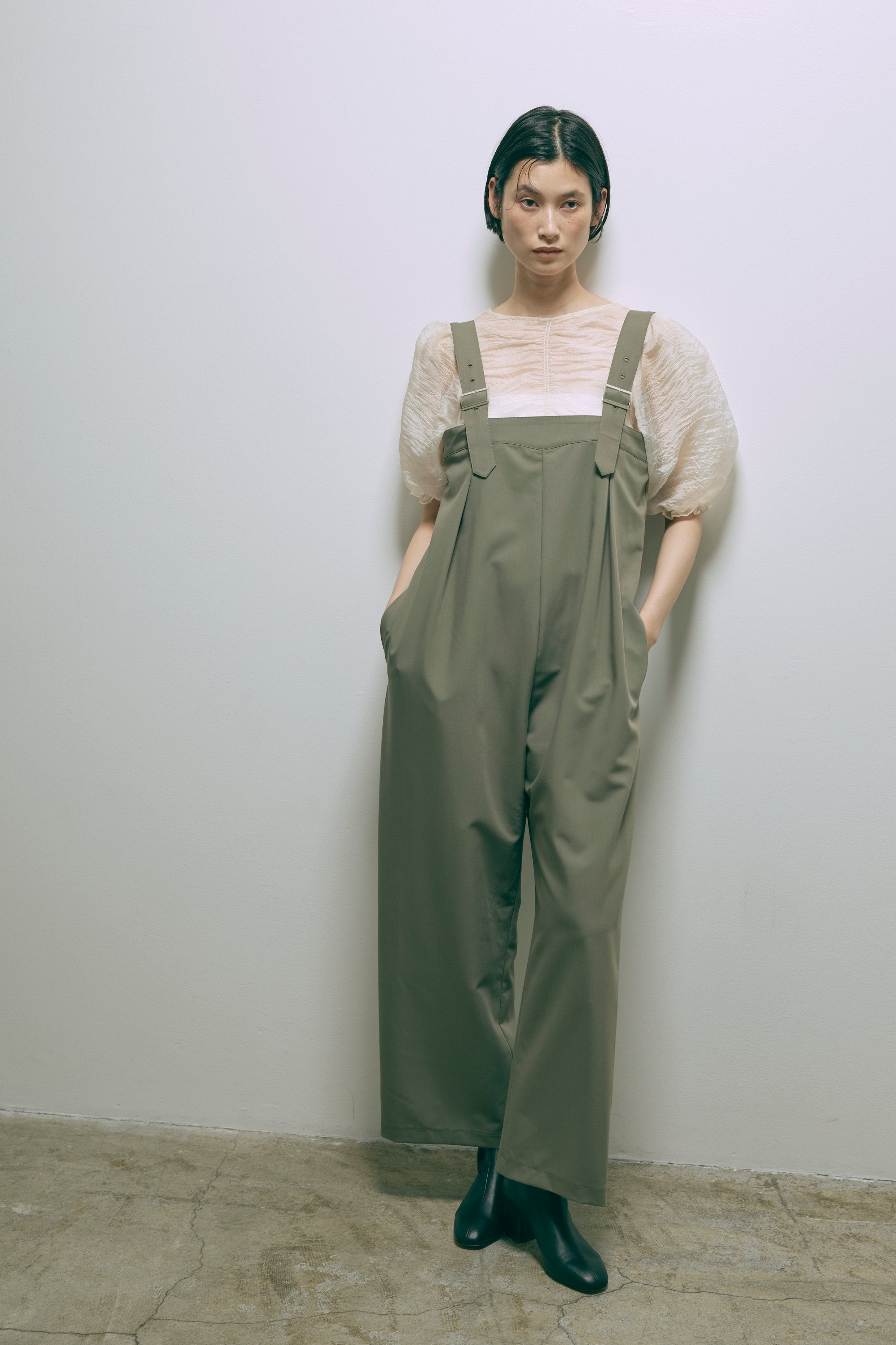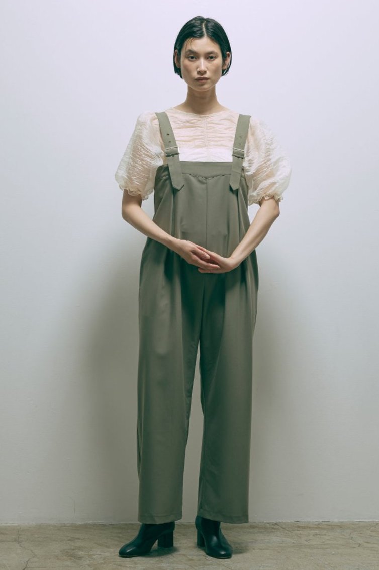 カジュアルでありながら、クリーンな印象を持つこだわりのオーバーオール ベルテッドオーバーオール 【Material】 毛羽立ちが少なく、さらりとしたきれいめな表面と、しなやかな落ち感を兼ね備えた中肉素材。オールシーズン対応で、幅広い季節に活躍します。 【Design】 ベルトで着丈(4段階)と身幅(2段階)の調整が可能。ゆったりとしたバストラインからストンと落ちるシルエットで、着やすさと体型カバーを実現しながらも、子供っぽくならないバランスに仕上げています。 【Styling point】 タイトなインナーを合わせて、メリハリのあるレイヤードスタイルがおすすめです。カジュアルなアイテムなので、パフスリーブなど少しガーリーなアイテムとミックスするのもおすすめの組み合わせです。