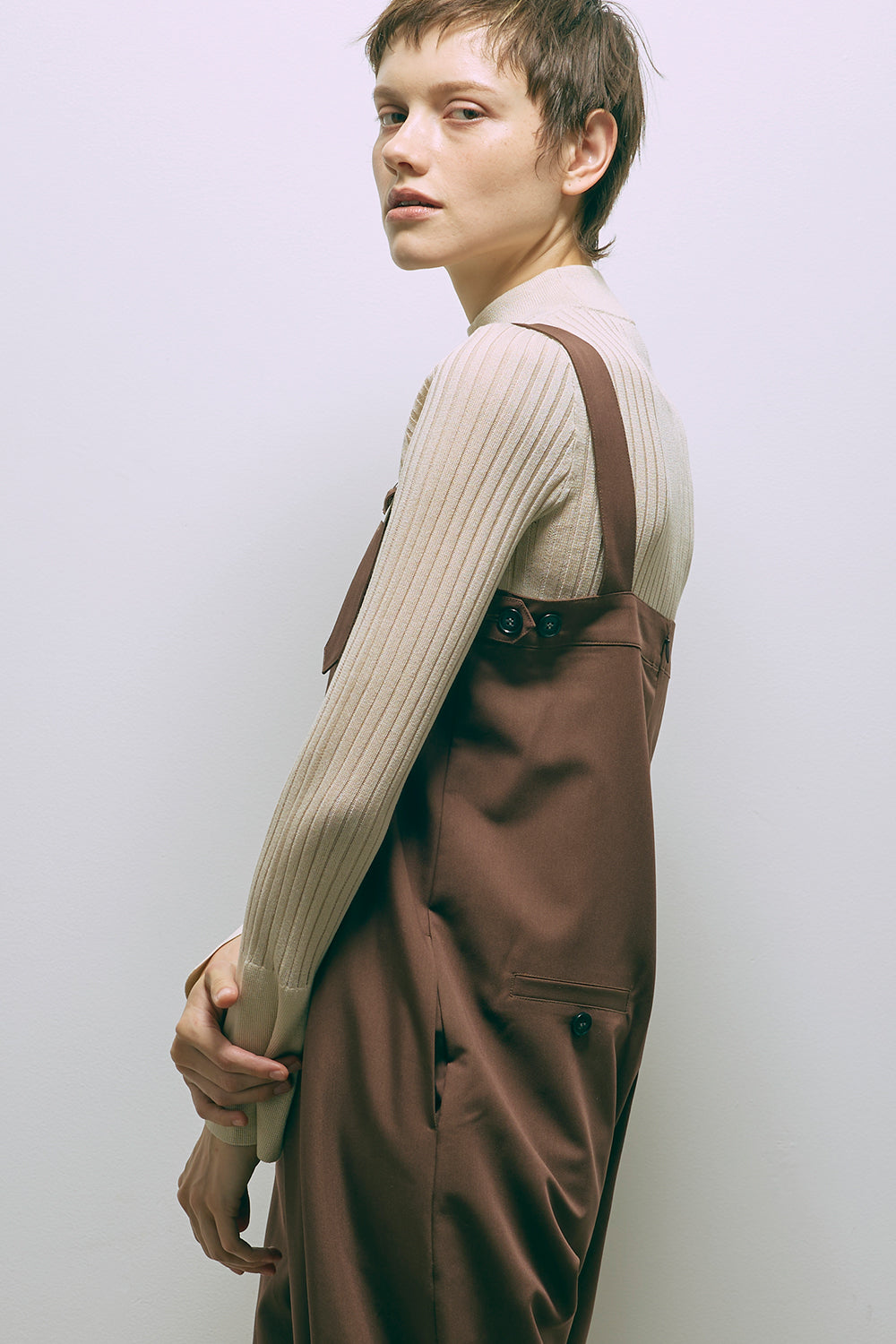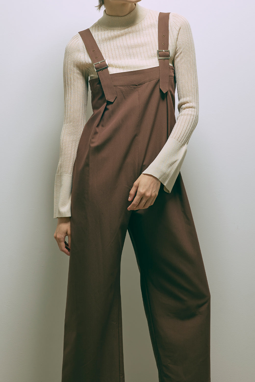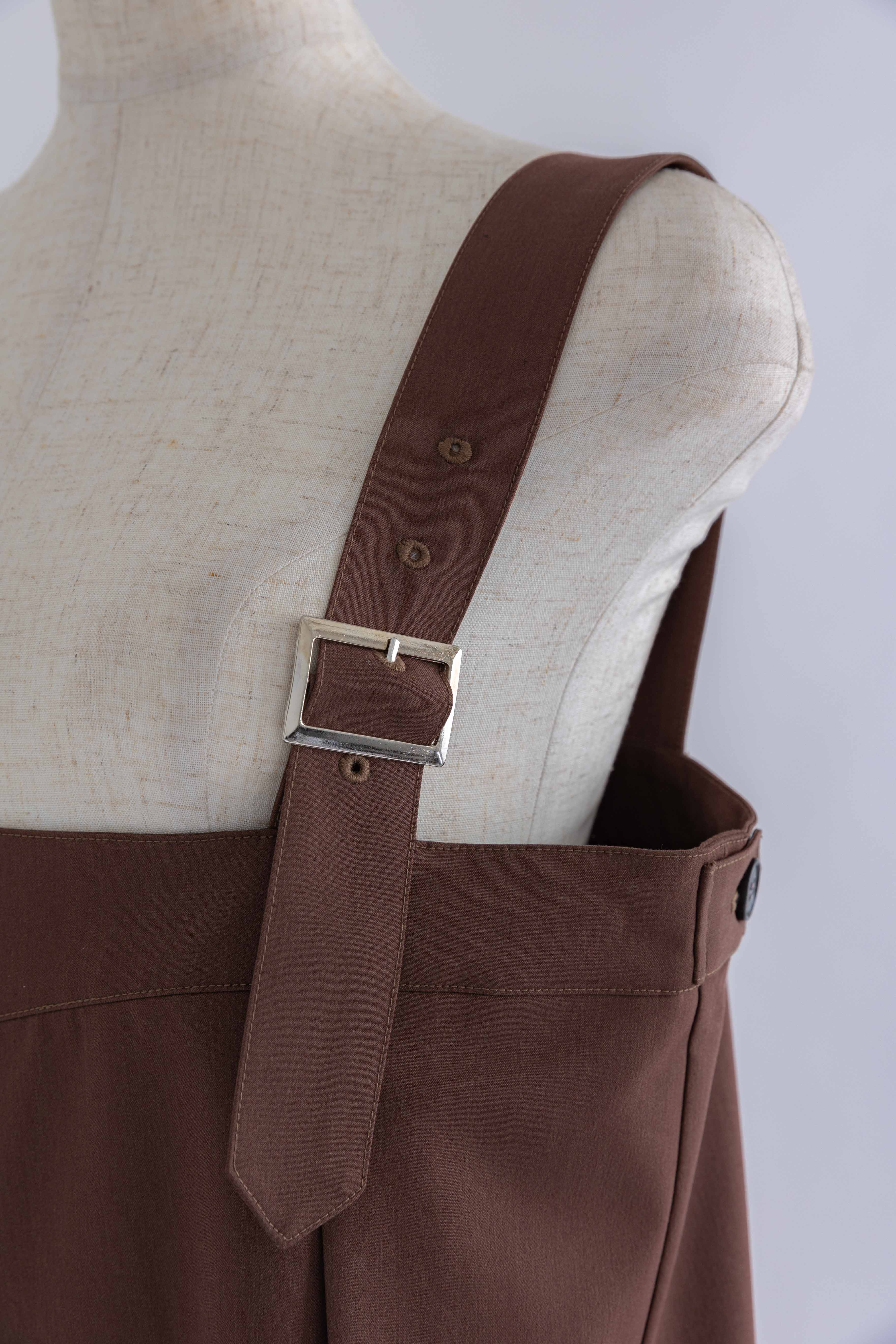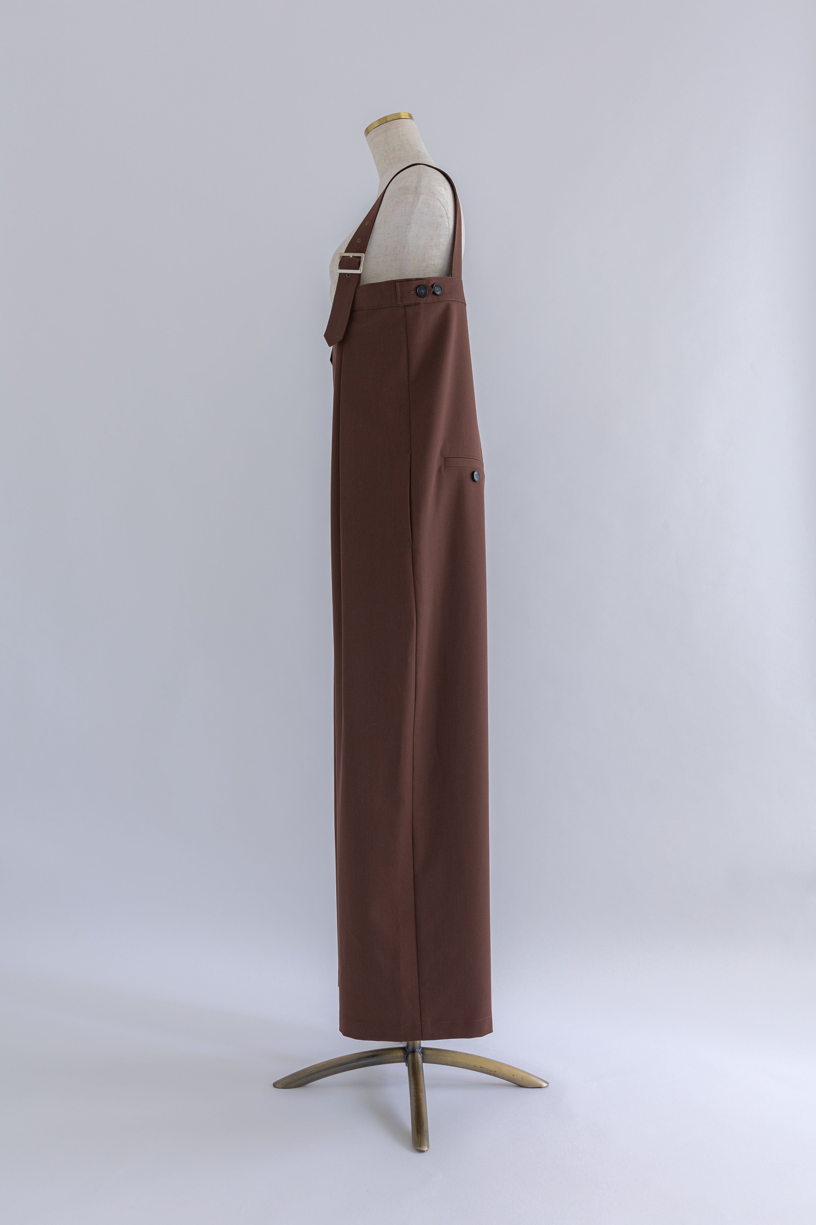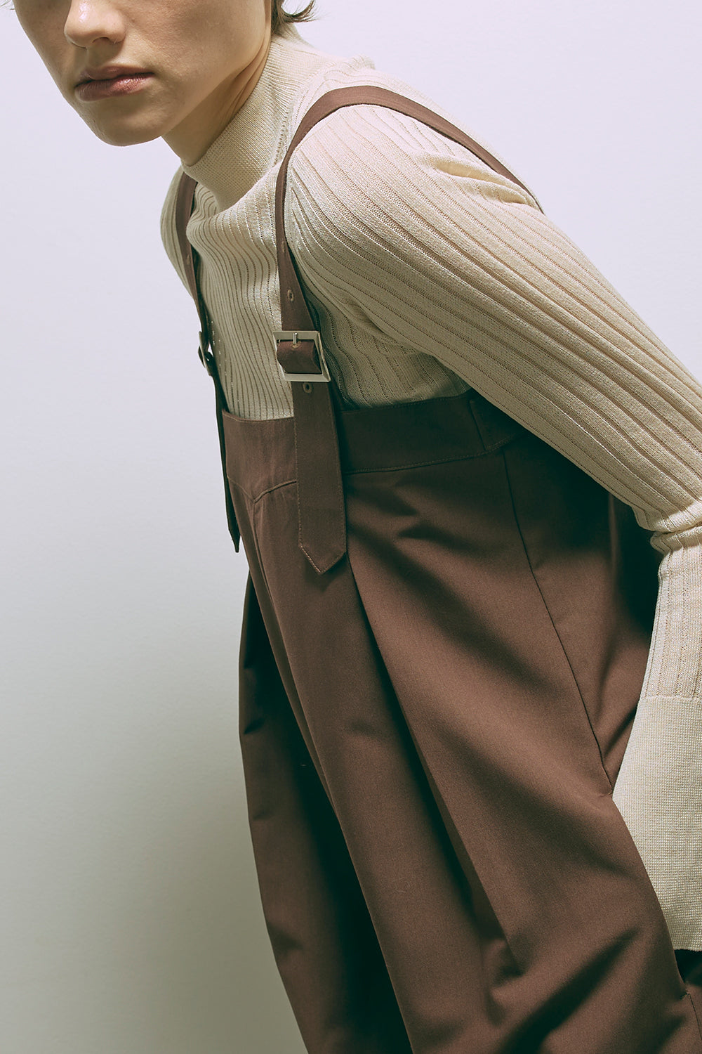 カジュアルでありながら、クリーンな印象を持つこだわりのオーバーオール ベルテッドオーバーオール 【Material】 毛羽立ちが少なく、さらりとしたきれいめな表面と、しなやかな落ち感を兼ね備えた中肉素材。オールシーズン対応で、幅広い季節に活躍します。 【Design】 ベルトで着丈(4段階)と身幅(2段階)の調整が可能。ゆったりとしたバストラインからストンと落ちるシルエットで、着やすさと体型カバーを実現しながらも、子供っぽくならないバランスに仕上げています。 【Styling point】 タイトなインナーを合わせて、メリハリのあるレイヤードスタイルがおすすめです。カジュアルなアイテムなので、パフスリーブなど少しガーリーなアイテムとミックスするのもおすすめの組み合わせです。