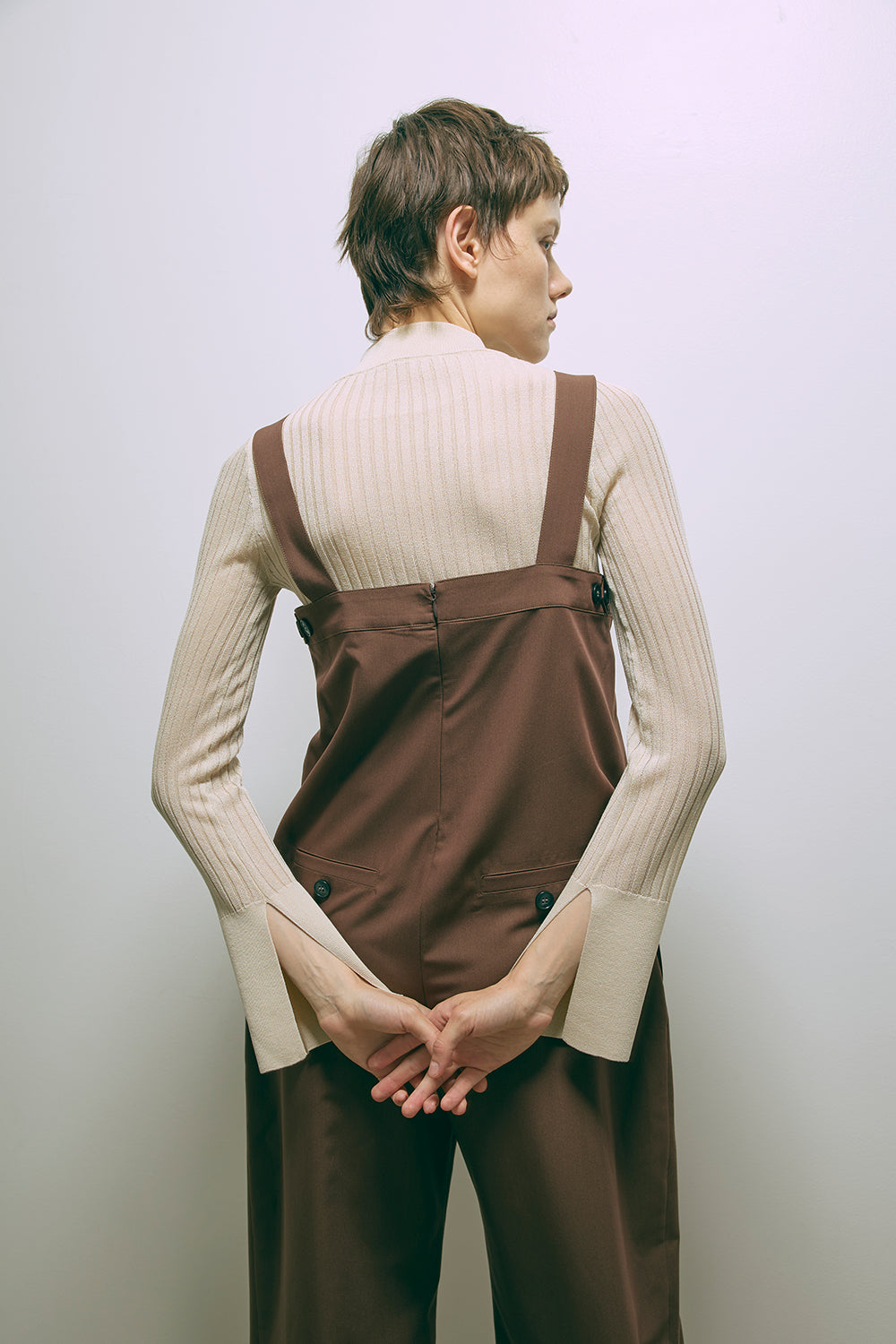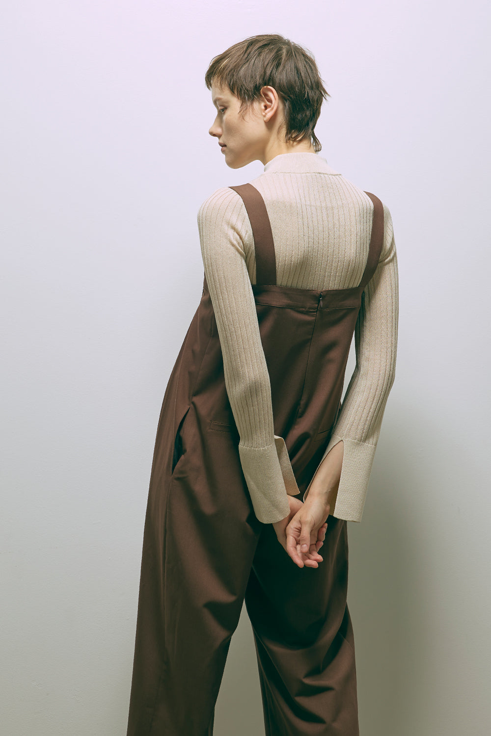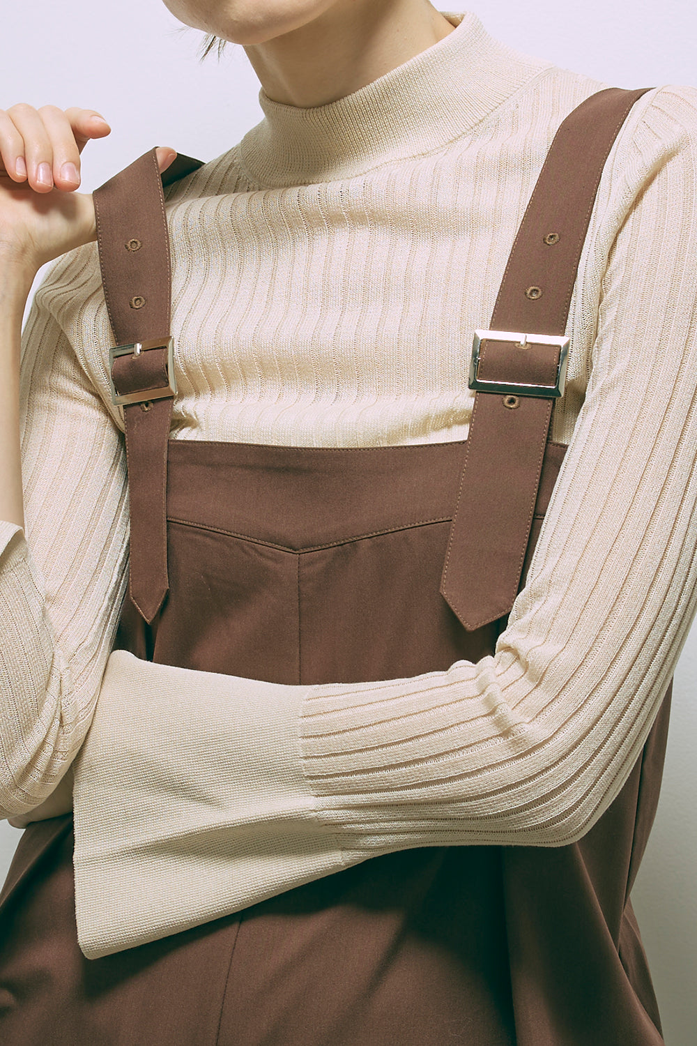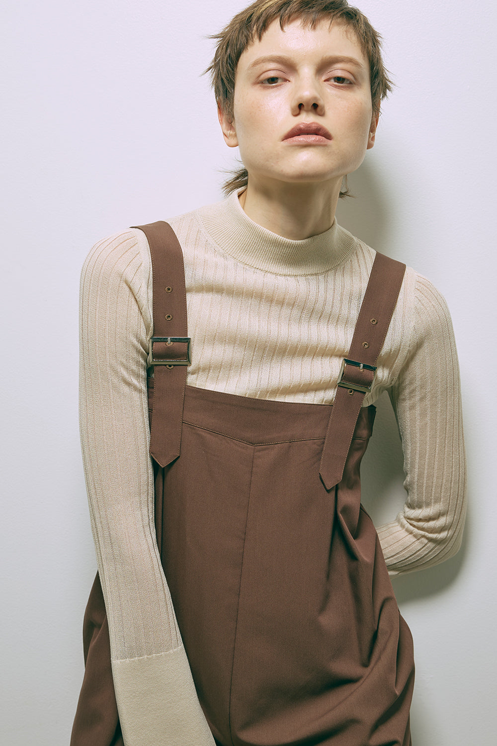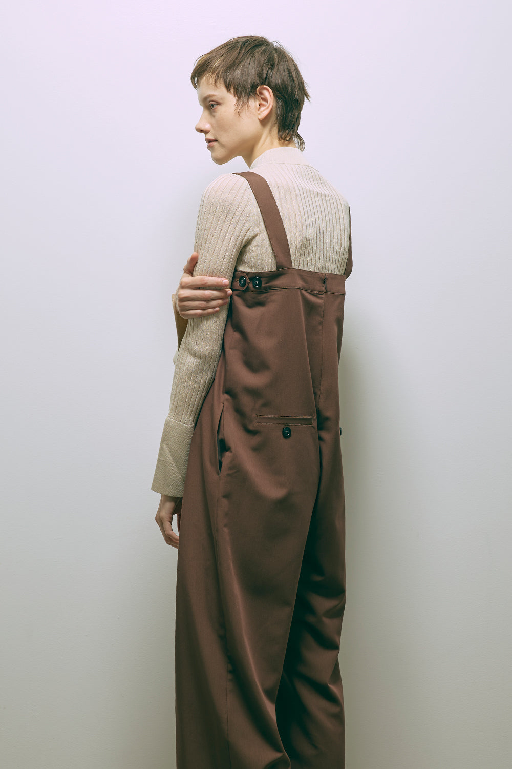 カジュアルでありながら、クリーンな印象を持つこだわりのオーバーオール ベルテッドオーバーオール 【Material】 毛羽立ちが少なく、さらりとしたきれいめな表面と、しなやかな落ち感を兼ね備えた中肉素材。オールシーズン対応で、幅広い季節に活躍します。 【Design】 ベルトで着丈(4段階)と身幅(2段階)の調整が可能。ゆったりとしたバストラインからストンと落ちるシルエットで、着やすさと体型カバーを実現しながらも、子供っぽくならないバランスに仕上げています。 【Styling point】 タイトなインナーを合わせて、メリハリのあるレイヤードスタイルがおすすめです。カジュアルなアイテムなので、パフスリーブなど少しガーリーなアイテムとミックスするのもおすすめの組み合わせです。