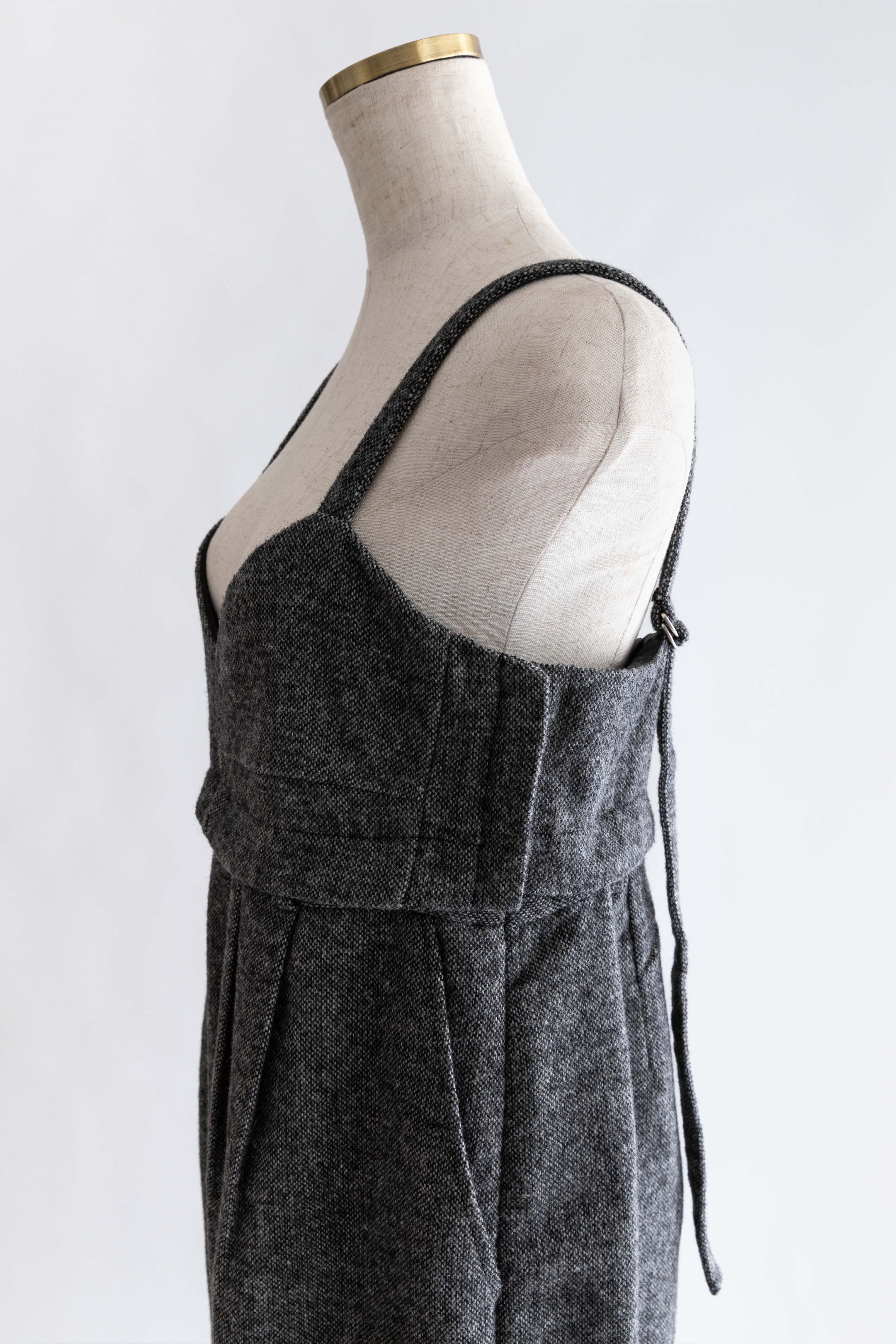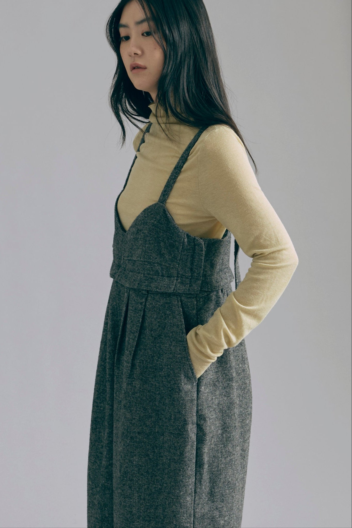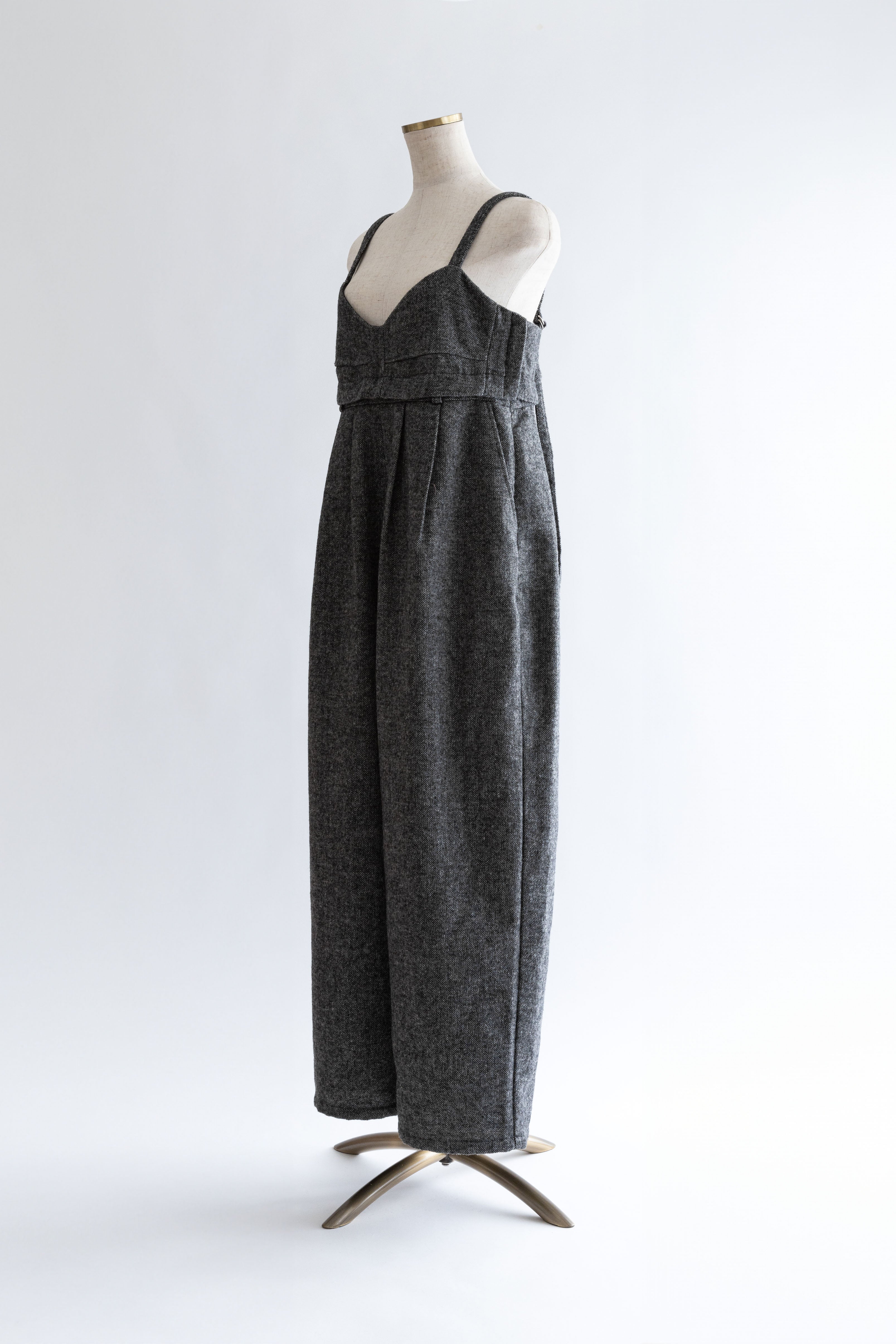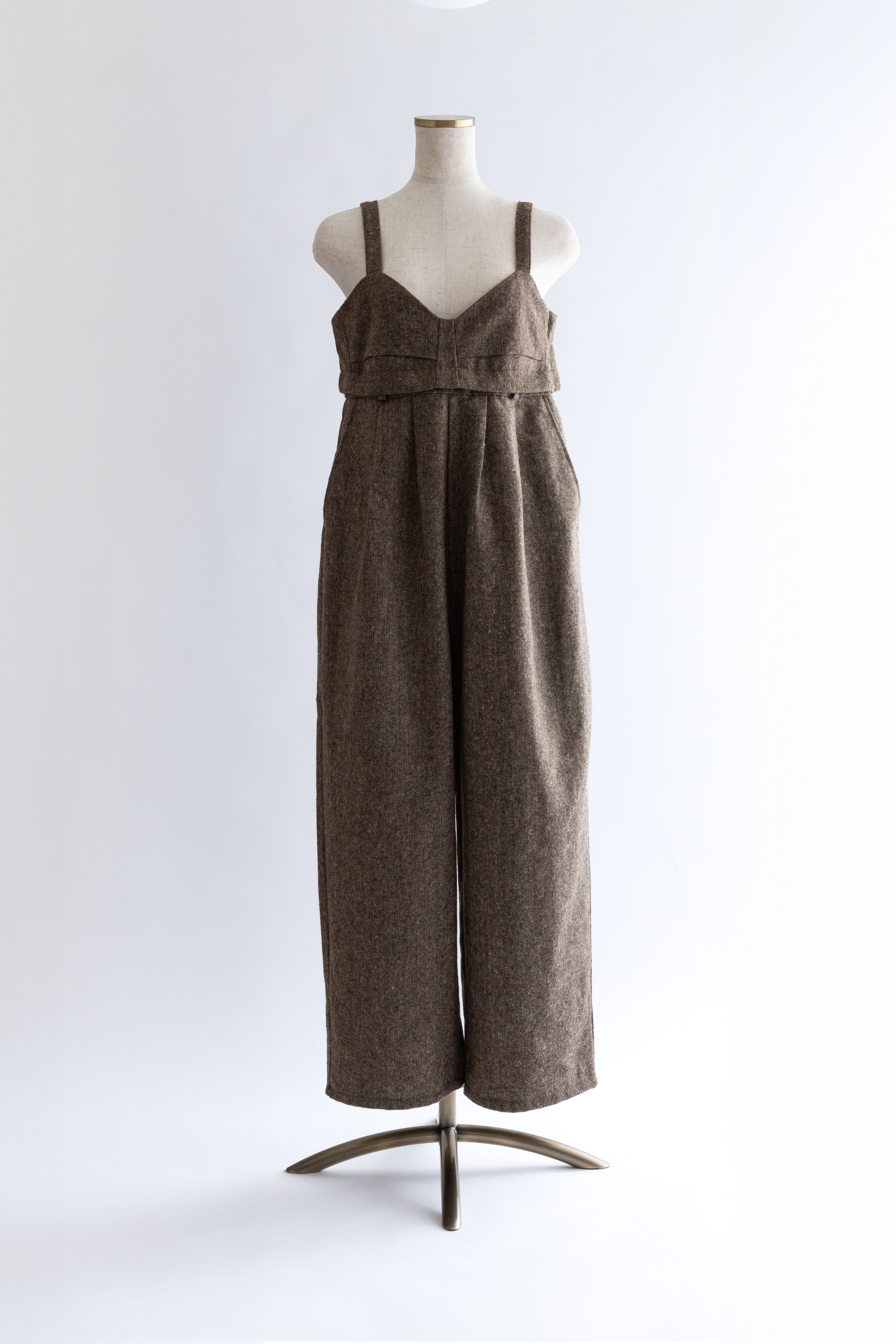 気分で変えれる2Wayスタイル 【Material】 しっかりとした生地感です。裏地付きで快適さにも配慮。 【Design】 胸元のビスチェデザインにコンビネゾンを掛け合わせた、他にはない存在感のある一着。ビスチェ部分は取り外し可能な2Way仕様で、その日の気分やシーンに合わせて印象をチェンジできます。 【Styling point】 オンの日はジャケットやヒールを合わせて洗練された着こなしに、オフの日はスニーカーやカーディガンでリラックス感のあるスタイリングがおすすめ。 インナー次第で季節感を変えられるので、ワードローブに加えておきたい一着です。デイリー使いはもちろん、ちょっとしたお呼ばれや旅行にも◎