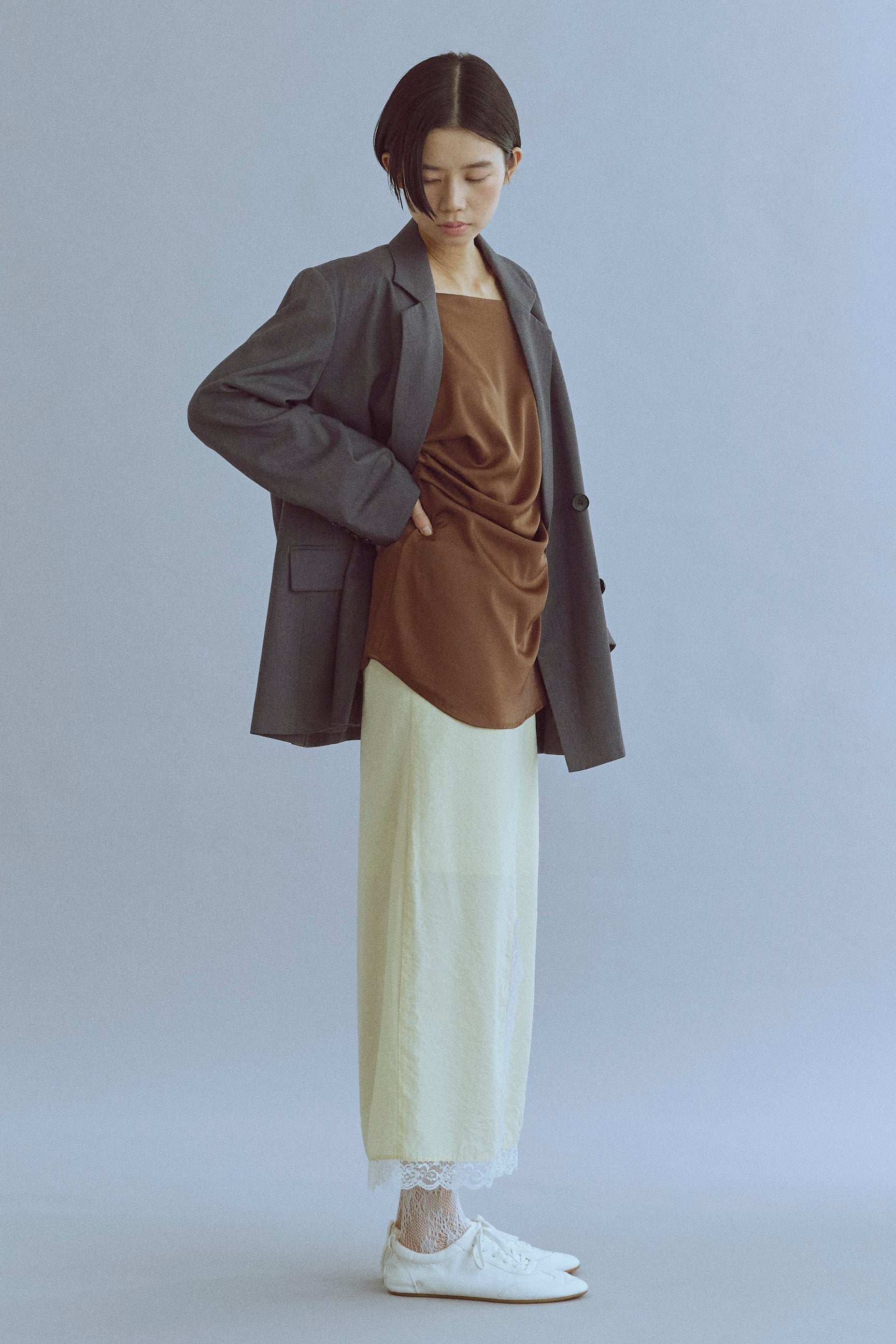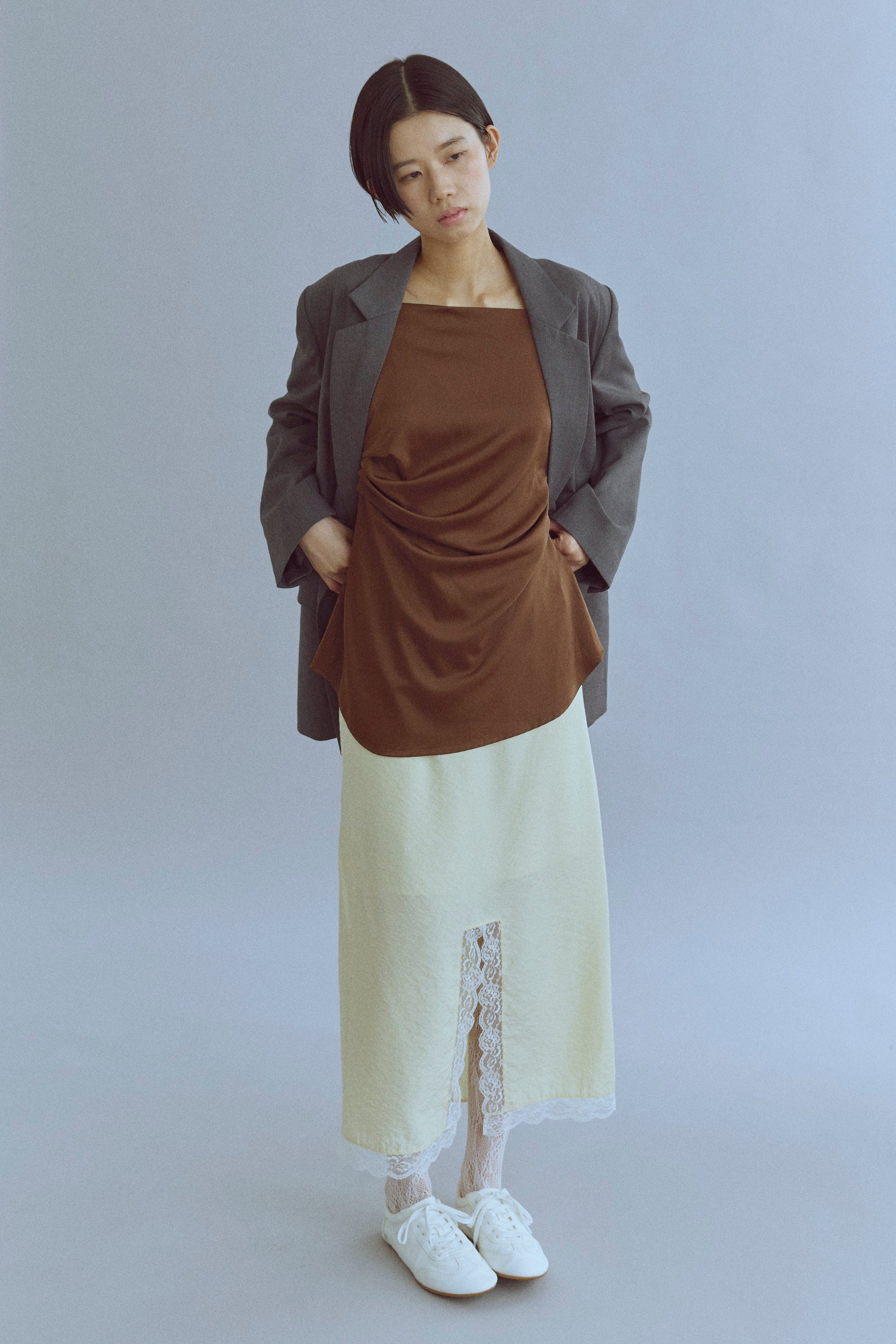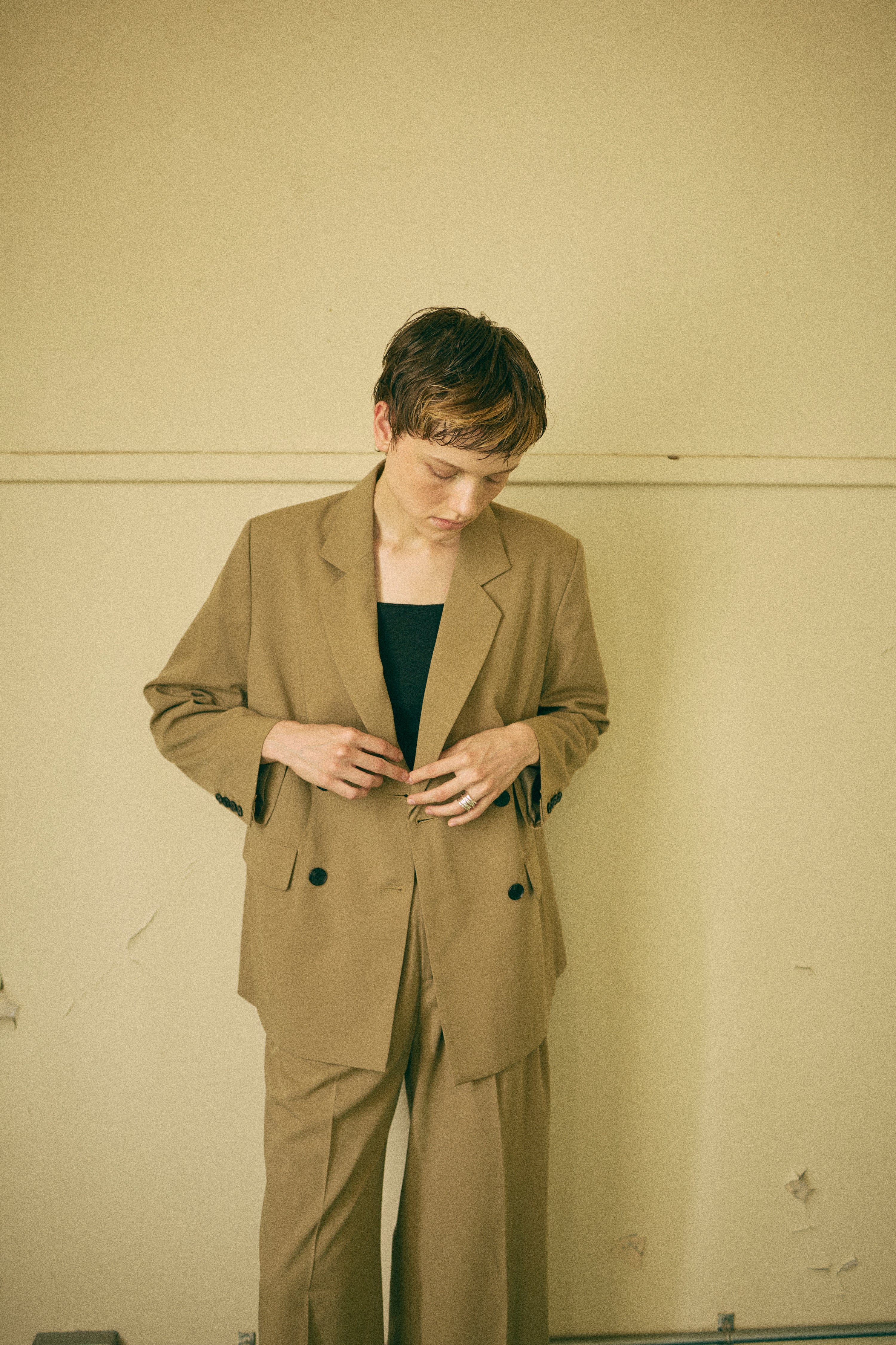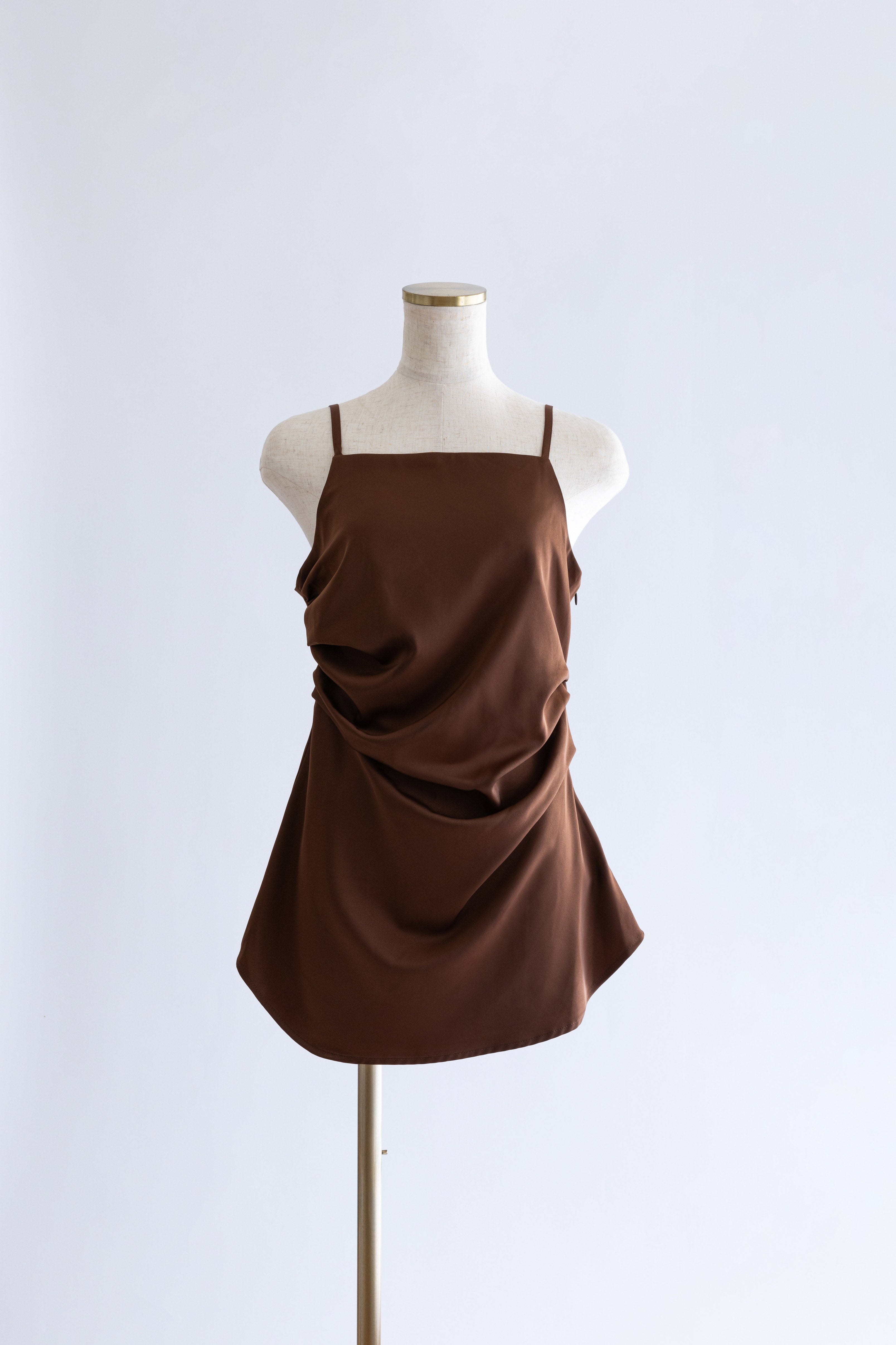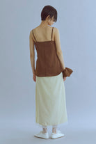 統一感をプラスするキャミ&シュシュセット 【Material】 やわらかく落ち感のある素材で、ほどよいマットな光沢が上品なキャミソール。さらっとした肌触りで、汗ばむ季節でも快適に着れます。付属のシュシュも同素材で作られているので、統一感のあるスタイリングが楽しめるのも魅力です。 【Design】 デコルテラインをきれいに見せるすっきりとしたデザインで、女性らしいシルエットに◎シュシュはボリュームがあり、まとめ髪をするときに存在感を出してくれる万能アイテムです。 【Styling point】 タイトスカートやワイドパンツと合わせて、フェミニンに。シュシュはまとめ髪に華やかさをプラスしてくれるだけでなく、手首にアクセサリー感覚でつけても可愛いアクセントになります。