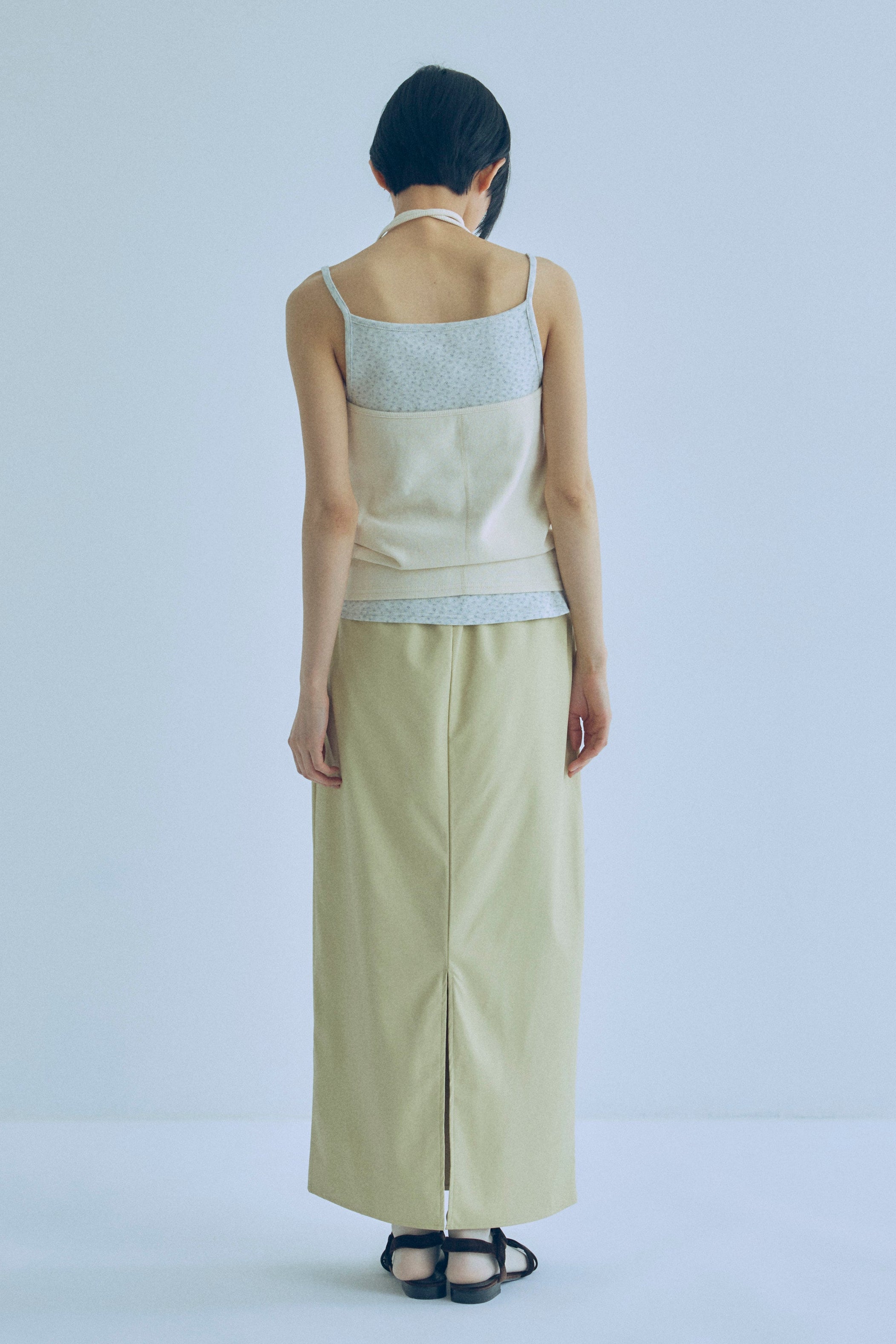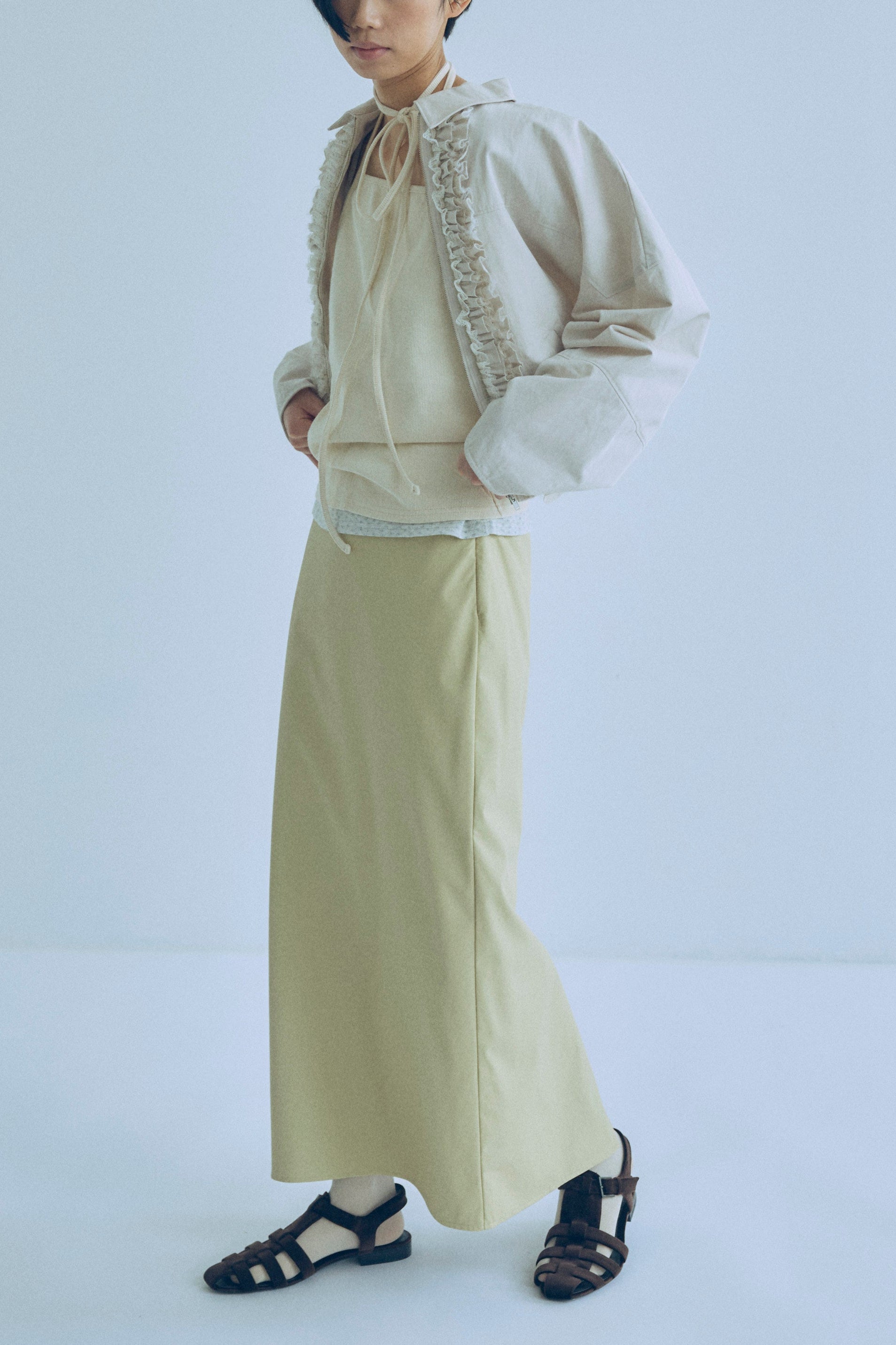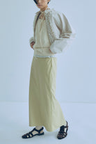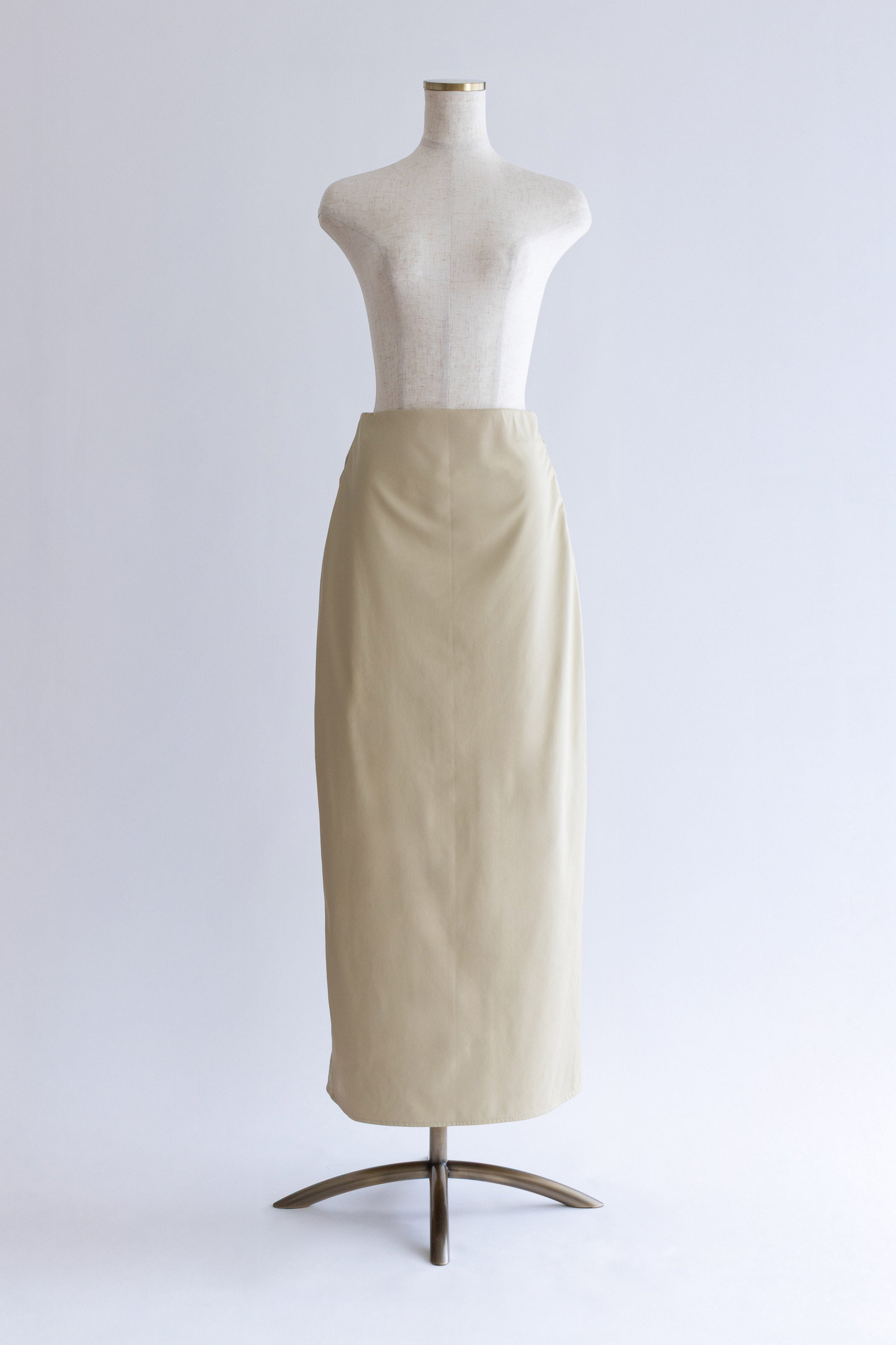 気軽に洗えて、デイリーに頼れるフェイクレザースカート 【Material】 しなやかで柔らかなフェイクレザー素材を使用。マットでほんのり起毛感のある質感が、ハードになりすぎず大人っぽい印象に仕上げます。ウォッシャブル仕様で、ご自宅で洗えるためお手入れも簡単。デイリーに気負わず取り入れやすい素材感です。 【Design】 膝下丈のナローシルエットで、女性らしいラインをきれいに演出しつつ、タイトすぎない設計で動きやすさも確保。ウエストはフロントをすっきりと見せ、バックはゴム仕様にすることで、見た目以上に快適な穿き心地を叶えています。きれいめにもカジュアルにも馴染む、バランスの取れたデザインです。 【Styling point】 コンパクトなトップスやクロップド丈アイテムと合わせれば、トレンド感のあるスタイリングに。シンプルなデザインなので、ニットやシャツ、アウターまで幅広く合わせやすく、シーズンレスに着回せるのも魅力です。
