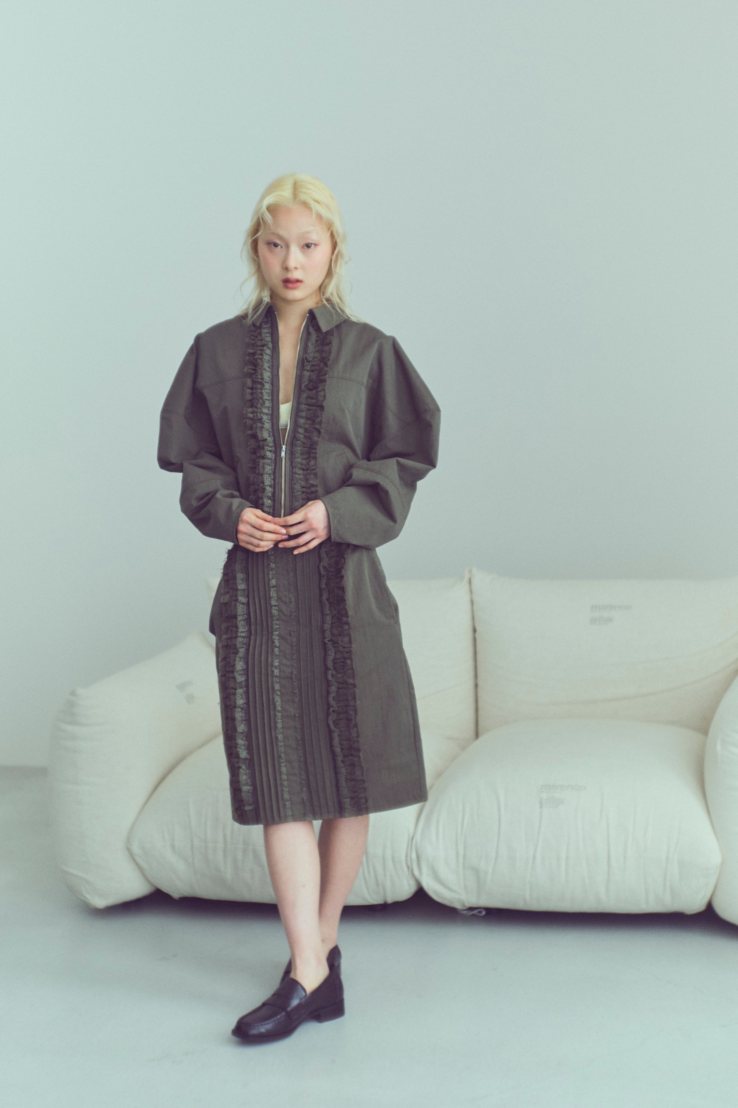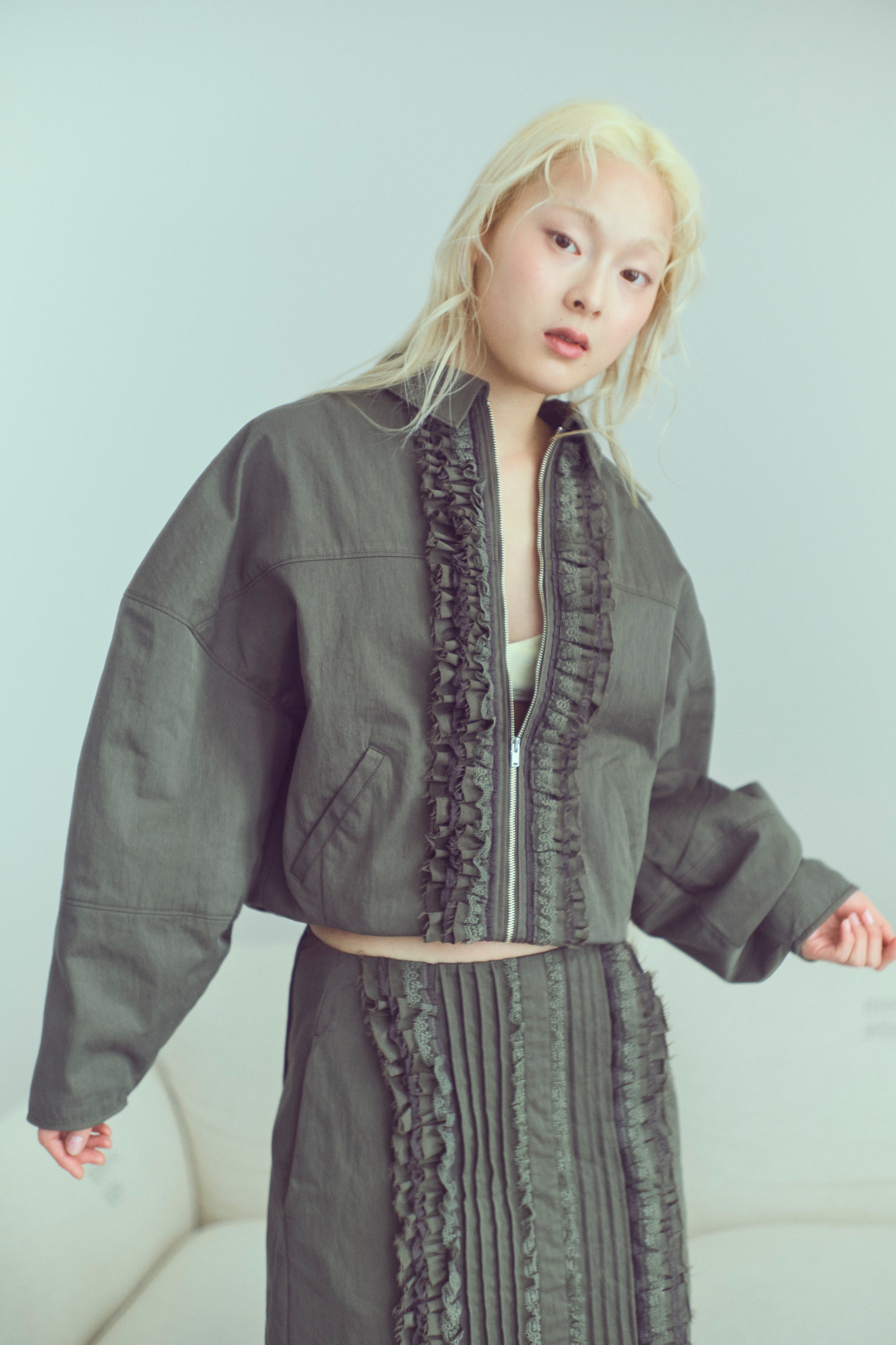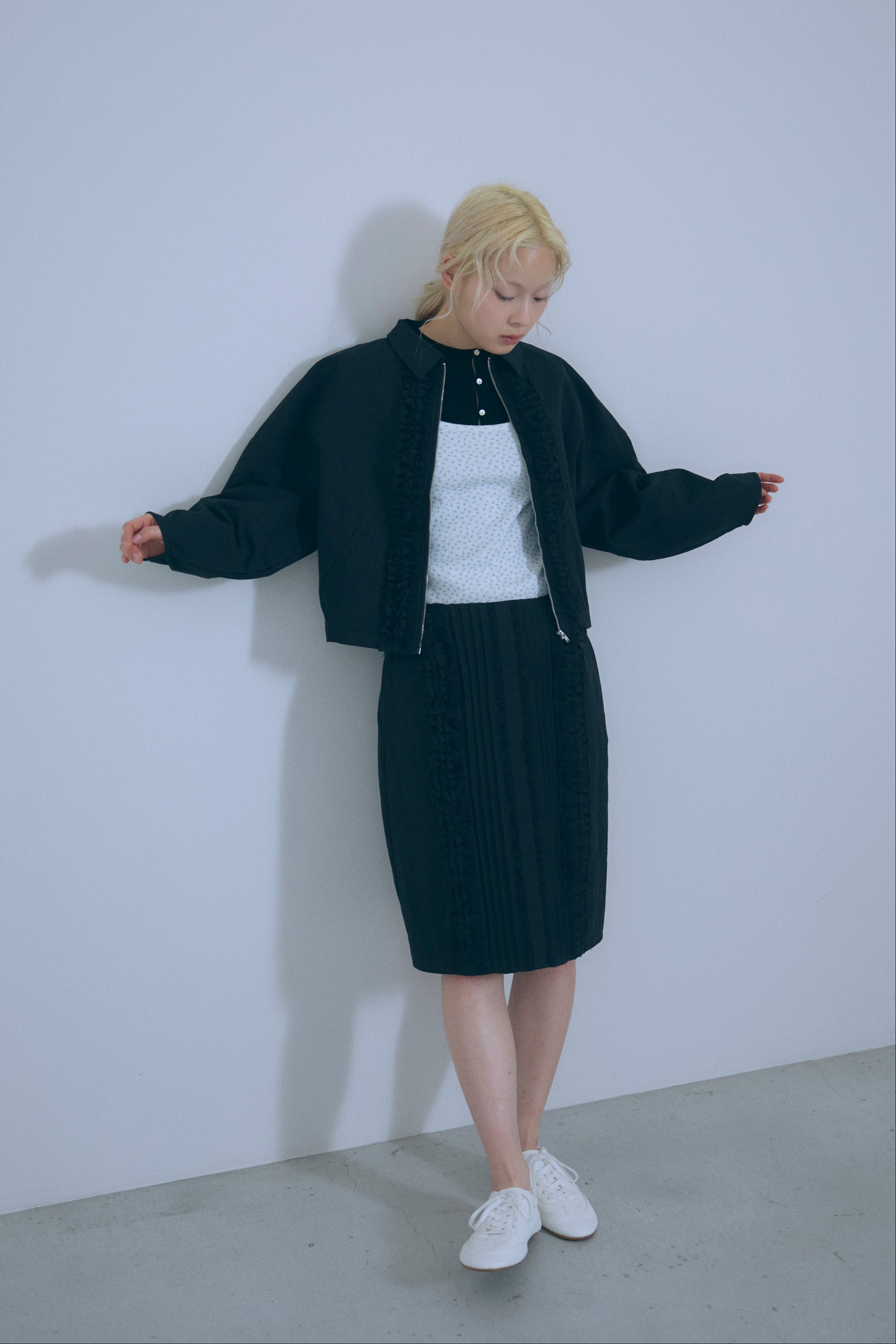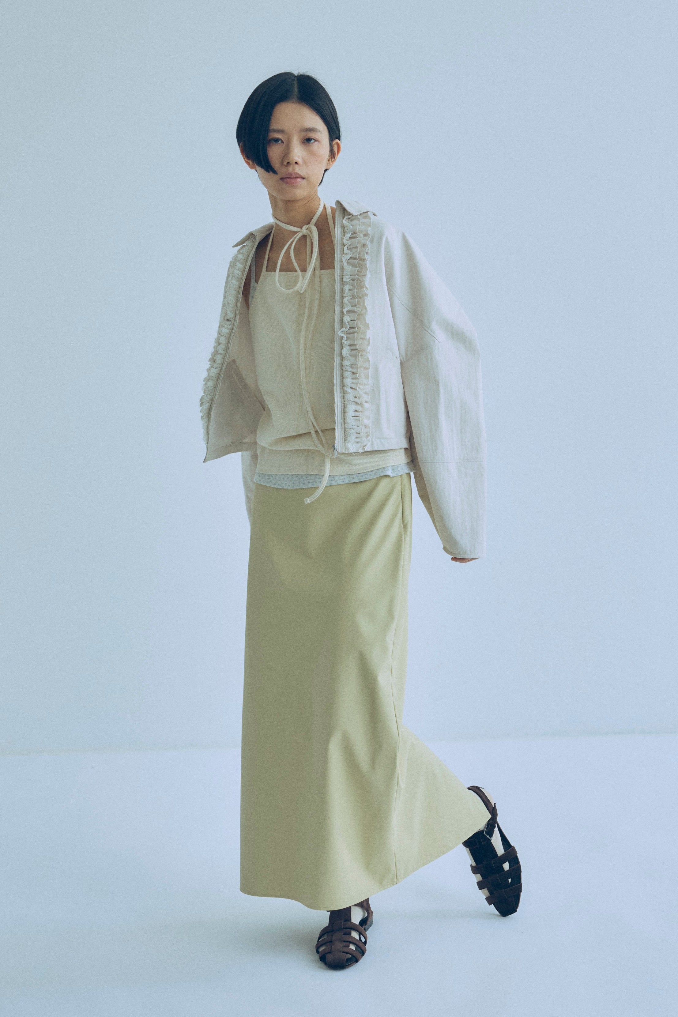 気軽に洗えて、デイリーに頼れるフェイクレザースカート 【Material】 しなやかで柔らかなフェイクレザー素材を使用。マットでほんのり起毛感のある質感が、ハードになりすぎず大人っぽい印象に仕上げます。ウォッシャブル仕様で、ご自宅で洗えるためお手入れも簡単。デイリーに気負わず取り入れやすい素材感です。 【Design】 膝下丈のナローシルエットで、女性らしいラインをきれいに演出しつつ、タイトすぎない設計で動きやすさも確保。ウエストはフロントをすっきりと見せ、バックはゴム仕様にすることで、見た目以上に快適な穿き心地を叶えています。きれいめにもカジュアルにも馴染む、バランスの取れたデザインです。 【Styling point】 コンパクトなトップスやクロップド丈アイテムと合わせれば、トレンド感のあるスタイリングに。シンプルなデザインなので、ニットやシャツ、アウターまで幅広く合わせやすく、シーズンレスに着回せるのも魅力です。