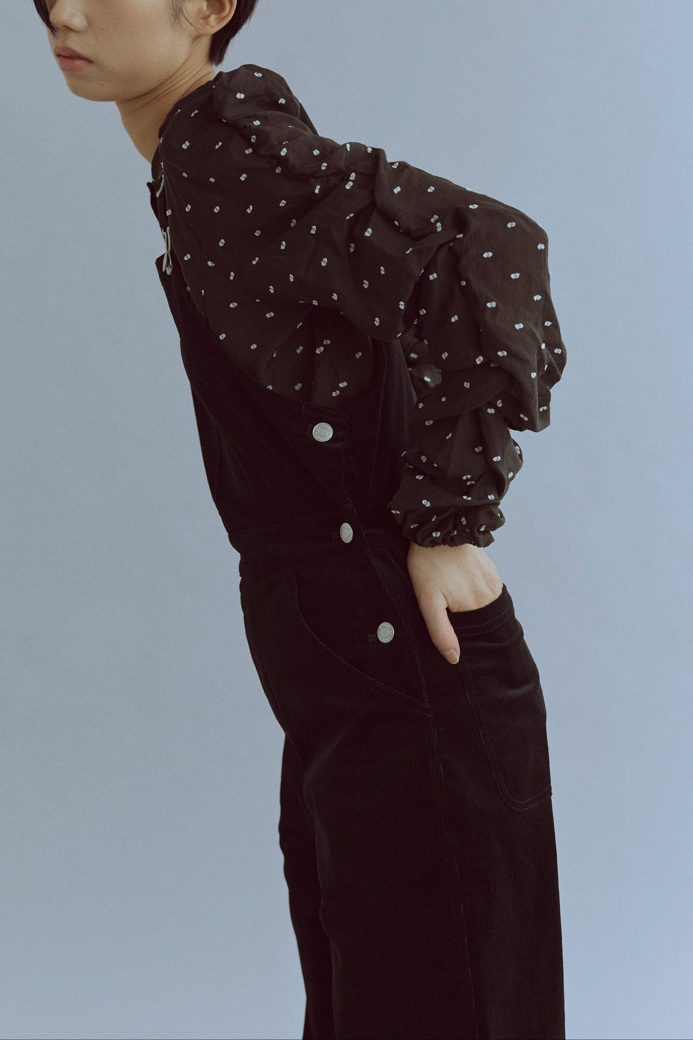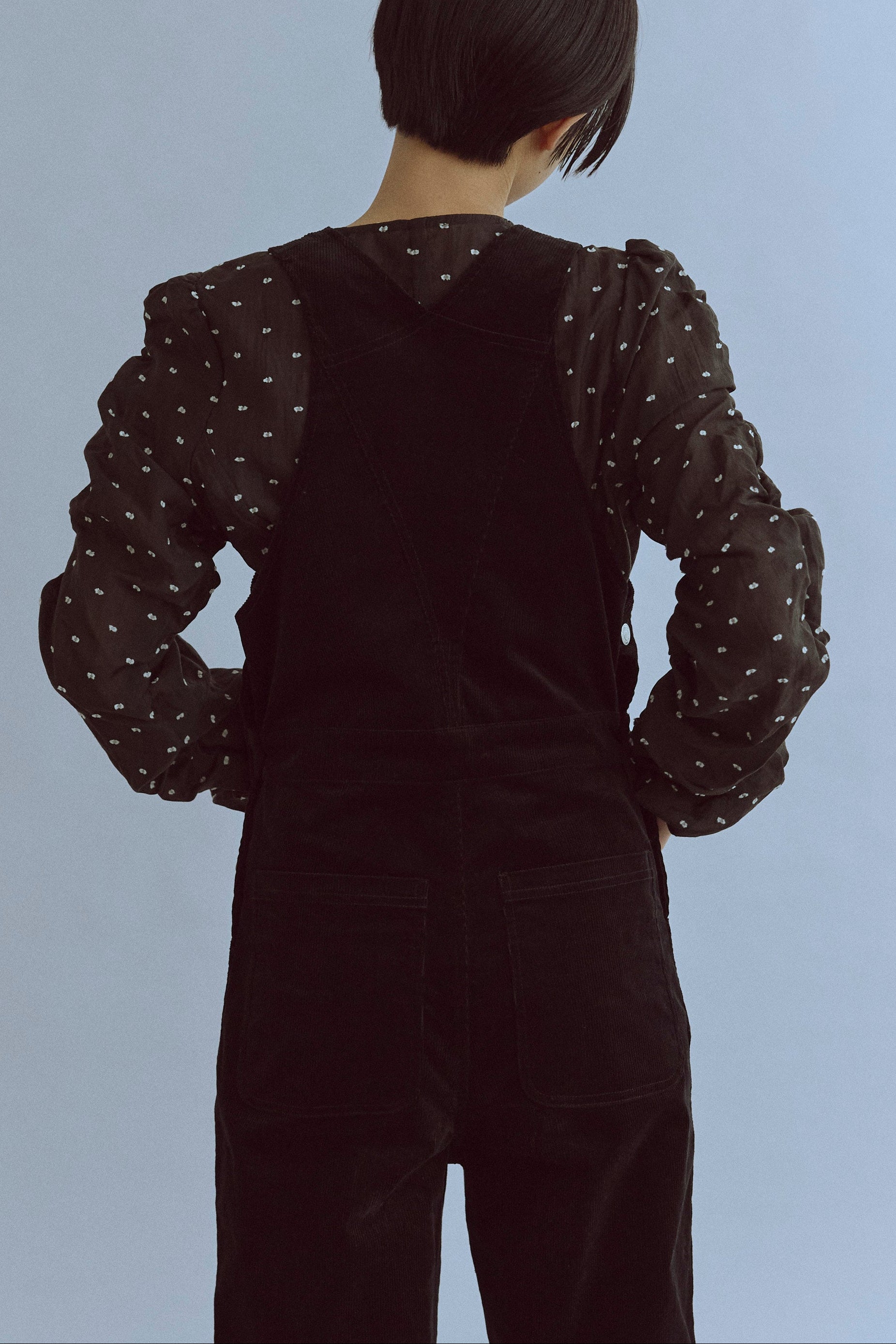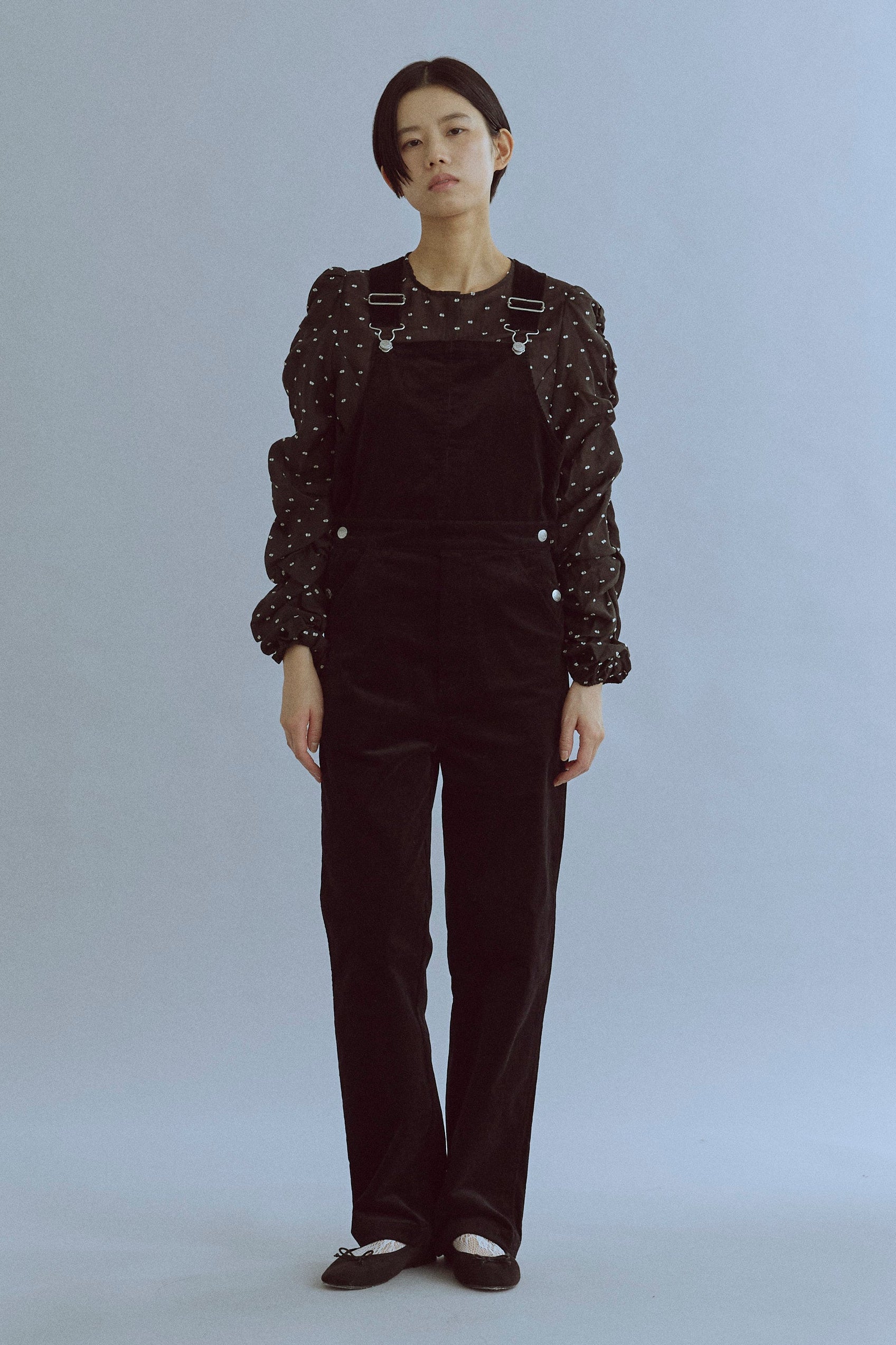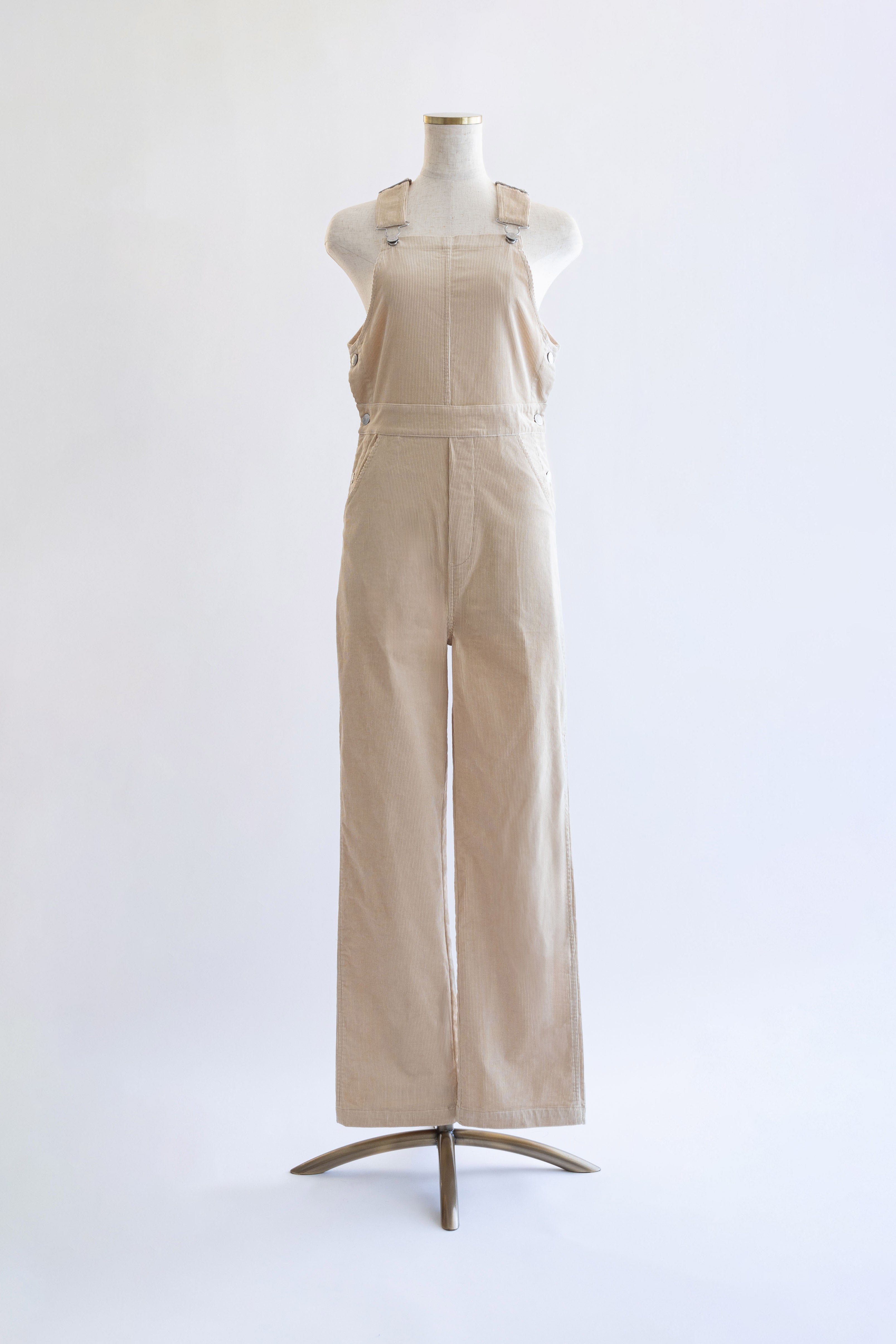 カジュアルな中に女性らしさをプラスしたオーバーオール 【Material】 程よい厚みと柔らかさを兼ね備えたコーデュロイ素材を使用。ハリ感もあり、すっきりとしたシルエットをキープしてくれます。 ストレッチ性もあるので、着用時もストレスを感じにくく快適に過ごせます。 【Design】 全体をコンパクトに仕上げたスリムシルエット。ボリュームが出やすいオーバーオールを、バランス良く着こなせるようなデザインです。カジュアルな印象の強いオーバーオールを、ミニマルなラインで大人も楽しめる一着にしました。 【Styling point】 ガーリーなアイテムとの組み合わせが相性抜群です。甘めのブラウスやバレエシューズ合わせの、スタイリングがおすすめ◎合わせるアイテム次第でシーズン問わず楽しめます。