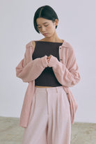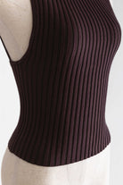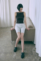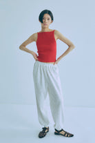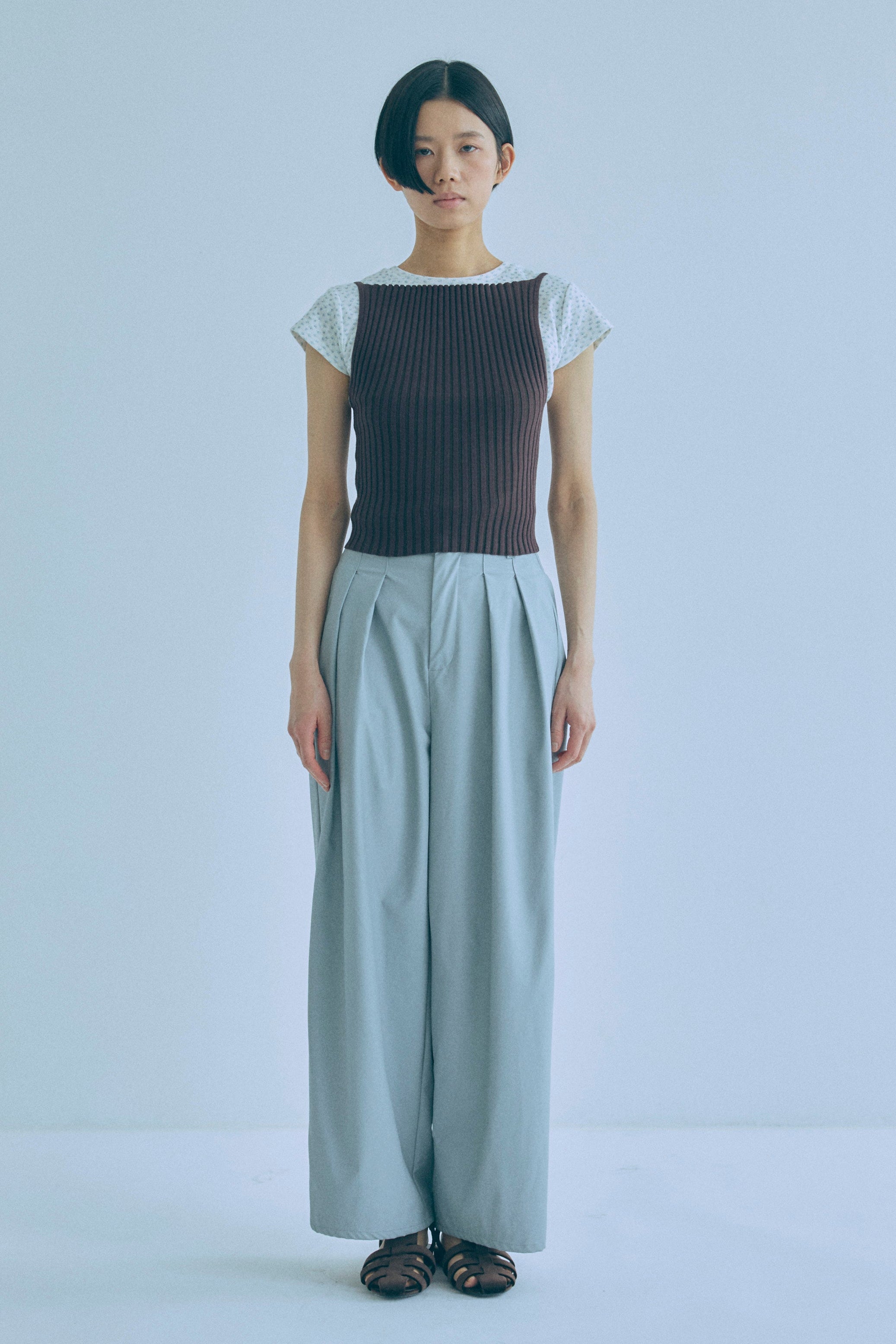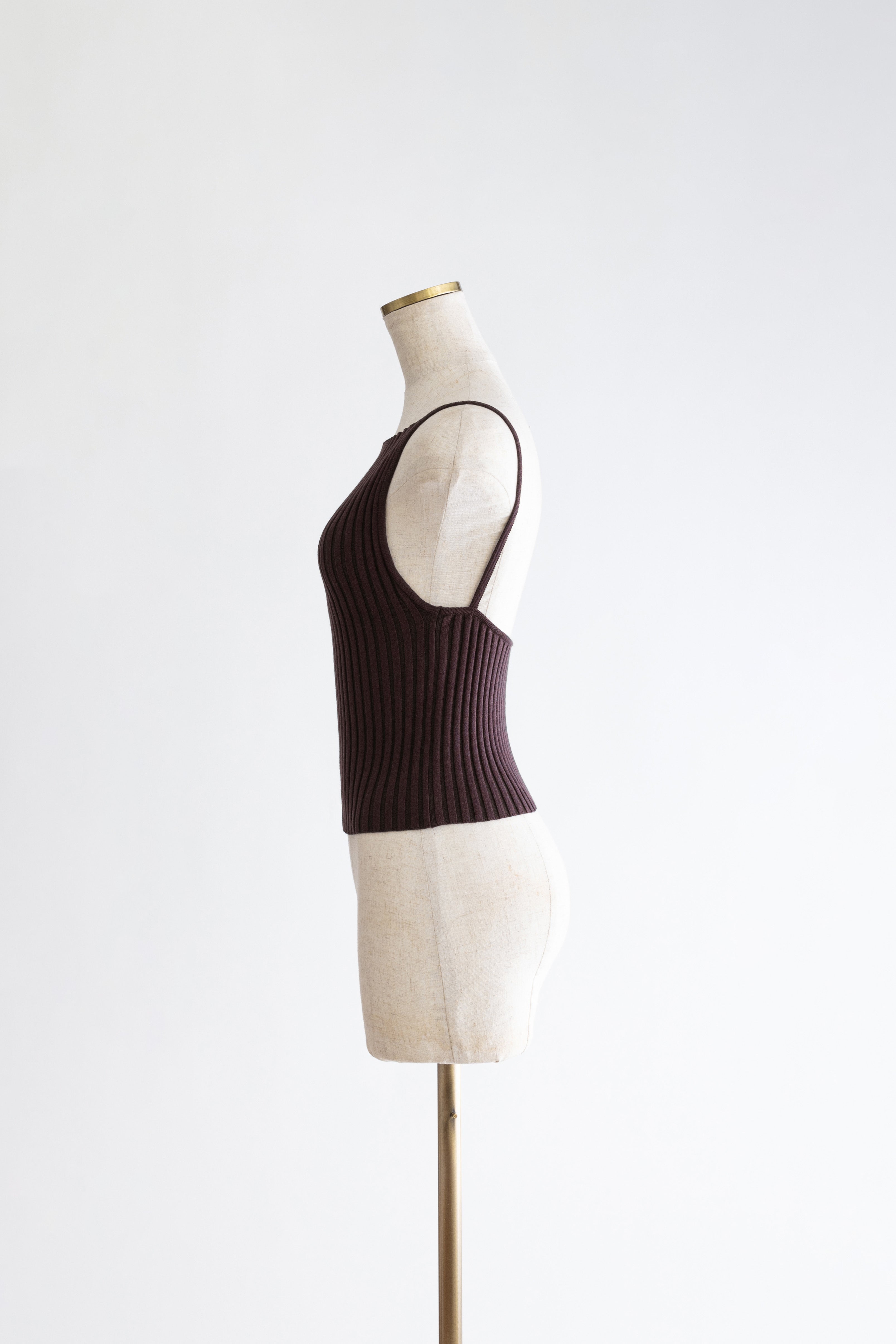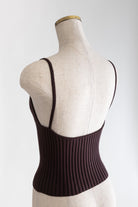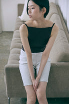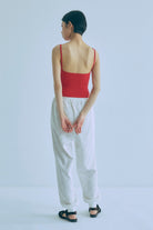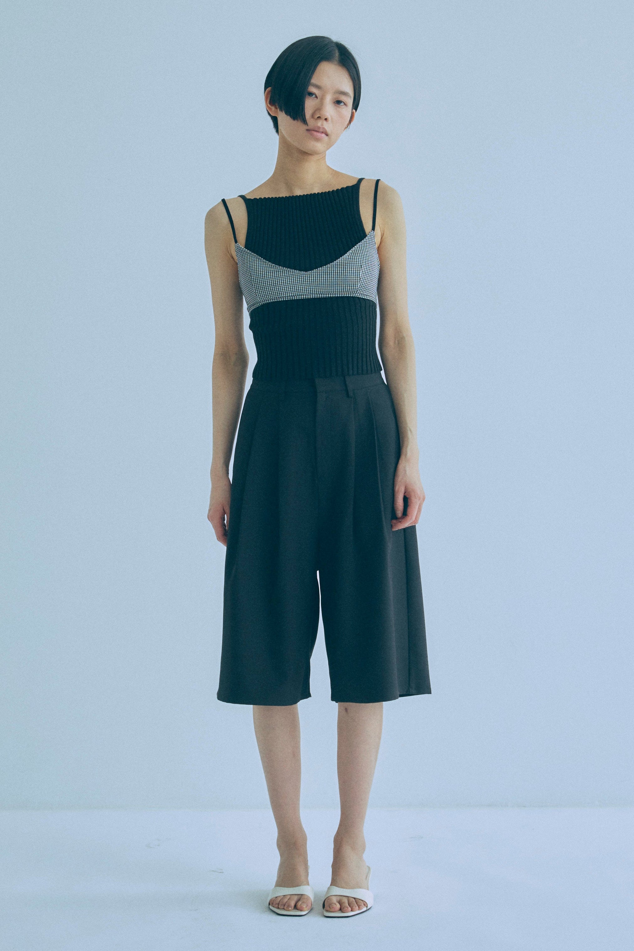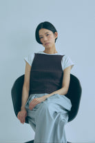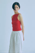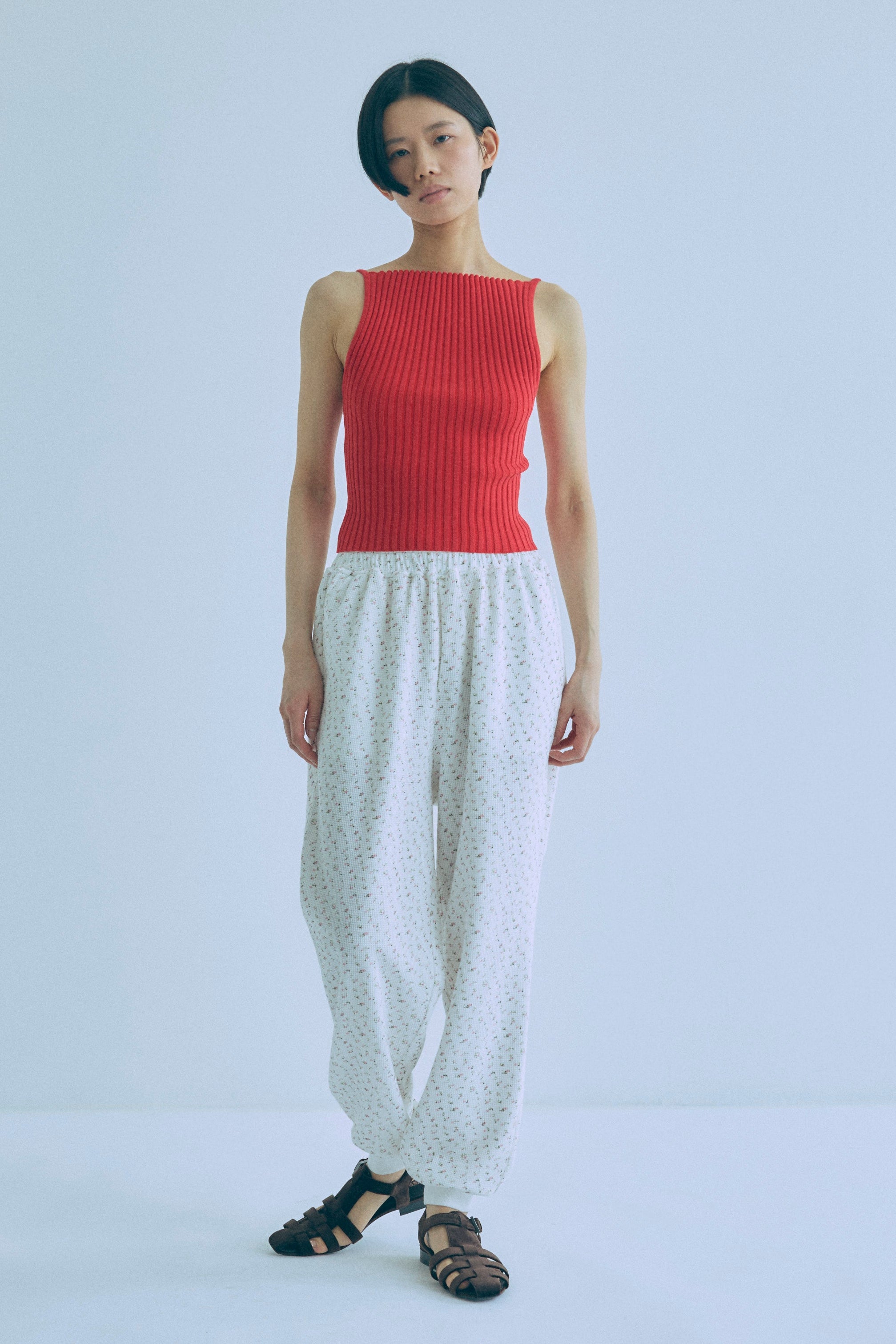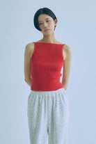 ボートネックが映える、華奢見えニットキャミ 【Material】 柔らかく伸びのあるリブニット素材を使用。体に心地よくフィットし、肌触りもやさしいため、長時間着用してもストレスを感じにくい着心地です。 【Design】 背中が大胆にあいたバックデザインがポイントで、さりげない女性らしい抜け感を演出。フロントはシンプルなボートネックにすることで、デコルテをすっきりと見せ、バランスの取れた印象に仕上げています。縦リブのラインが体のラインをきれいに見せ、華奢見えも叶える一枚。レイヤードにも活躍するデザインです。 【Styling point】 ボトムスを選ばず、幅広いスタイリングに対応。一枚で着るのはもちろん、シャツやカーディガンのインナーとして合わせれば、さりげなくデザイン性を効かせた着こなしが楽しめます。シーズンレスで活躍する万能ニットキャミです。