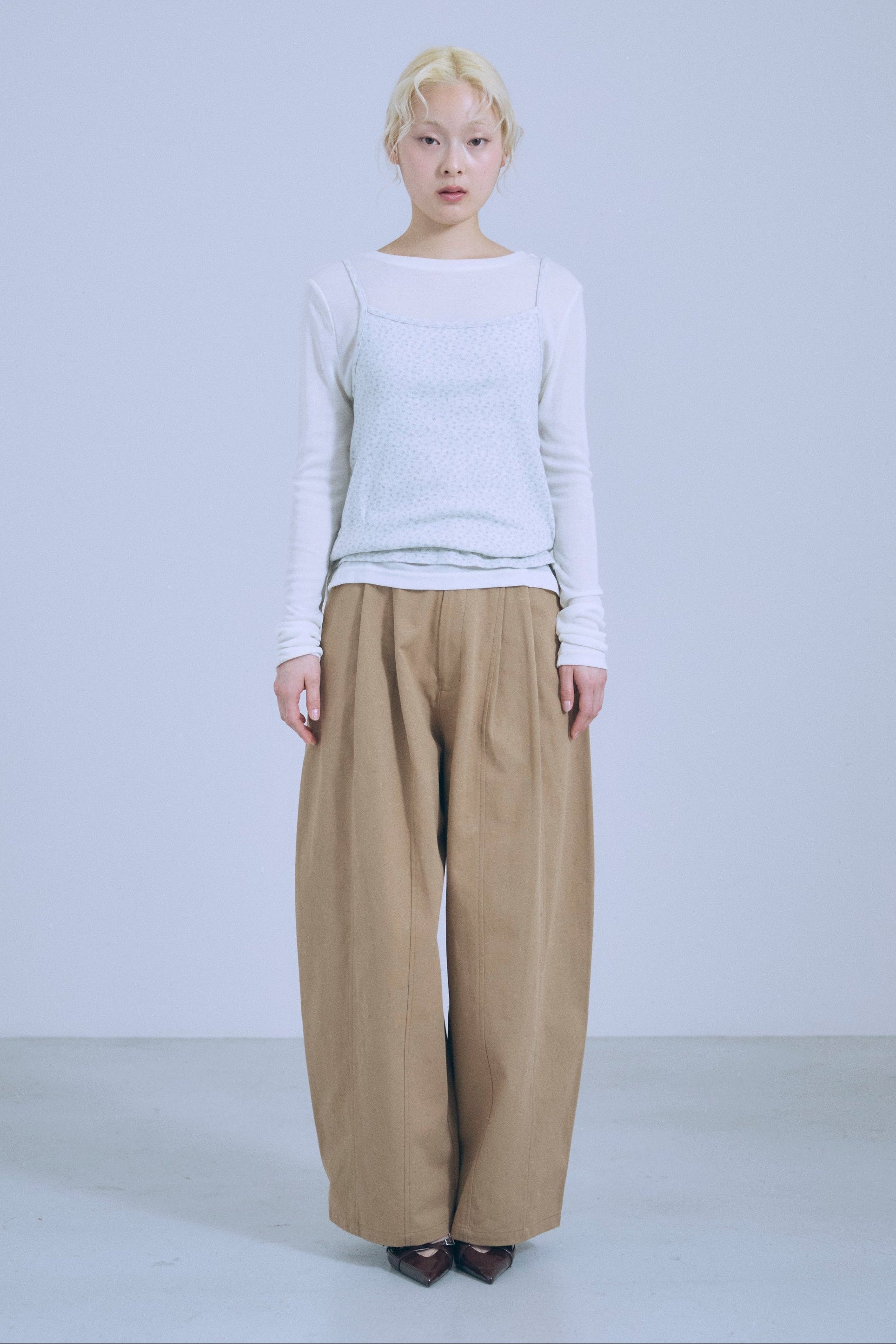 【Set Up】3Tuck Wide Tapered Trousers