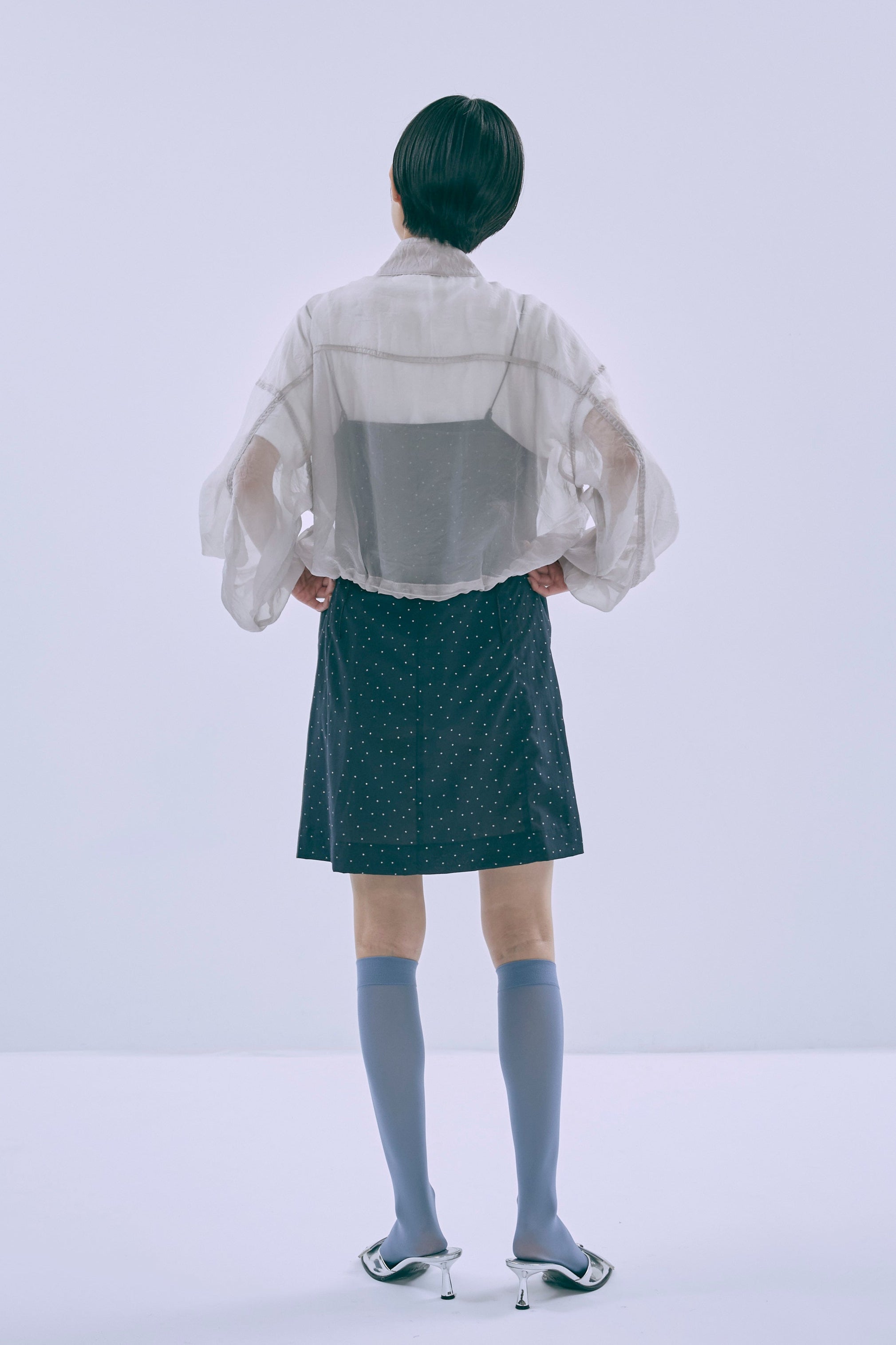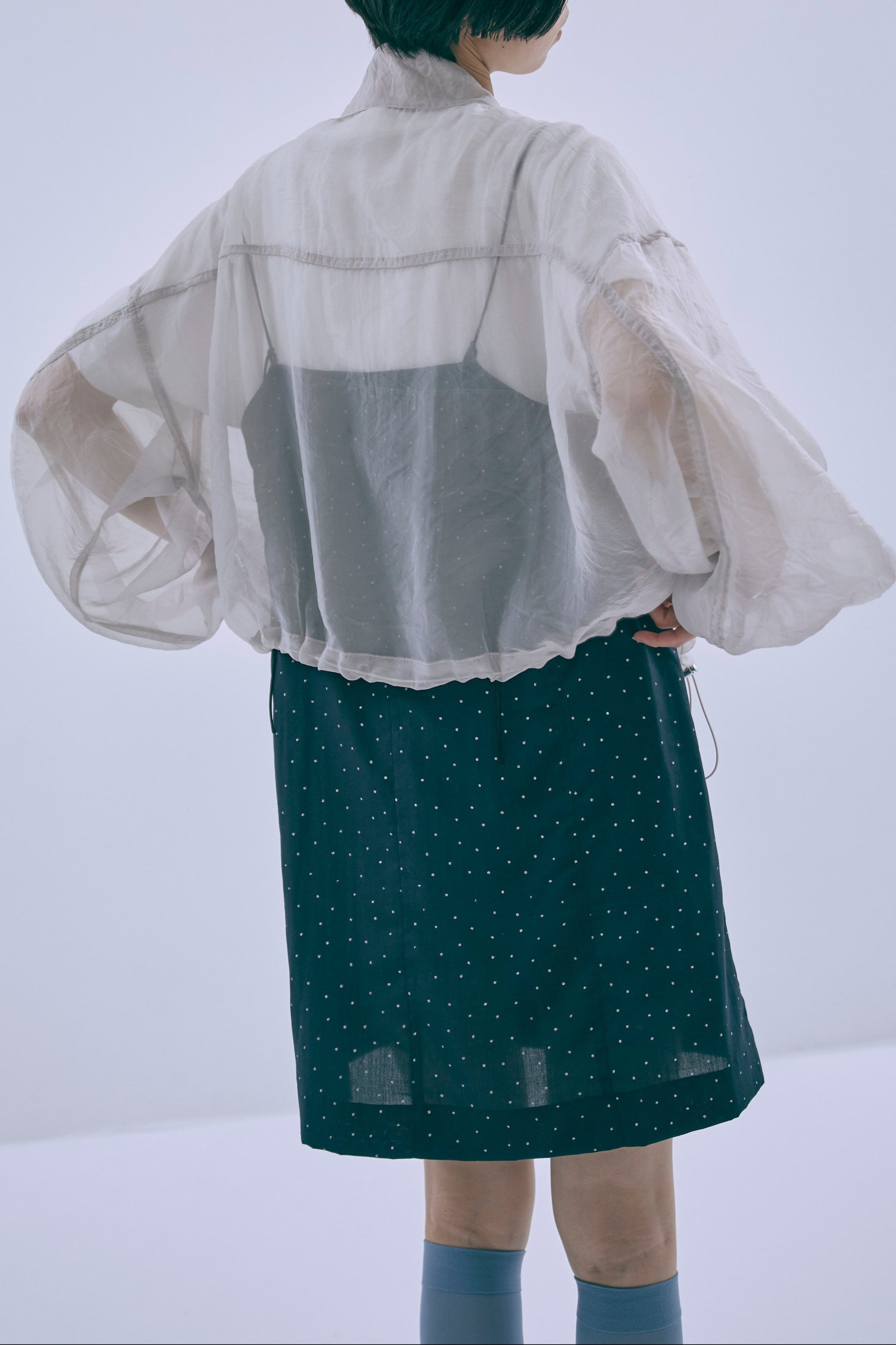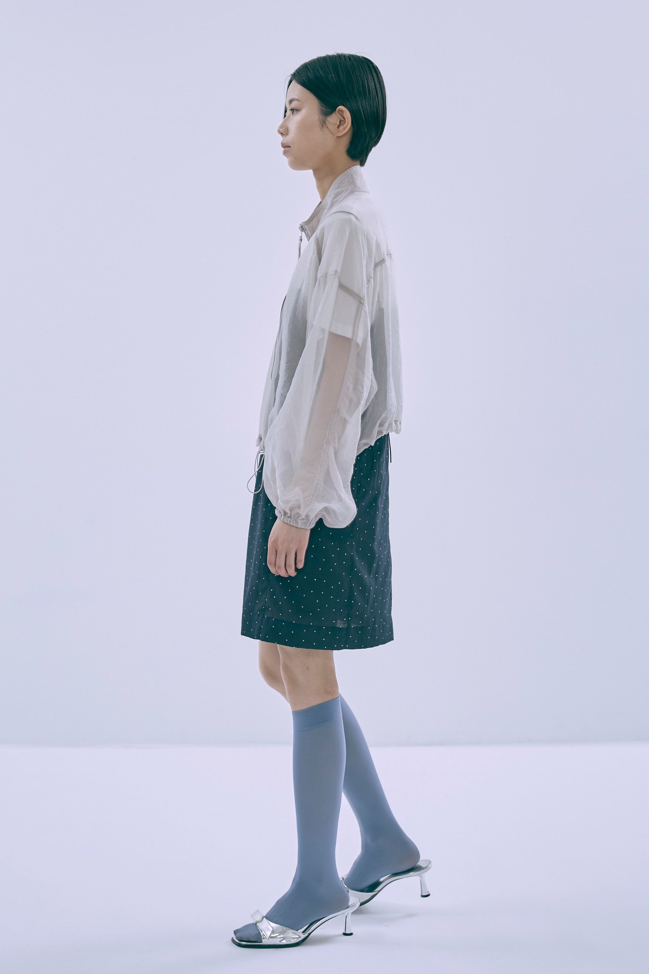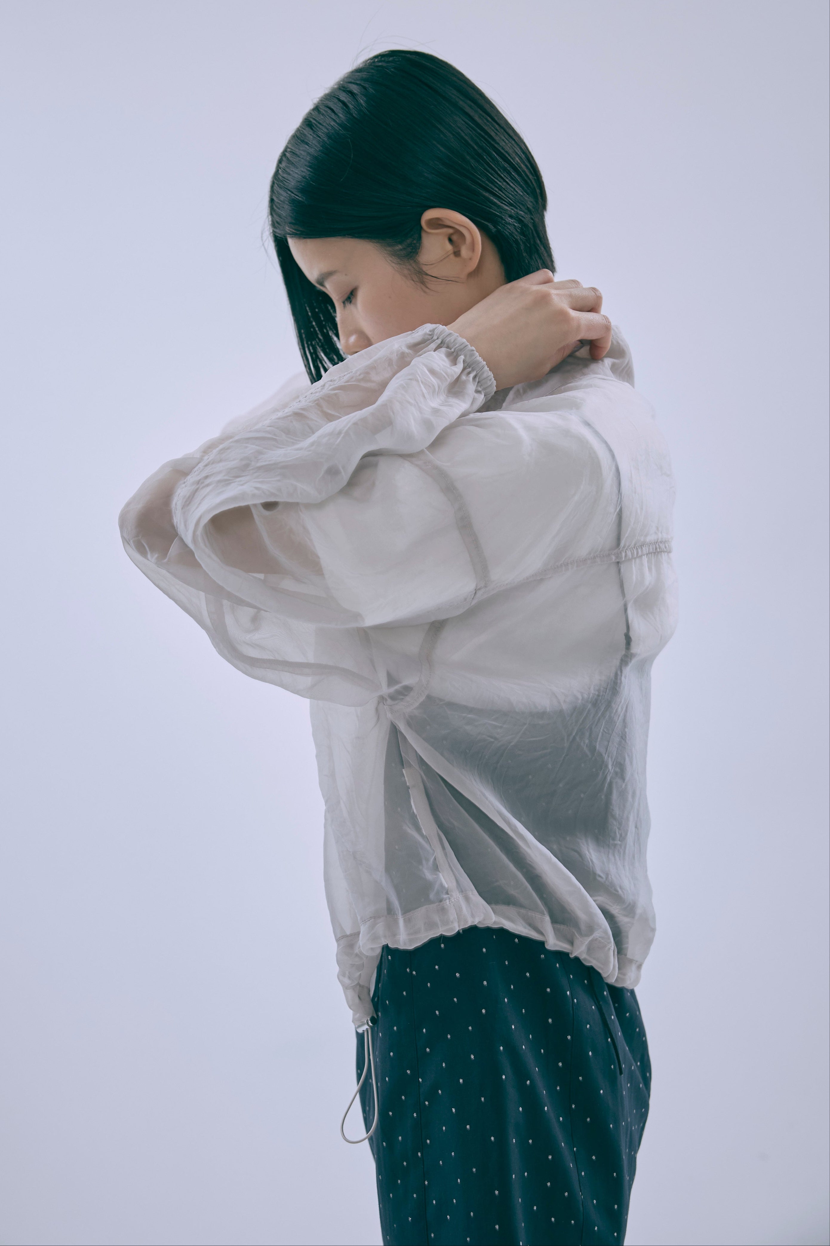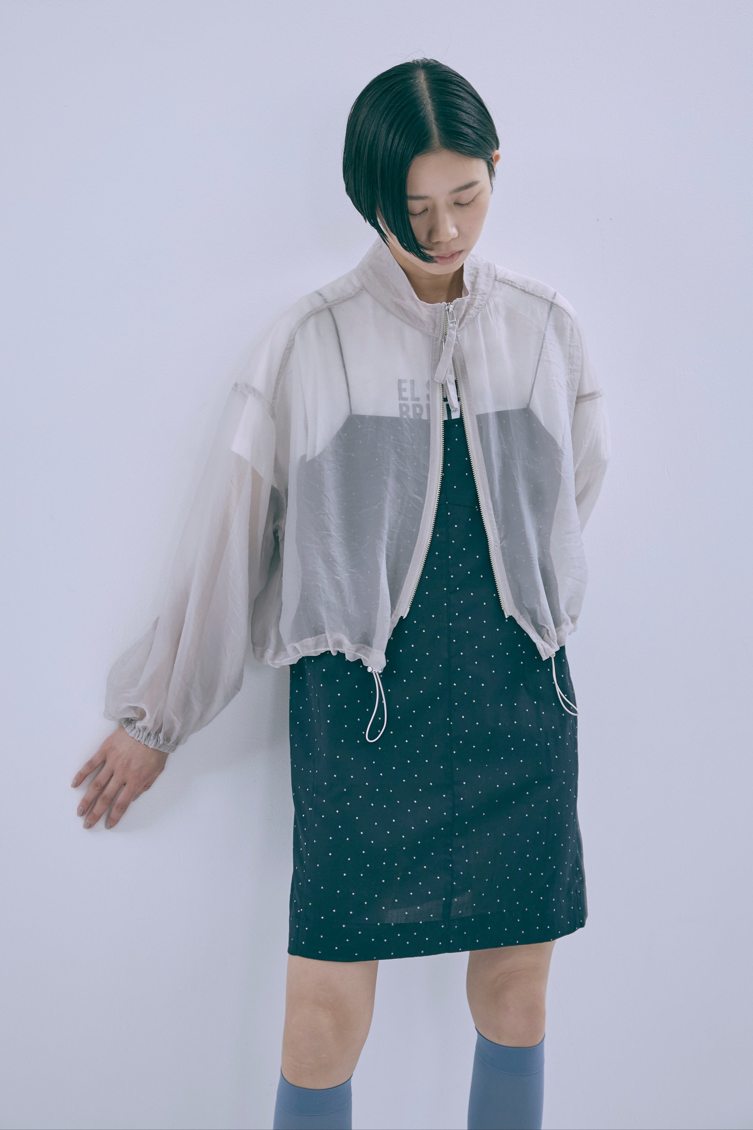 スタイリングを旬顔に仕上げる大人カジュアルブルゾン 【Material】 季節の変わり目にぴったりな、軽やかなシアー素材を使用したブルゾンです。 【Design】 タックを入れた袖がボリューム感たっぷりのショートブルゾン。袖口にはゴムが入り、裾にはドローコードが施されており、お好みに応じてシルエットを調整できます。フロントにはダブルジップを採用しています。 【Styling point】 ショート丈が特徴のこのブルゾンは、キャミワンピースにさらっと羽織るだけで、インナーを透かして遊んだりと、さまざまなスタイルを楽しめます。普段のコーディネートに新鮮な雰囲気を加えるアイテムです。