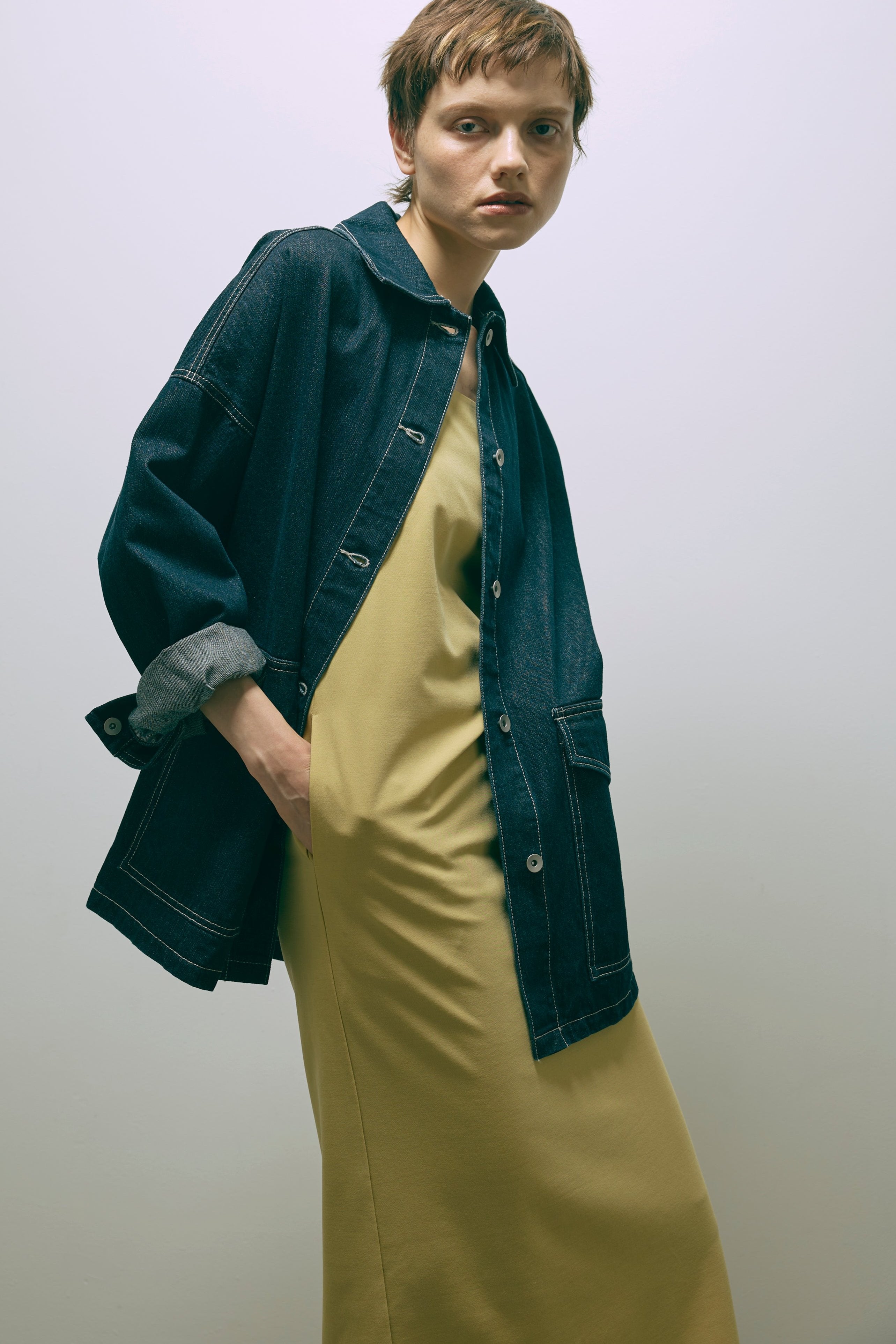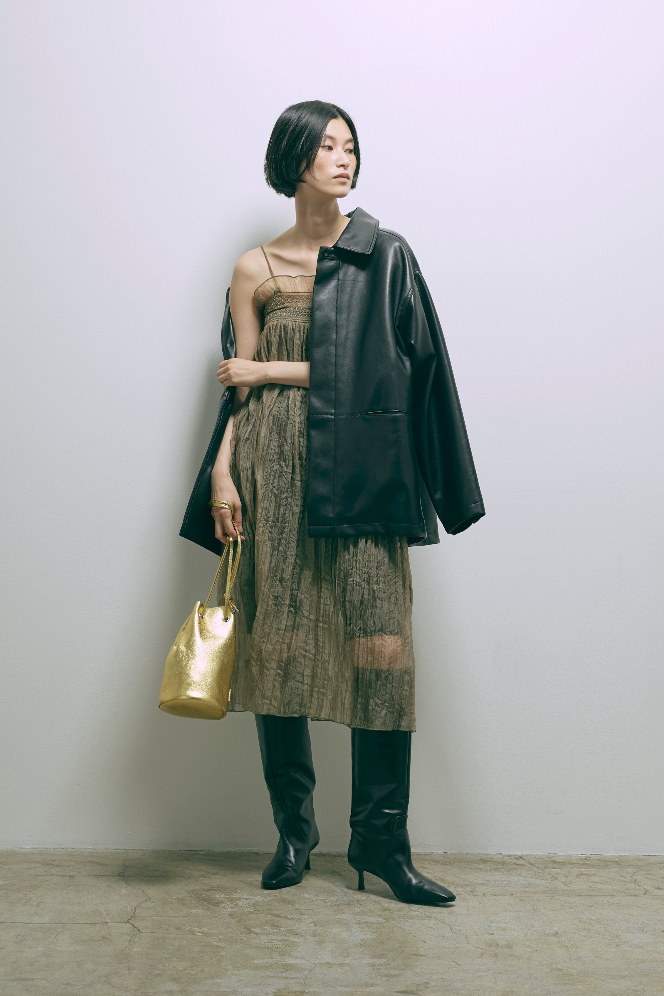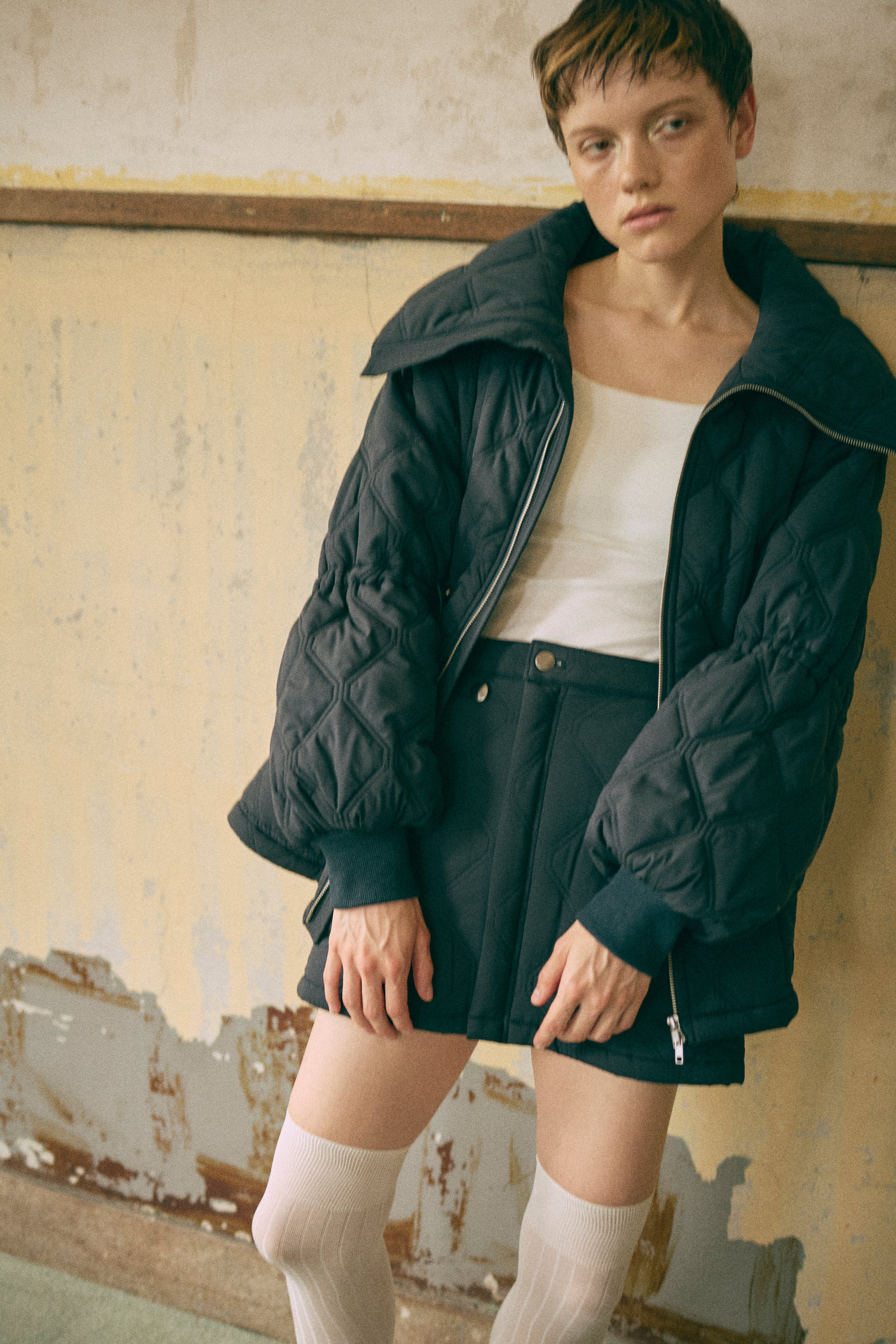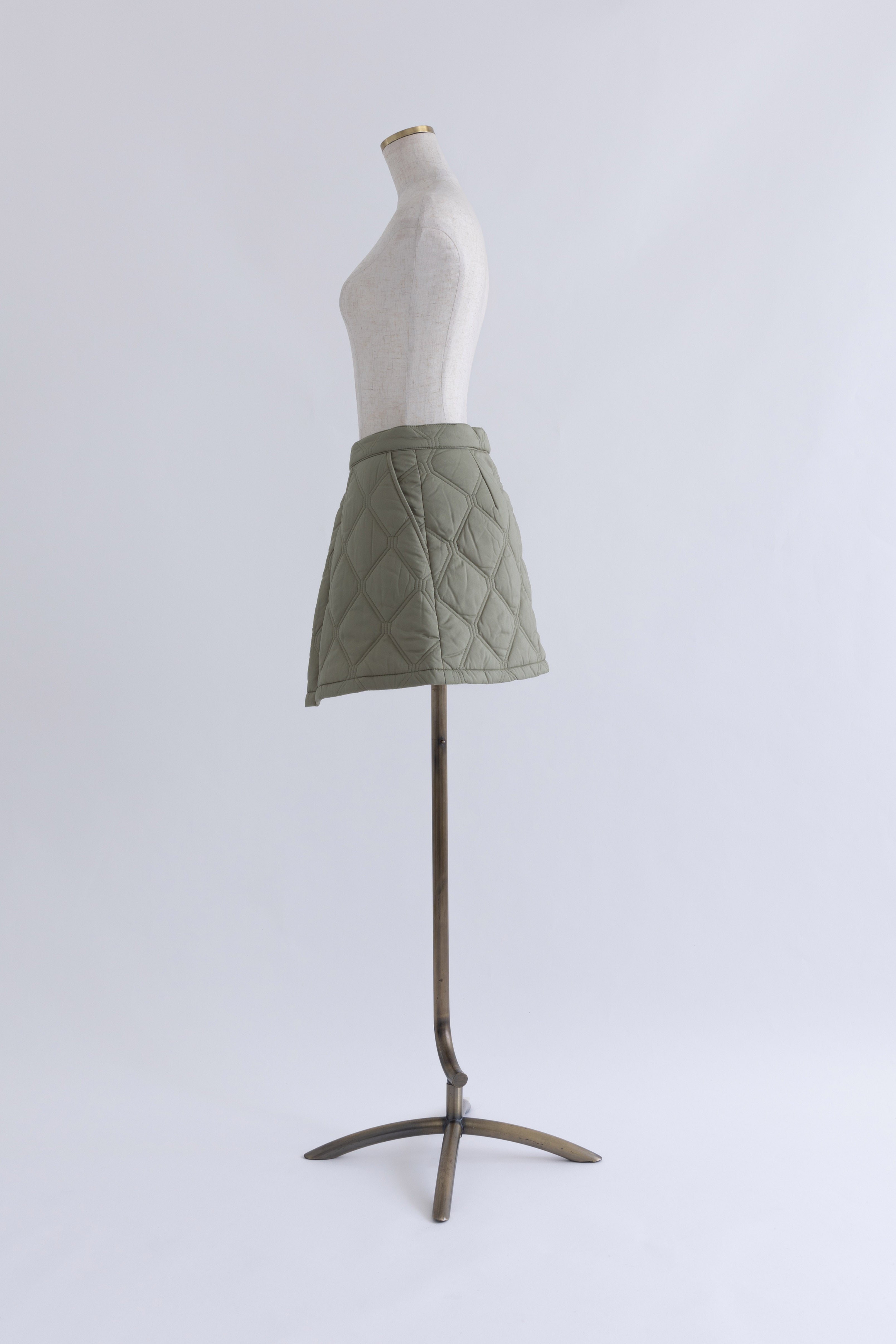 オリジナルのキルトデザインとビッグカラーがポイントのキルティングジャケット 【Material】 ふわふわと軽く、暖かい中綿素材を使用しています。 【Design】 シンプルながらも他にはない、すっきりとしたオリジナルのキルトデザインが魅力です。最大の特徴は、ウエスト部分のドロストを絞ることで、メリハリのあるシルエットを作り出せる点です。大きな襟とお袖のデザインも印象的で、スタイリングにアクセントを加えます。 【Styling point】 ボリューム感のあるアウターなので、すっきりとしたボトムスとのコーディネートがおすすめです。ウエストのドロストを調整して、気分やスタイリングに合わせたシルエットをお楽しみください。 ◇同素材で下記ご用意しております。 Quilting Muffler(品番:97010) 2Way Quilted Wrap Mini Skirt(品番:94012)