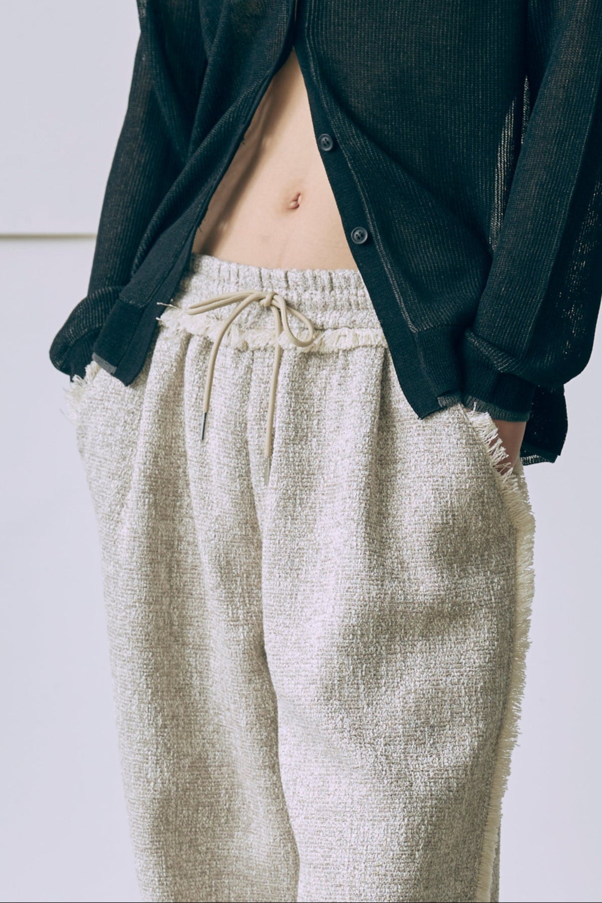 カジュアルにも楽しめるツイードジャケット 【Material】 重厚感のあるクラシックな印象のツイード素材。 適度な肉感で、きれいめでありながら粗野な表面感がポイントです。 【Design】 フリンジデザインで華やかな印象のツイードライクジャケット。 ゆとりのあるオーバーサイズが大人のこなれ感をプラスし、コンサバになりすぎないツイードジャケットにしました。 袖幅やアームホールはしっかり着こめるサイズ感に設定しているので、長いシーズン着られ、着回しの幅が広がります。 合わせるアイテムを変えて、お仕事はもちろん、セレモニーなど様々なシーンで活躍します。 【Styling point】 ミニスカートやショートパンツに合わせて大人のミニ丈スタイリングをお楽しみいただくのがおすすめです。 デニムなどカジュアルボトムにもおすすめです。 ◇同素材で下記ご用意しております。 Tweed Easy Pants(品番:93015)