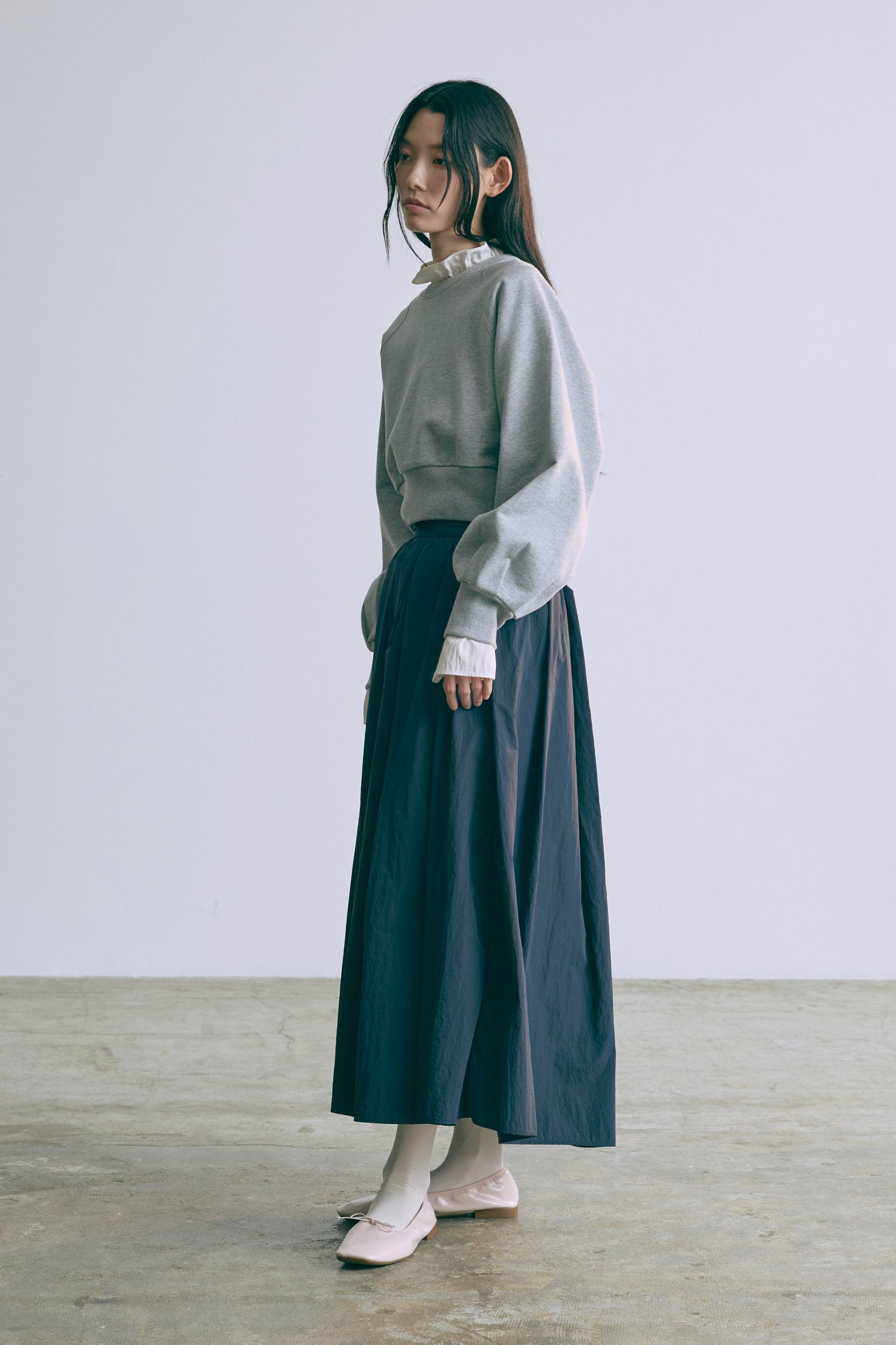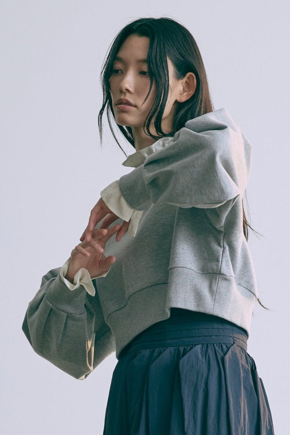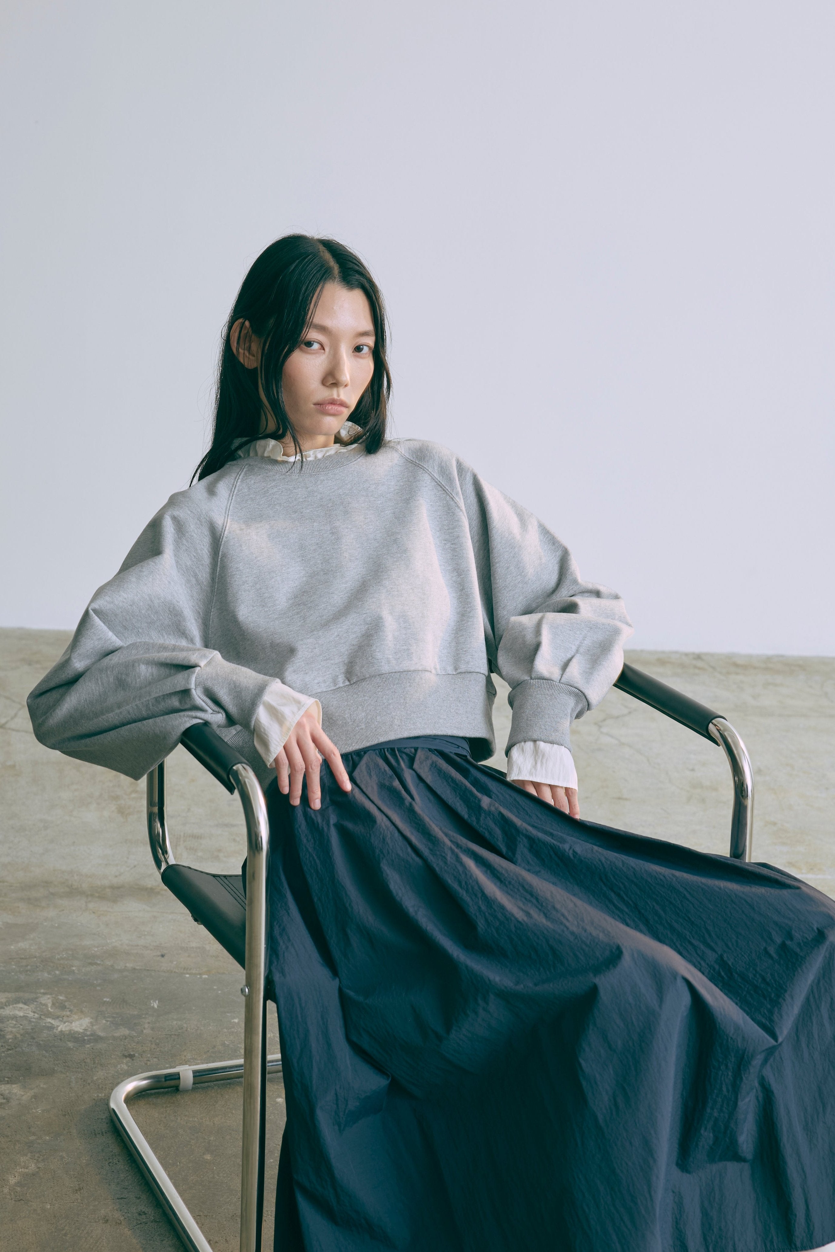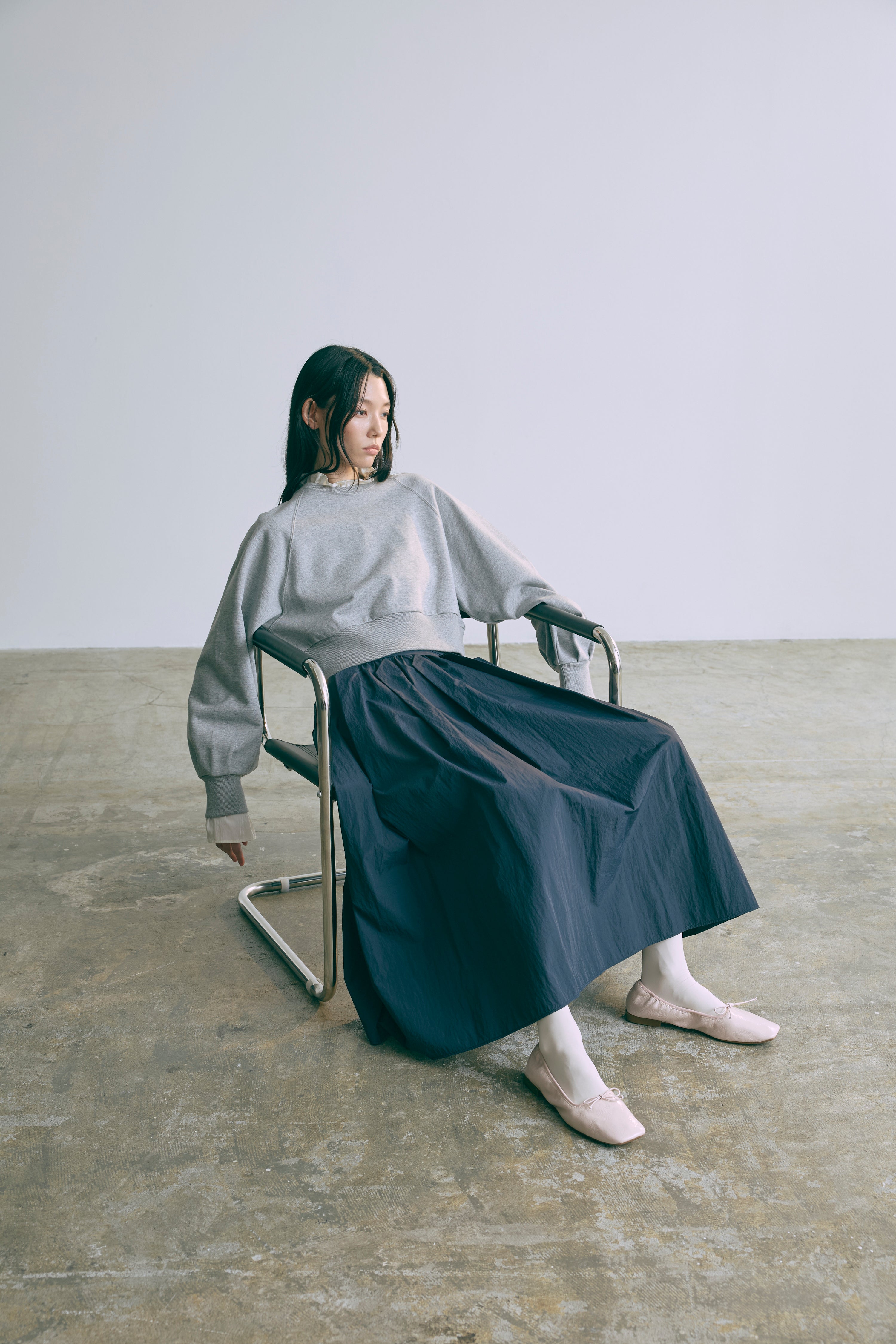 無駄を省いた大人のフリルブラウス 【Material】 上品な光沢感がありつつも、表面のしわ感がヴィンテージライクな印象のニュアンスを生み出します。 適度なハリと落ち感を併せ持った素材感により馴染み良く、着心地抜群です。 【Design】 フロントのタックと首元のフリルにこだわり、ふんわりとしたシルエットに仕上げました。袖は指先までかかる長めのフレアスリーブで、内側にスリットを入れることで程よい抜け感を演出しています。一枚で着ても、インナーとしても映える大人のフリルブラウスです。 【Styling point】 一枚でさらりと着るのはもちろん、ニットのインナーとしても活躍します。ボトムスはデニムやワイドパンツなど、少しメンズライクなアイテムと合わせたMIXスタイルがおすすめです。 ◇同素材で下記ご用意しております。 Gathered Volume Blouse(品番:91009) Volume Sleeve Soft Flare Dress(品番:95004)