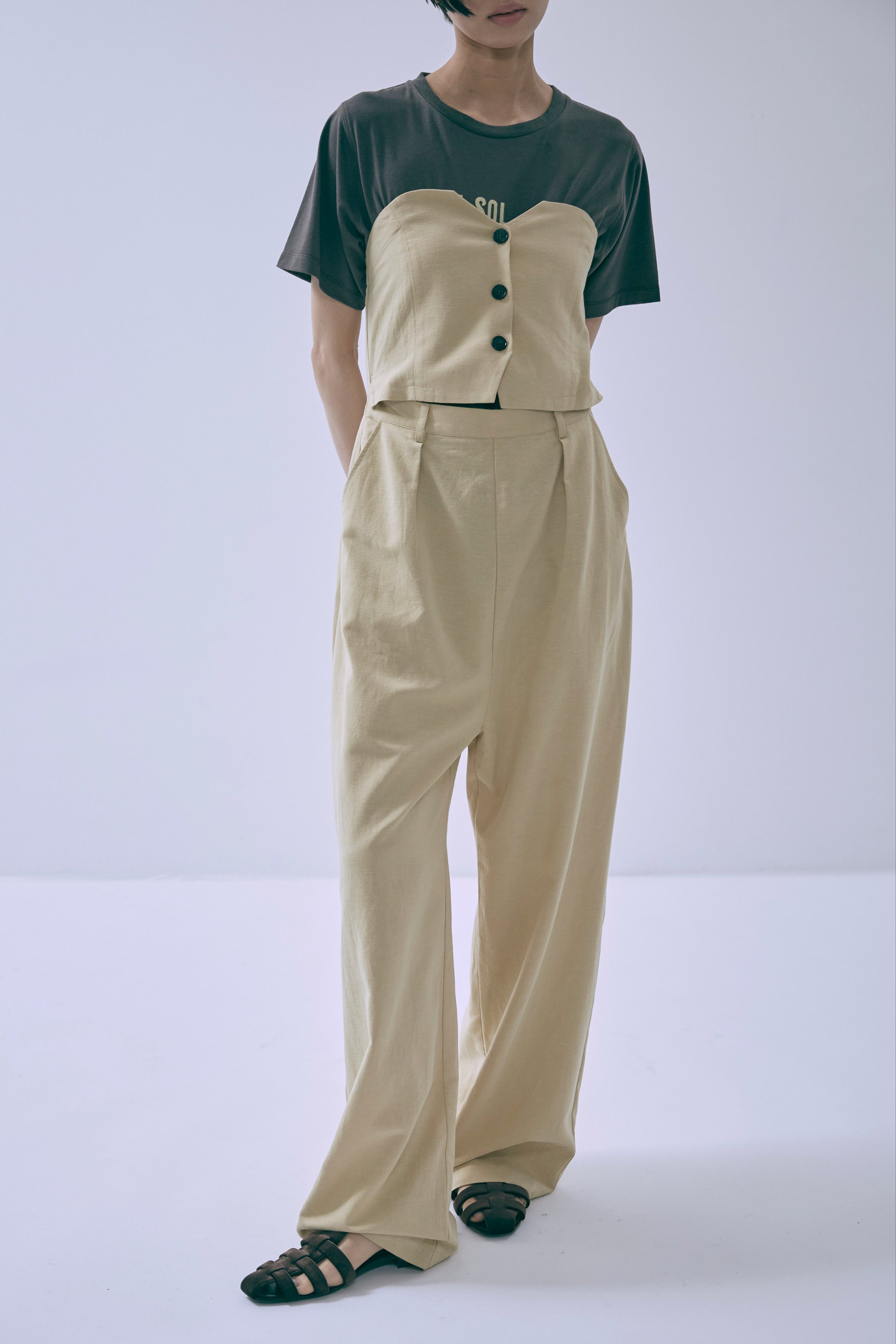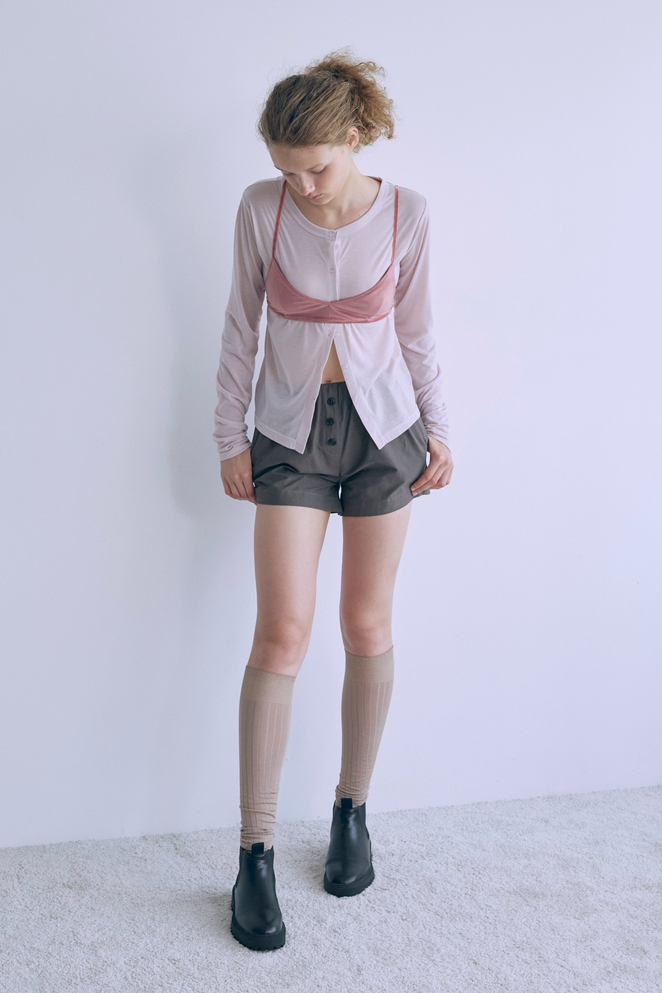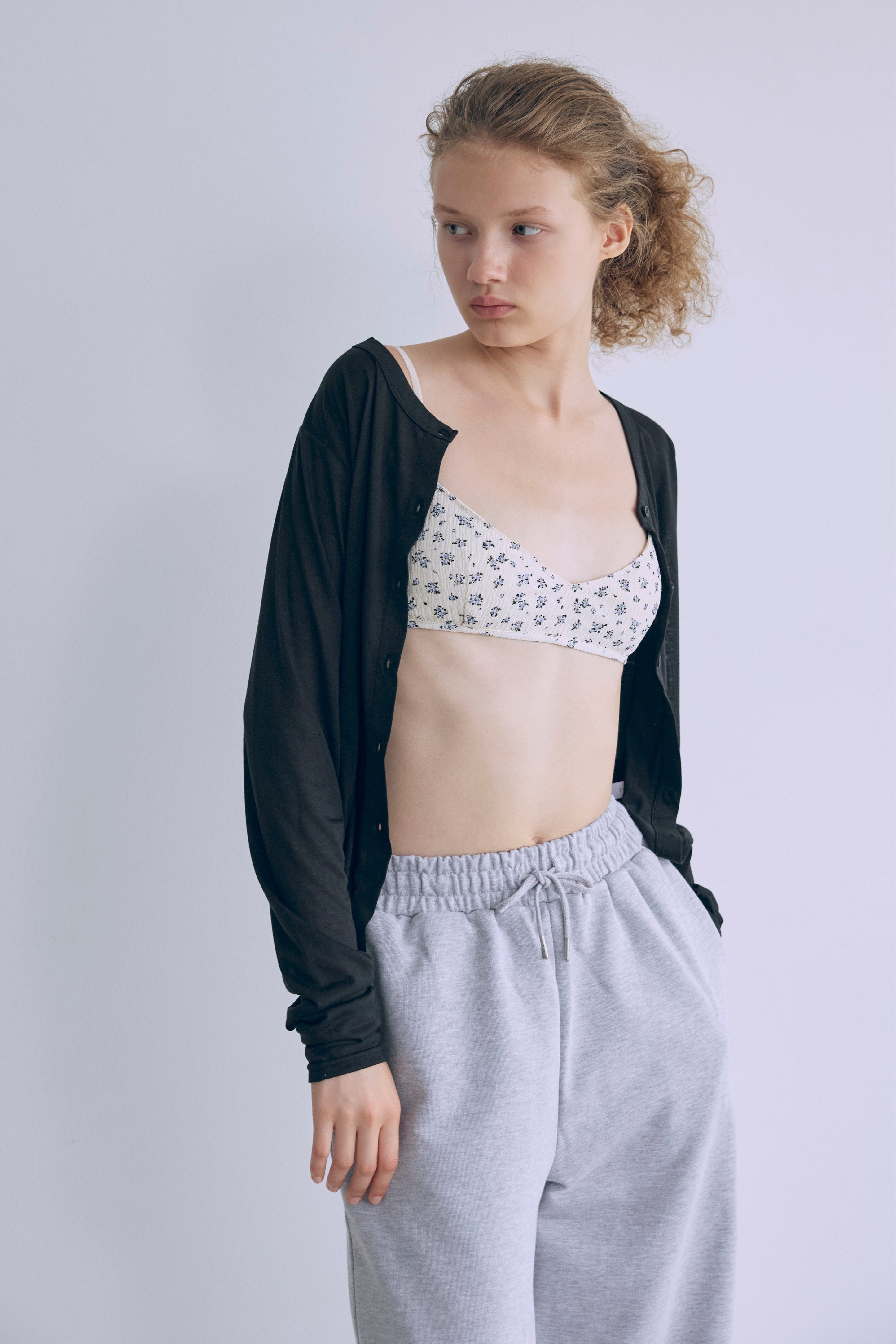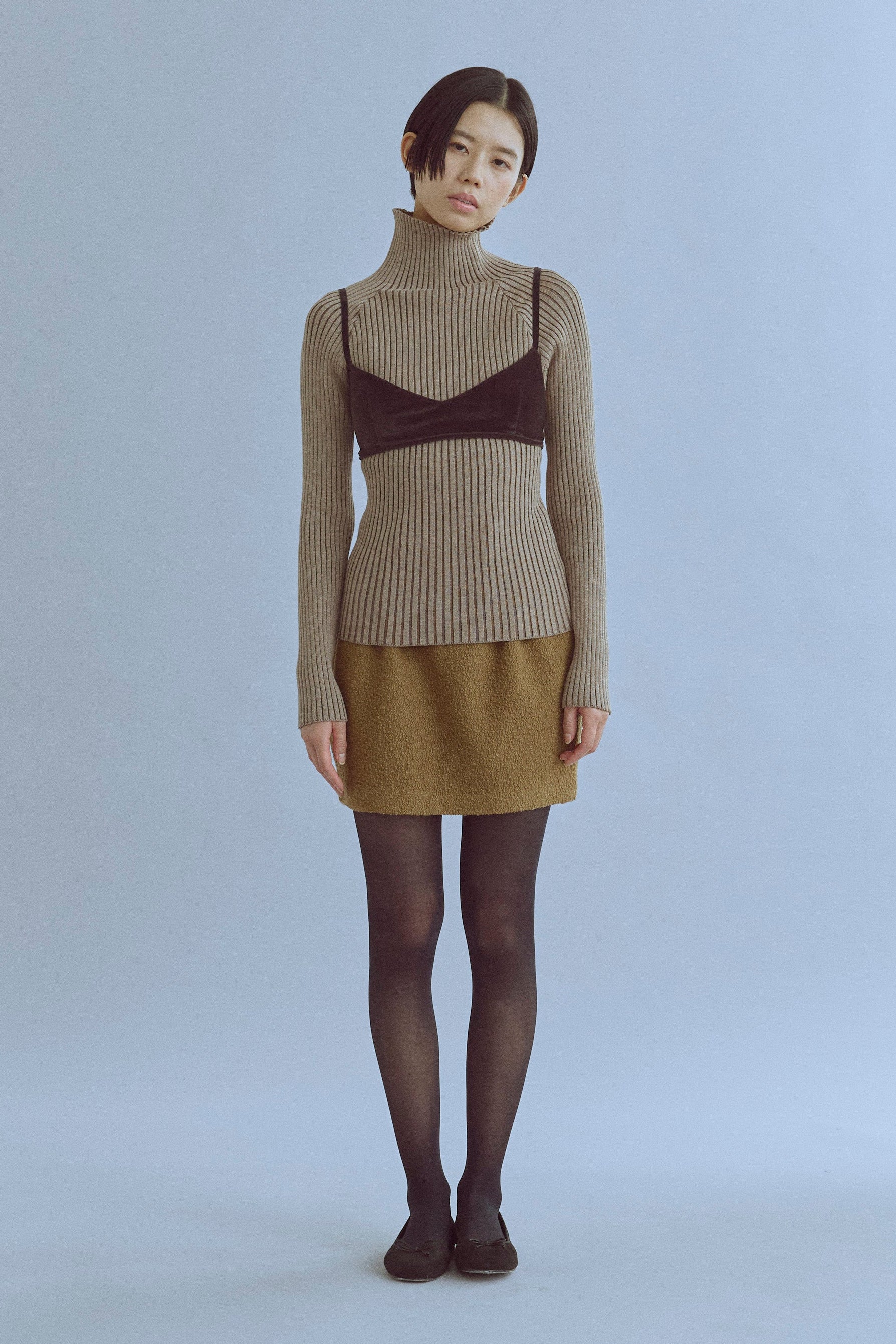 インにもアウトにも。着こなし自在なベロアブラトップ 【Material】 やわらかな肌ざわりと上品な微光沢が魅力のベロア素材を使用。ほどよい厚みでシーズンレスに着回せます。 【Design】 ビスチェ感覚で着られるブラトップ。カップは取り外し可能で、シーンや気分に合わせて調整できるのも嬉しいポイントです。 【Styling Point】 シャツやTシャツの上にレイヤードすれば、旬なスタイリングに。透け感トップスのインナーとしても活躍し、さりげなく覗かせるだけでこなれた印象に仕上がります。インナー見えしないデザインだから、1枚で着てもスタイリッシュに決まります。