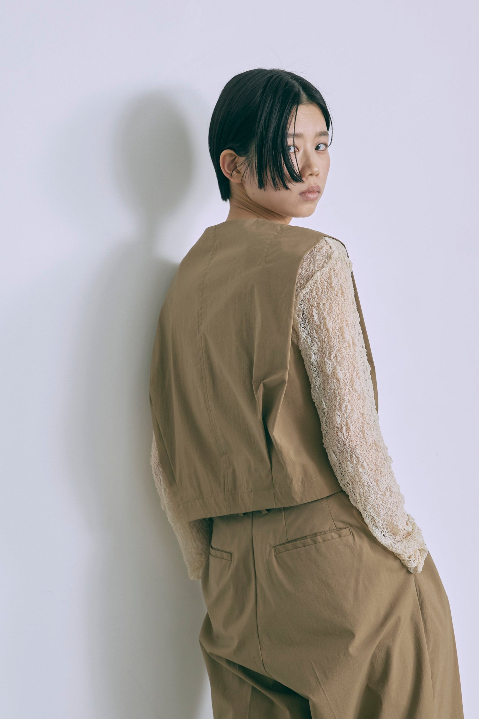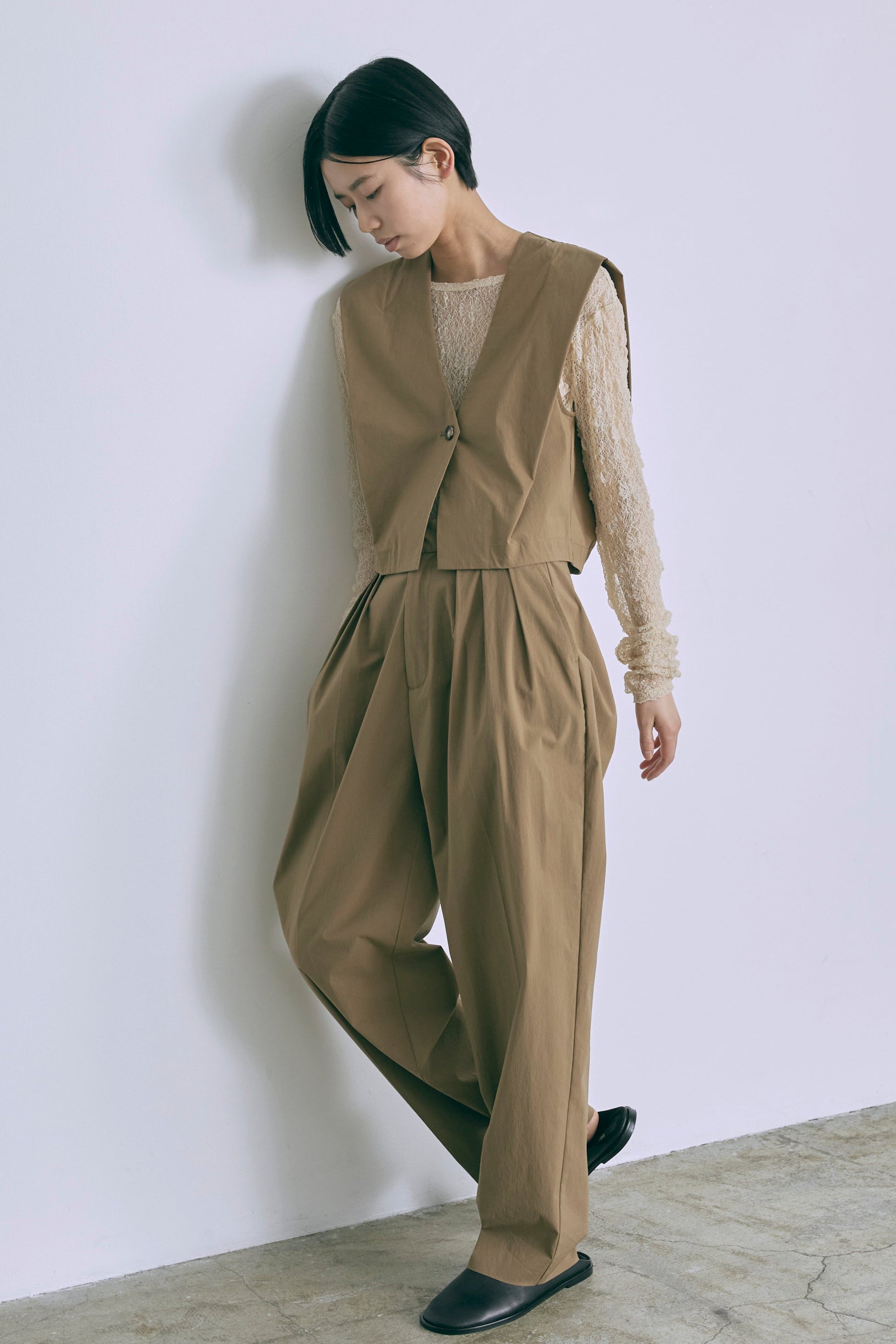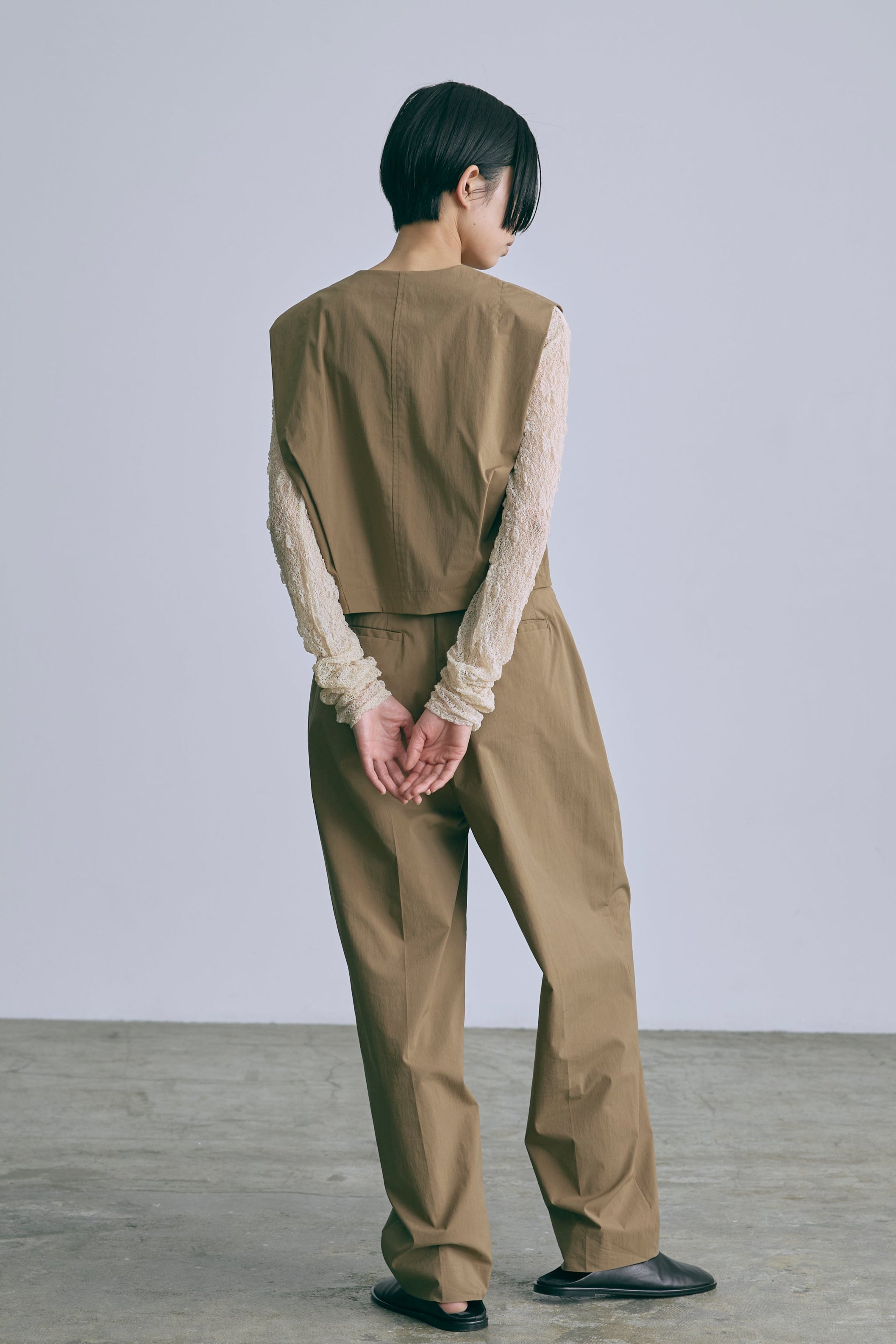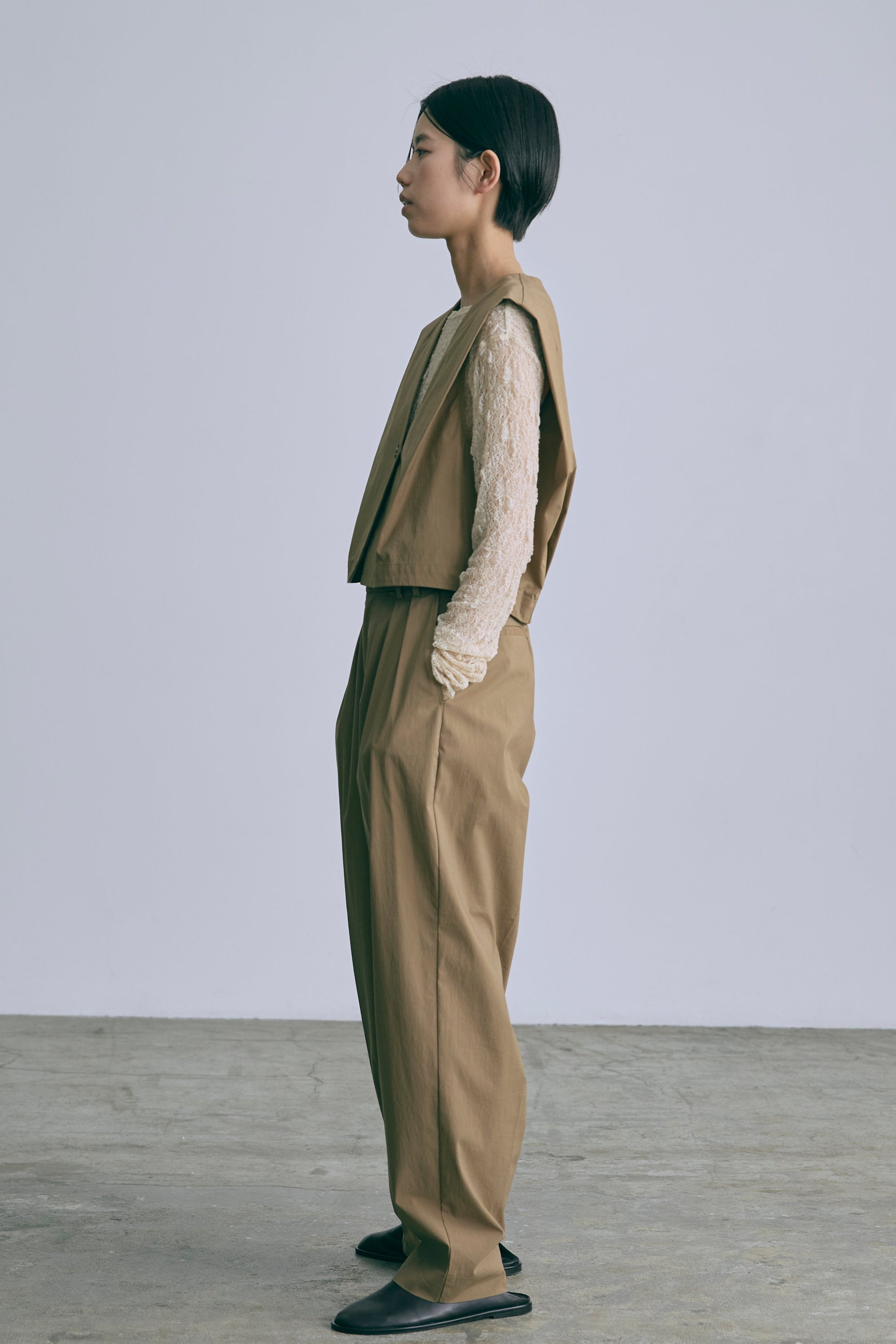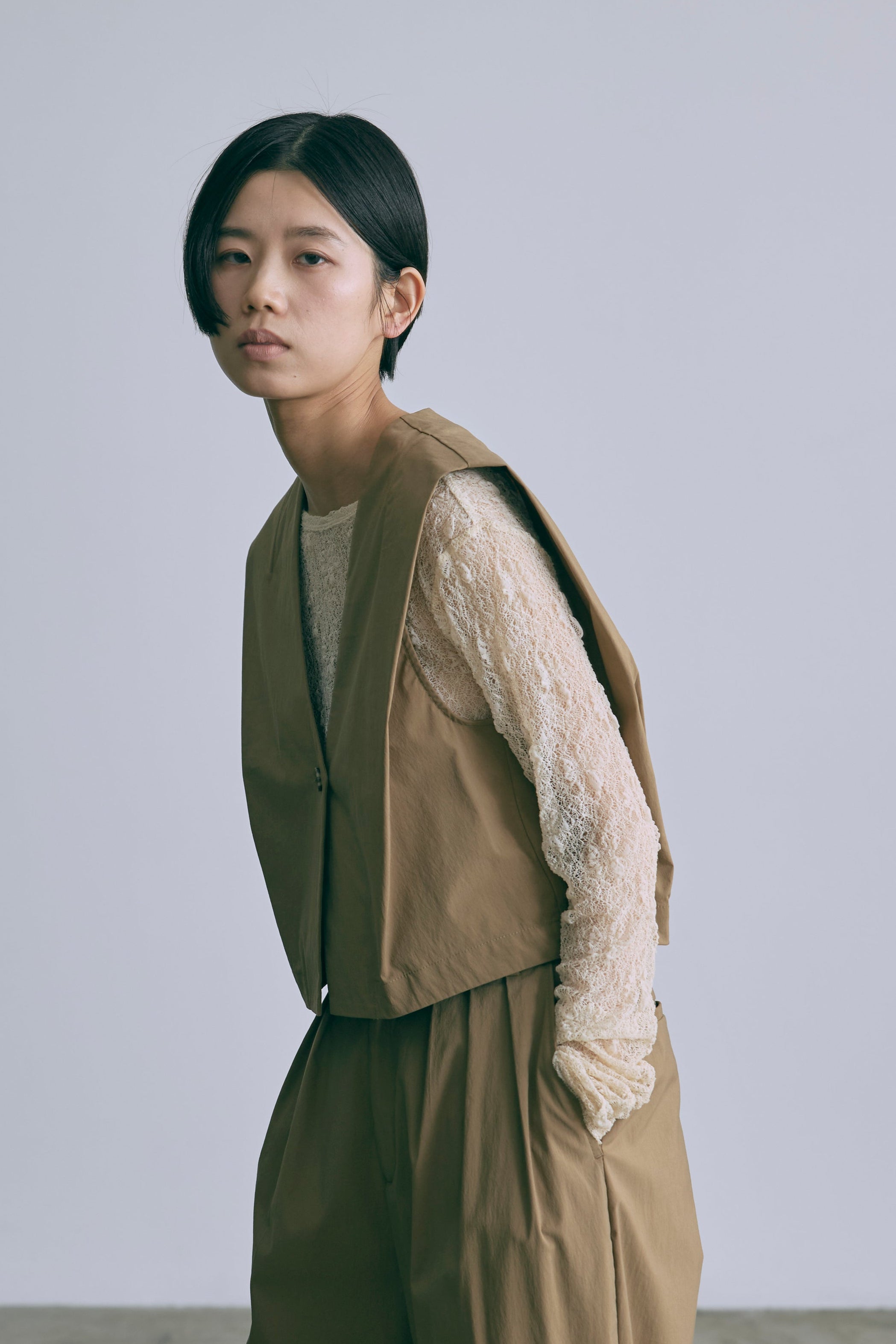 動きに合わせて軽やかに揺れるエアリースカート ナイロンタフタフレアスカート 【Material】 ヴィンテージワッシャー加工を施した、表情豊かなナイロン100%の軽量タフタ素材を使用。輝きのある光沢が、モードなスタイリングにもぴったりです。 【Design】 縦の切り替えでウエストをすっきり見せつつ、ボリューム感を大切にしたシルエットが特徴のスカートです。 【Styling point】 トップスはインして着るのがおすすめ。カジュアルなカットソーやニットなど、どんなトップスとも相性が良く、幅広いスタイリングを楽しめます。カジュアルにもモードにも着こなせる、汎用性の高いアイテムです。