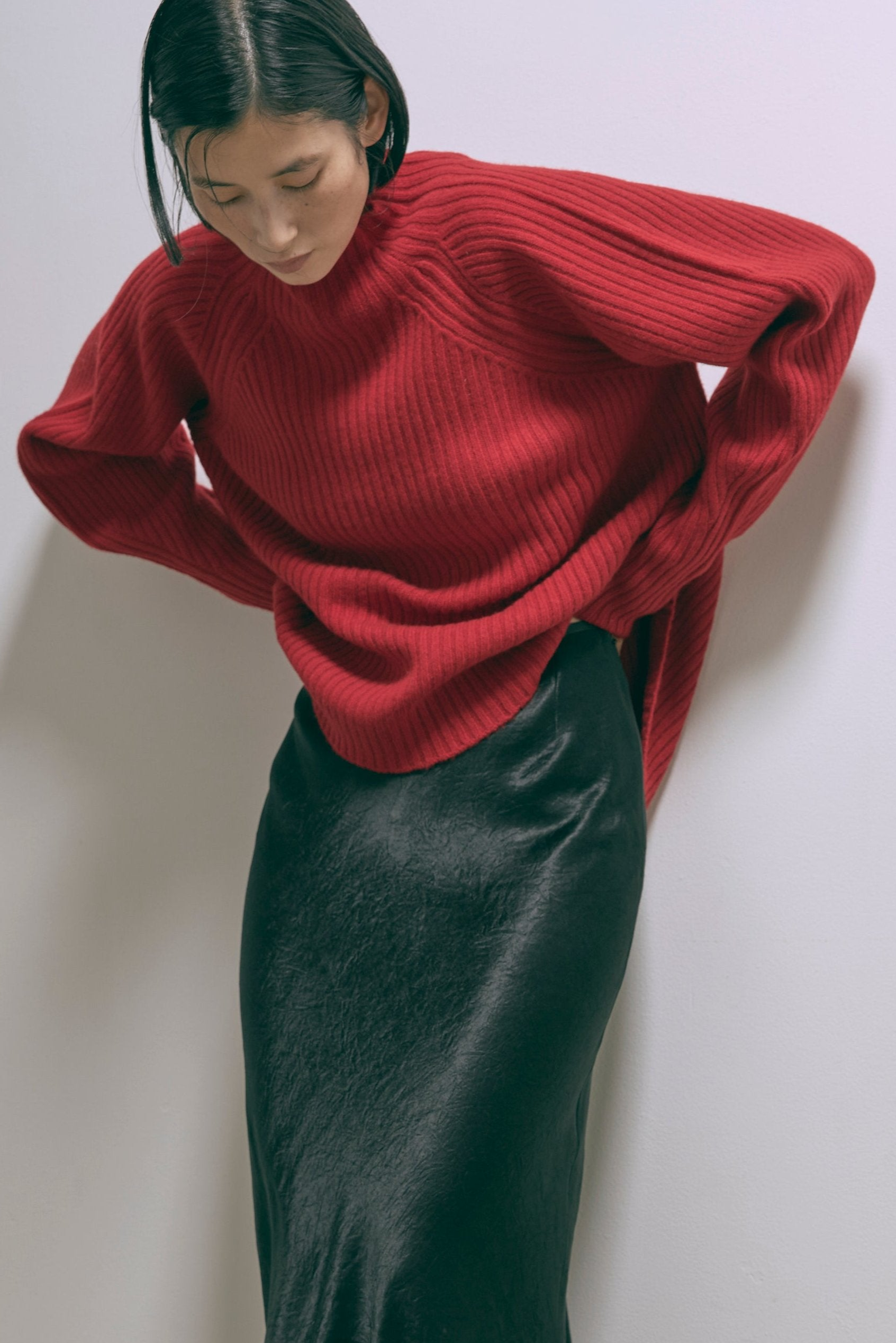上質なアセテートのヴィンテージサテンを使用したスカート 【Material】 シボ感があるヴィンテージライクなアセテート100%の素材。 上質で上品な光沢感が魅力の 【Design】 控えめな光沢感が特徴のサテン生地で秋冬にも活躍する一着。 バイアス裁ちにすることで生地に落ち感が出て、身体になじみ、自然なAラインシルエットになります。 【Styling point】 スウェットやダボットしたトップスを合わせることによって、シルエットや女性らしさとのバランスをとることが出来ます。 無地のシンプルなスカートなので、様々なトップスとの組み合わせてお楽しみください。