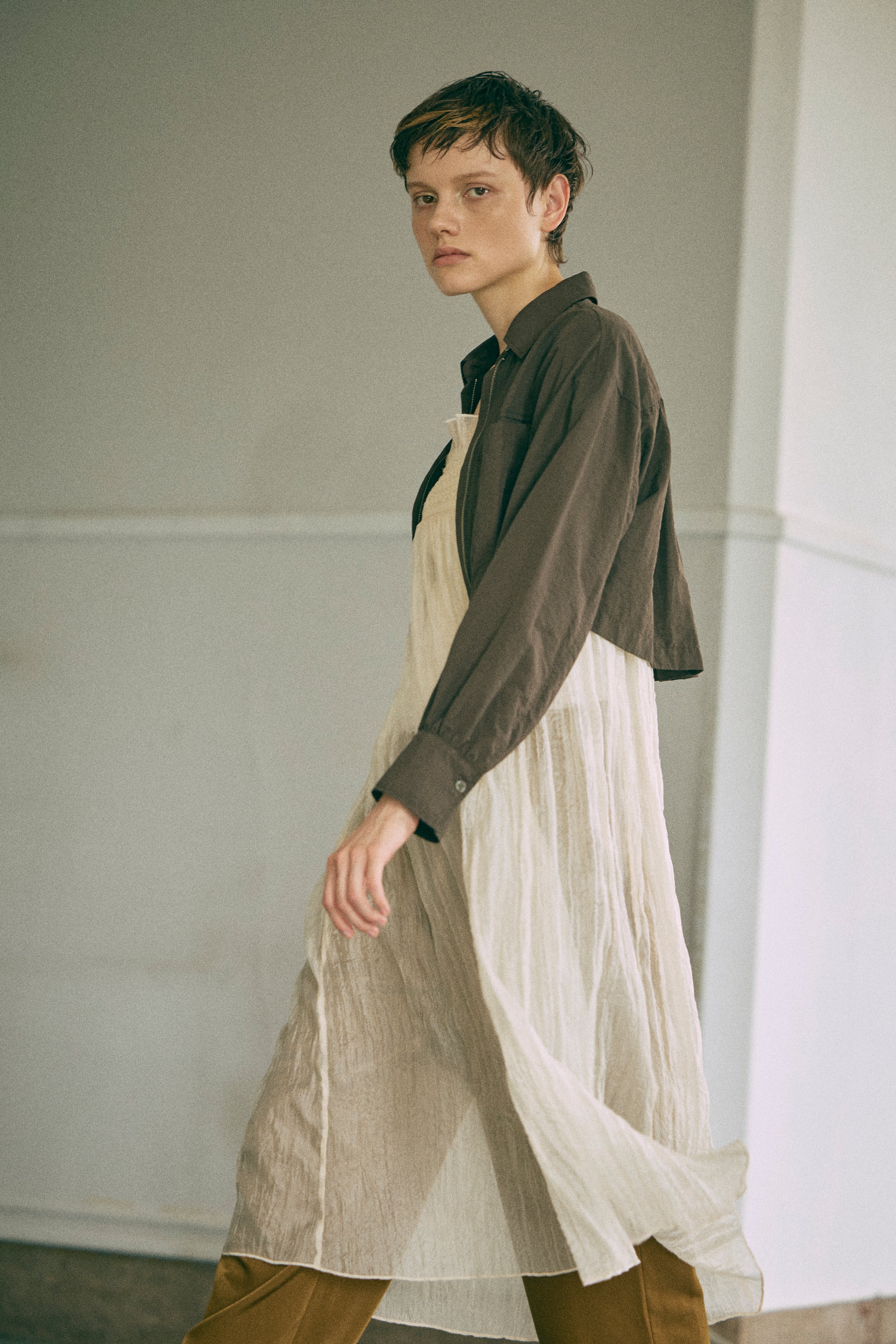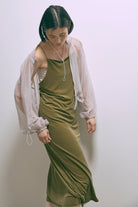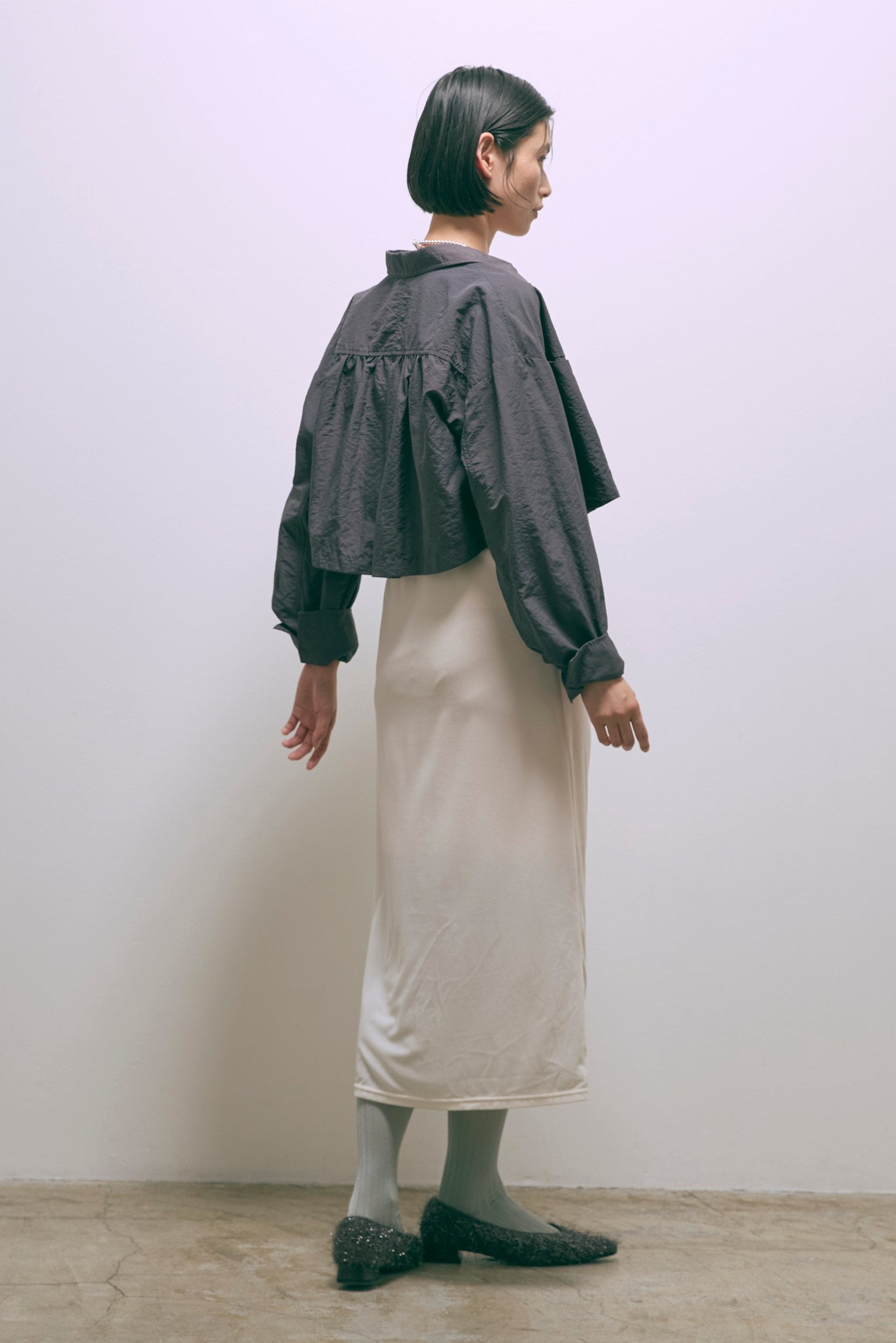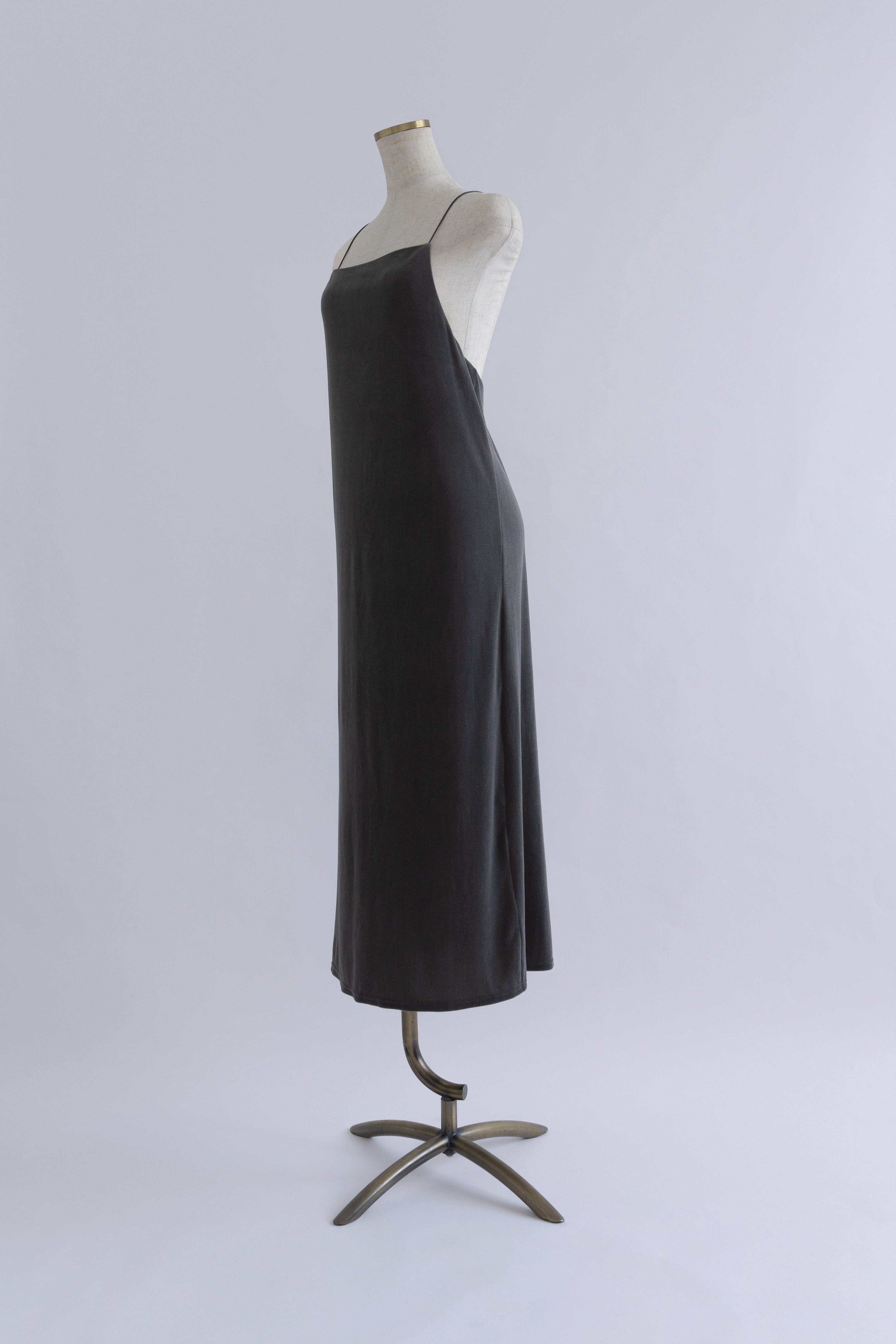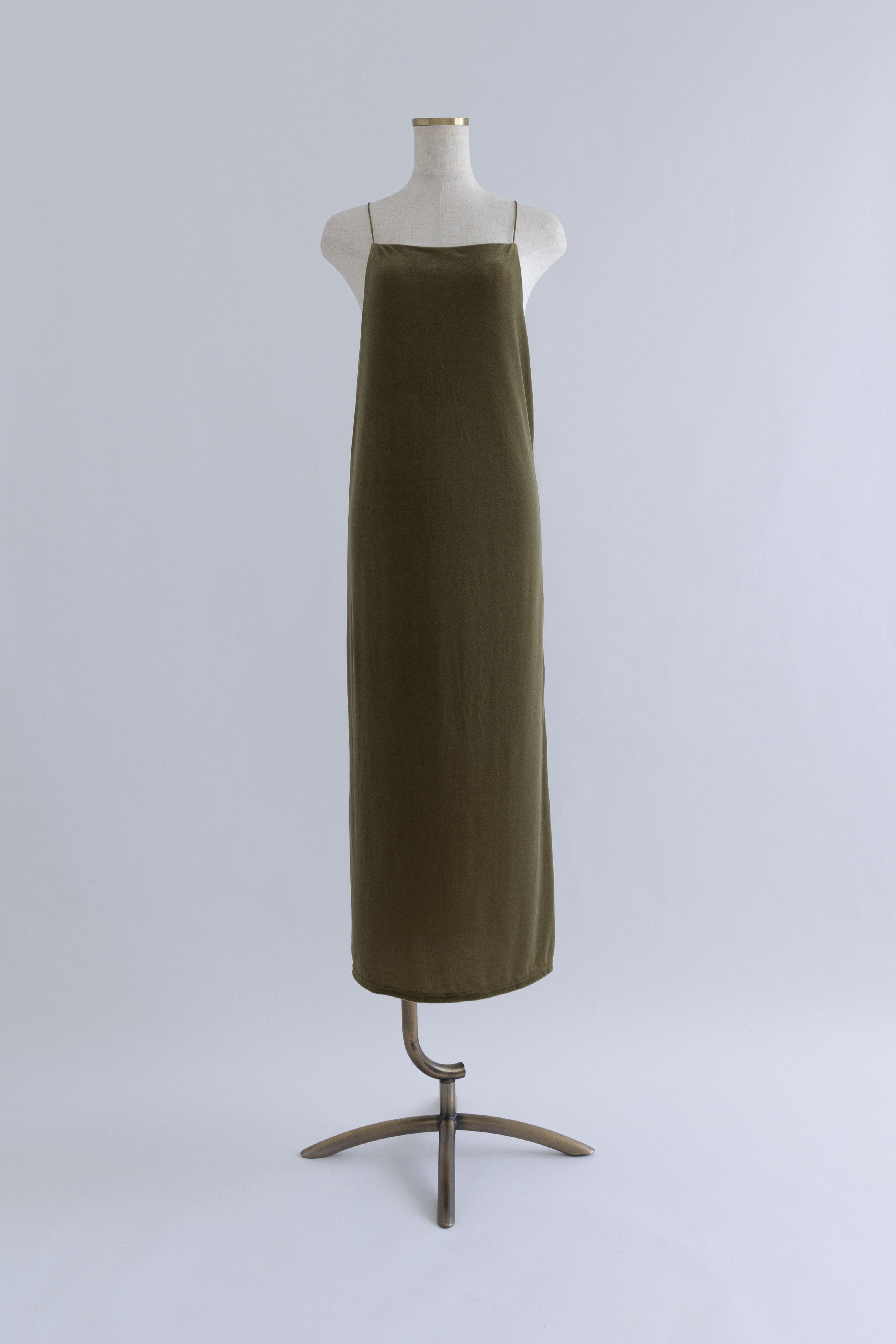 秋冬ムードを高めるベロアキャミワンピース 【Material】 しなやかで柔らかな触り心地で、マットな表面感が特徴のベロア素材。 【Design】 ナローラインでストンと生地に落ち感があり、綺麗なシルエットにしてくれます。 バックオープンのデザインでサテン紐を使用しているので後ろ姿も抜かりなくかわいいです。 【Styling point】 ハイゲージのニットやタートルネックのニットをインナーとしてご着用いただくのがおすすめです。 ダボっとしたニットやスウェットを上からかぶってロングスカートのように使っていただくのも素敵です。 シャツなどを合わせてハンサムなテイストと合わせてバランスをとったり、様々なレイヤードスタイルをお楽しみいただけます。