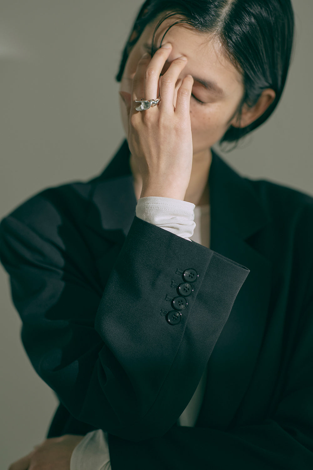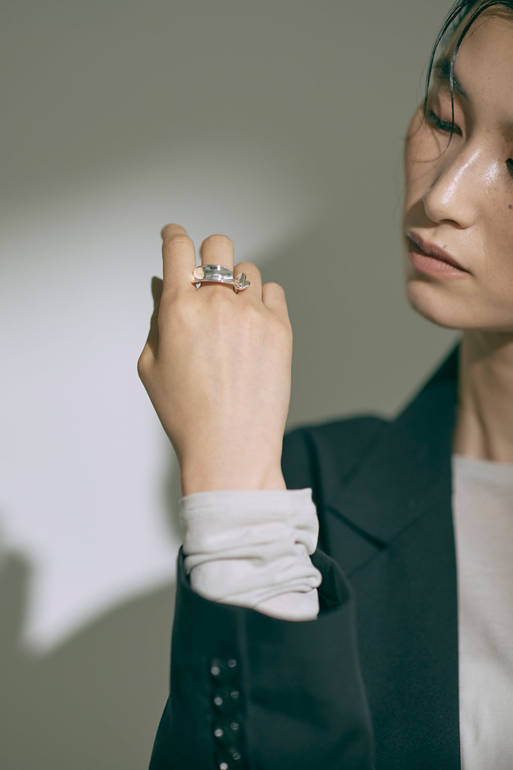 アシンメトリーにツイストされたデザインのリングが特徴的なリング セレクトブランド ―Nothing And Others― 【Material】 ■Silver925 プレーティング 本物の銀を使用したメッキ加工が施されており、特別な処理により、変色や剥がれが起きにくく、手軽にシルバーの輝きを楽しめます。銀製品と同様に、時間が経つと黒ずむことがありますが、その際はクロスで優しく拭いてください。なお、プレーティング加工のため、着用したままの入浴や水仕事は避けてください。 ■一般的に金属アレルギーを引き起こしやすい物質(ニッケル、クロム、マンガン、コバルト)はほとんど含んでおりません。 【Design】 アシンメトリーにツイストされたリングモチーフが特徴で、同じシリーズのイヤカフ (Asymmetry Twist Ring Earcuff:97005) もご用意しています。 ■付属品 “Nothing And Others”ブランドロゴ入り巾着 ■サイズ 11号 開口部0.5㎝ / 6g