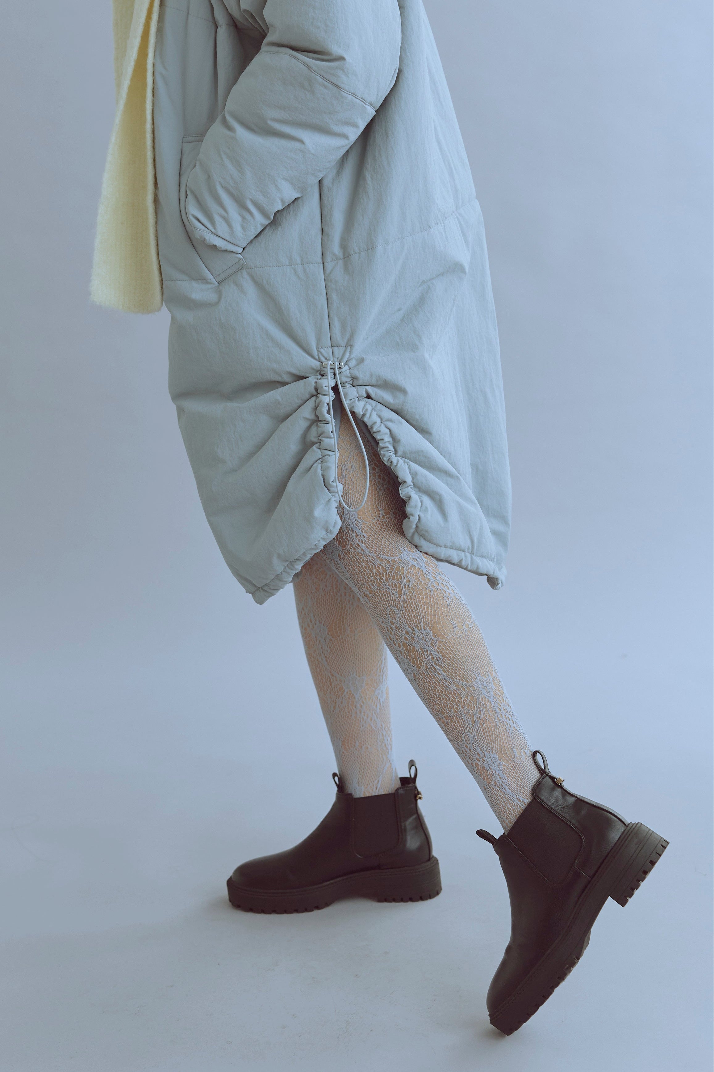 EN NEUME オリジナルレースタイツ 【Material】 やわらかくフィットする伸縮性のある素材で、はき心地も快適。 【Design】 繊細なレースが足元にこなれ感をプラスします。派手すぎない上品なデザインなので、普段使いにも取り入れやすく、シンプルなコーディネートのアクセントにもぴったりです。 どんなスタイルにも馴染みやすい、万能なレース柄タイツに仕上げました。 【Styling point】 ミニボトムはもちろん、ロングスカートからちら見せするのも可愛いです。 バレエシューズやブーツとの相性が抜群◎