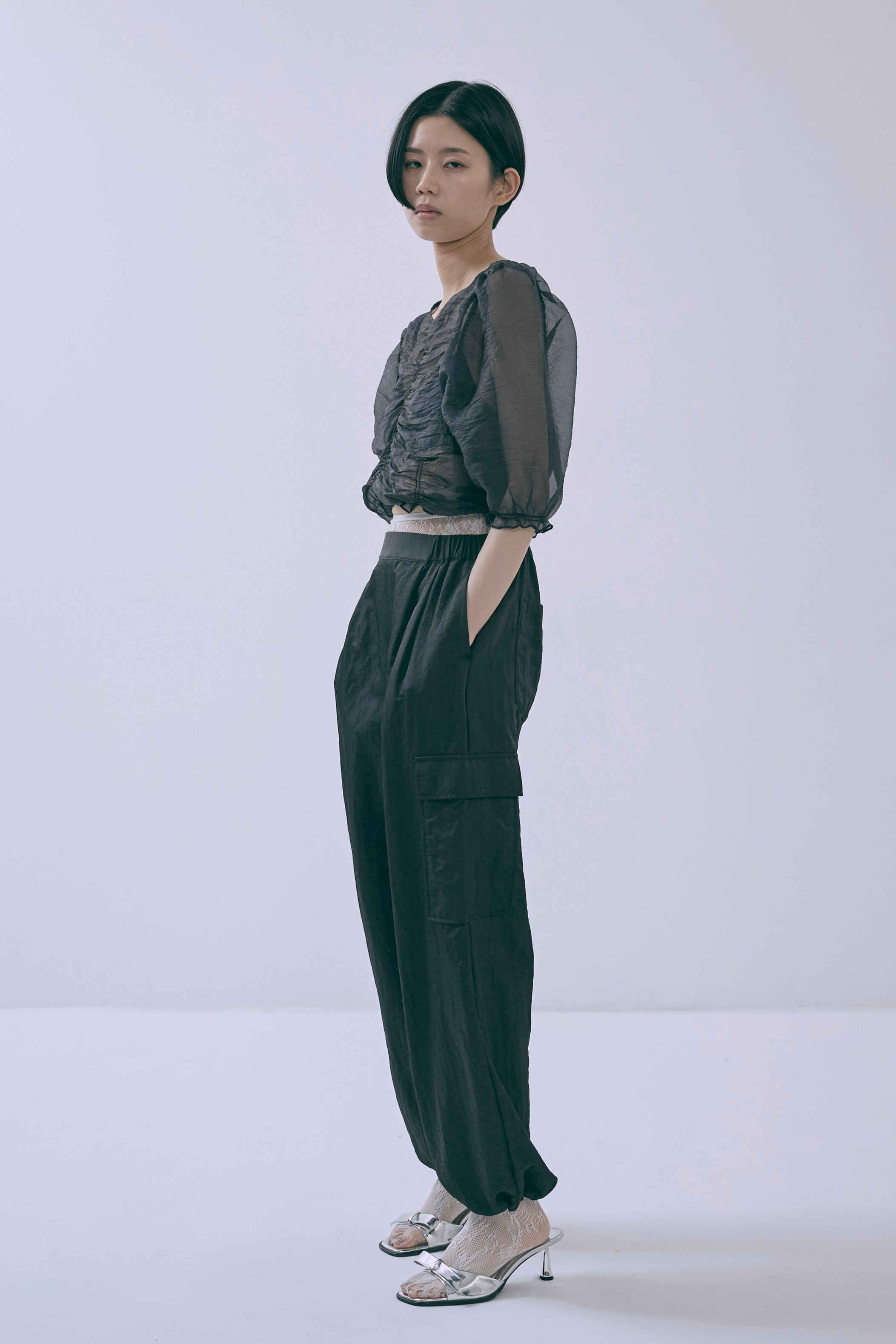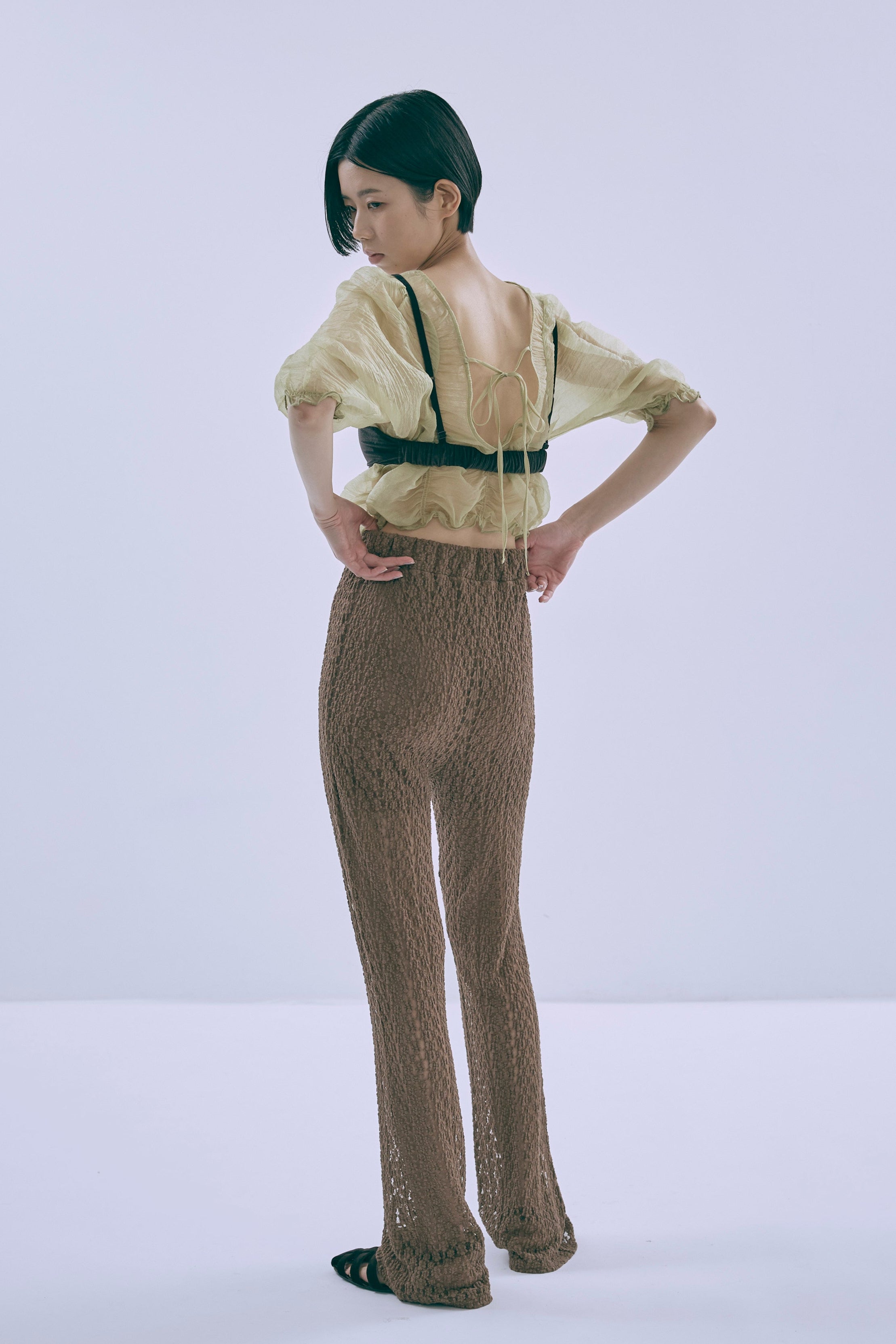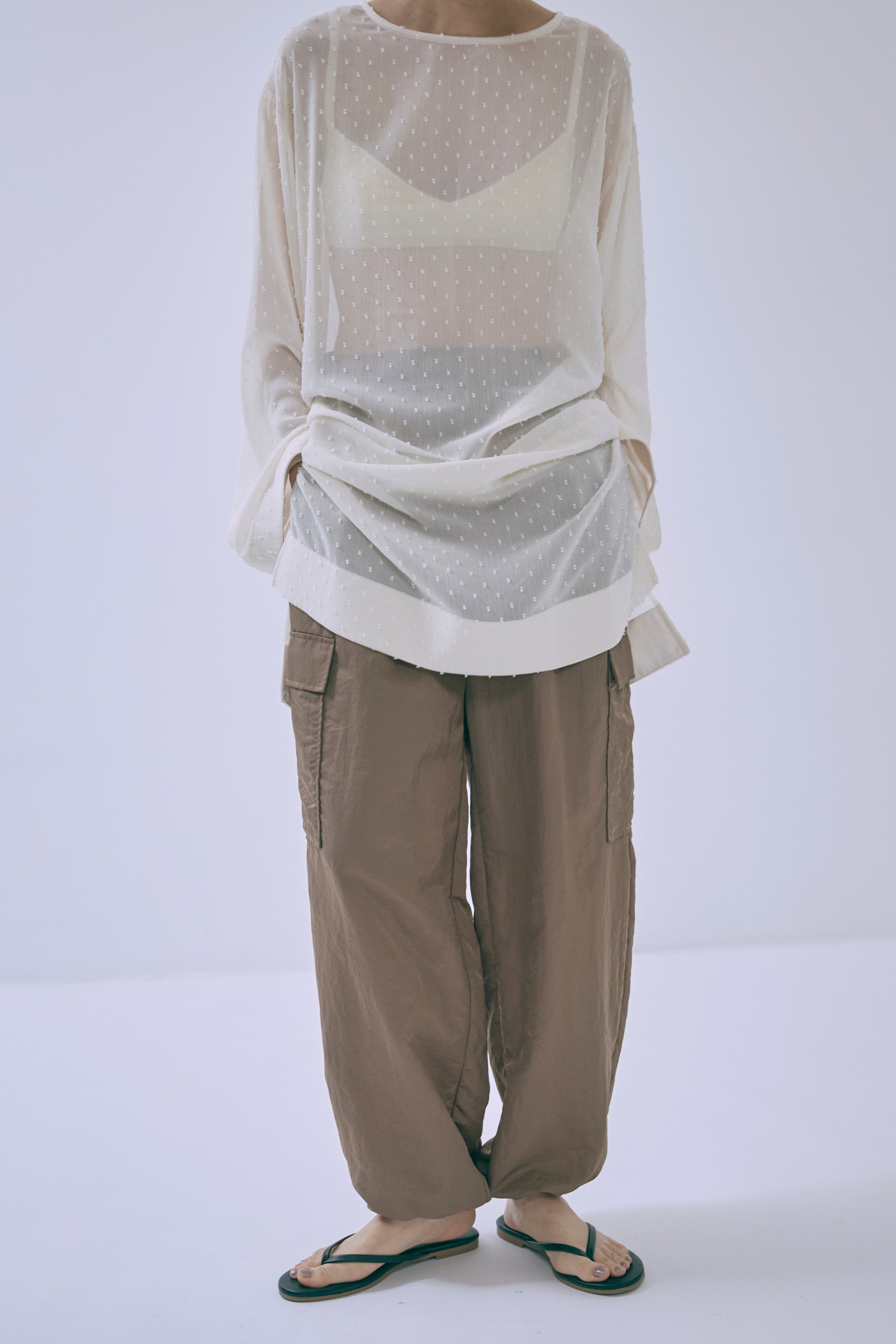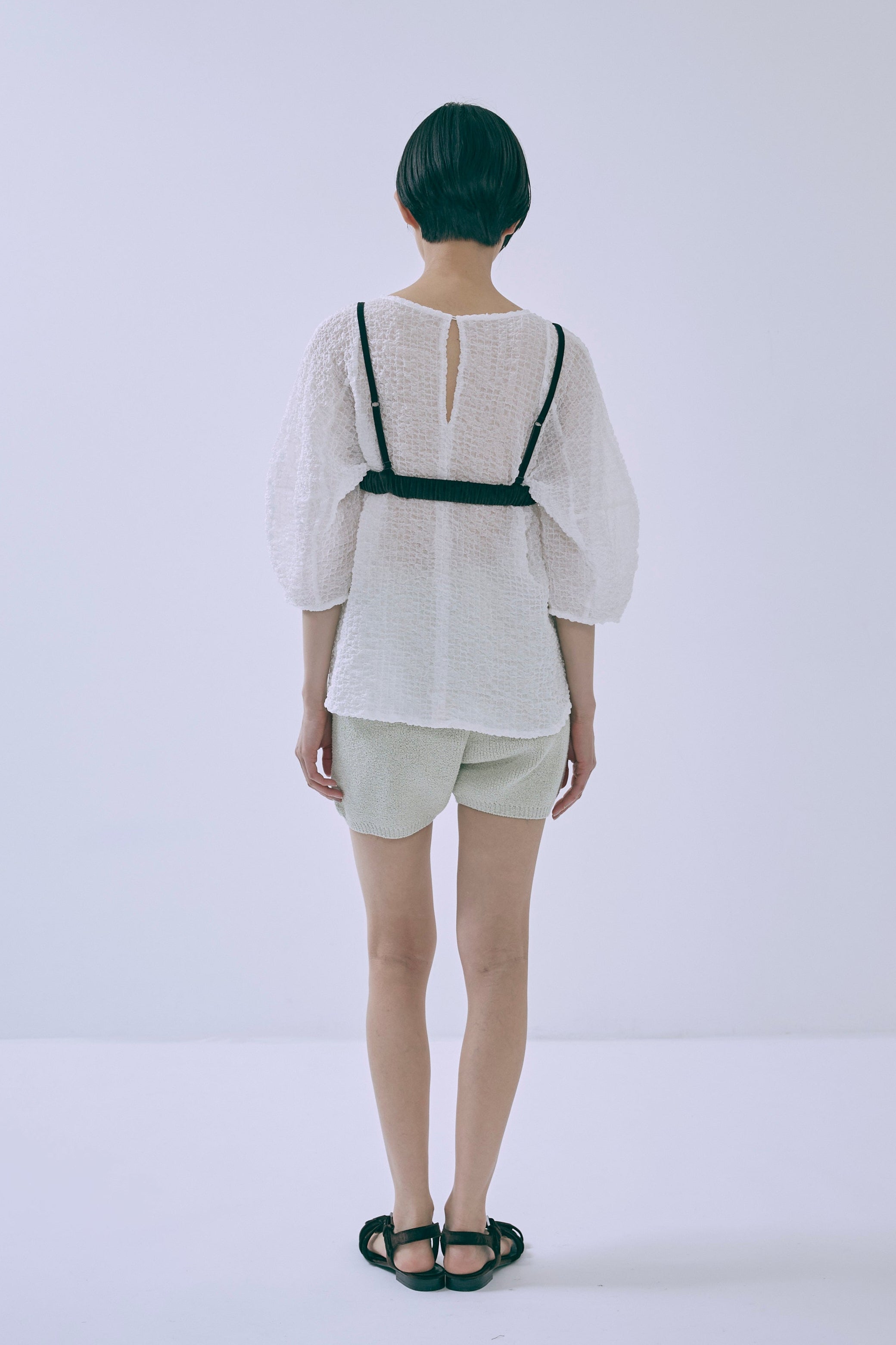 主役級の存在感を放つ1枚。表情感のあるジャカードとボリュームスリーブで着映え ジャガードパフトップス 【Material】 ぽこぽこした凹凸が映えるふくれジャガード素材。 【Design】 袖切替のパターンにこだわったボリュームスリーブがポイント。気になる腕も華奢に魅せてくれます。 身頃は余計なデザインをあえて無くすことで、どんなスタイルにも合わせやすいです。 ボディラインを拾わないシルエットでノンストレスな着心地です。 【Styling point】 シンプルなパンツやスカートにボトムインしても、アウトで着ても様になります。