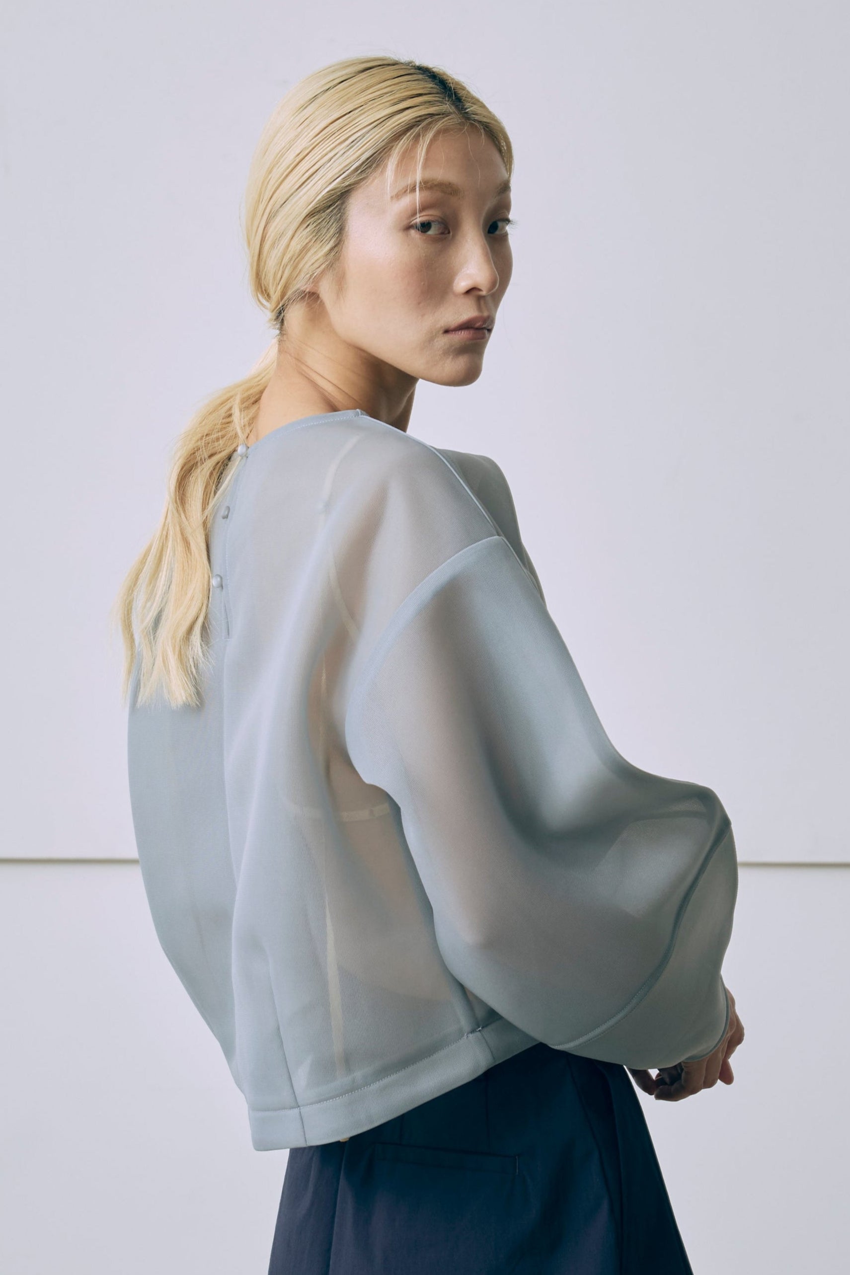 Textured Sheer Cocoon Pullover - F / ブルー ...は取り寄せ中で入荷次第発送します。