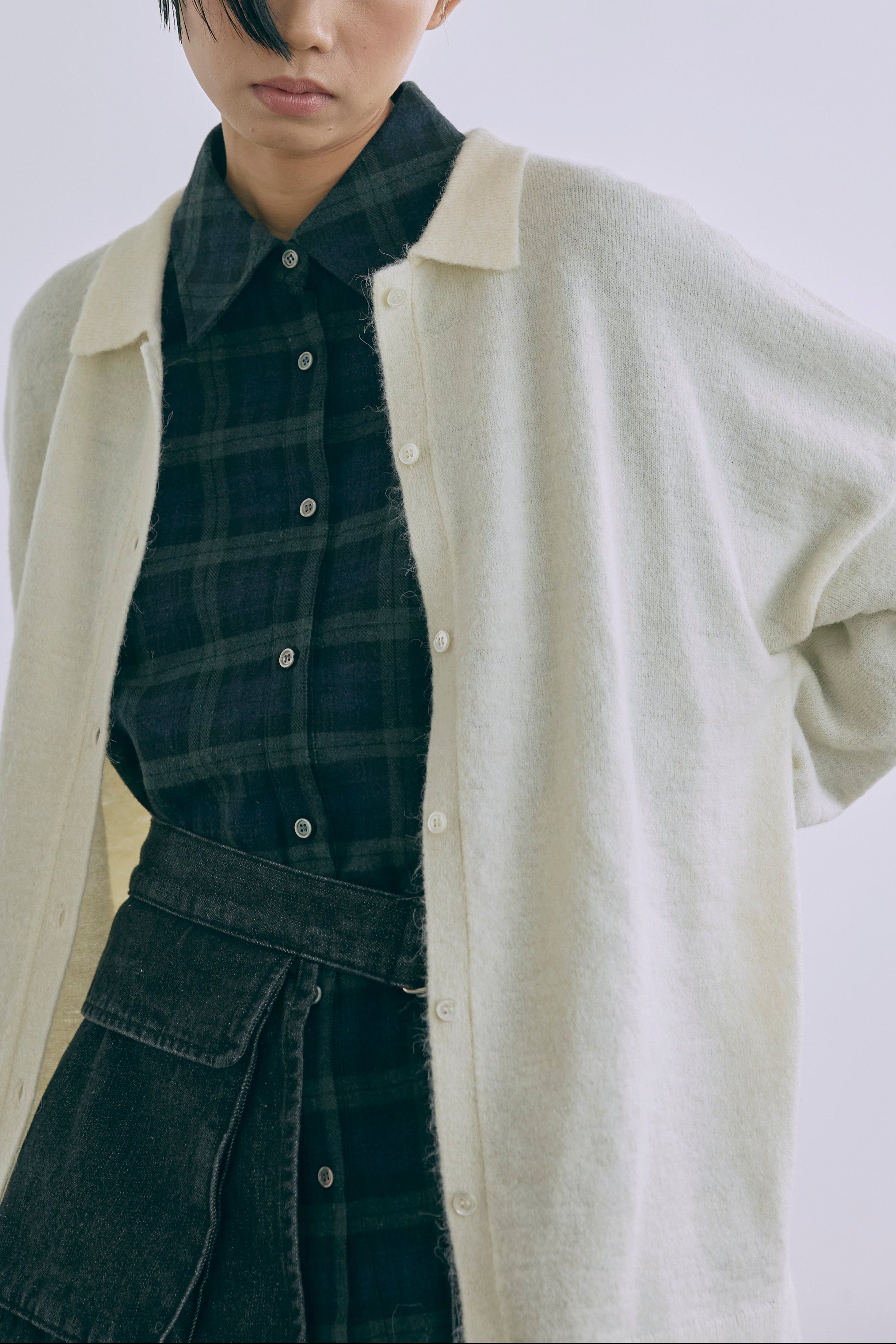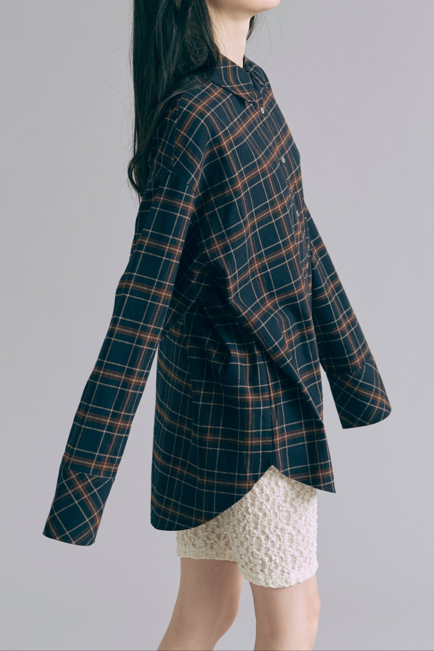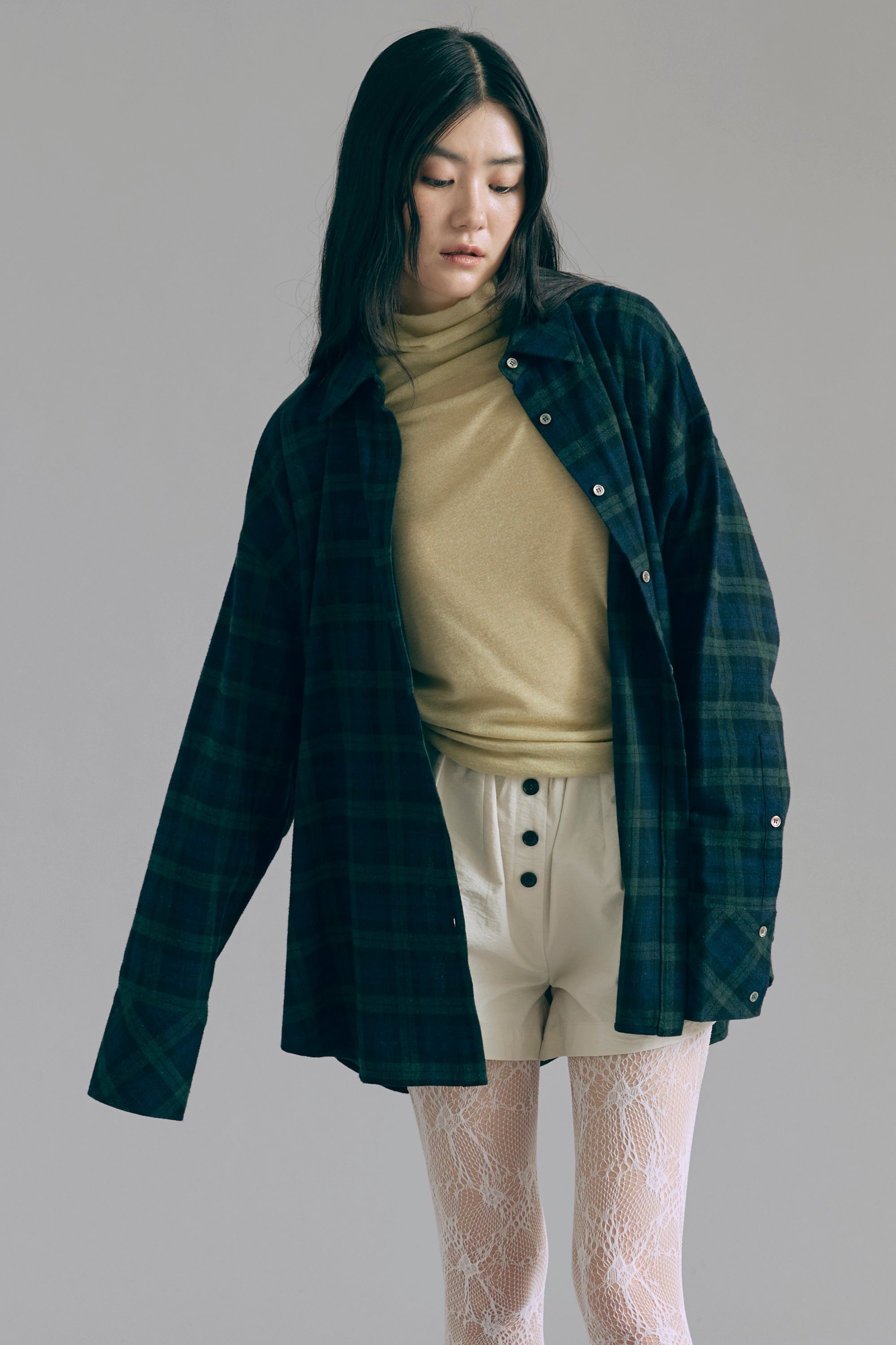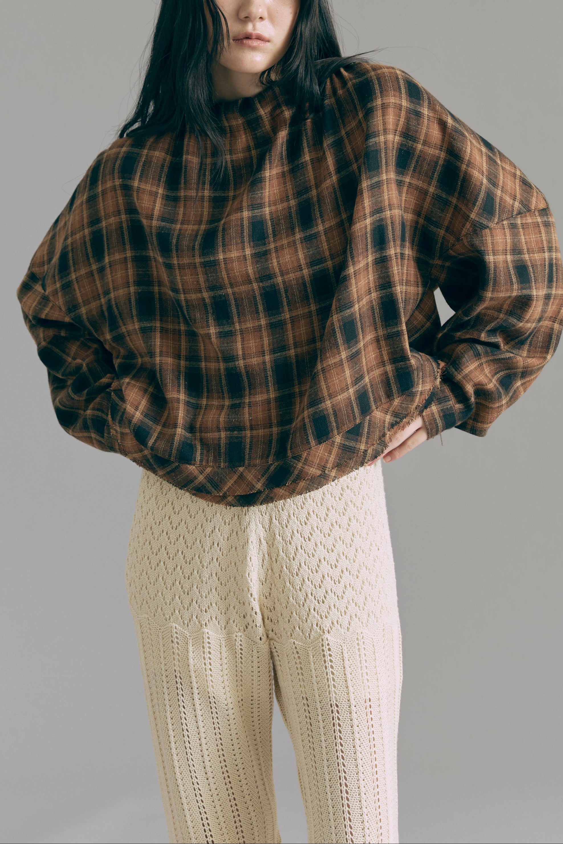 抜け感あるチェックで一気にこなれ感 【Material】 肌触りがよく、程よい厚みがあり軽やかな着心地。 秋冬はインナーとして、春先は軽アウターとして、ロングシーズン活躍します。 【Design】 大きめのチェック柄に、抜け感のあるオーバーサイズシルエットに仕上げました。 羽織るだけでもサマになる万能アイテムです。 【Styling point】 羽織り・トップス、どちらでも使えて着回し力抜群。パンツにもスカートにもバランスよくマッチし、幅広いスタイリングが楽しめます。 チェック柄がコーディネートのアクセントになって、シンプルになりすぎない着こなしに。