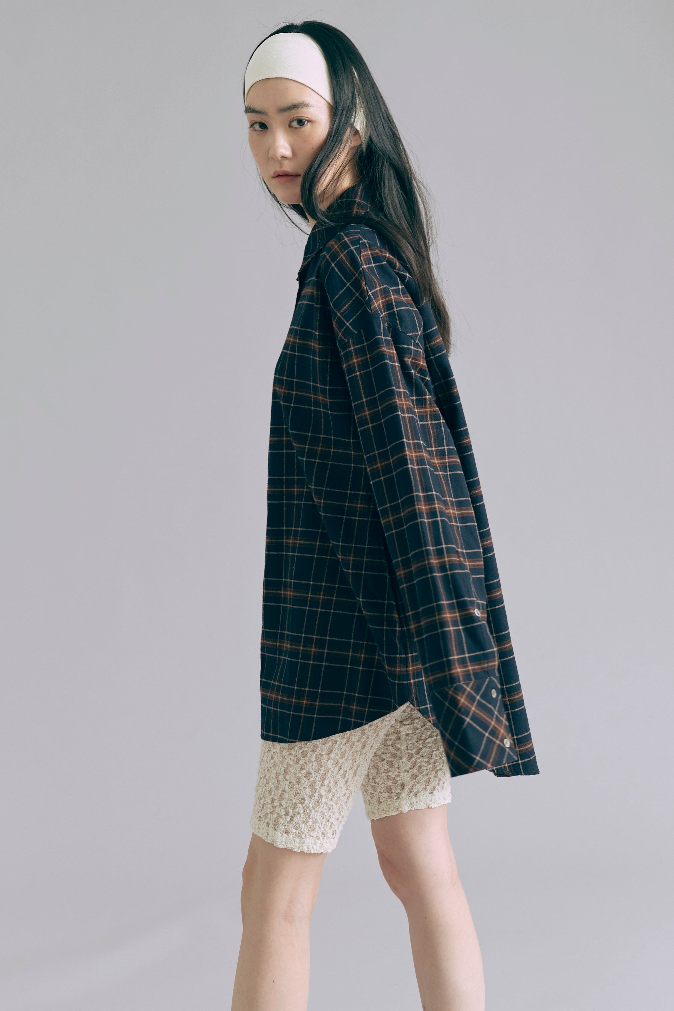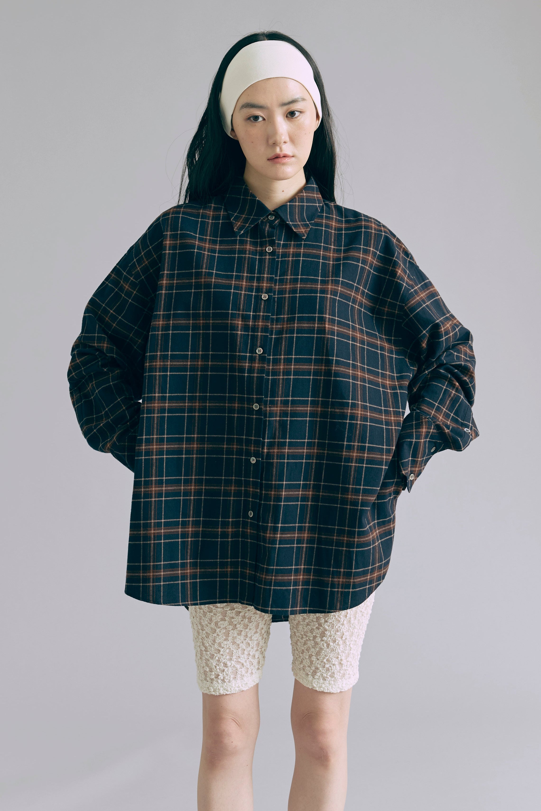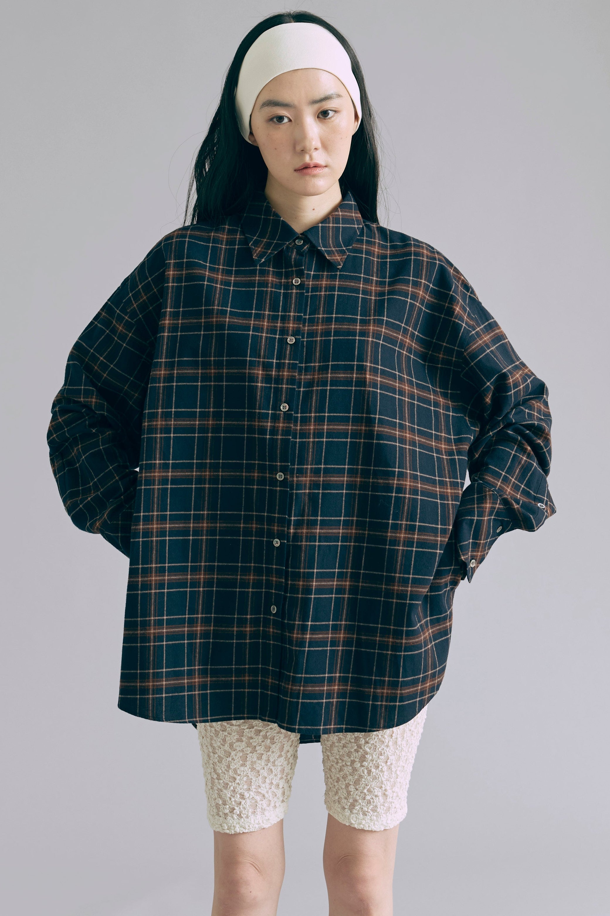 抜け感あるチェックで一気にこなれ感 【Material】 肌触りがよく、程よい厚みがあり軽やかな着心地。 秋冬はインナーとして、春先は軽アウターとして、ロングシーズン活躍します。 【Design】 大きめのチェック柄に、抜け感のあるオーバーサイズシルエットに仕上げました。 羽織るだけでもサマになる万能アイテムです。 【Styling point】 羽織り・トップス、どちらでも使えて着回し力抜群。パンツにもスカートにもバランスよくマッチし、幅広いスタイリングが楽しめます。 チェック柄がコーディネートのアクセントになって、シンプルになりすぎない着こなしに。