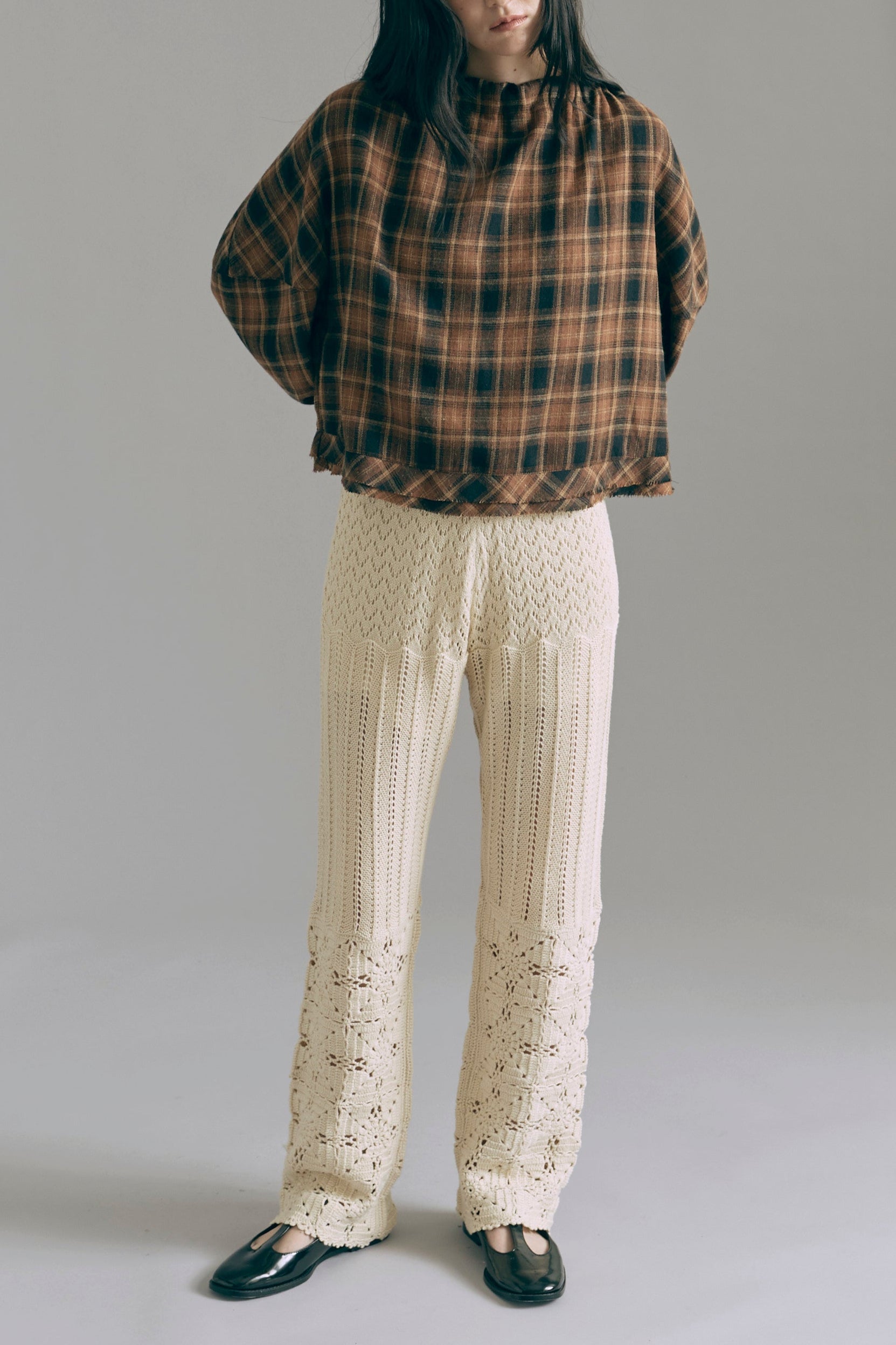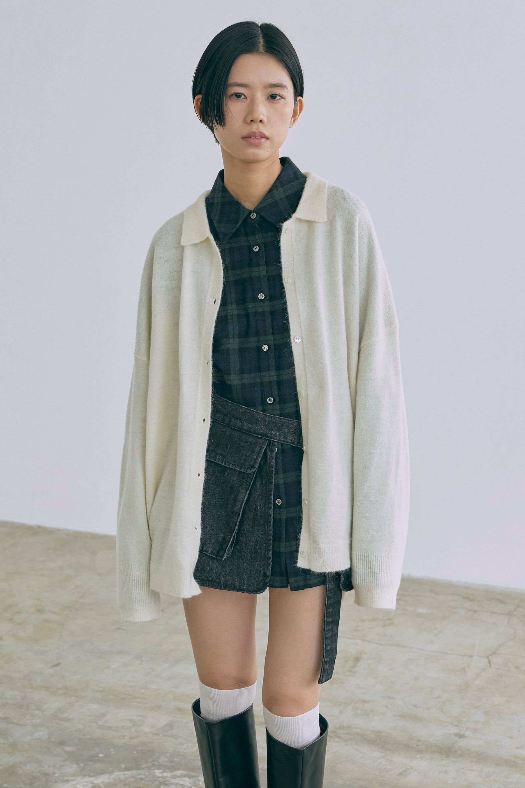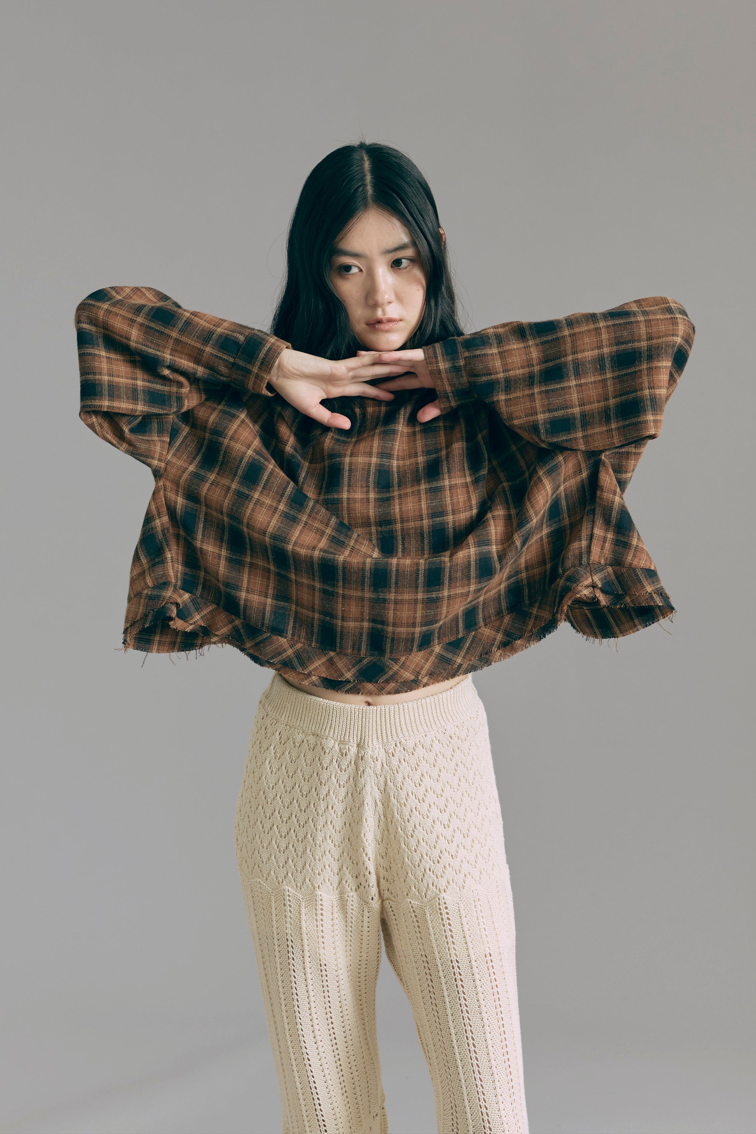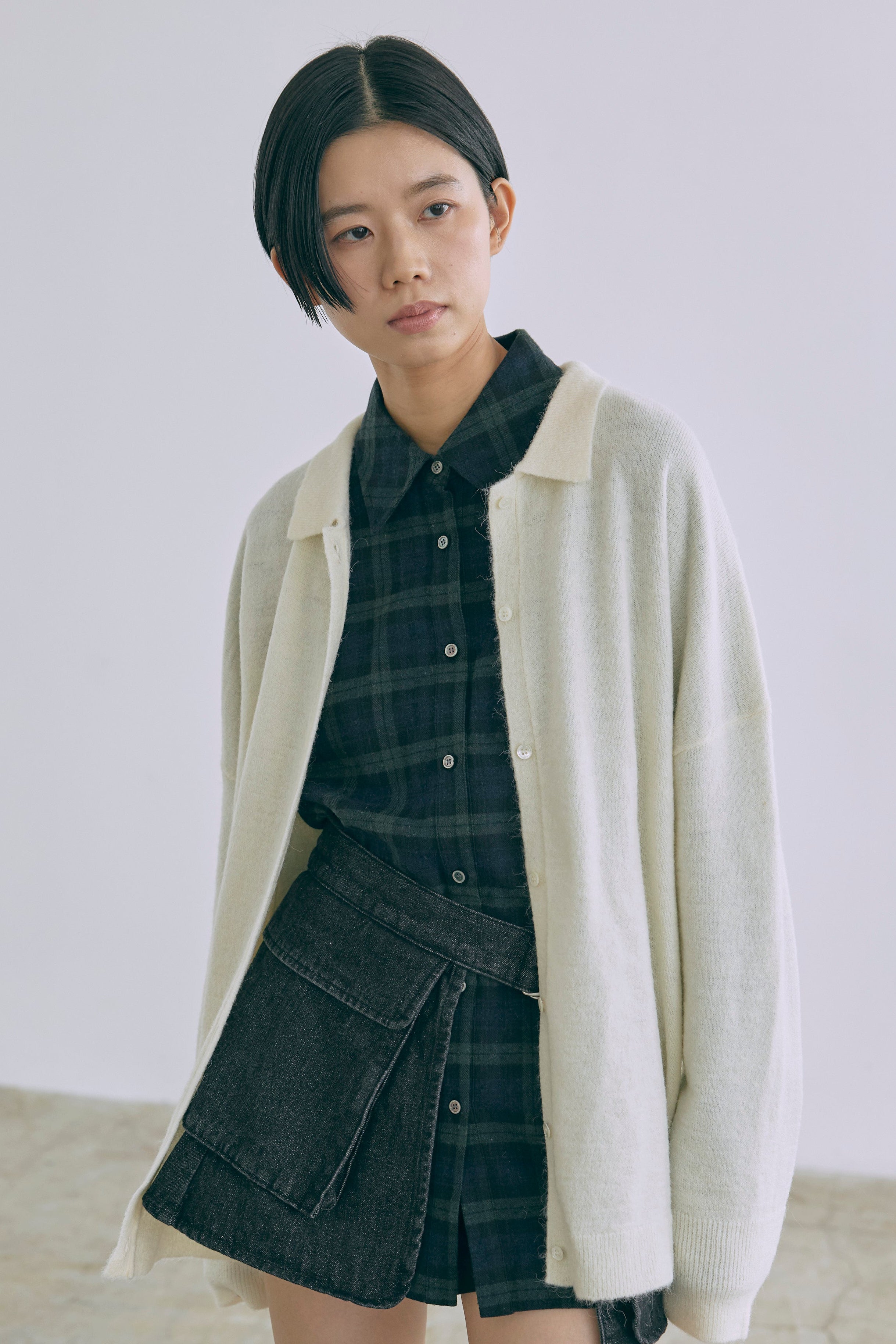 抜け感あるチェックで一気にこなれ感 【Material】 肌触りがよく、程よい厚みがあり軽やかな着心地。 秋冬はインナーとして、春先は軽アウターとして、ロングシーズン活躍します。 【Design】 大きめのチェック柄に、抜け感のあるオーバーサイズシルエットに仕上げました。 羽織るだけでもサマになる万能アイテムです。 【Styling point】 羽織り・トップス、どちらでも使えて着回し力抜群。パンツにもスカートにもバランスよくマッチし、幅広いスタイリングが楽しめます。 チェック柄がコーディネートのアクセントになって、シンプルになりすぎない着こなしに。
