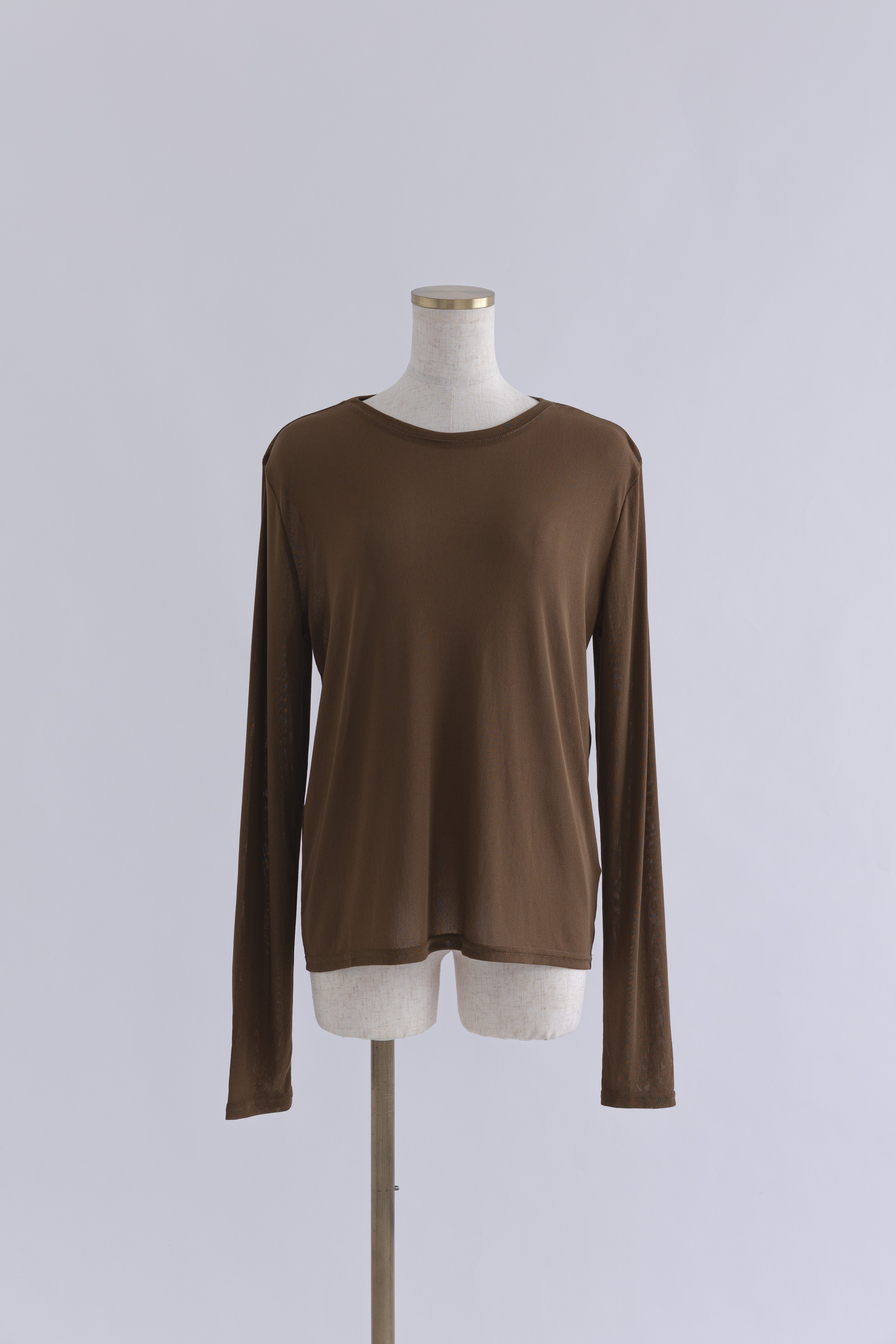レイヤードでスタイリングがワンランクアップする万能アイテム 【Material】 パワーネット素材を使用し、伸縮性がありながらもコンパクトで程よいフィット感。柔らかく、肌触りの良い快適な着心地です。 【Design】 今年らしいほんのりとした透け感が特徴のシアー生地で、一枚で着ても、レイヤードしてもスタイルが決まる優秀なアイテムです。 【Styling point】 一枚で透け感を楽しむのはもちろん、ビスチェやベストのインナーとして、またニットの袖口から見せるスタイリングもおすすめです。