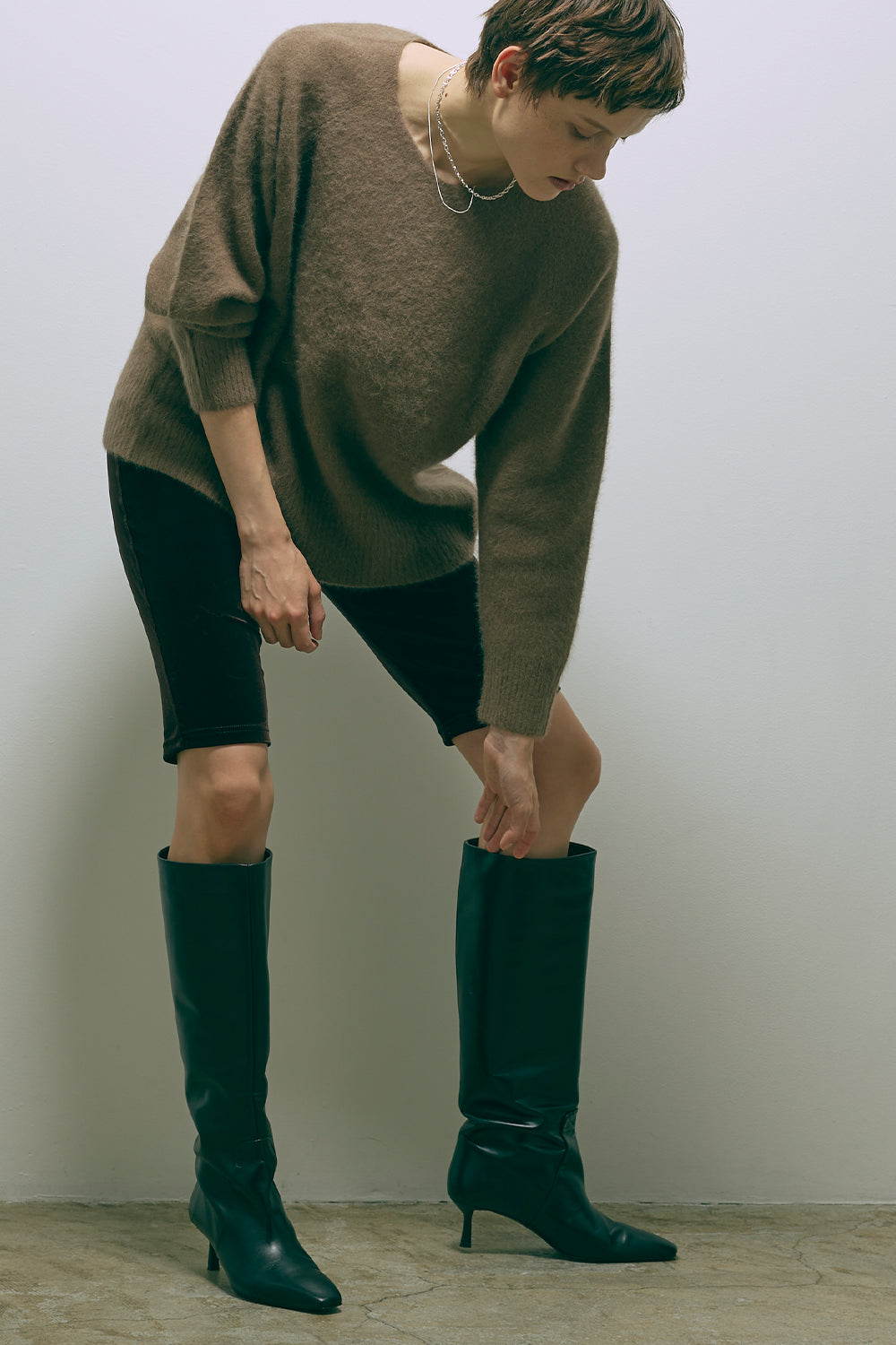 ふわふわの肌触りが心地よい上質ニット 【Material】 獣毛(ウール・フォックス)を多く含んだ、軽量でふわふわな糸を使用し、保温性にも優れています。肌触りの良さが魅力です。 【Design】 長く愛用できるシンプルなデザインを目指し、素材の良さを活かした快適な着心地にこだわりました。 デコルテが美しく見える絶妙なネックラインと、どんなボトムスとも相性の良いバランスの取れた着丈が特徴です。 【Styling point】 カジュアルもオフィスシーンにも活躍する万能ニットです。シンプルなデザインなので、さまざまなカラーアイテムや、光沢のある小物やアクセサリーと合わせても素敵に決まります。 上品さと心地良さを兼ね備え、オンオフ問わず幅広く使える一着です。