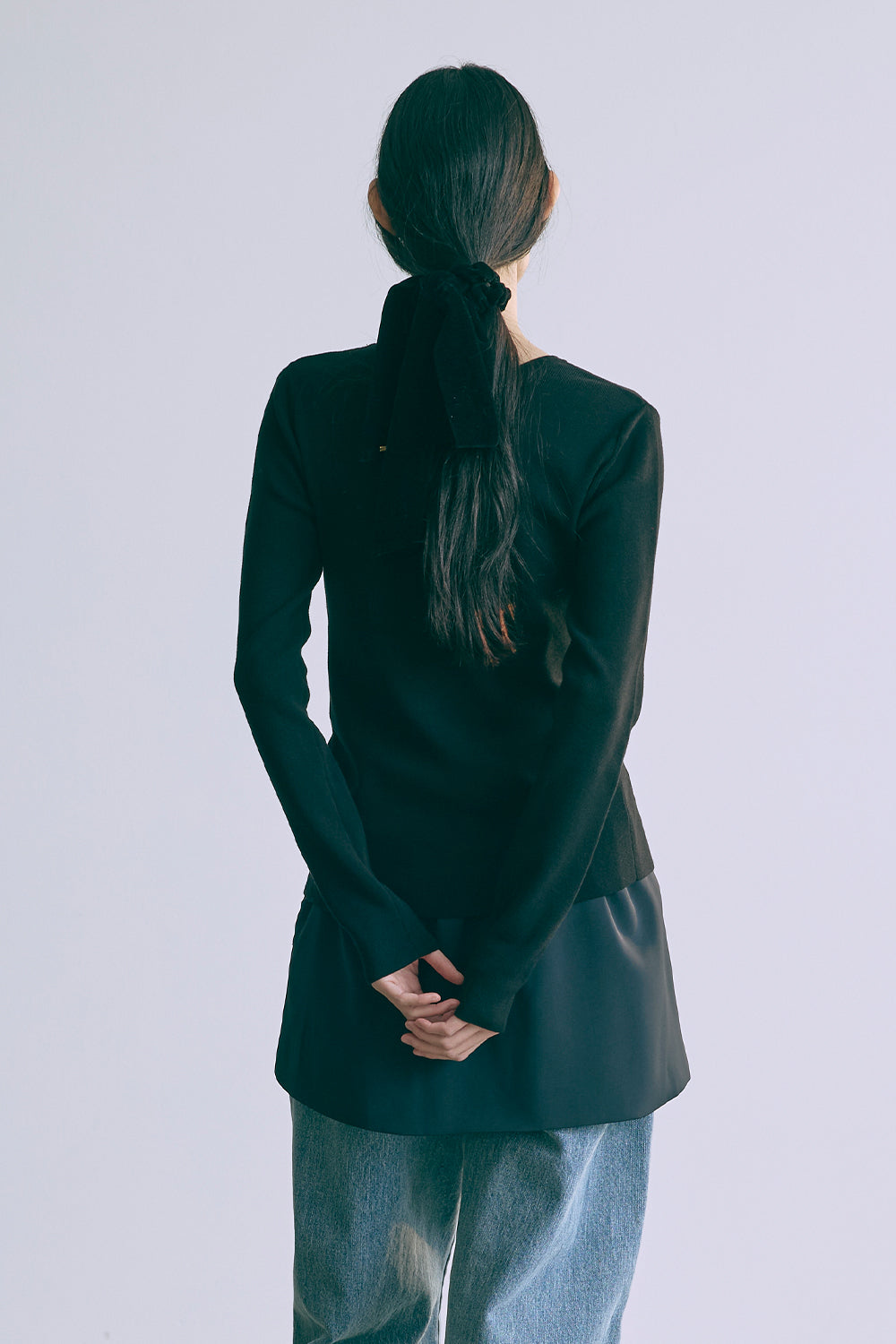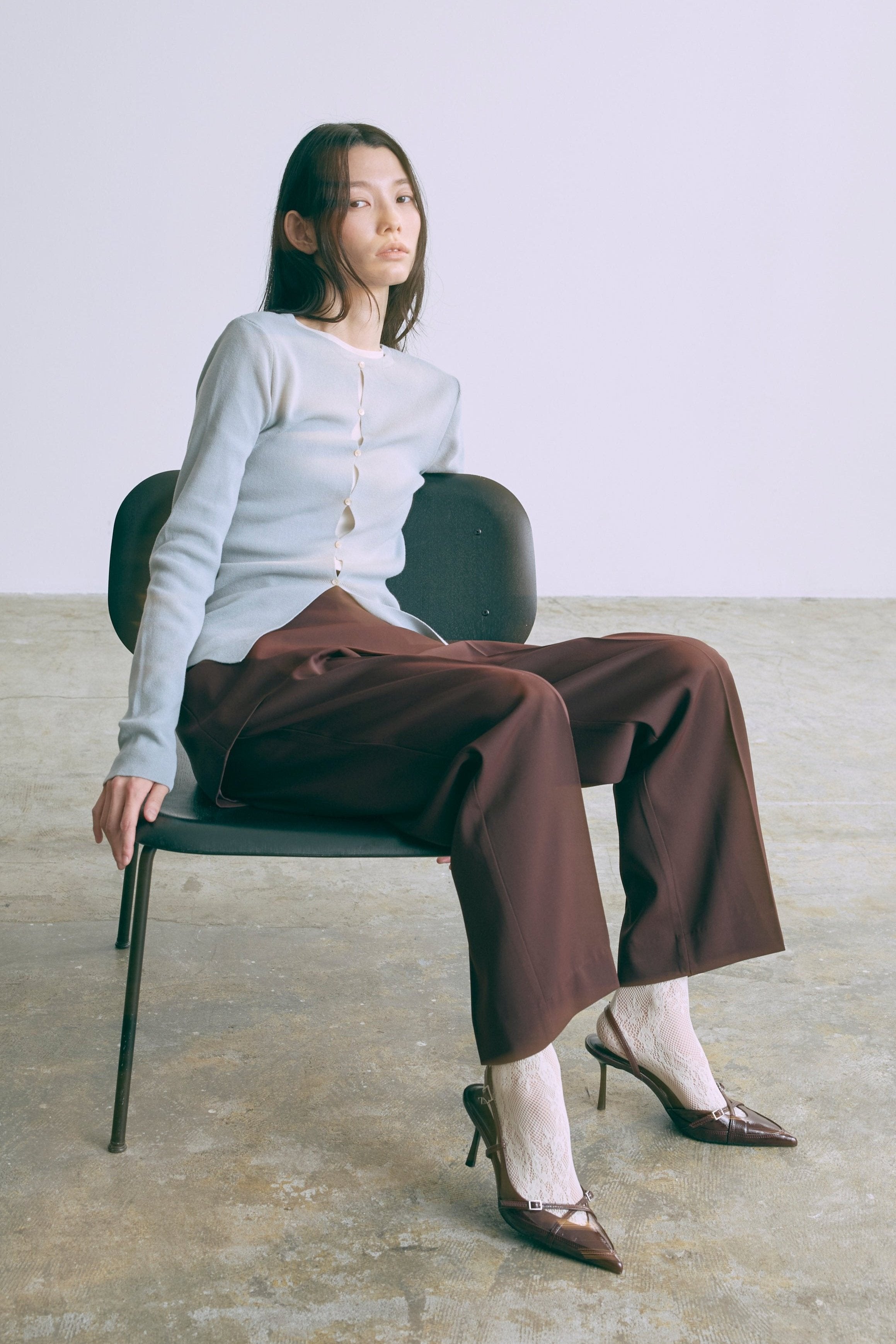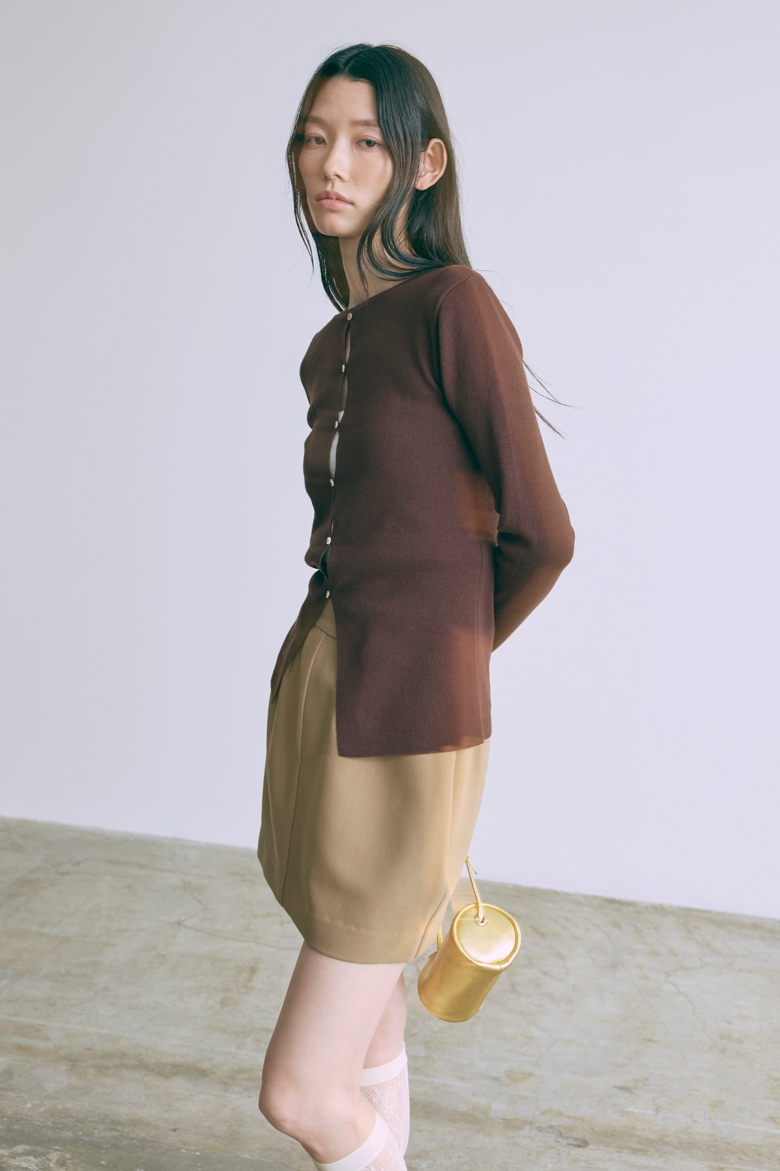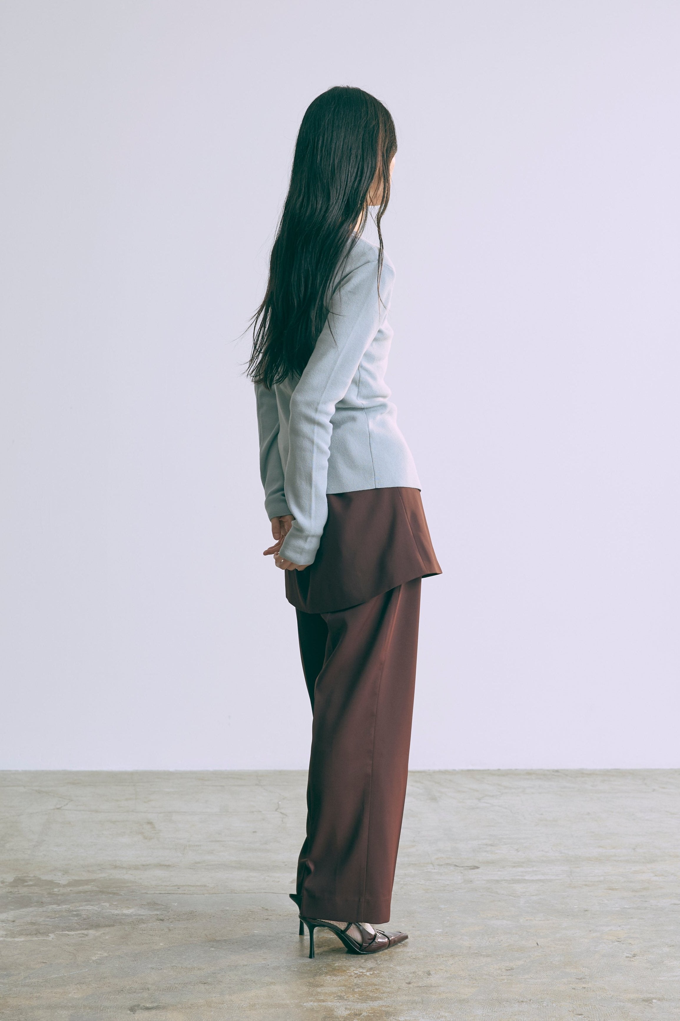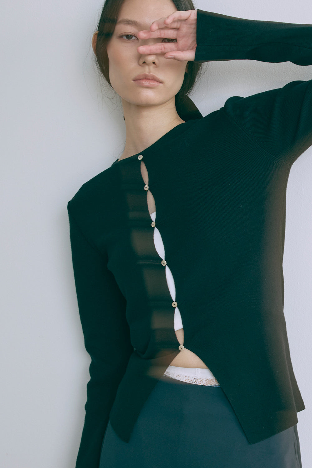 2WAYで楽しめる縦長ホールデザインのニットプルオーバー 【Material】 コットン混素材を使用したさらっとした着心地が魅力のニット。季節を問わずロングシーズンで活躍します。 【Design】 フロント中央に縦長のホールが入ったデザインがポイント。ホール部分を背中側にしてシンプルに着こなすこともできる2WAY仕様です。飾りボタンがアクセントになっており、今年らしい抜け感を演出。一枚で華やかさが際立つアイテムです。 【Styling point】 すっきりとしたシルエットで、ワイドパンツやボリュームのあるボトムスとも相性抜群。ジャケットのインナーとしても合わせやすく、さまざまなコーディネートに取り入れやすいデザインです。