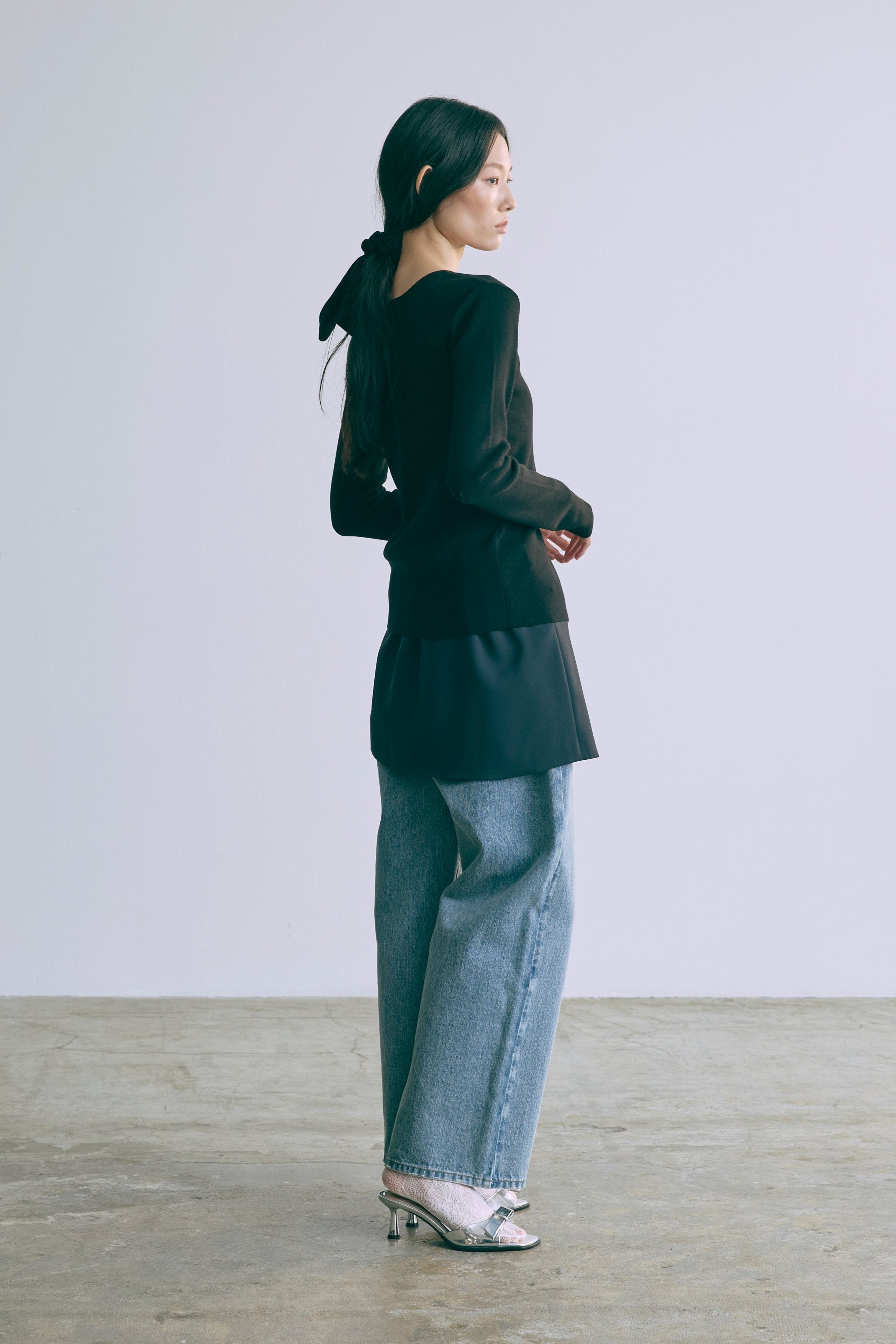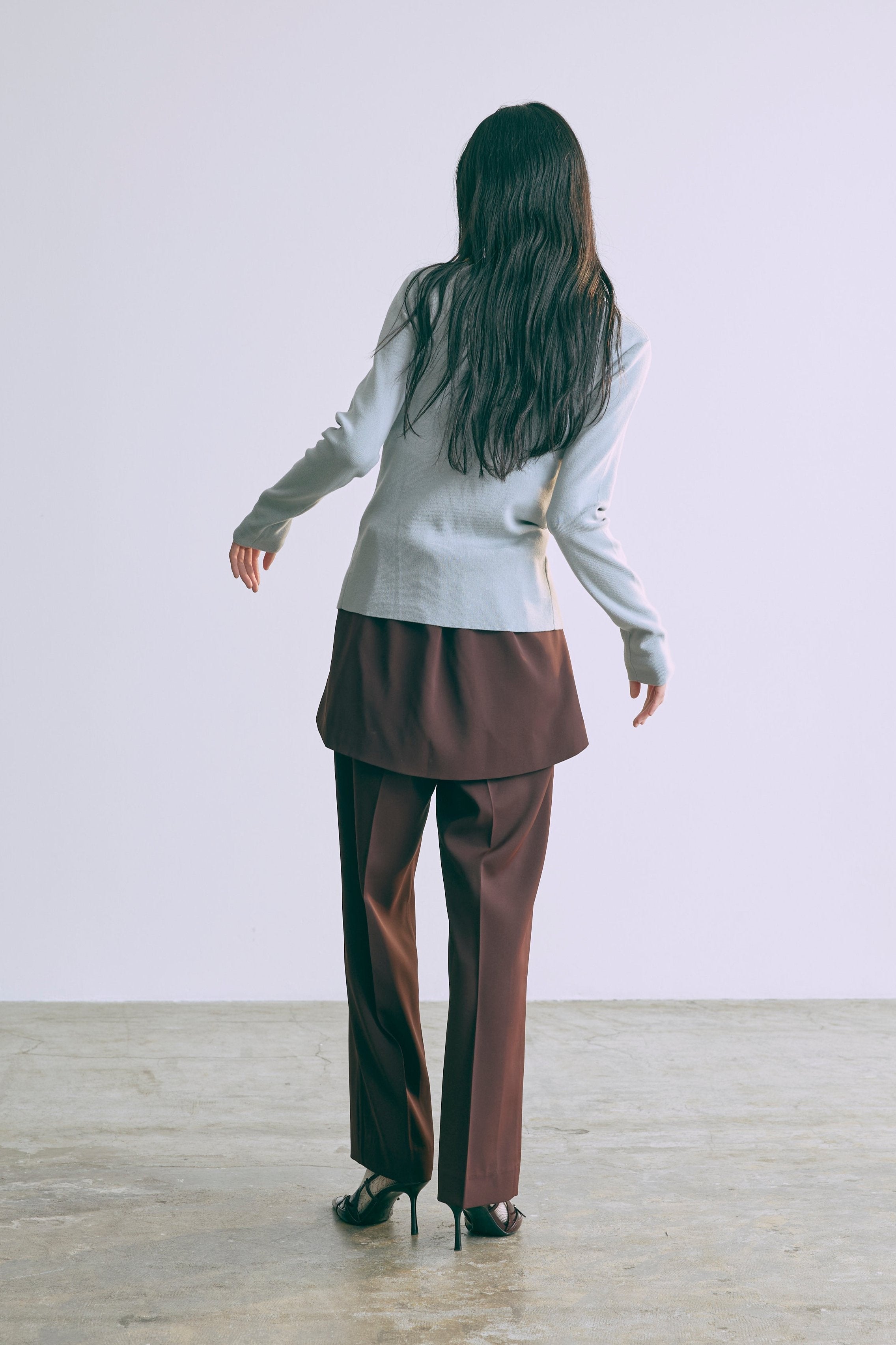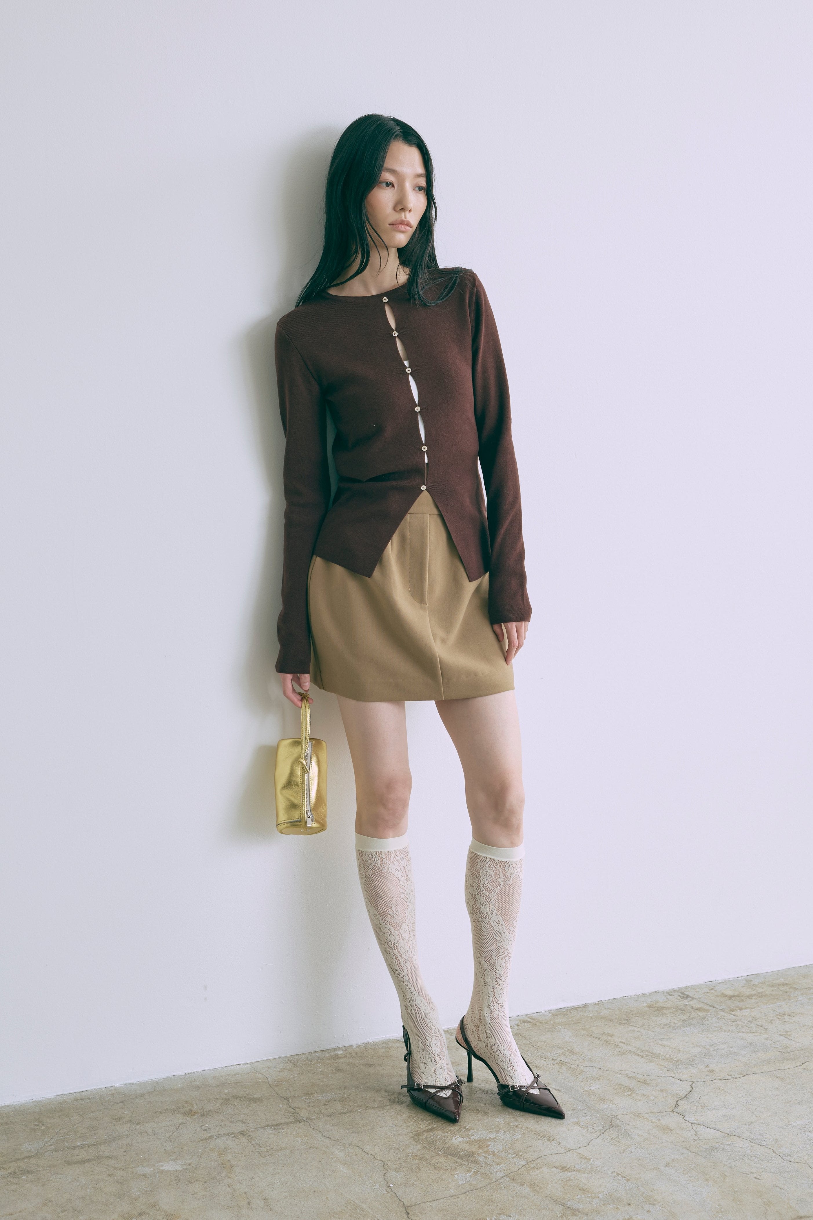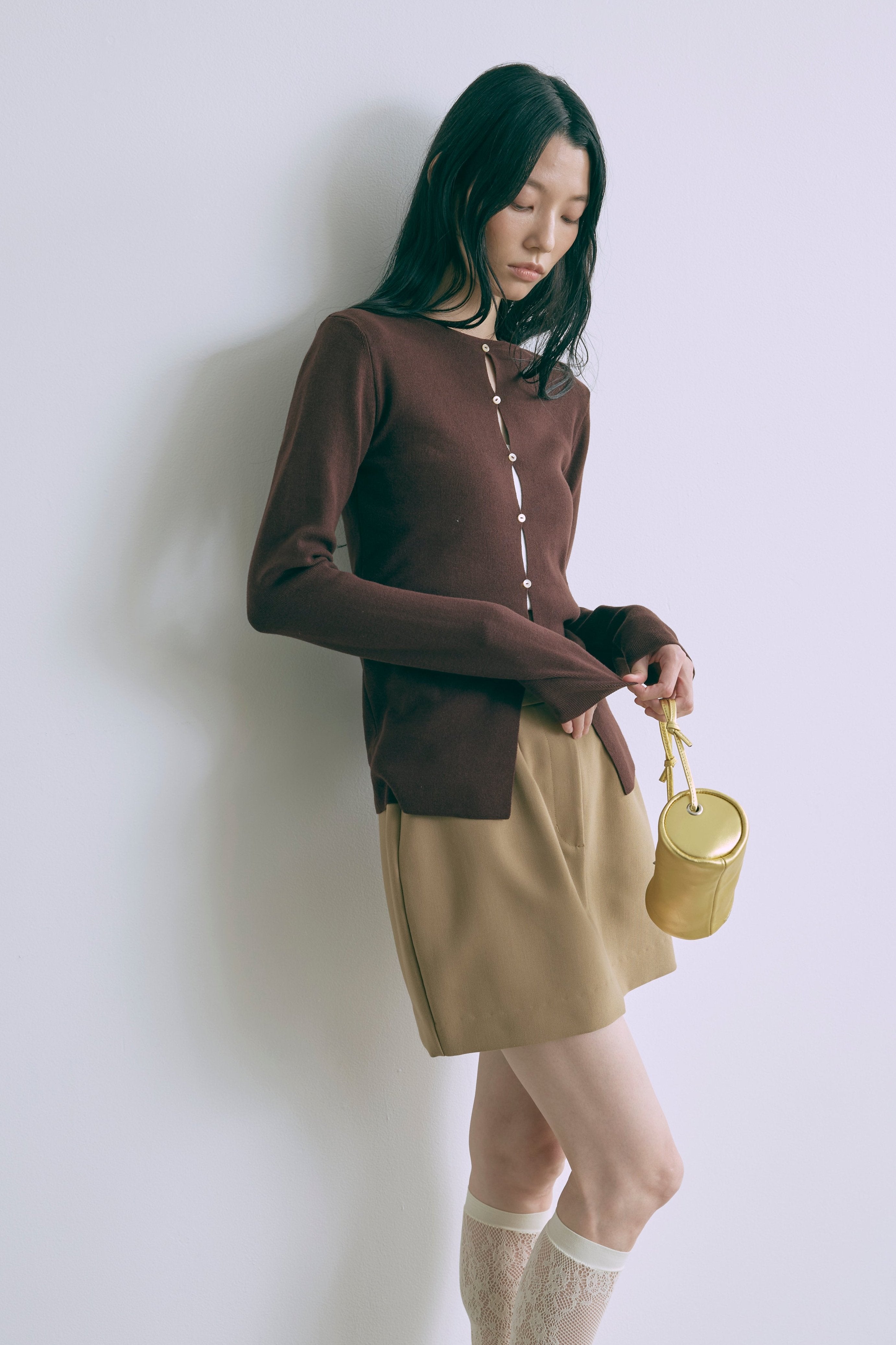 2WAYで楽しめる縦長ホールデザインのニットプルオーバー 【Material】 コットン混素材を使用したさらっとした着心地が魅力のニット。季節を問わずロングシーズンで活躍します。 【Design】 フロント中央に縦長のホールが入ったデザインがポイント。ホール部分を背中側にしてシンプルに着こなすこともできる2WAY仕様です。飾りボタンがアクセントになっており、今年らしい抜け感を演出。一枚で華やかさが際立つアイテムです。 【Styling point】 すっきりとしたシルエットで、ワイドパンツやボリュームのあるボトムスとも相性抜群。ジャケットのインナーとしても合わせやすく、さまざまなコーディネートに取り入れやすいデザインです。