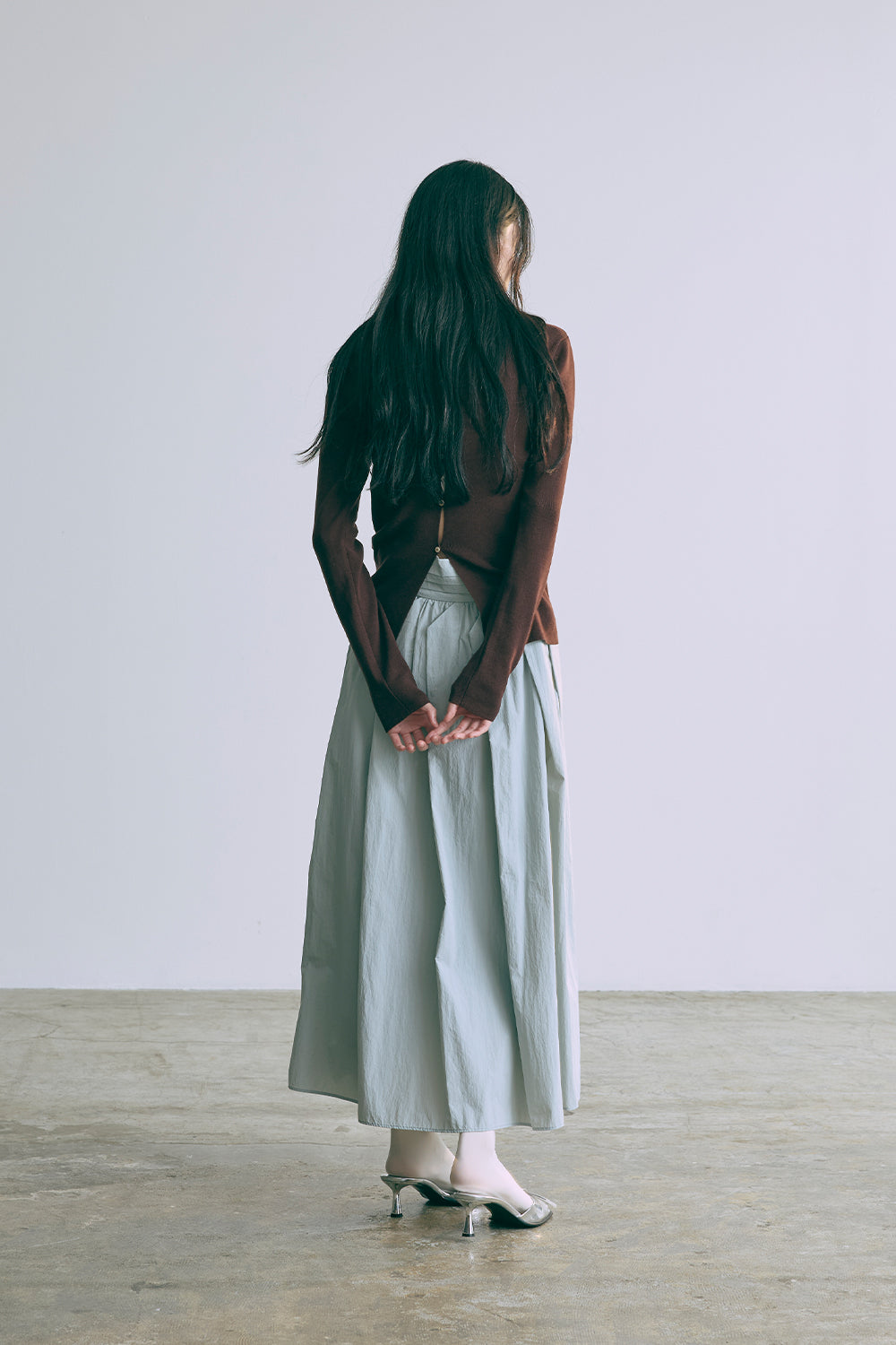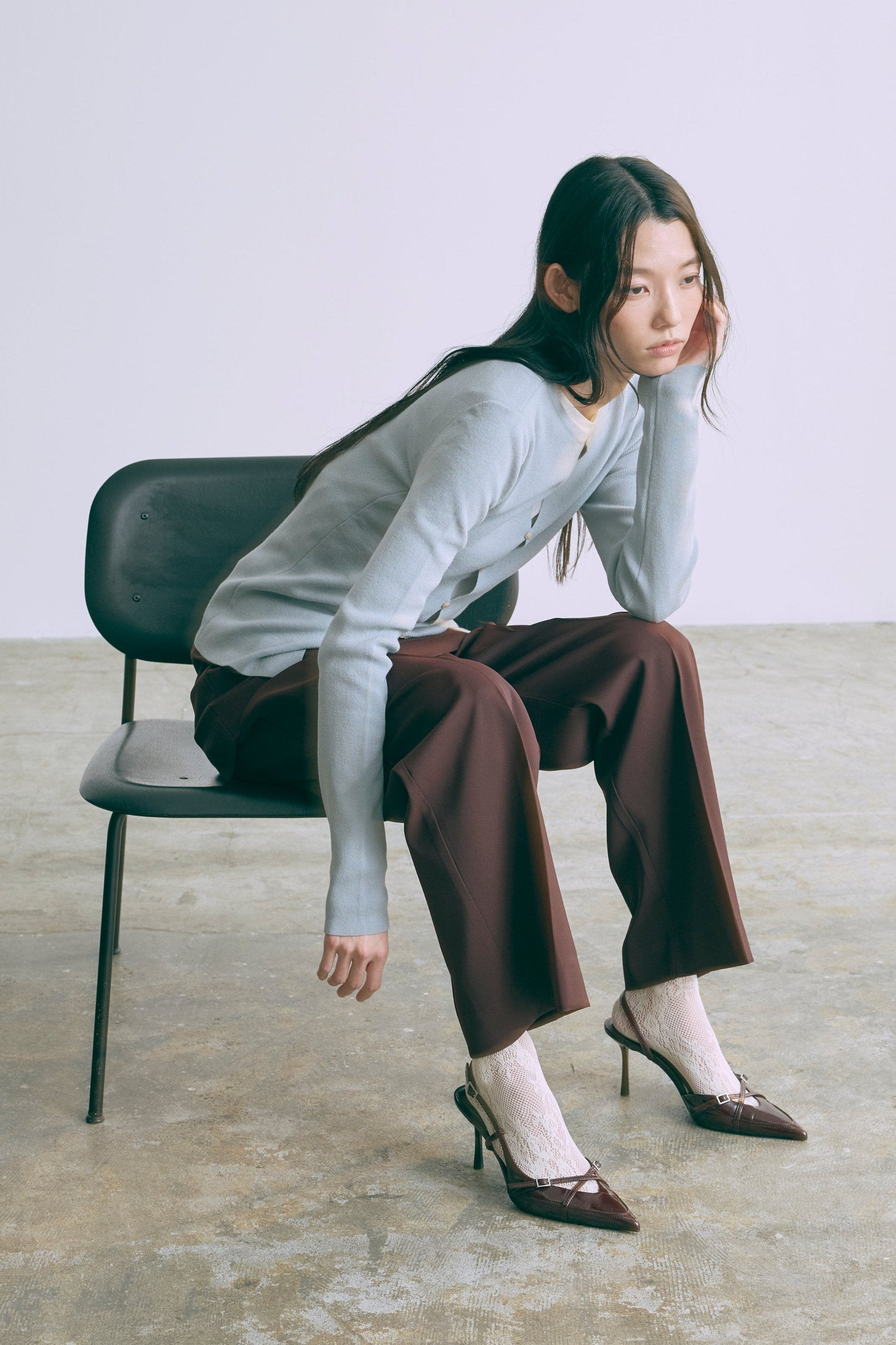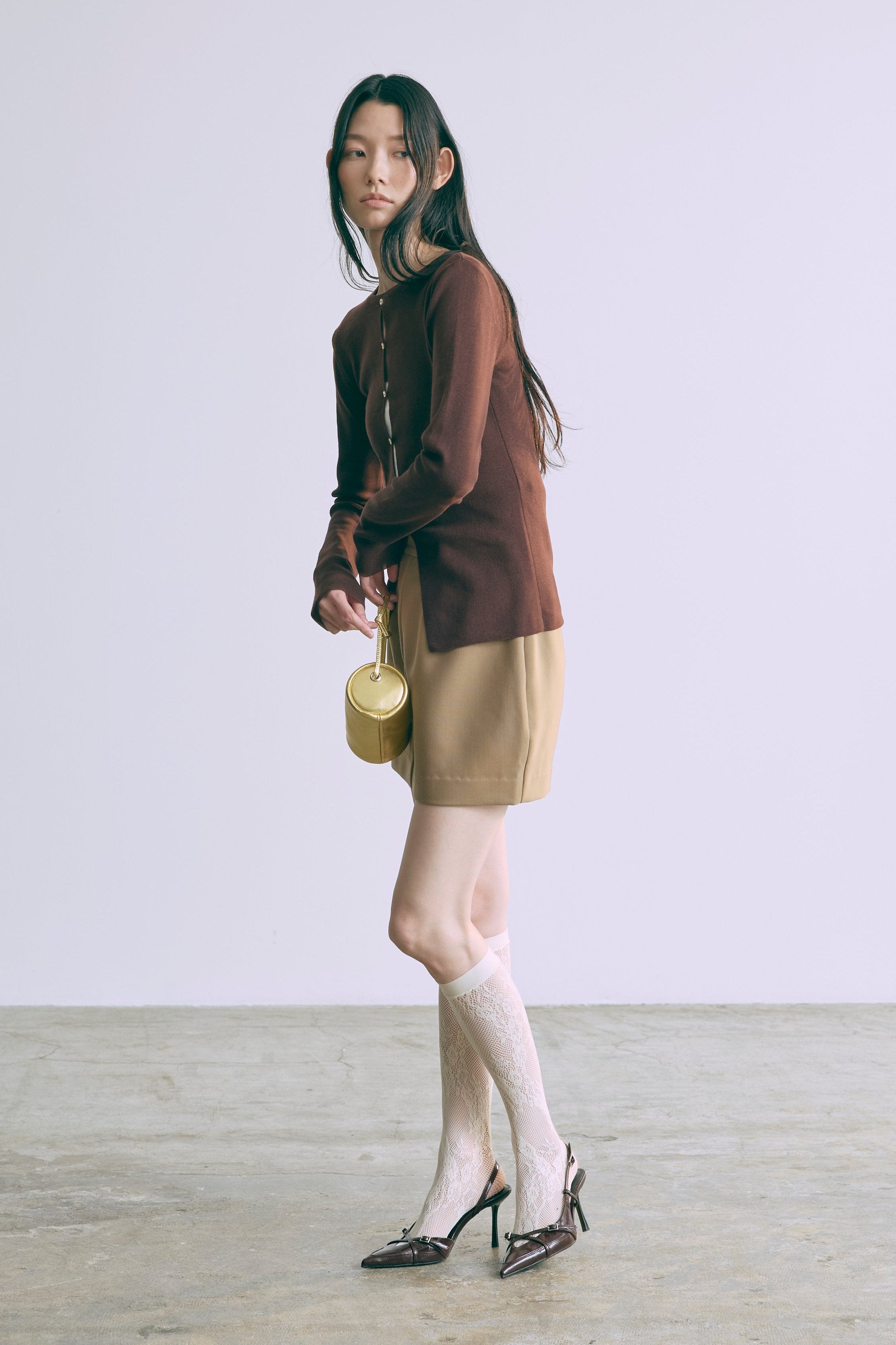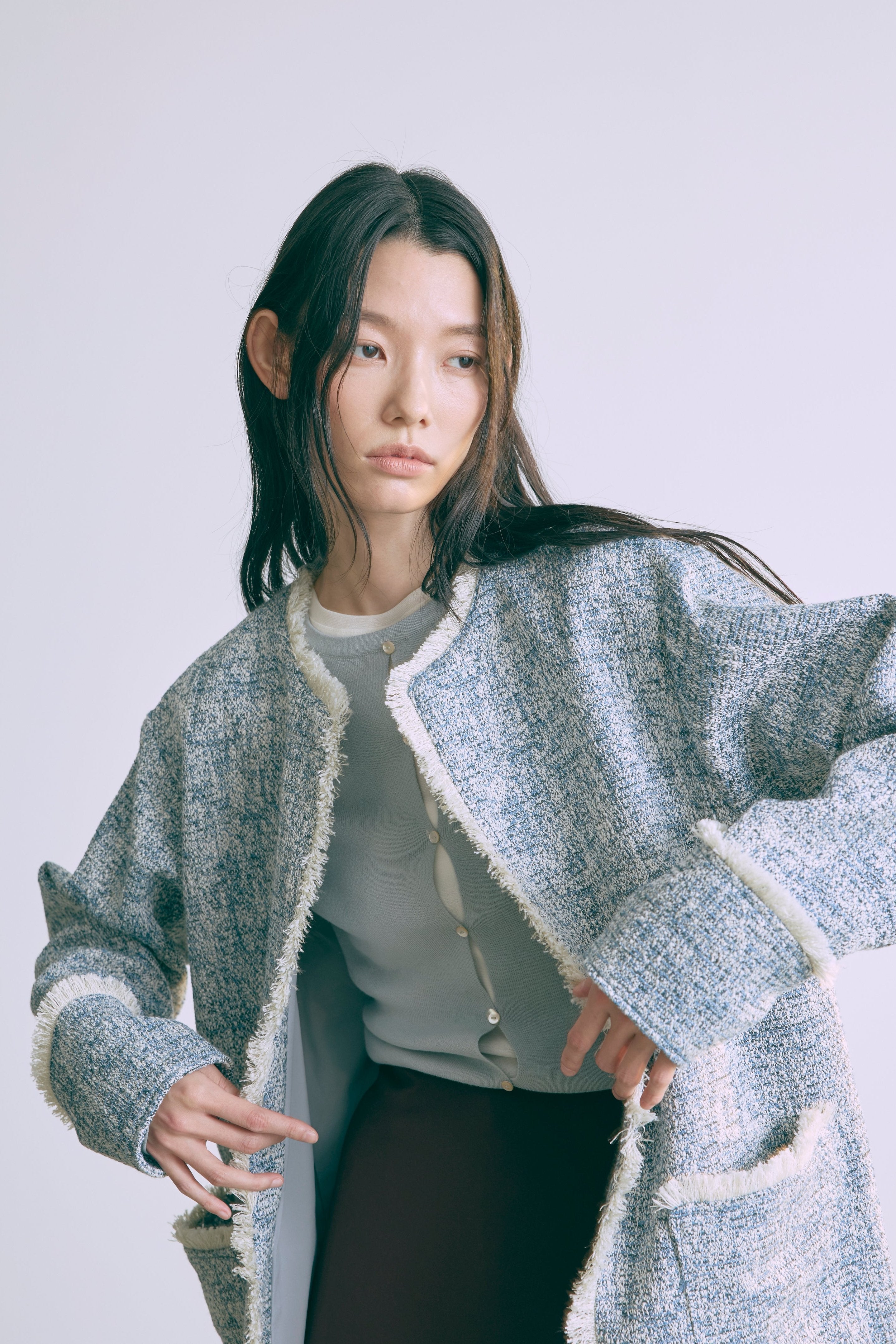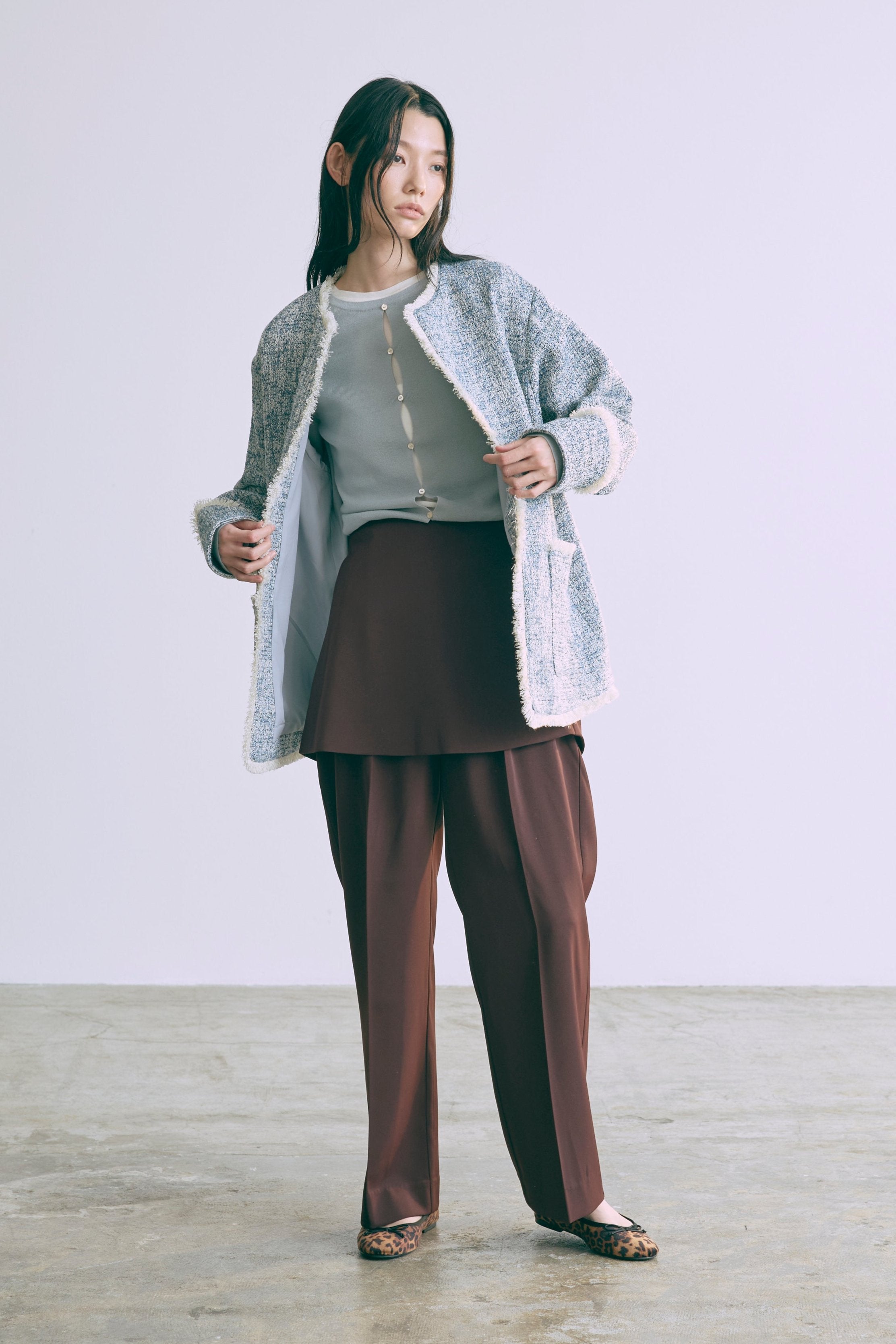 2WAYで楽しめる縦長ホールデザインのニットプルオーバー 【Material】 コットン混素材を使用したさらっとした着心地が魅力のニット。季節を問わずロングシーズンで活躍します。 【Design】 フロント中央に縦長のホールが入ったデザインがポイント。ホール部分を背中側にしてシンプルに着こなすこともできる2WAY仕様です。飾りボタンがアクセントになっており、今年らしい抜け感を演出。一枚で華やかさが際立つアイテムです。 【Styling point】 すっきりとしたシルエットで、ワイドパンツやボリュームのあるボトムスとも相性抜群。ジャケットのインナーとしても合わせやすく、さまざまなコーディネートに取り入れやすいデザインです。