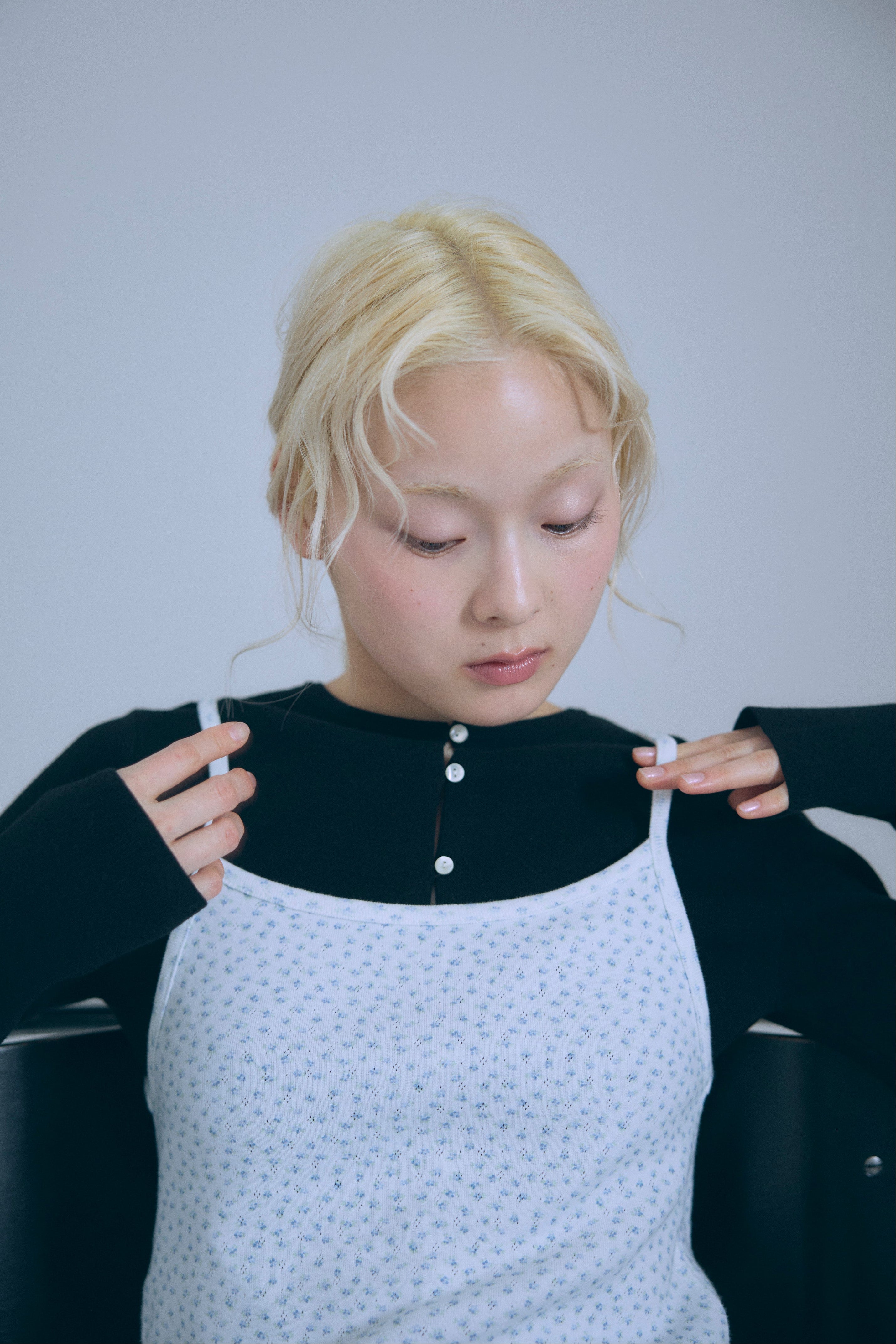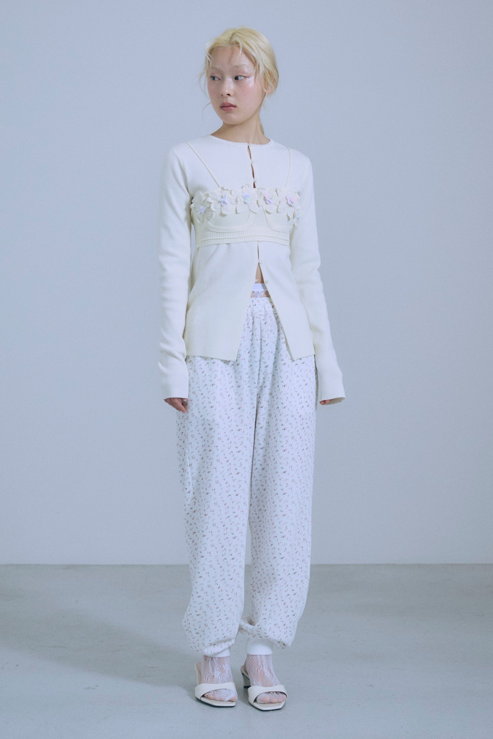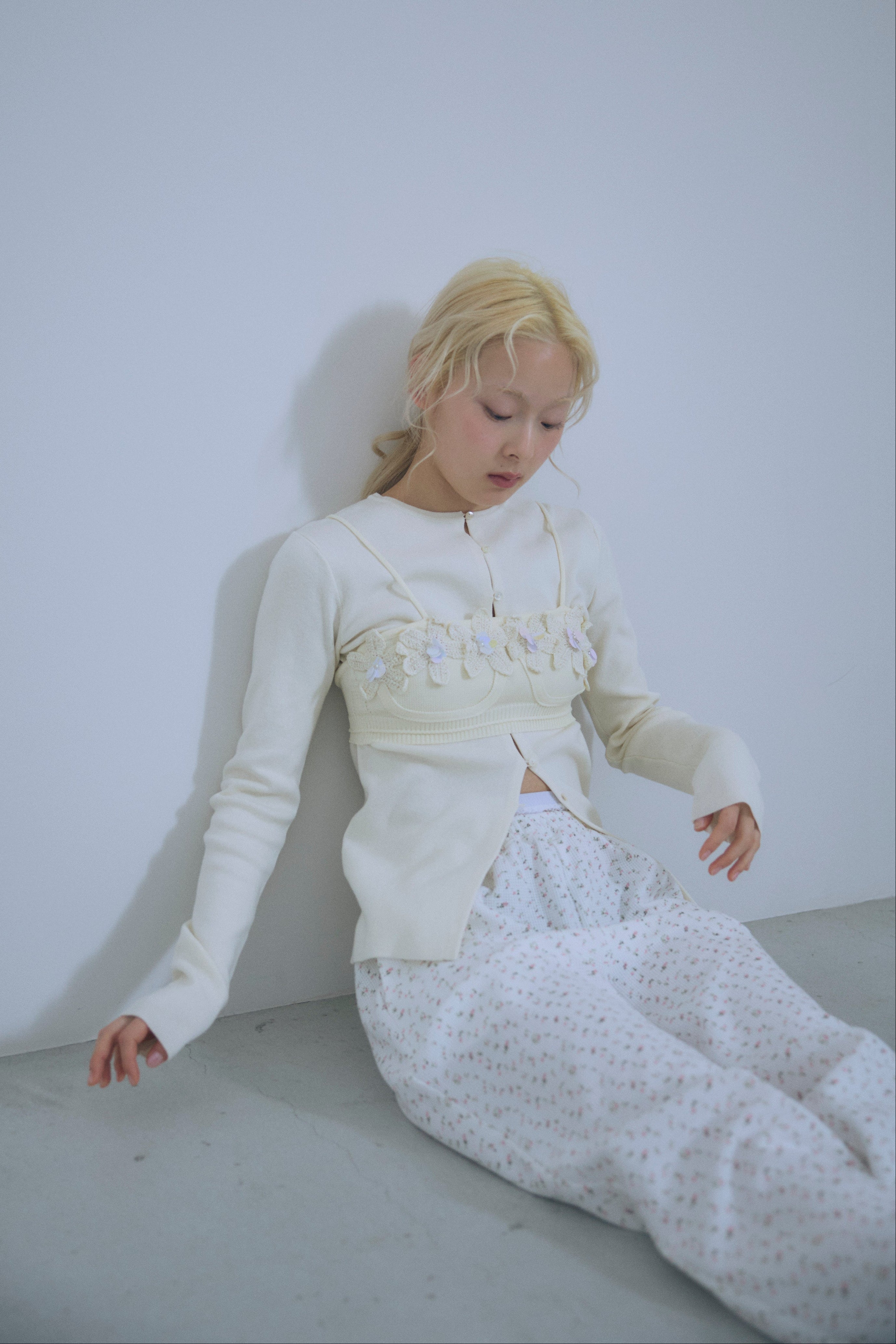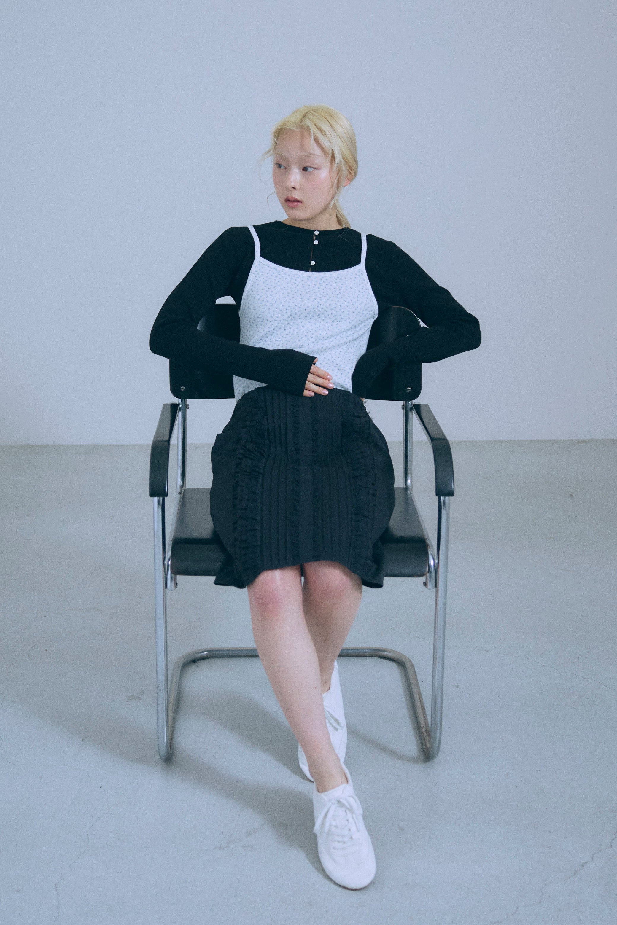 小ぶりボタンが、今のムードを引き立てる2WAYニット 【Material】 さらっとしたタッチで、ほどよいハリ感のあるニット素材を使用。編み目が細かく、上品でフラットな表面感が特徴です。ボタンデザインを引き立て、トップスとしてもカーディガンとしてもきれいに着られる素材感に仕上げています。 【Design】 フロントに並んだ小ぶりのボタンが、シンプルな中にさりげないアクセントをプラス。細身のシルエットが女性らしいラインをすっきりと見せてくれます。前を閉じてプルオーバー風に、開けてカーディガンとしても着用できる2WAY仕様で、着こなしの幅が広がる一枚です。 【Styling point】 前を留めてトップスとして着用すれば、フレアスカートやタイトスカートと好相性。カーディガンとして羽織れば、ワイドパンツのゆるさを引き締め、バランスの取れたスタイリングに仕上がります。季節の変わり目にも重宝する、着回し力の高いアイテムです。
