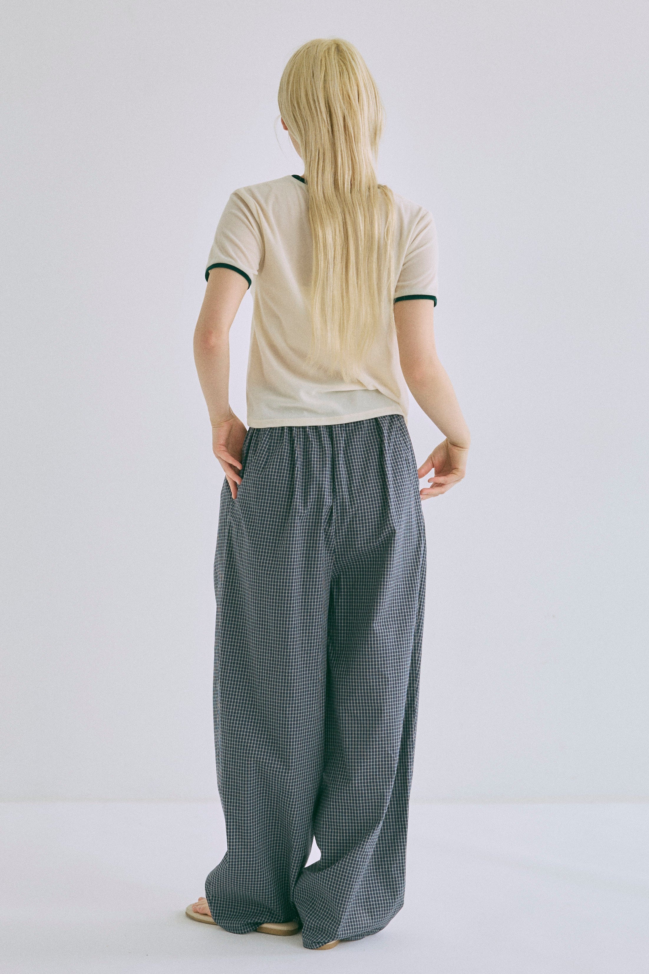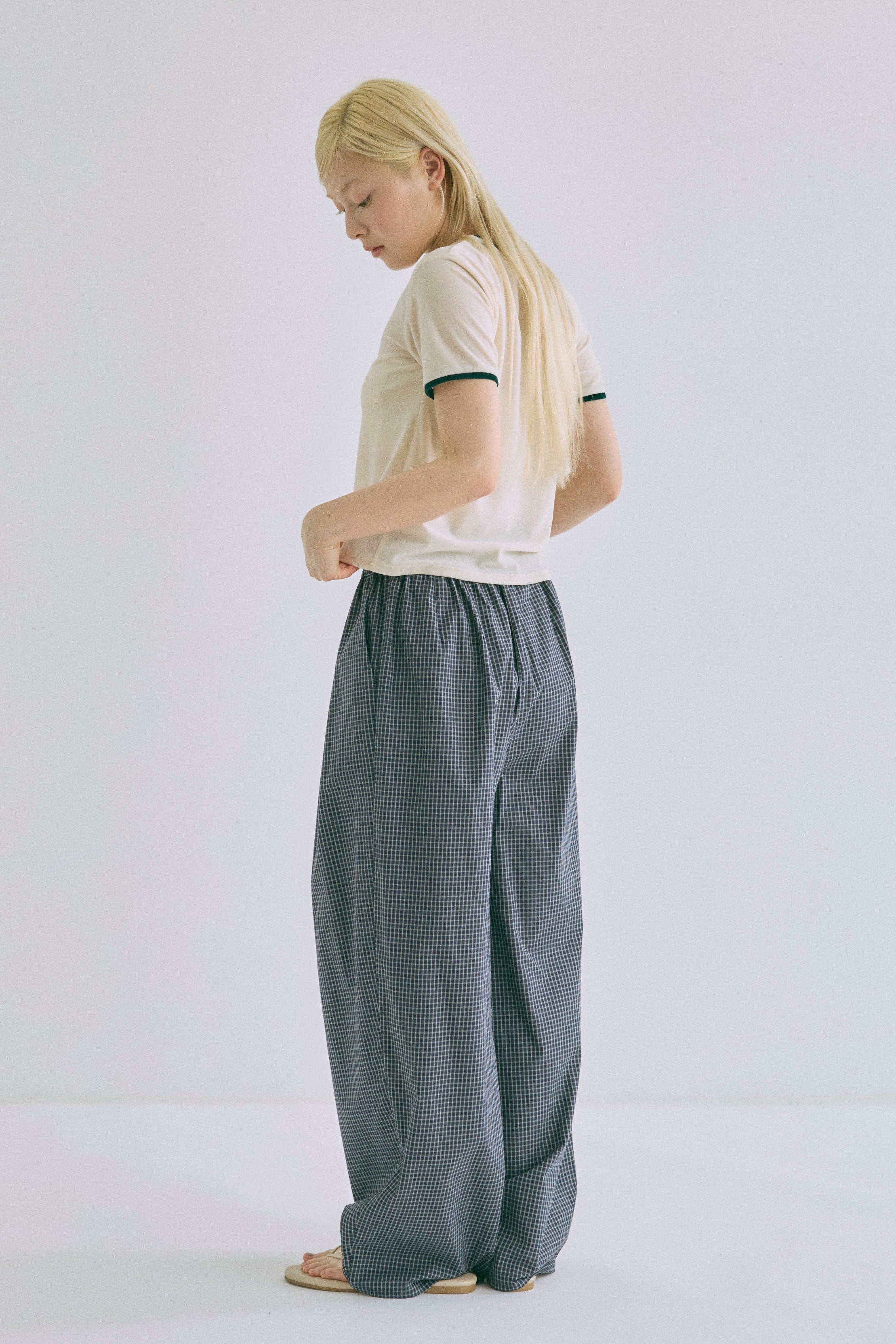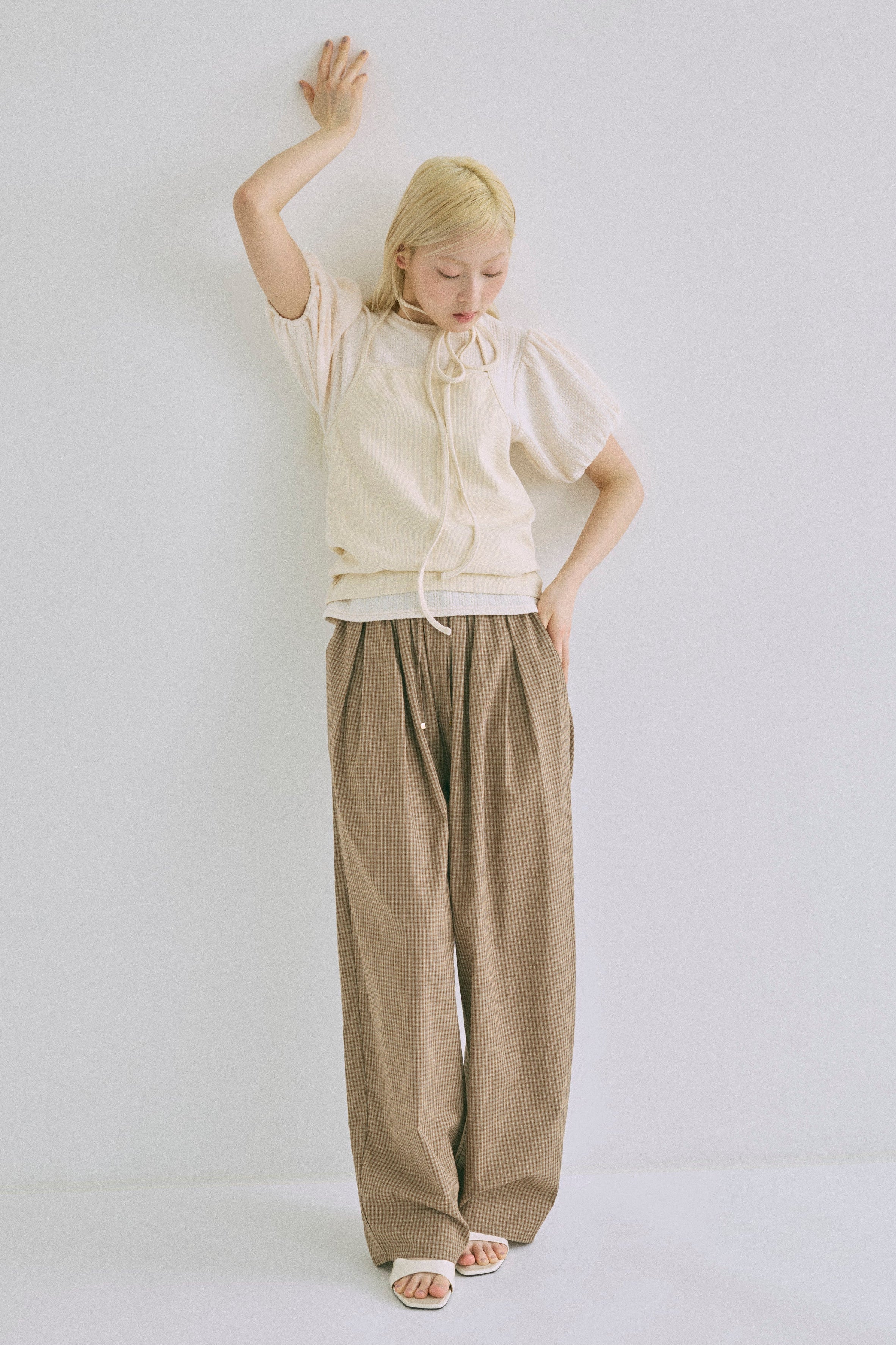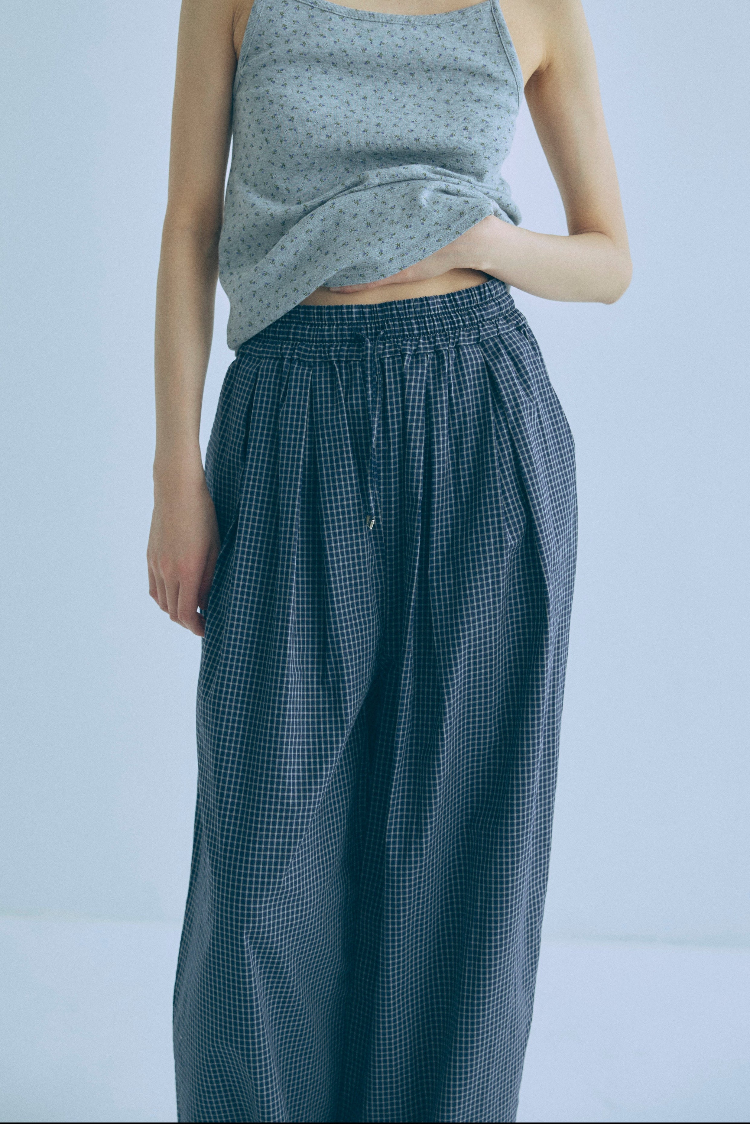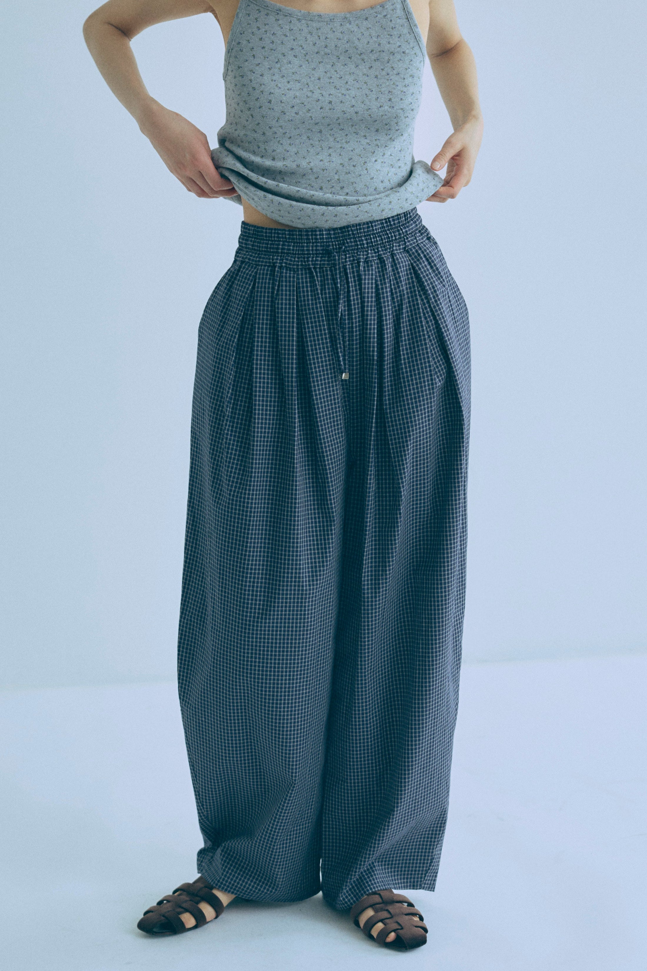 Airy Check Tuck Easy-Pants